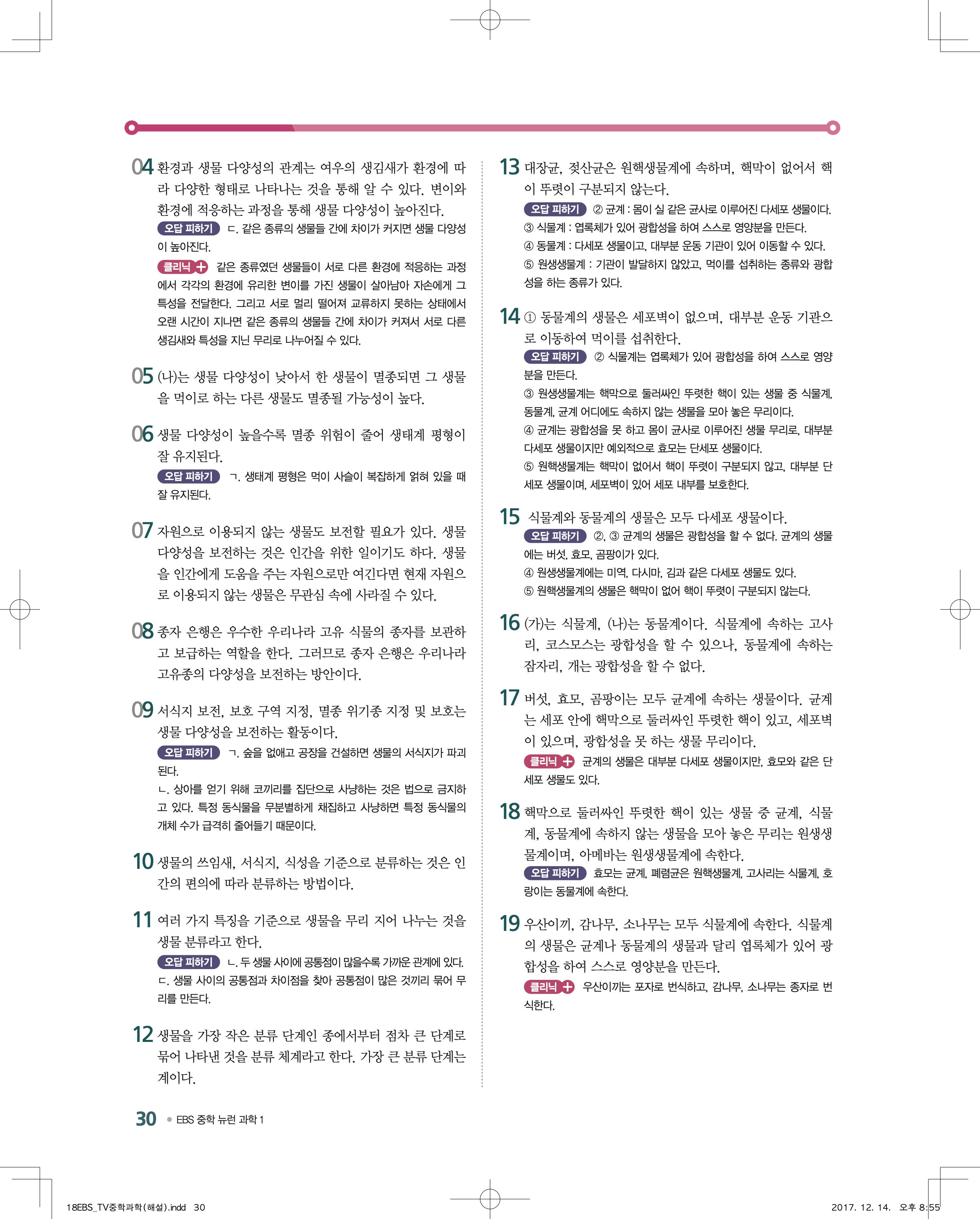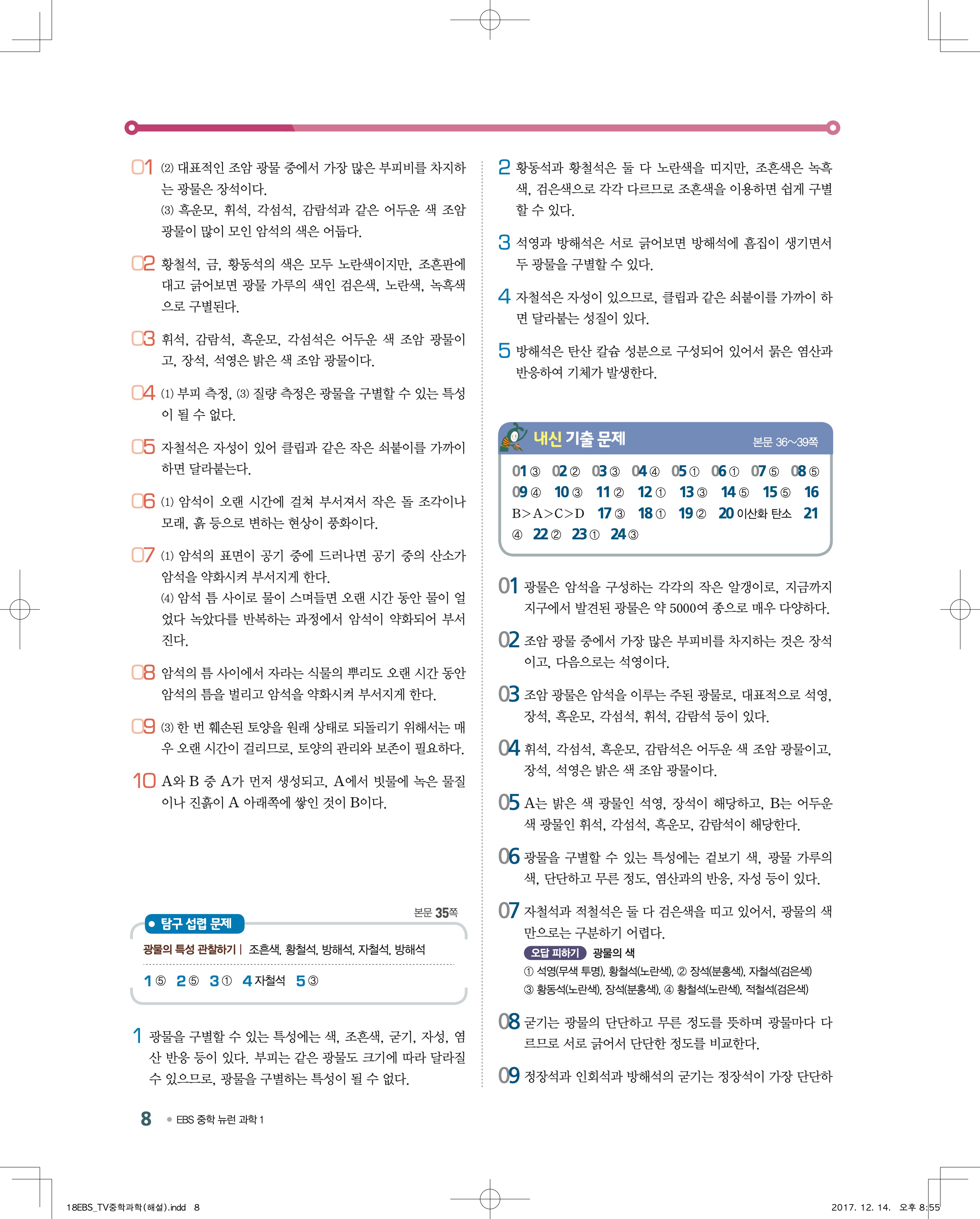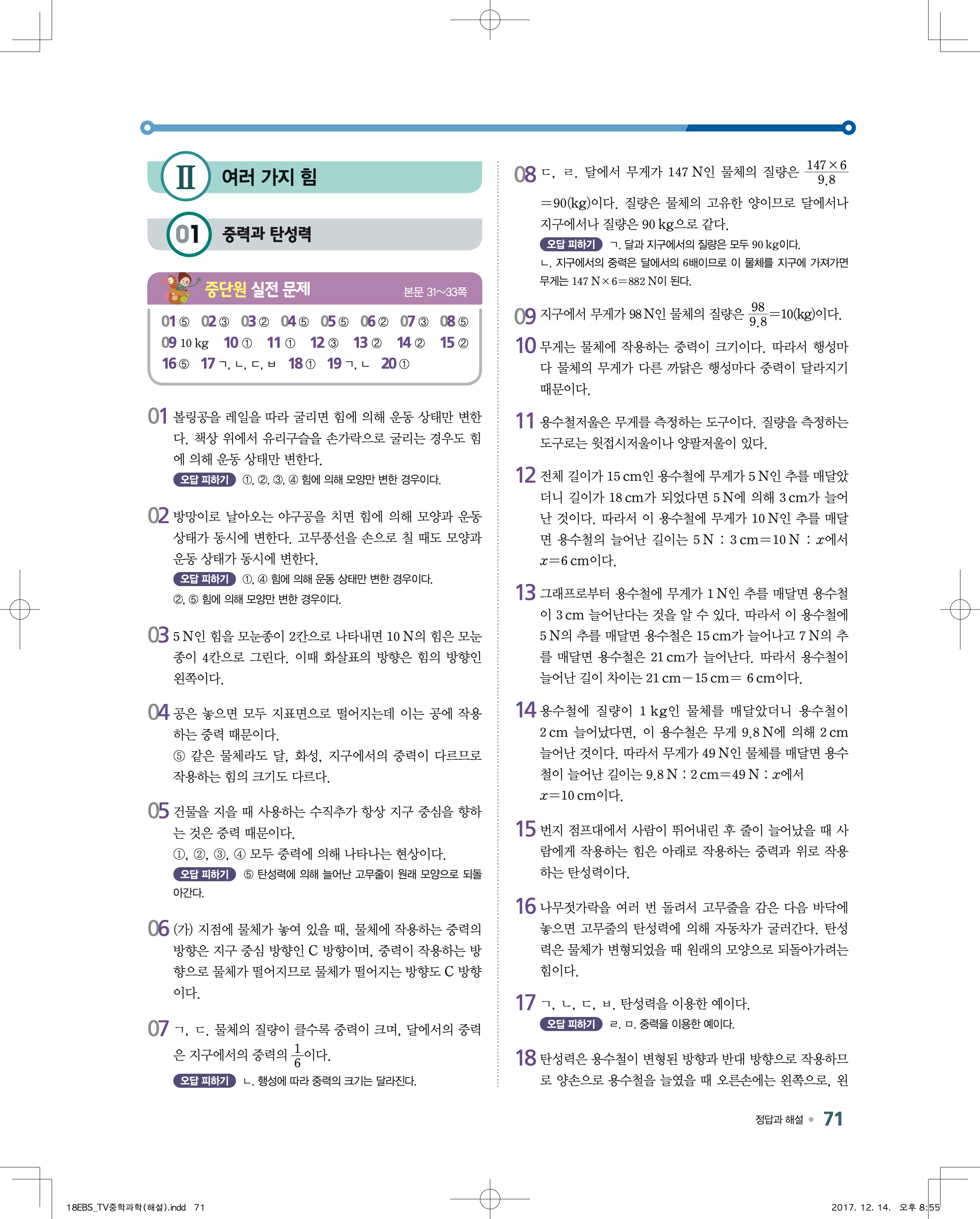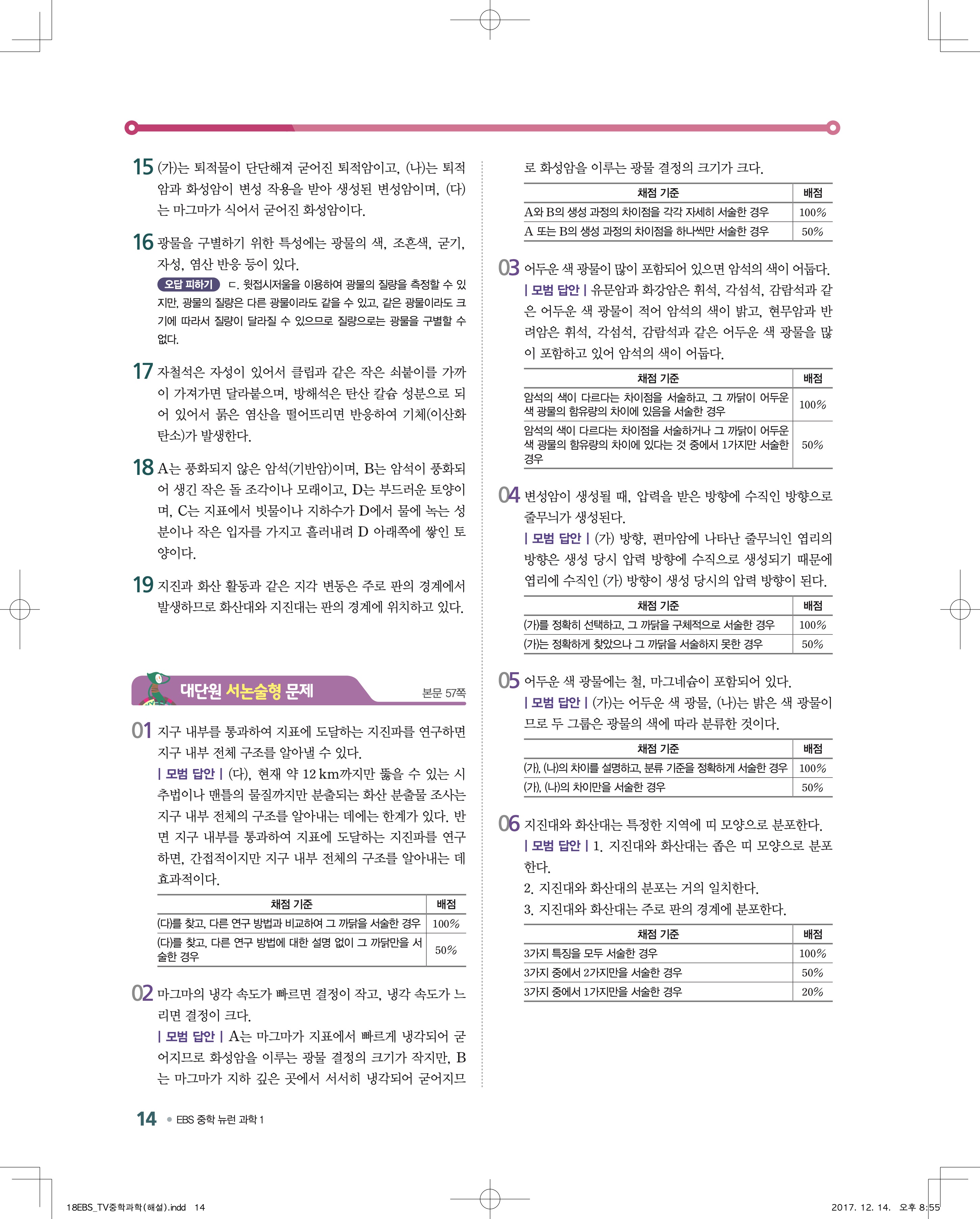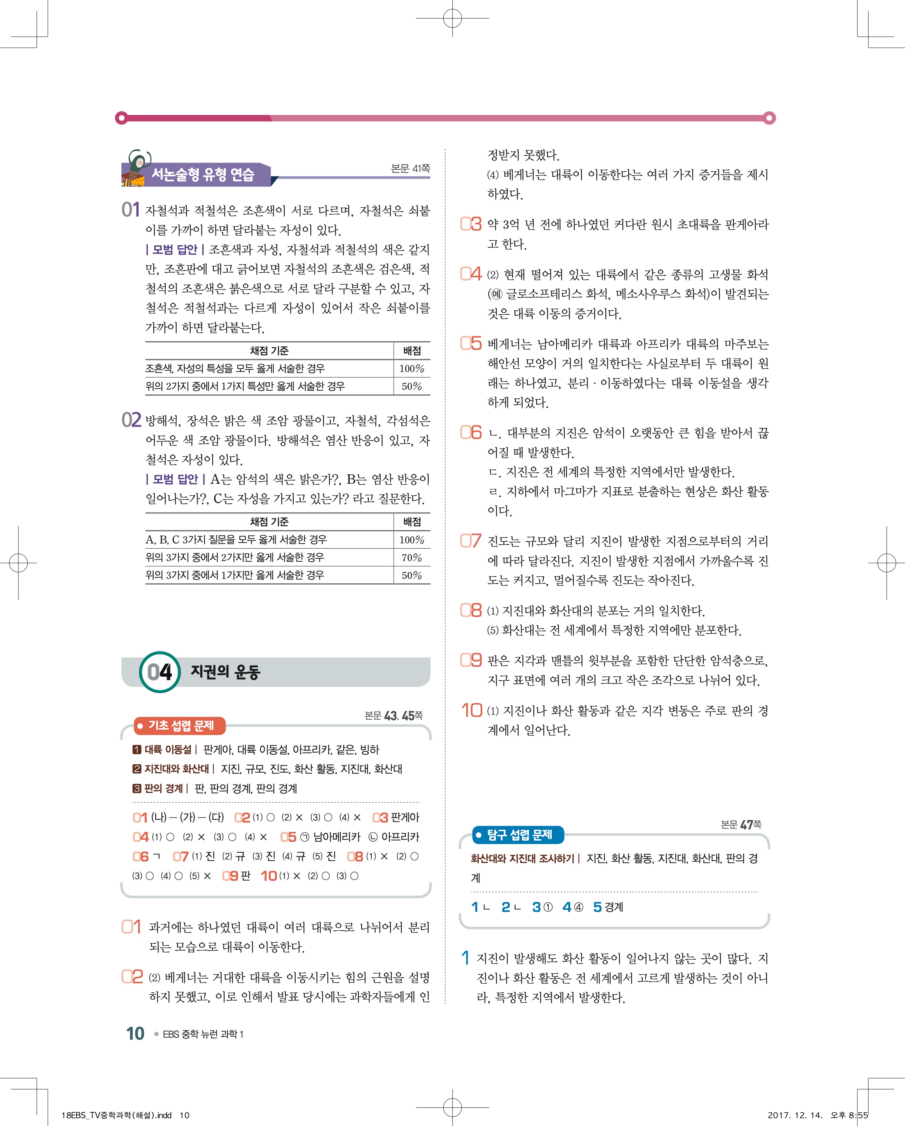 EBS 뉴런 과학1 답지 해설 바로보는 사진답지 빠른답지 모바일최적화