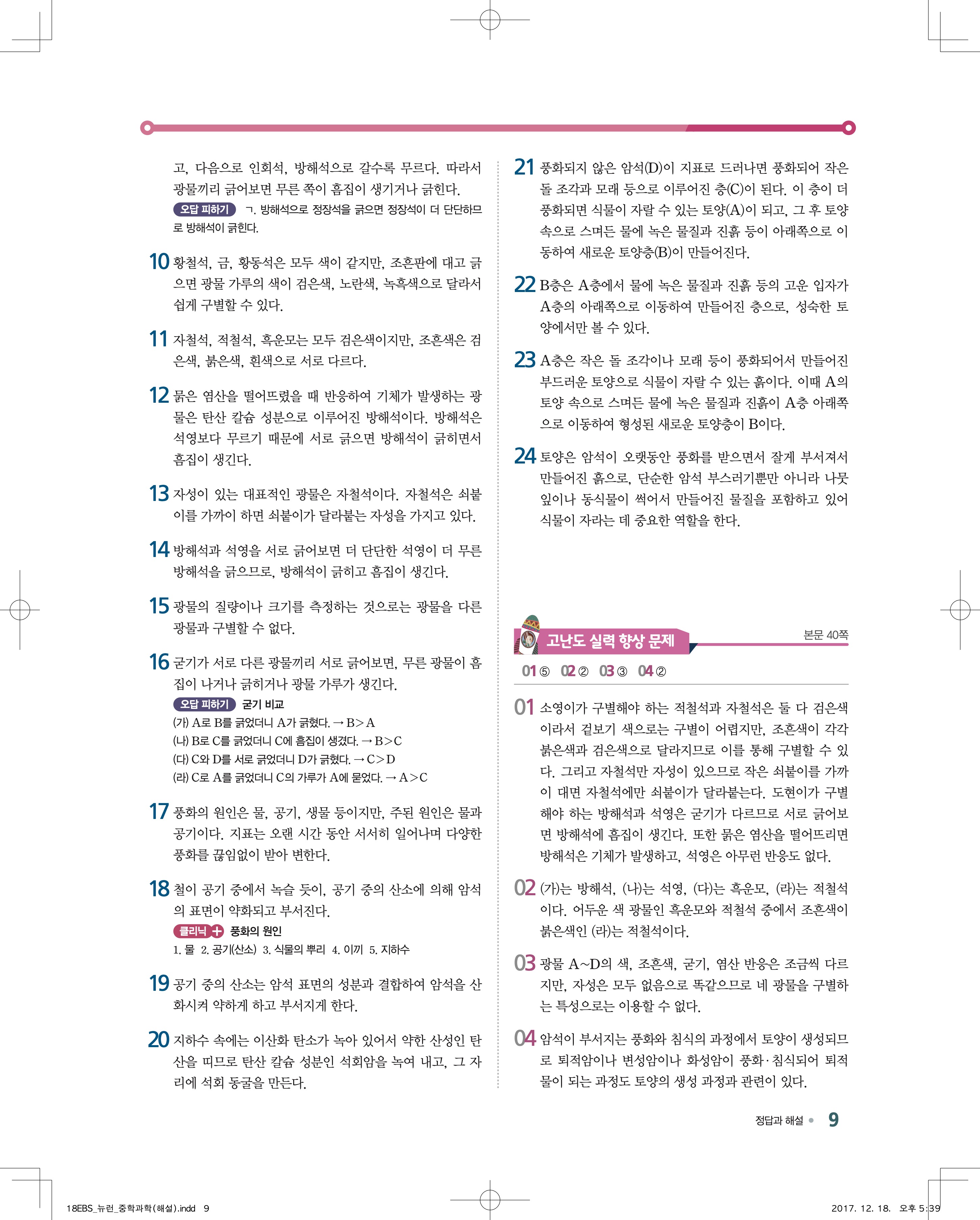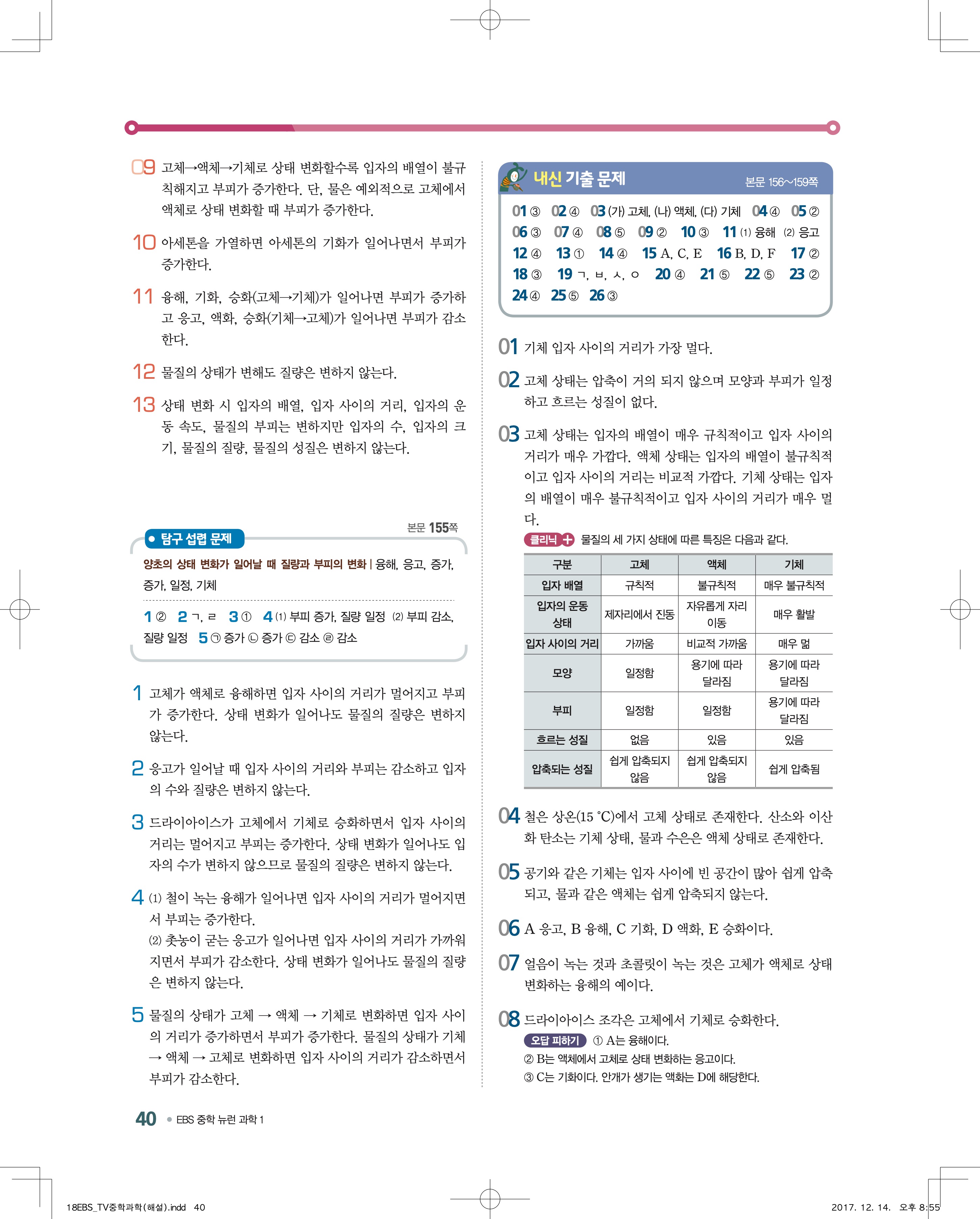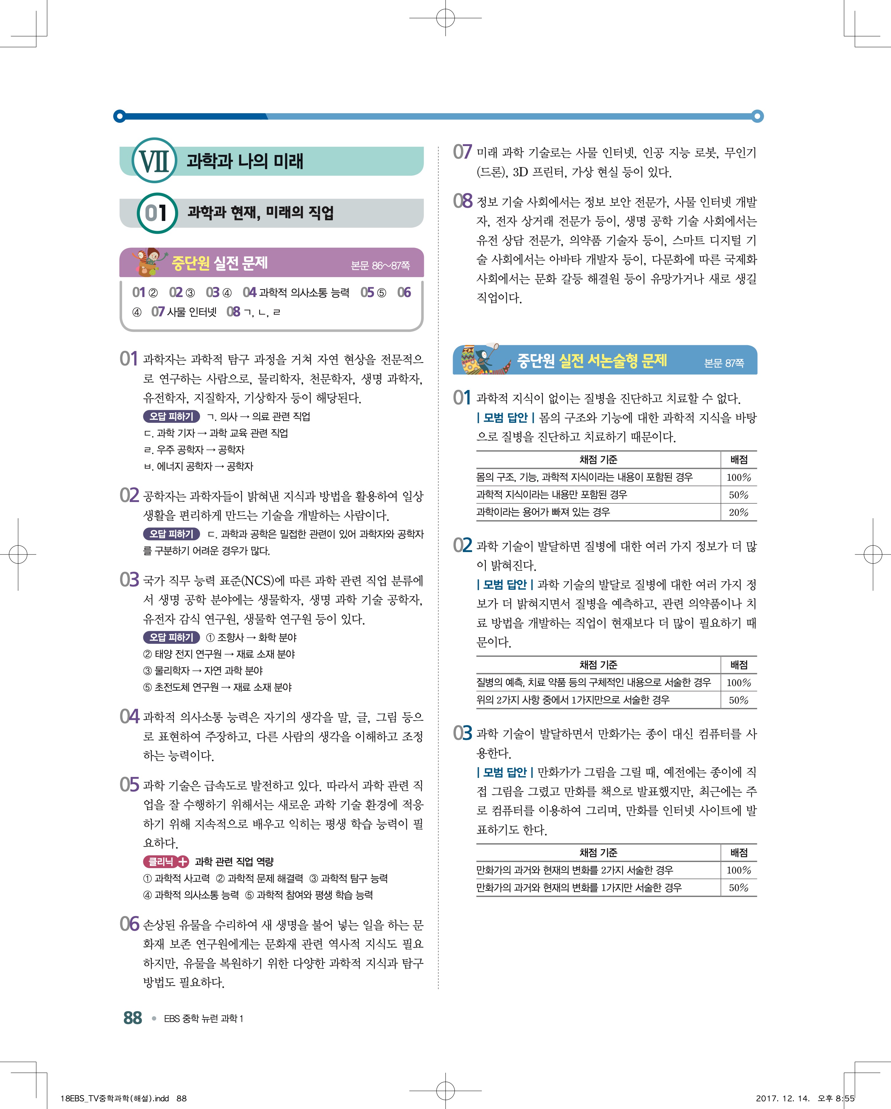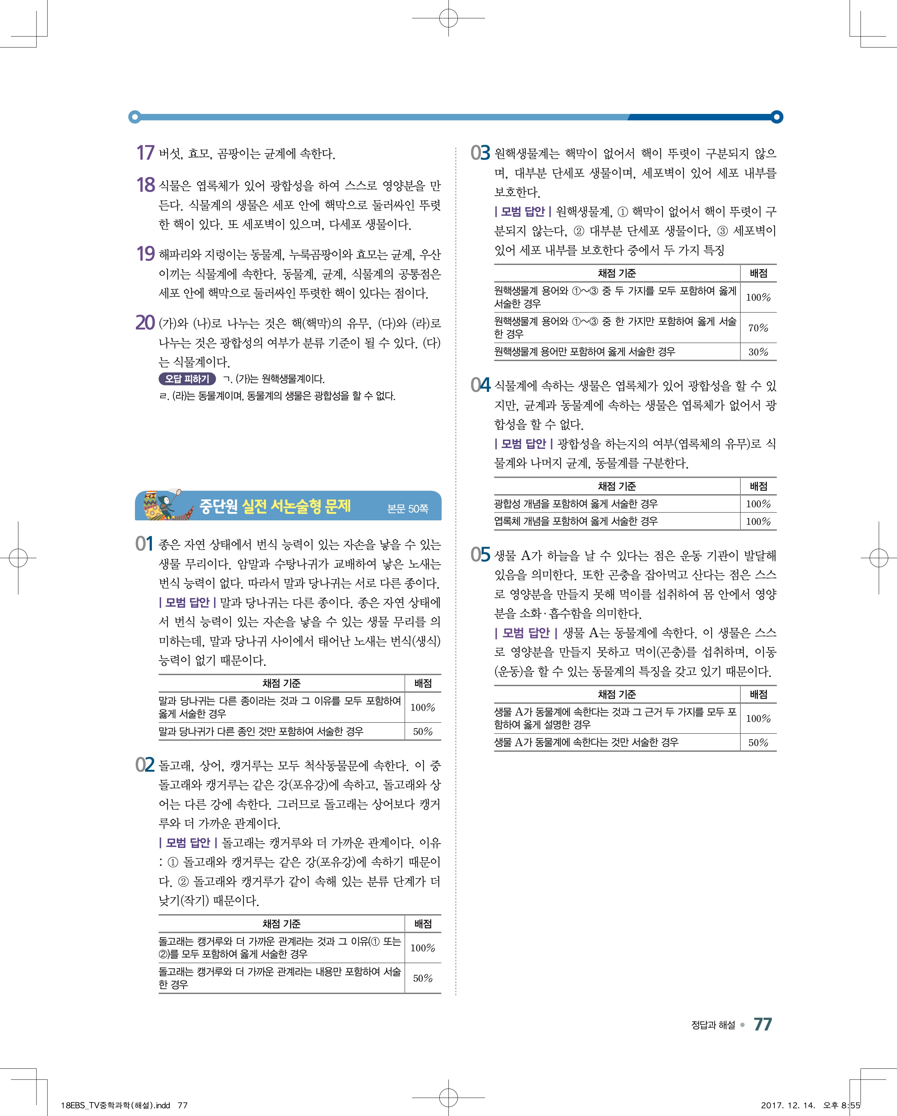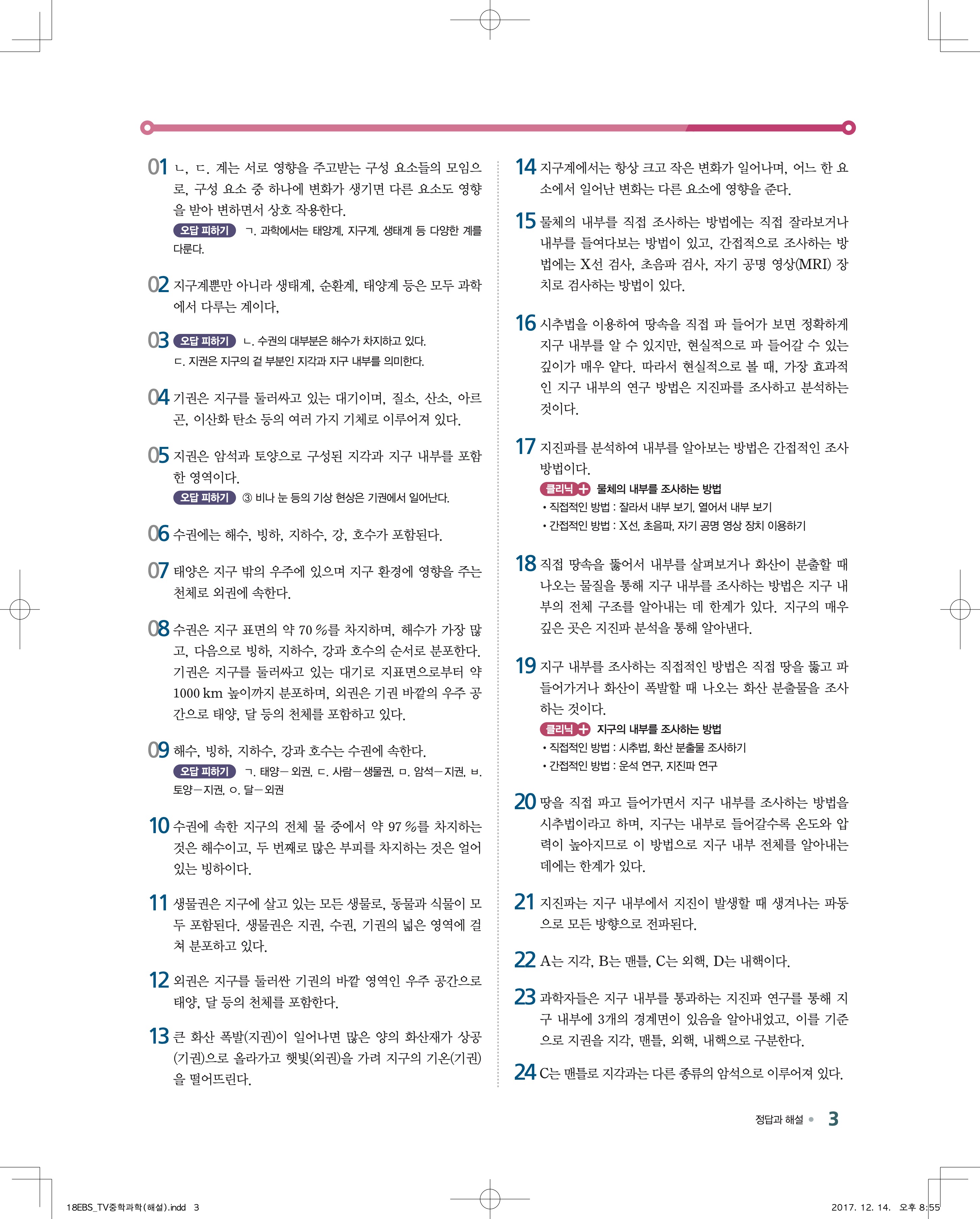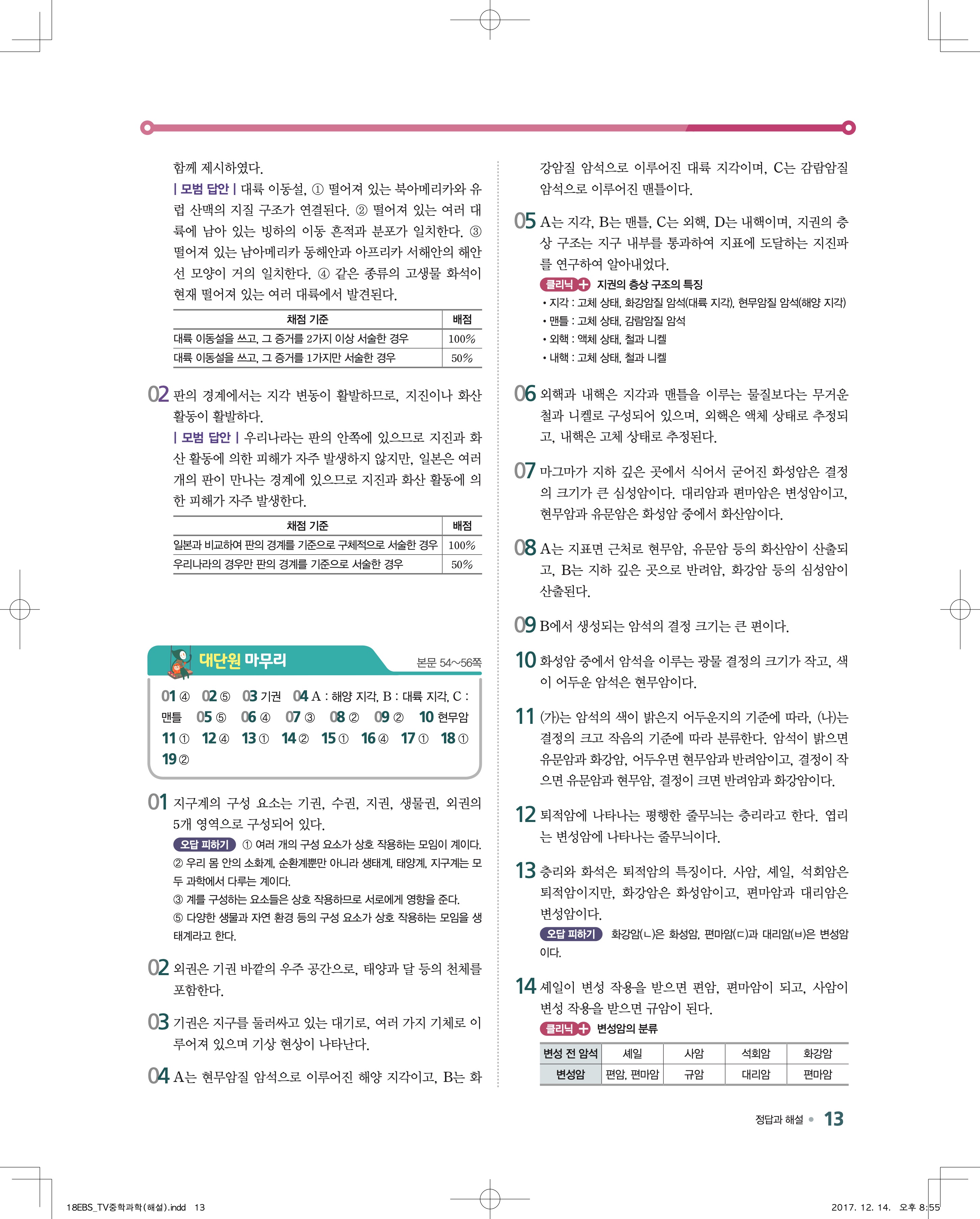 EBS 뉴런 과학1 답지 해설 바로보는 사진답지 빠른답지 모바일최적화