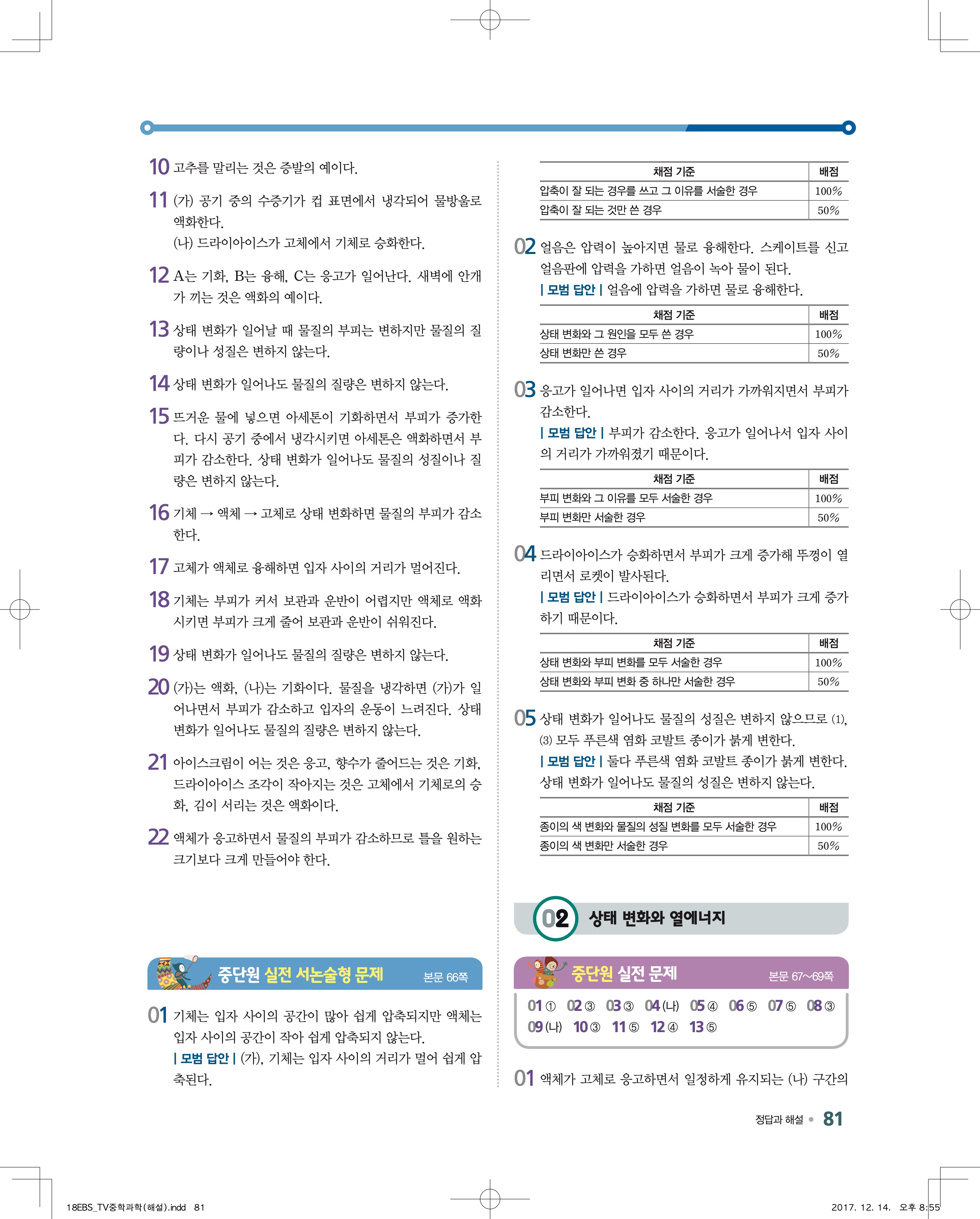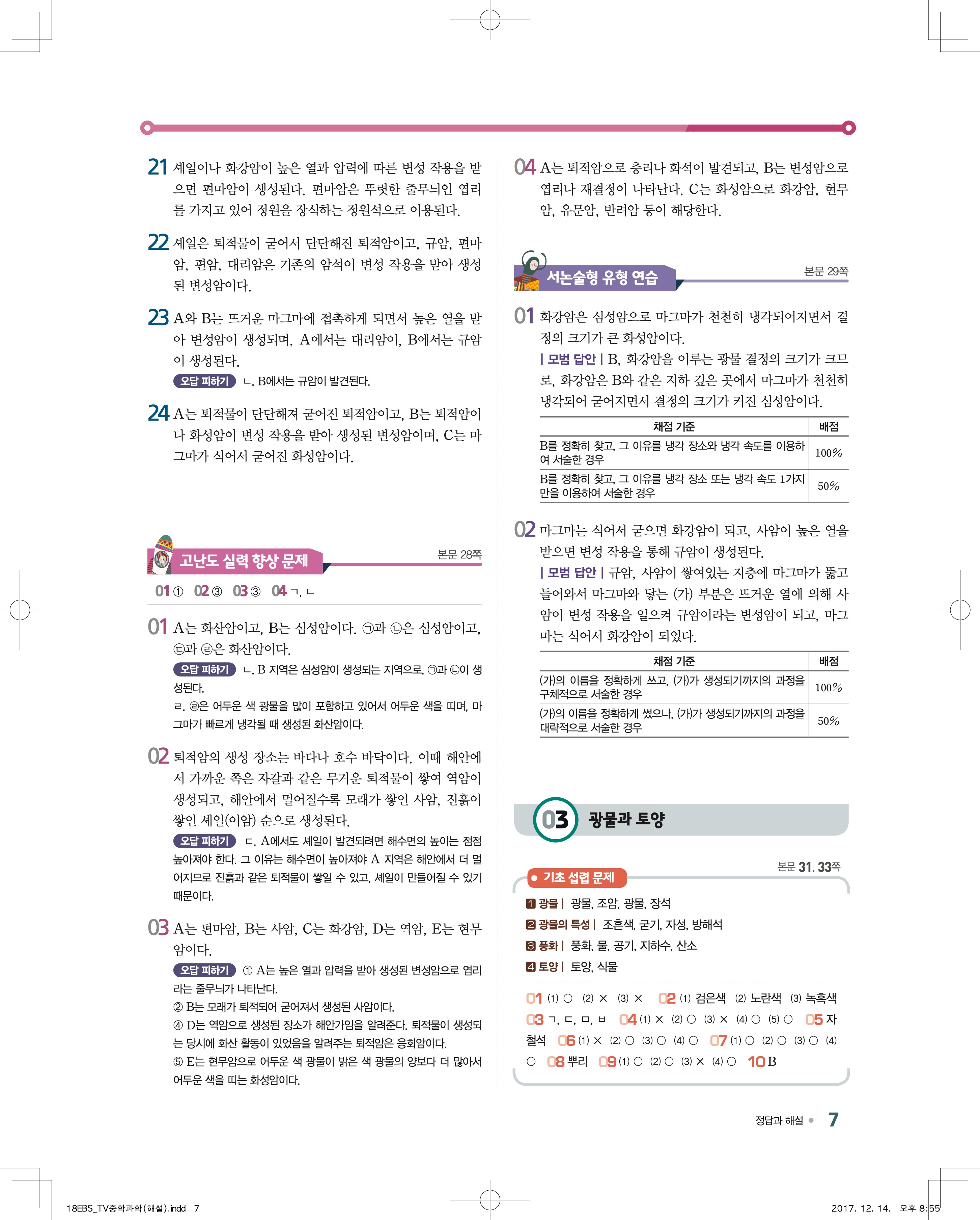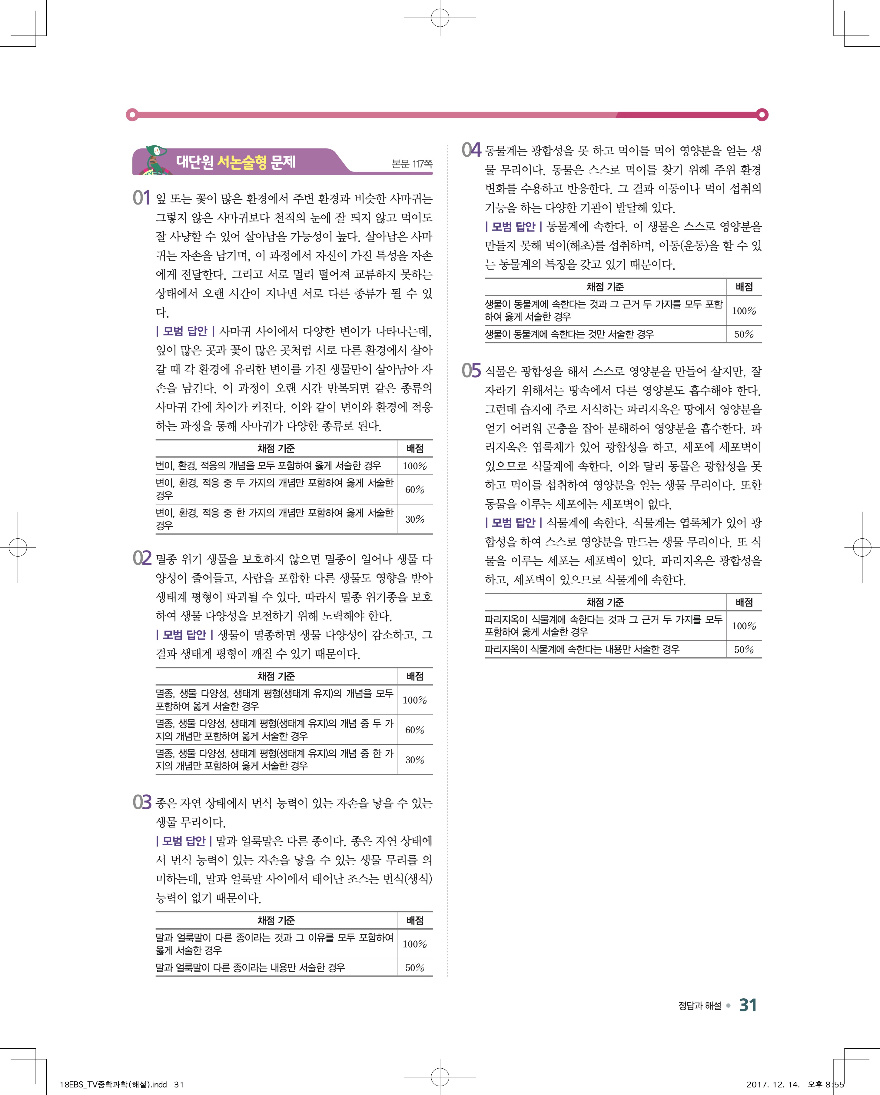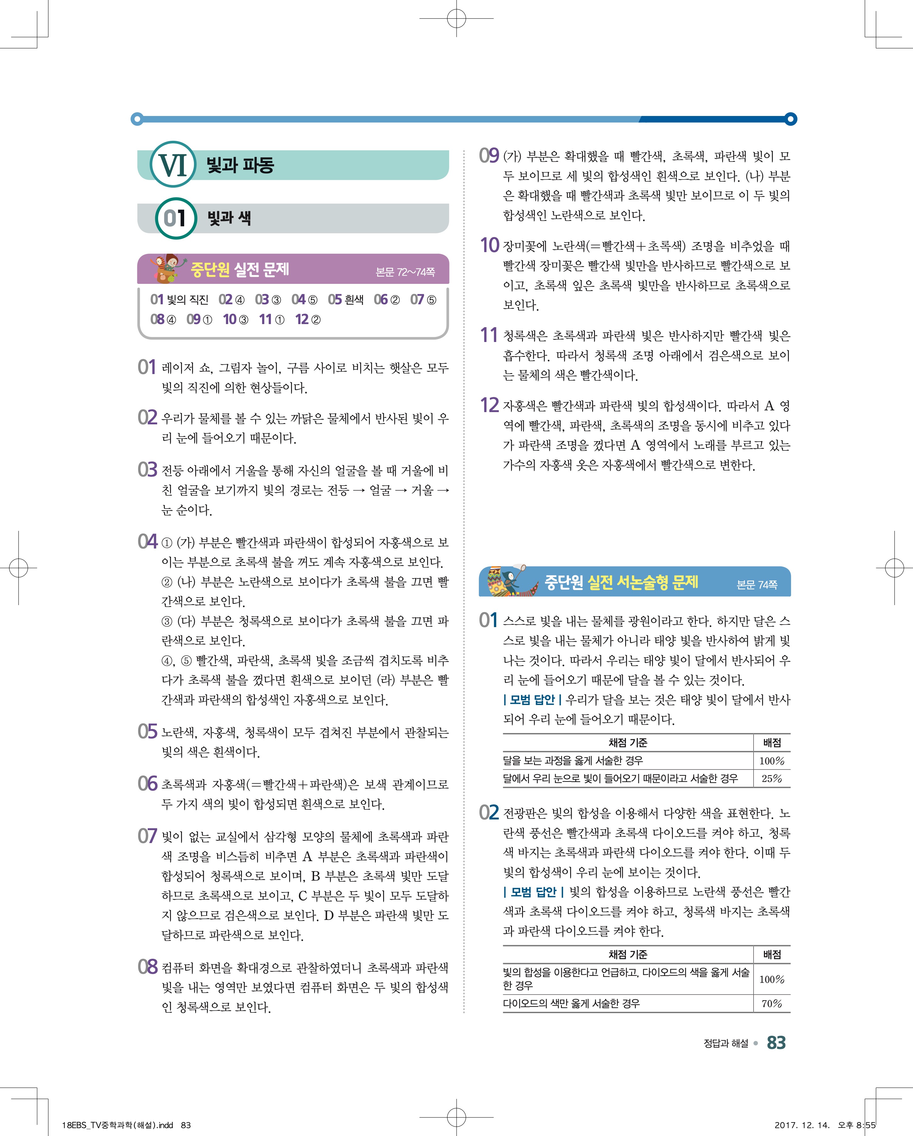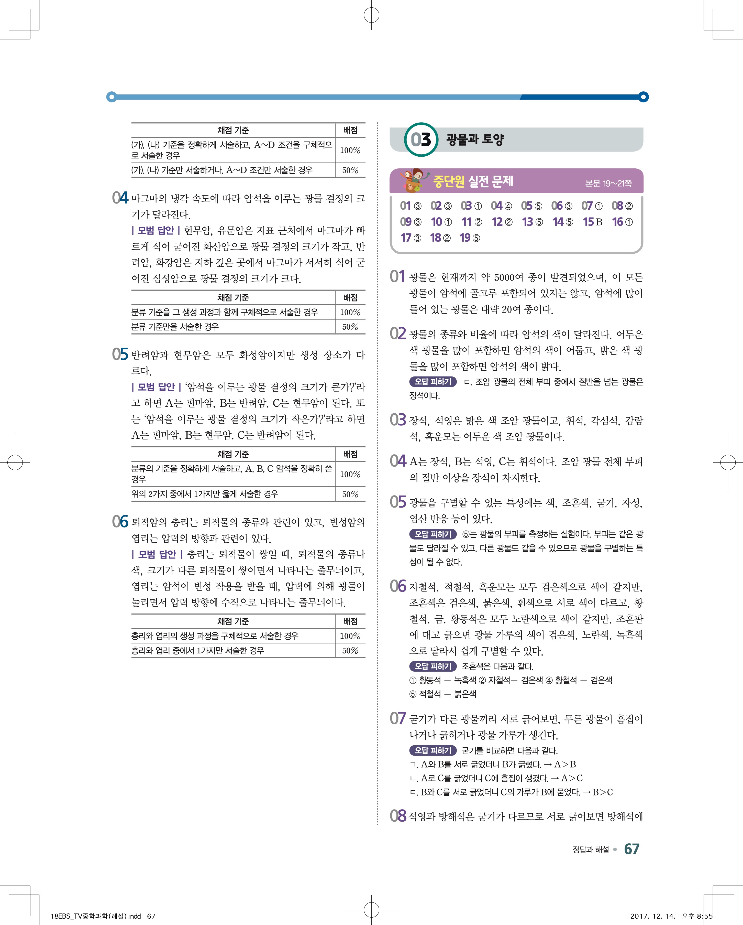 EBS 뉴런 과학1 답지 해설 바로보는 사진답지 빠른답지 모바일최적화