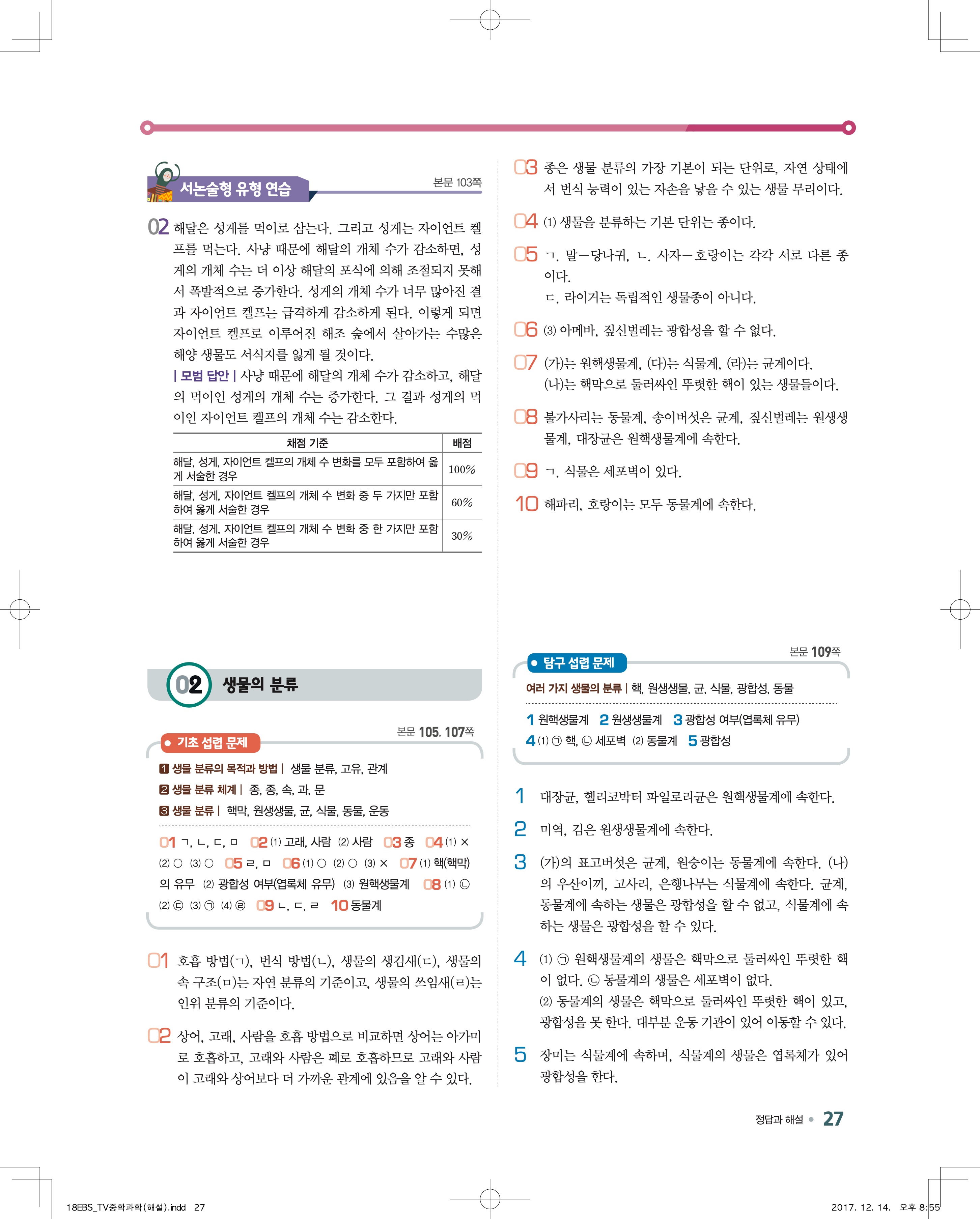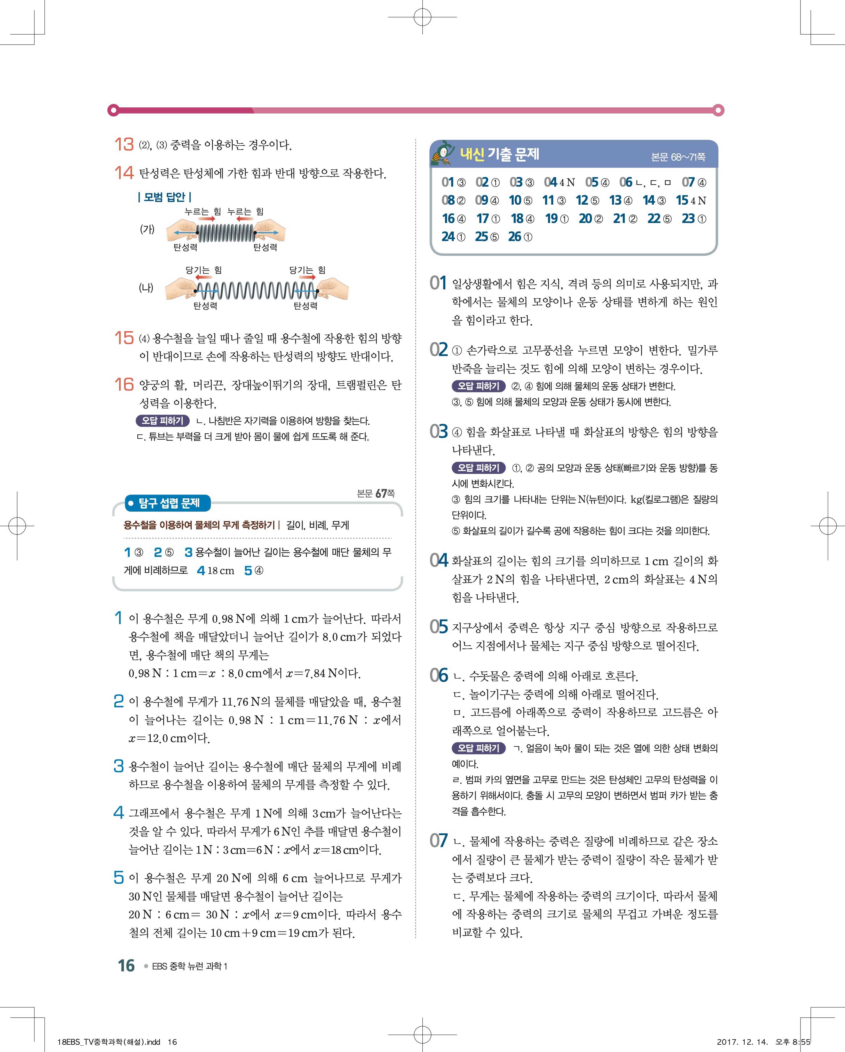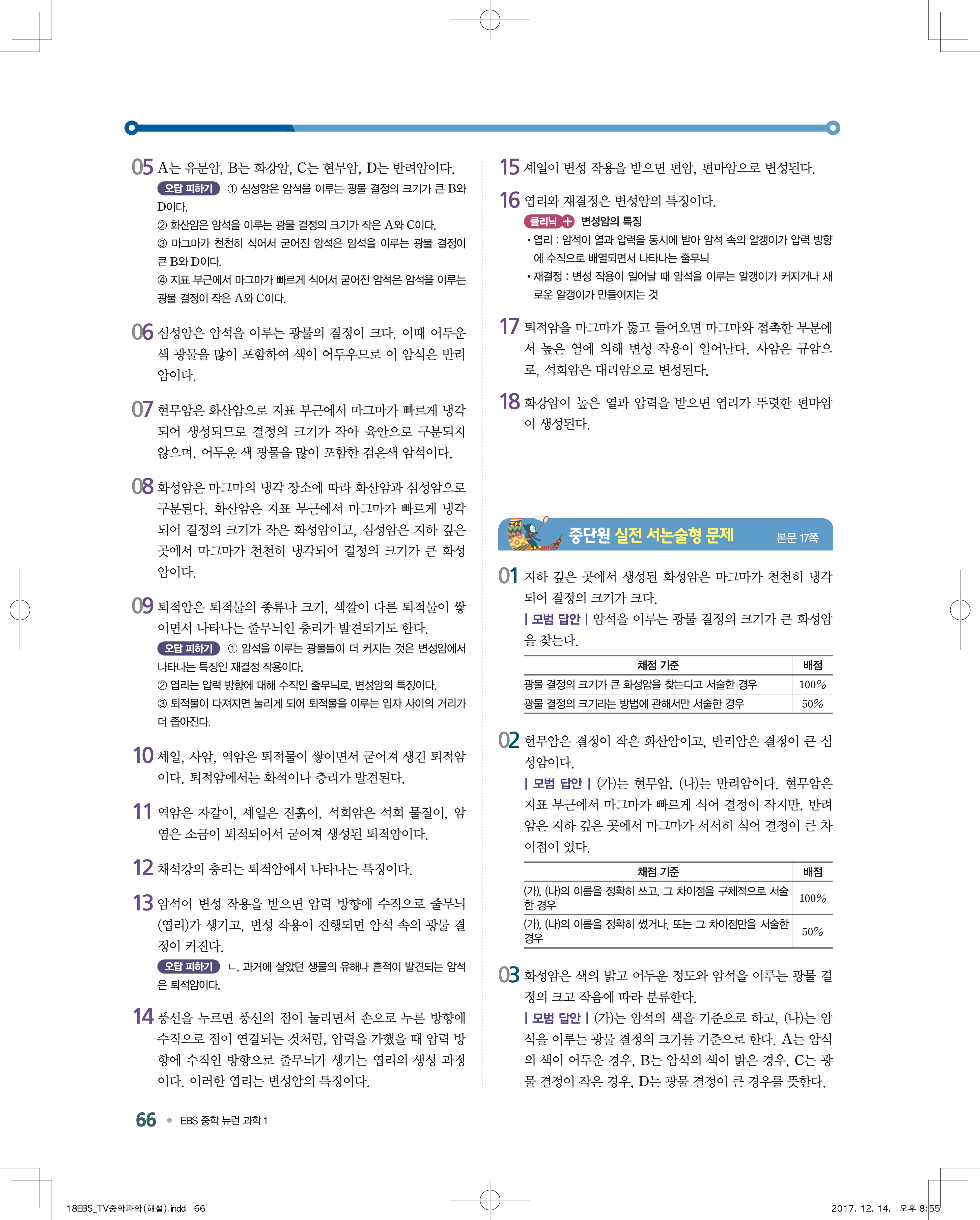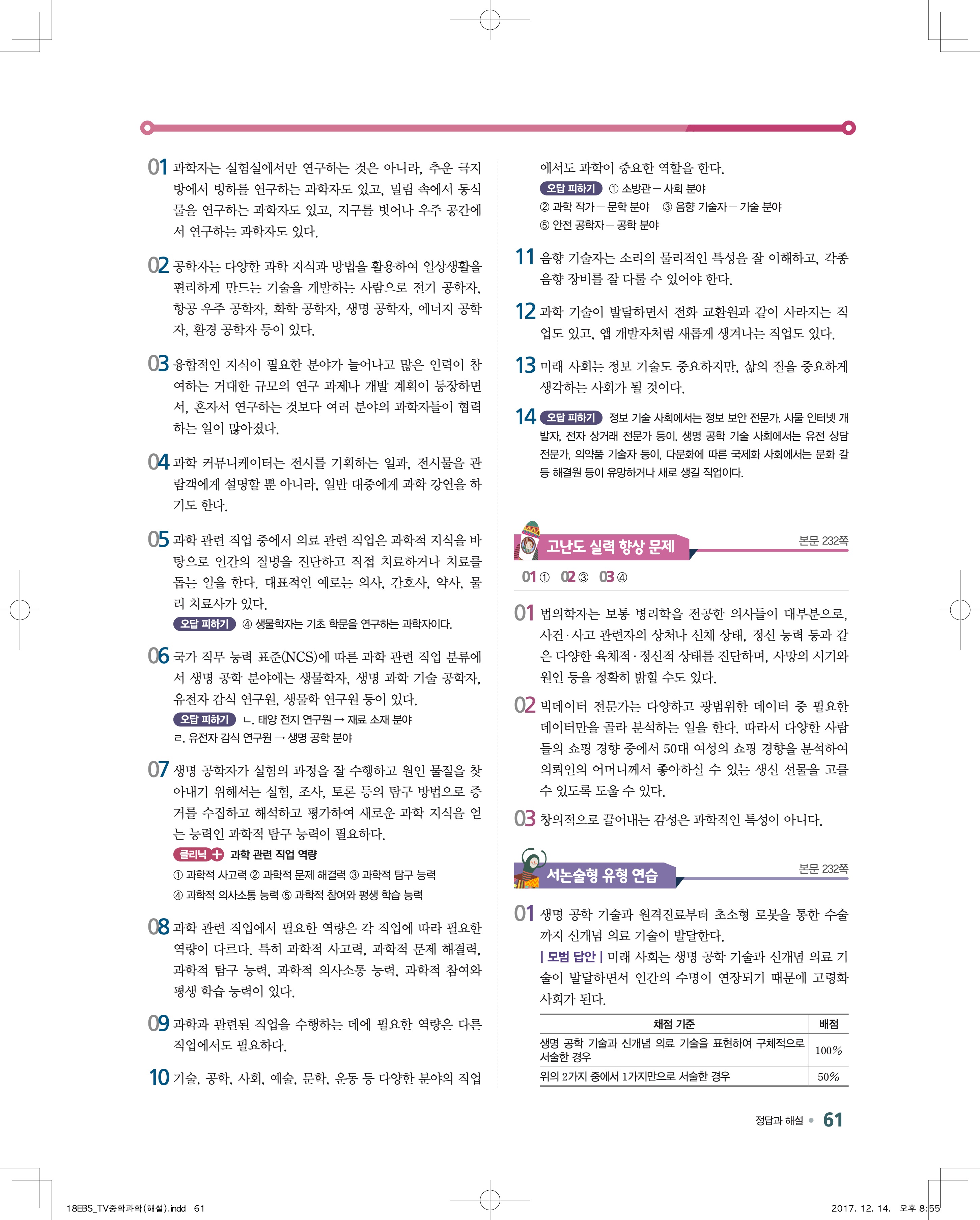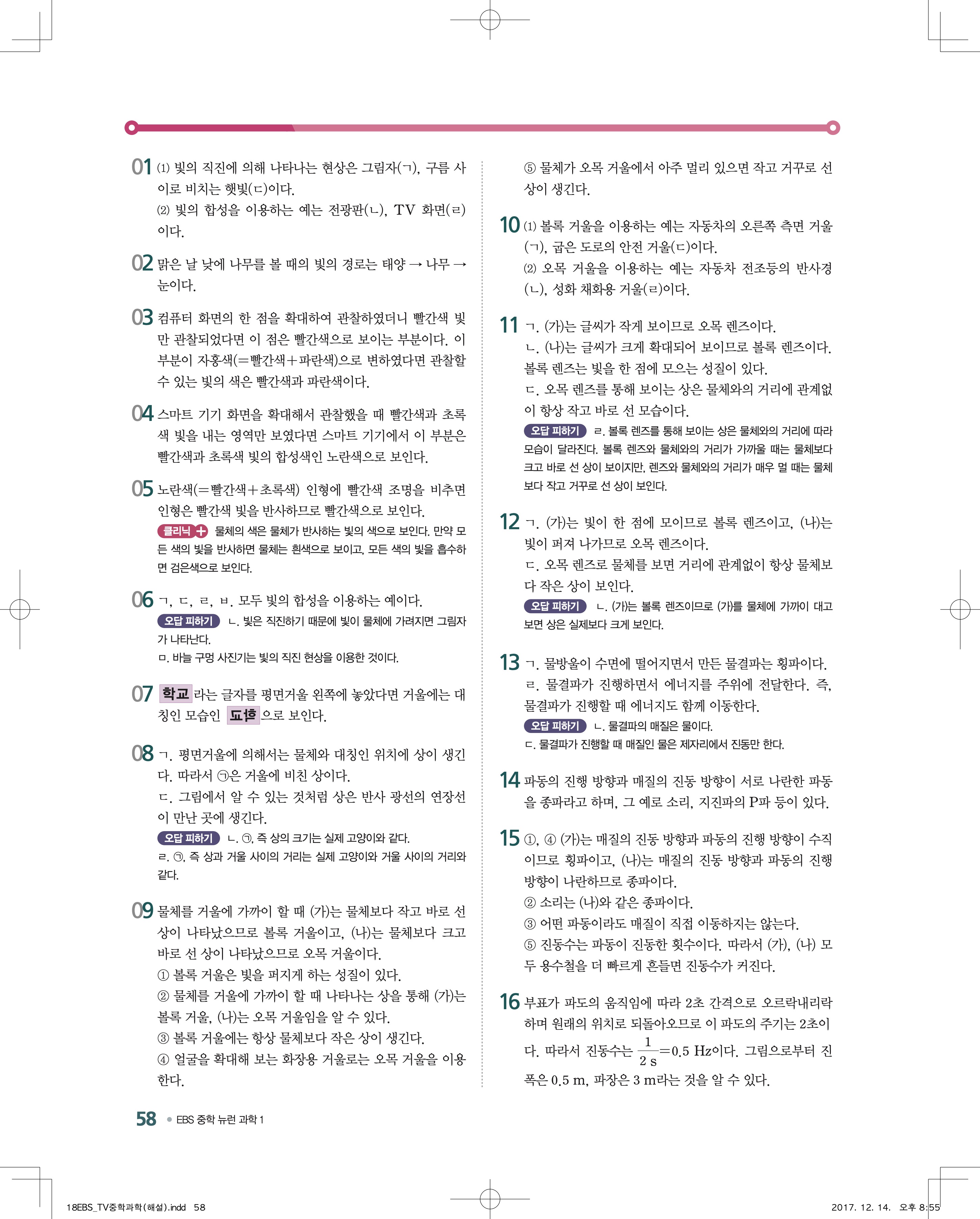 EBS 뉴런 과학1 답지 해설 바로보는 사진답지 빠른답지 모바일최적화