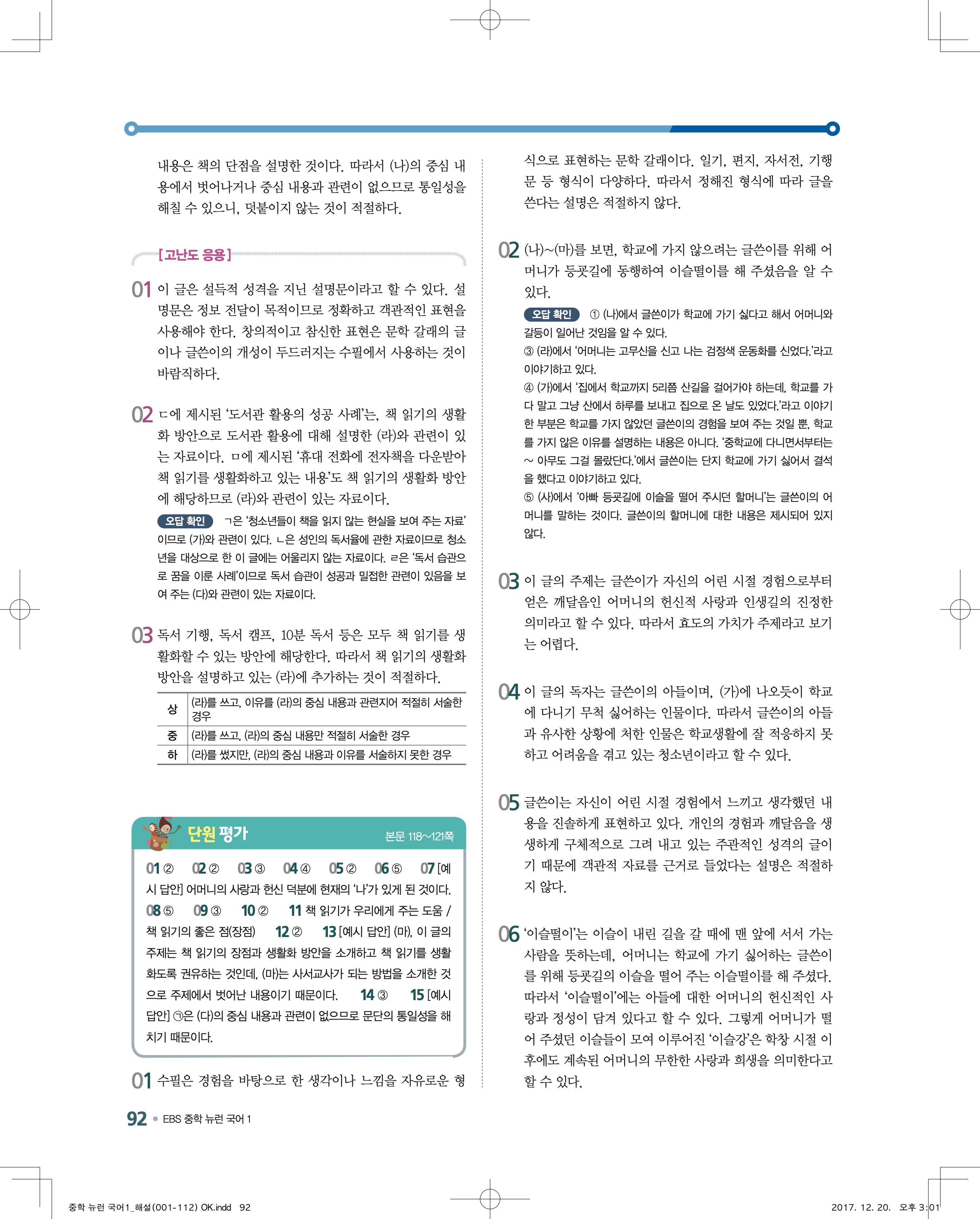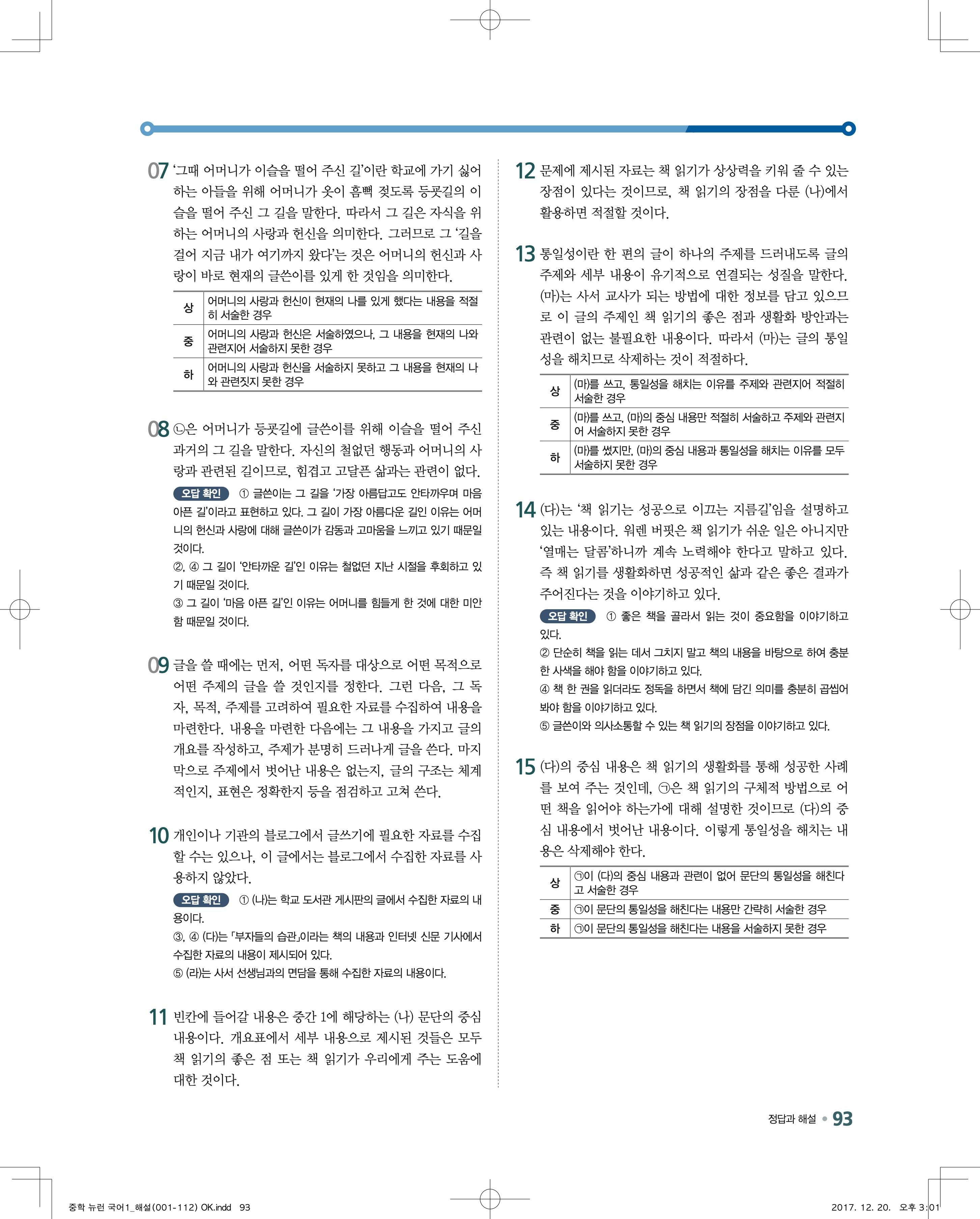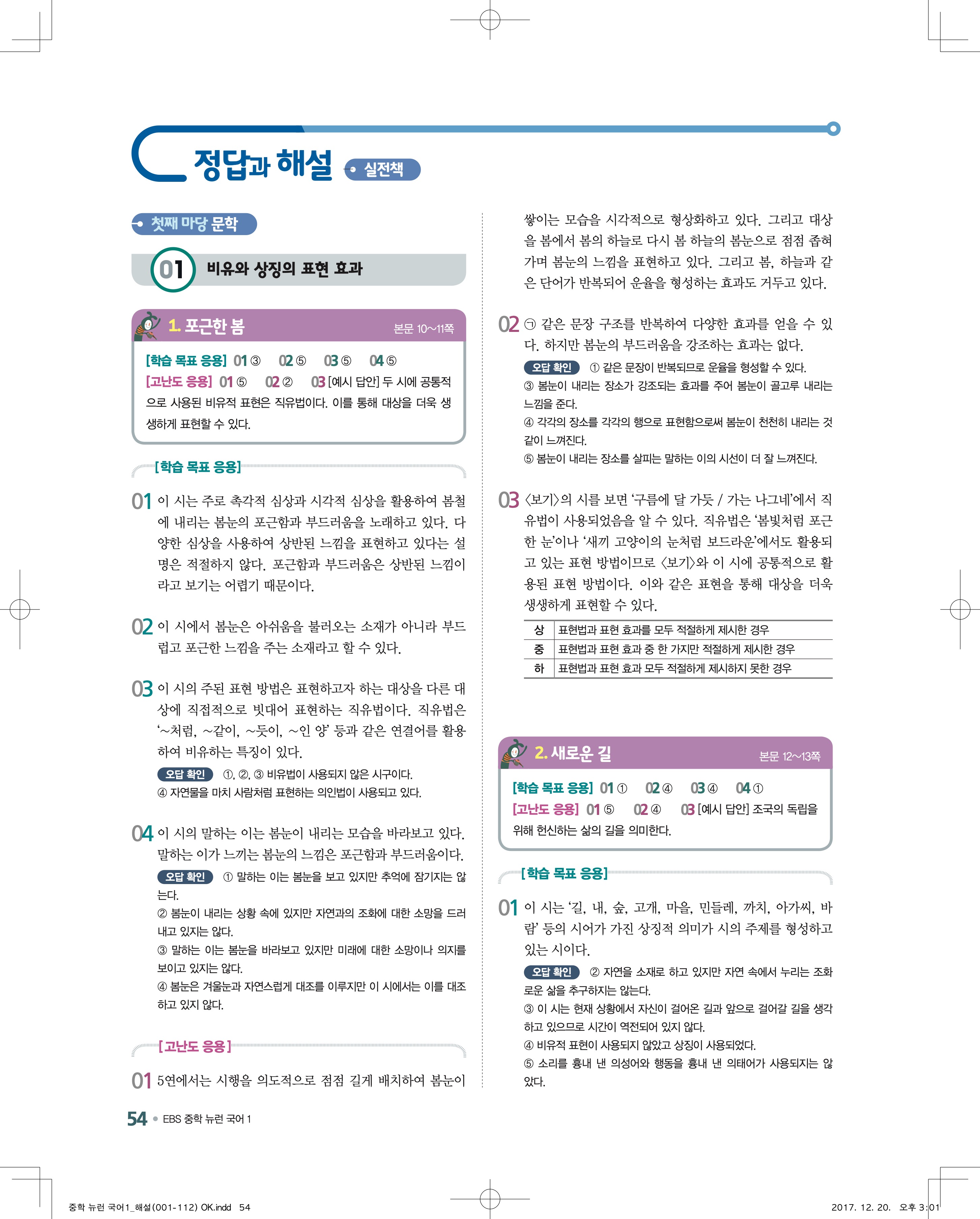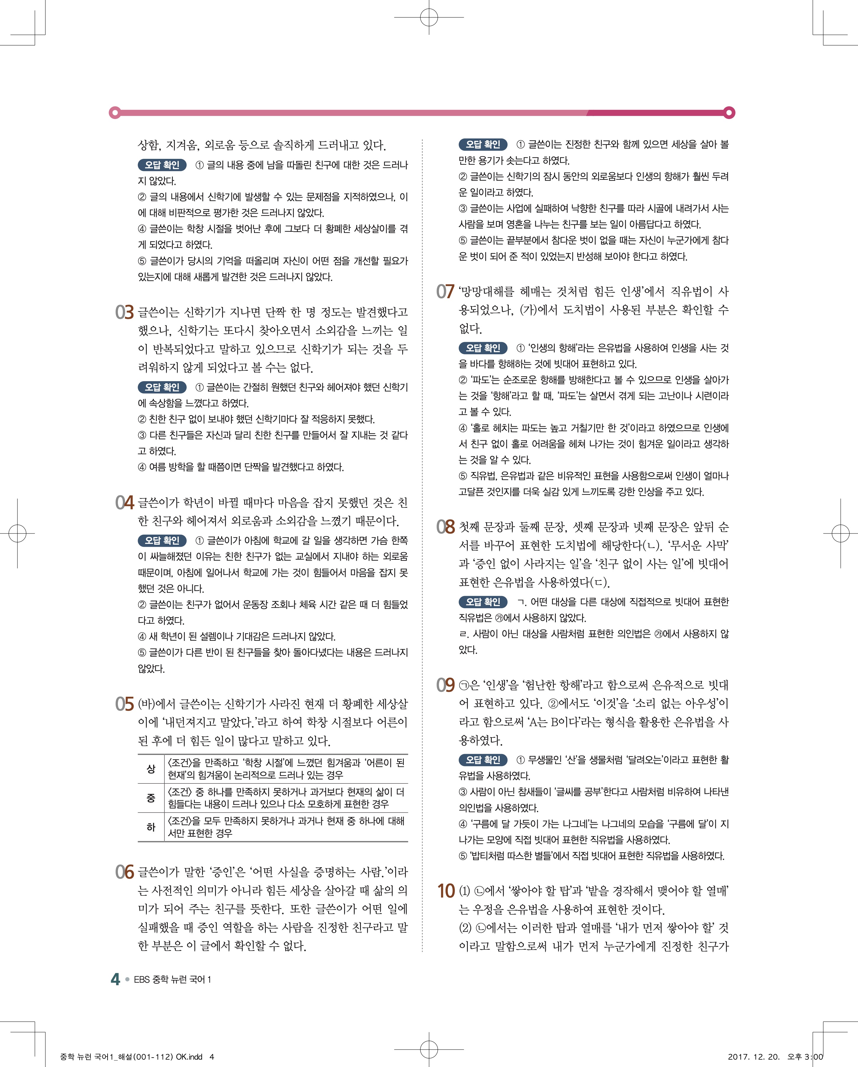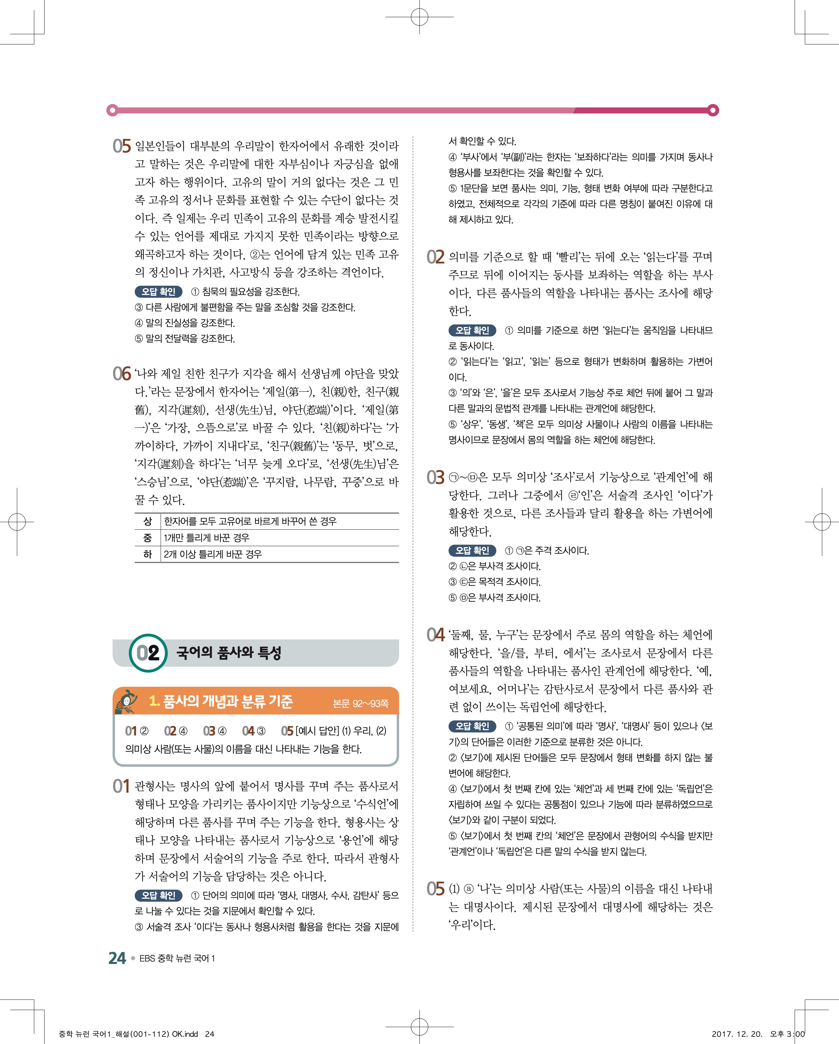EBS 뉴런 국어1 답지 해설 바로보는 사진답지 빠른답지 모바일최적화