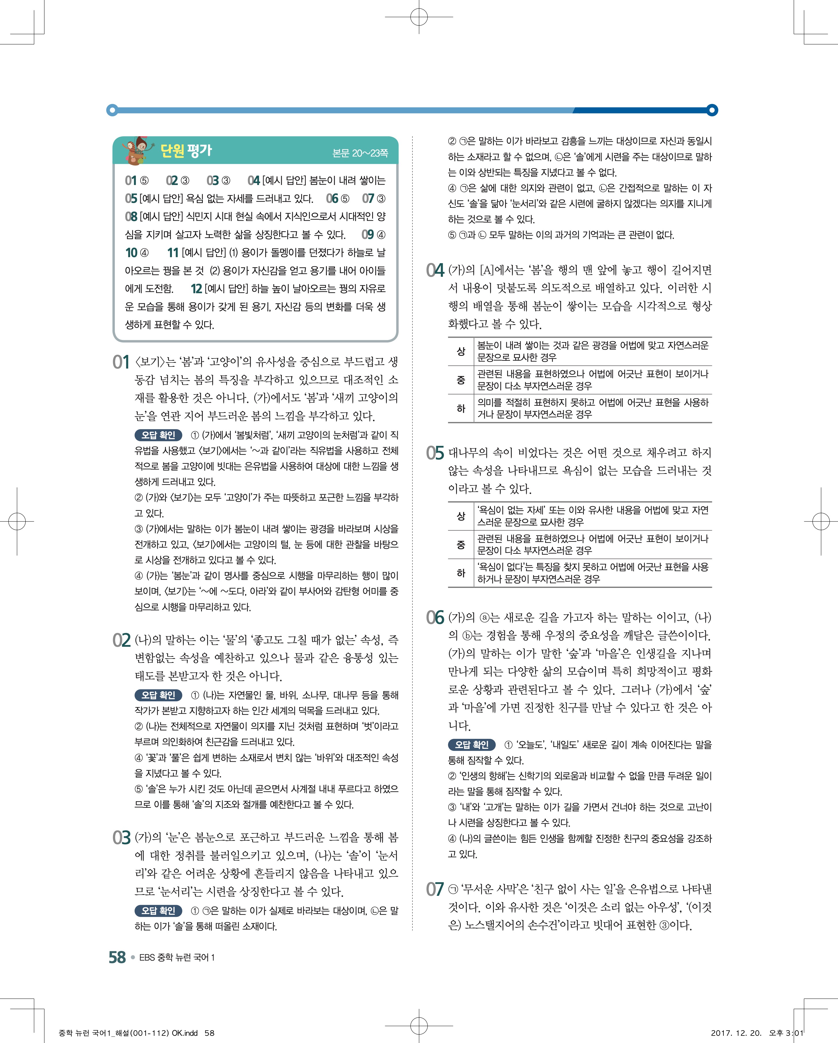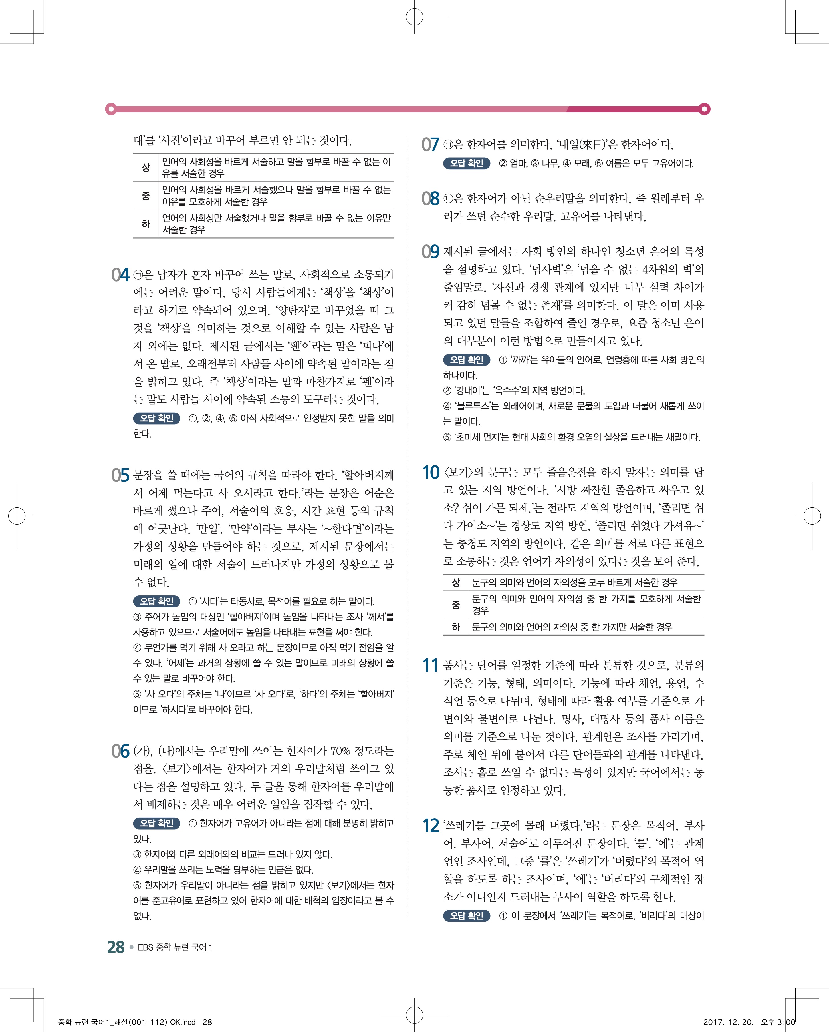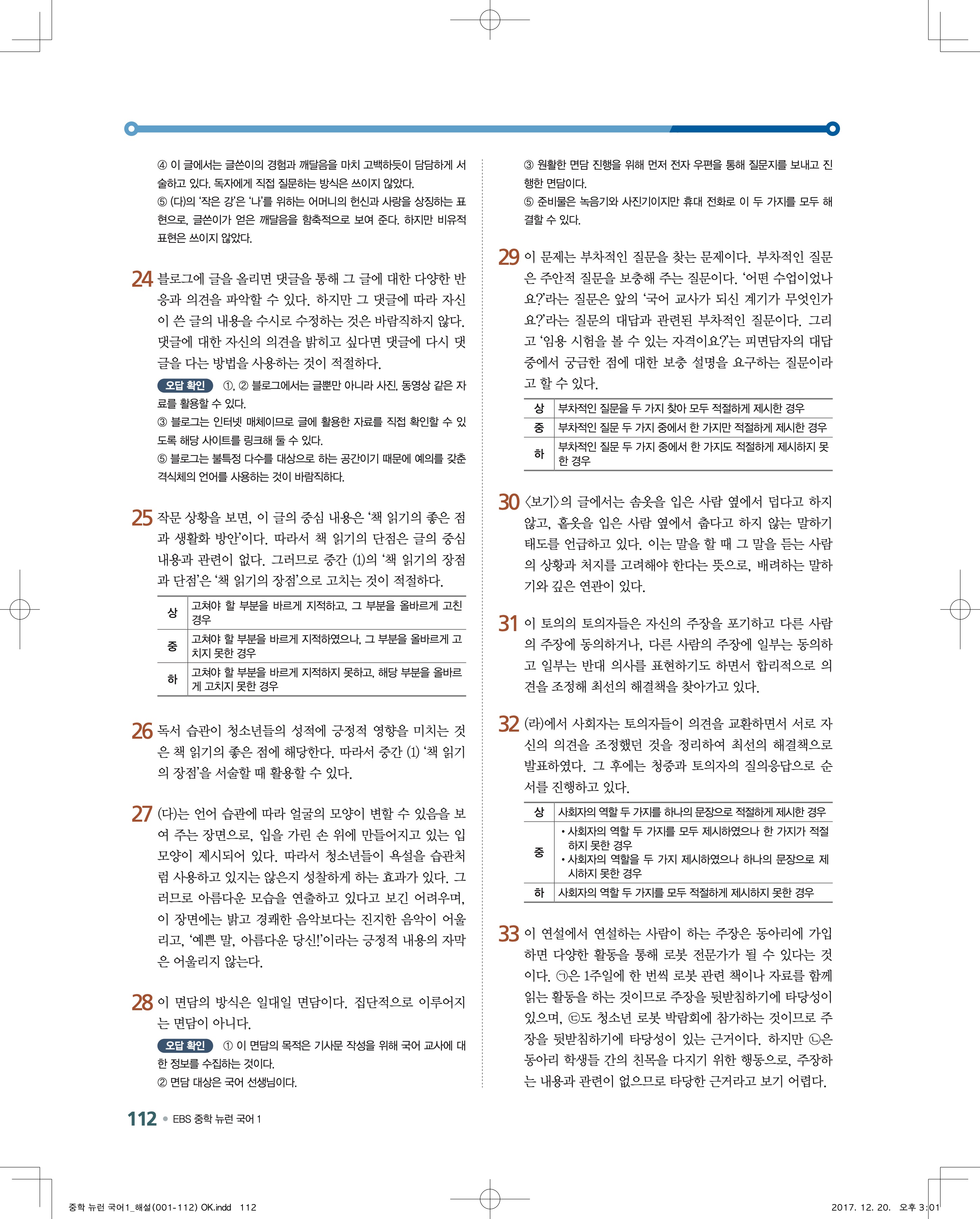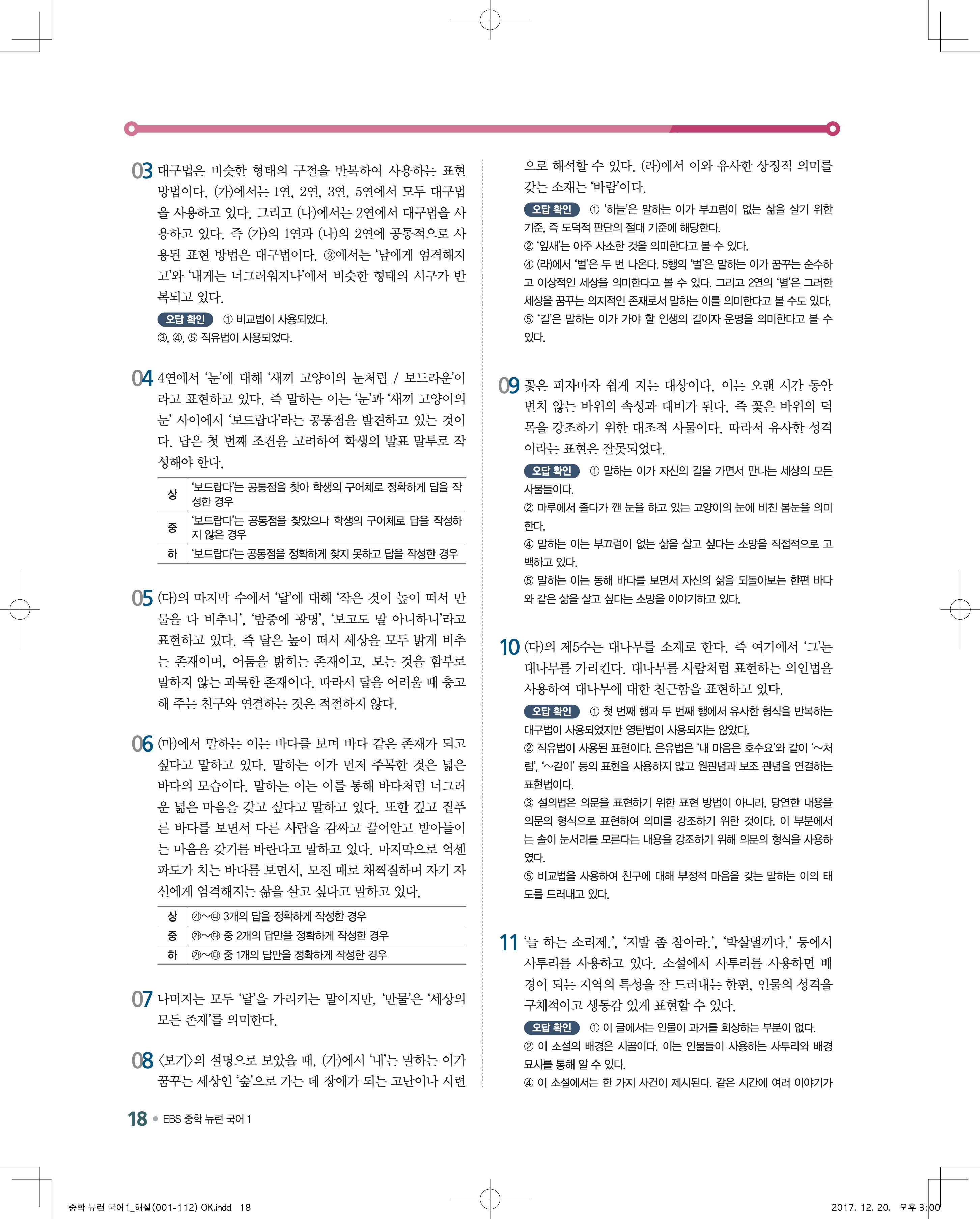 EBS 뉴런 국어1 답지 해설 바로보는 사진답지 빠른답지 모바일최적화