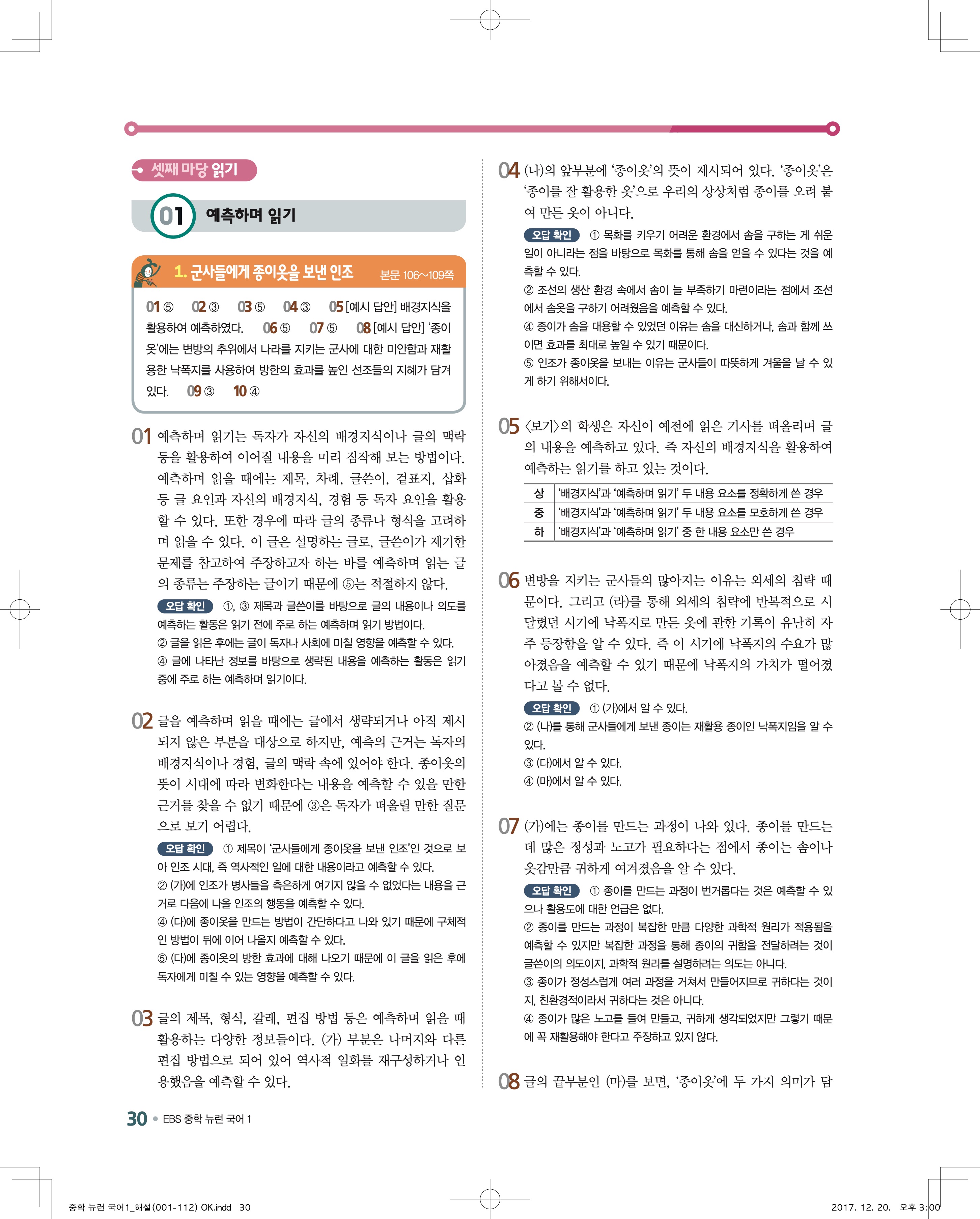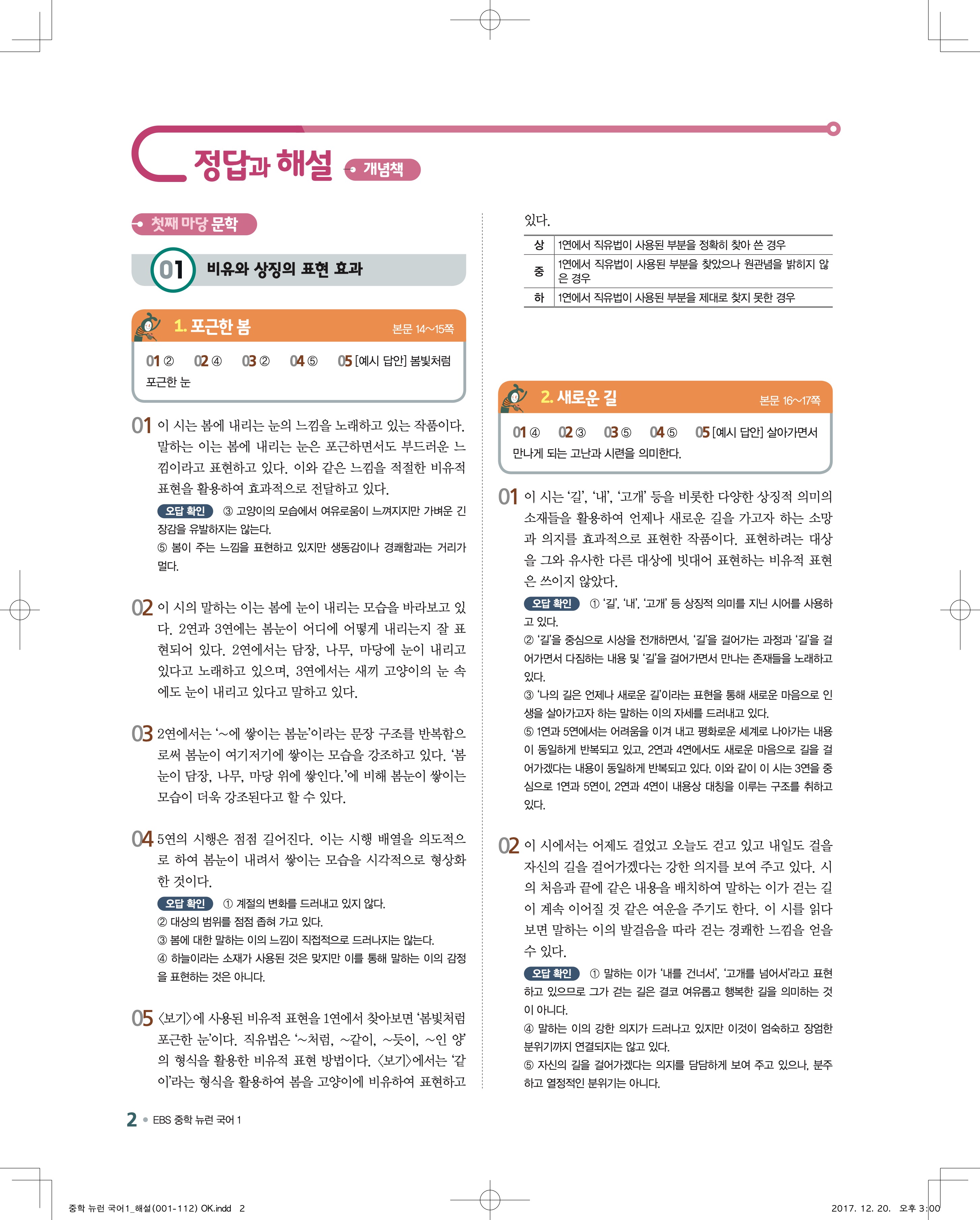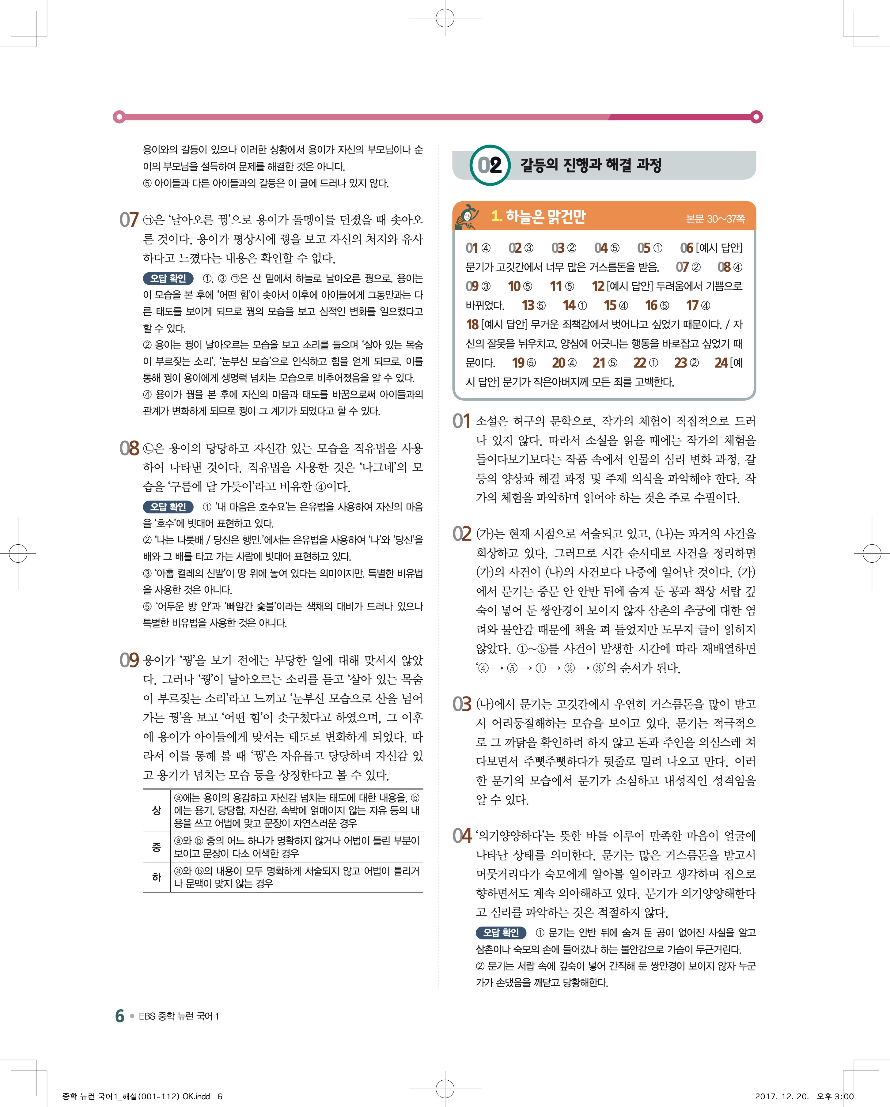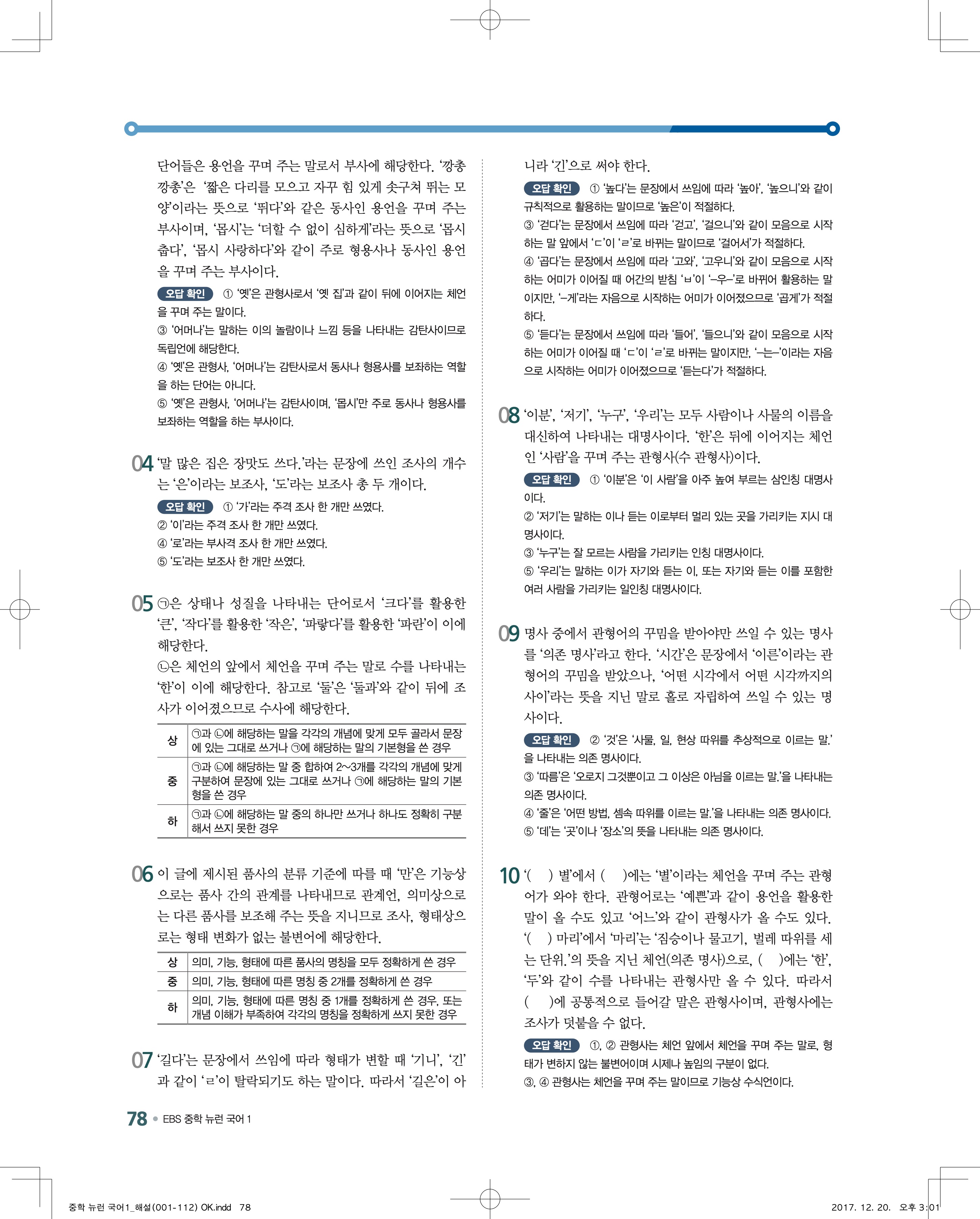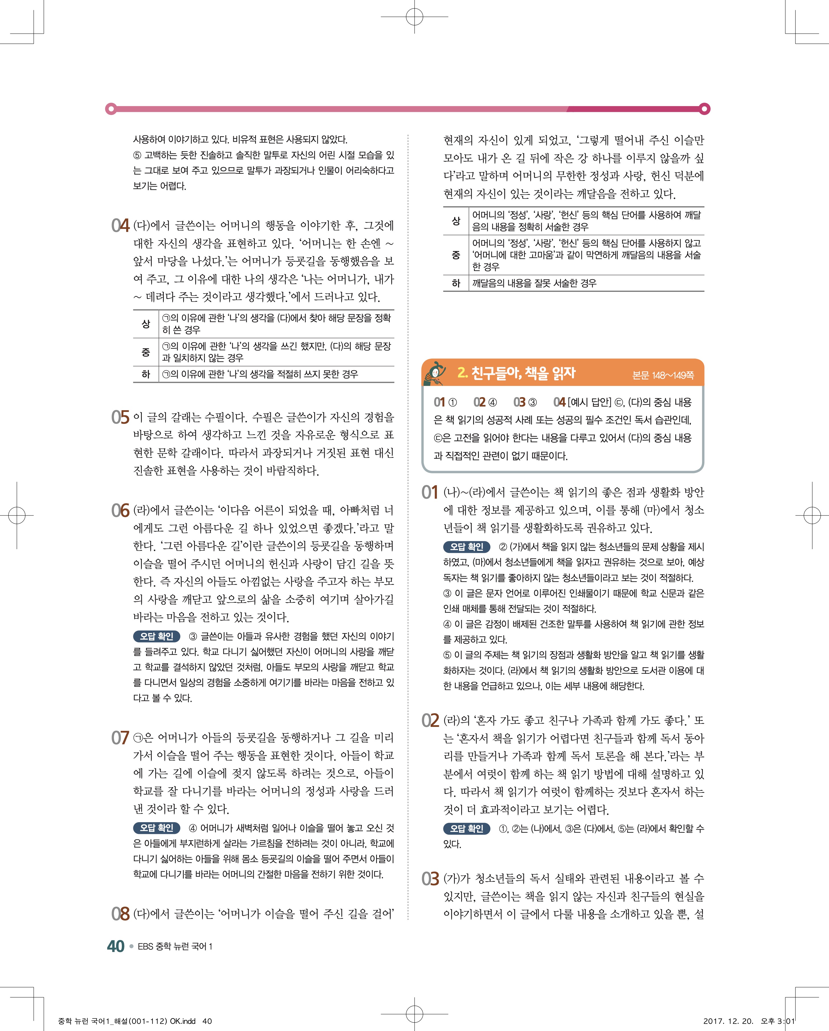 EBS 뉴런 국어1 답지 해설 바로보는 사진답지 빠른답지 모바일최적화