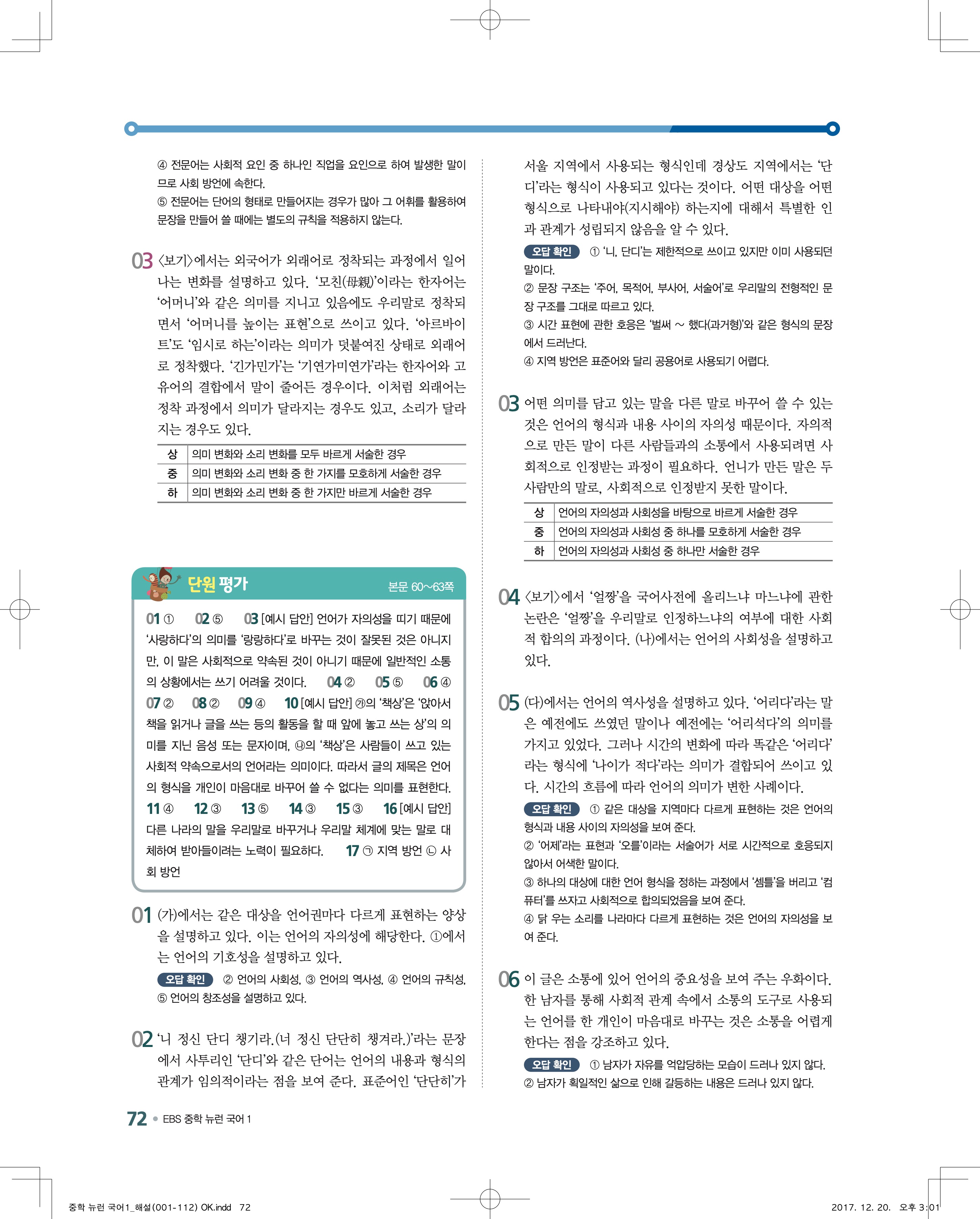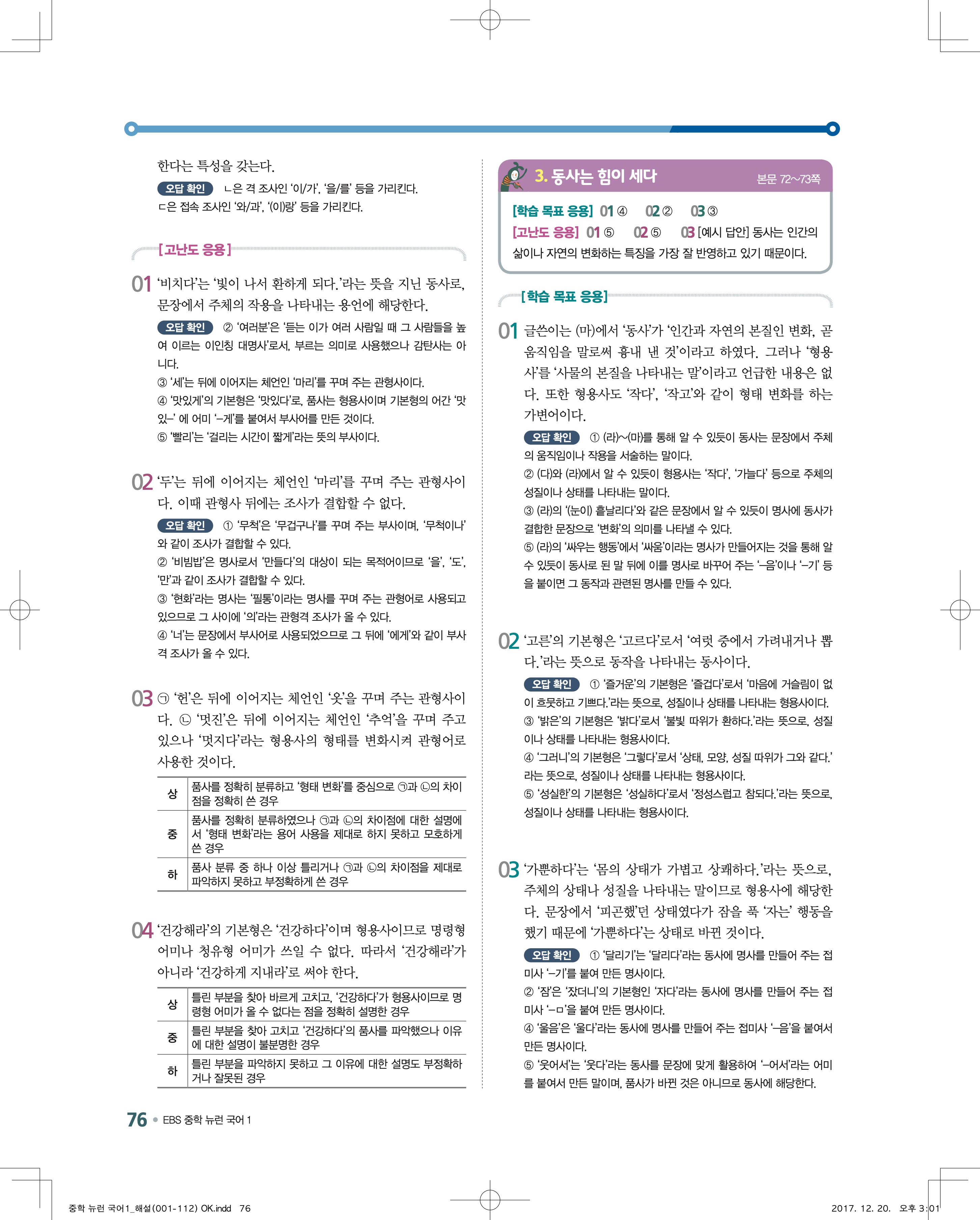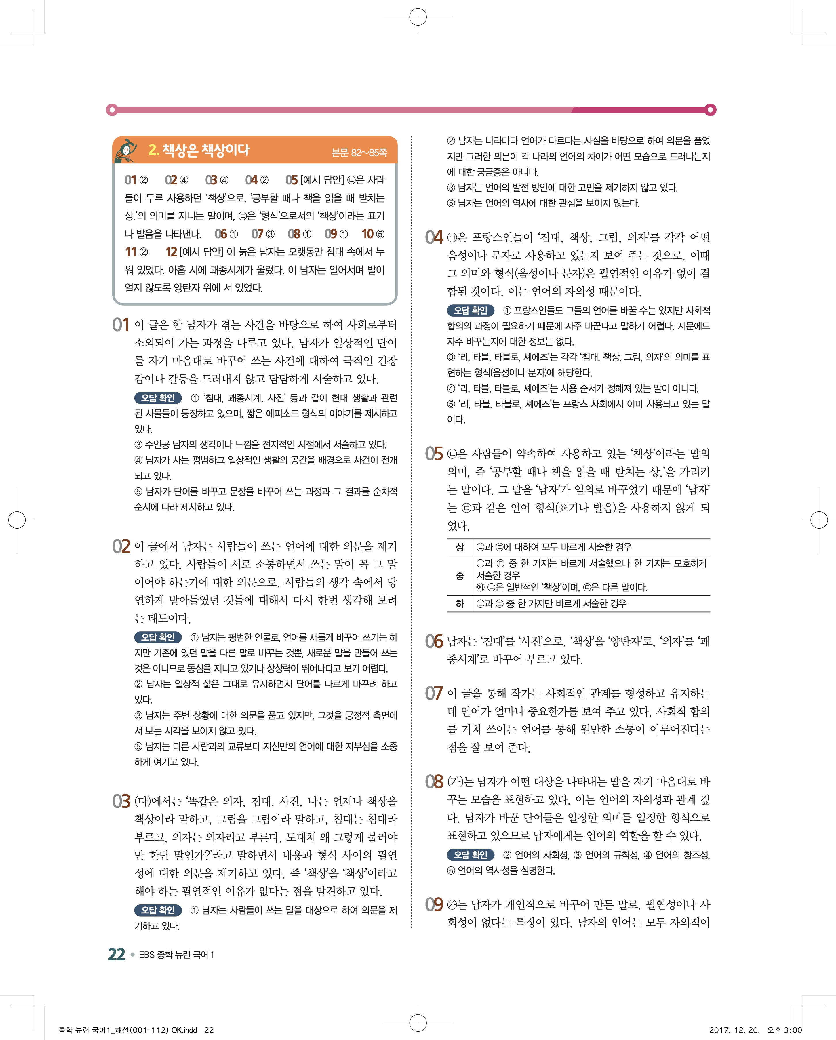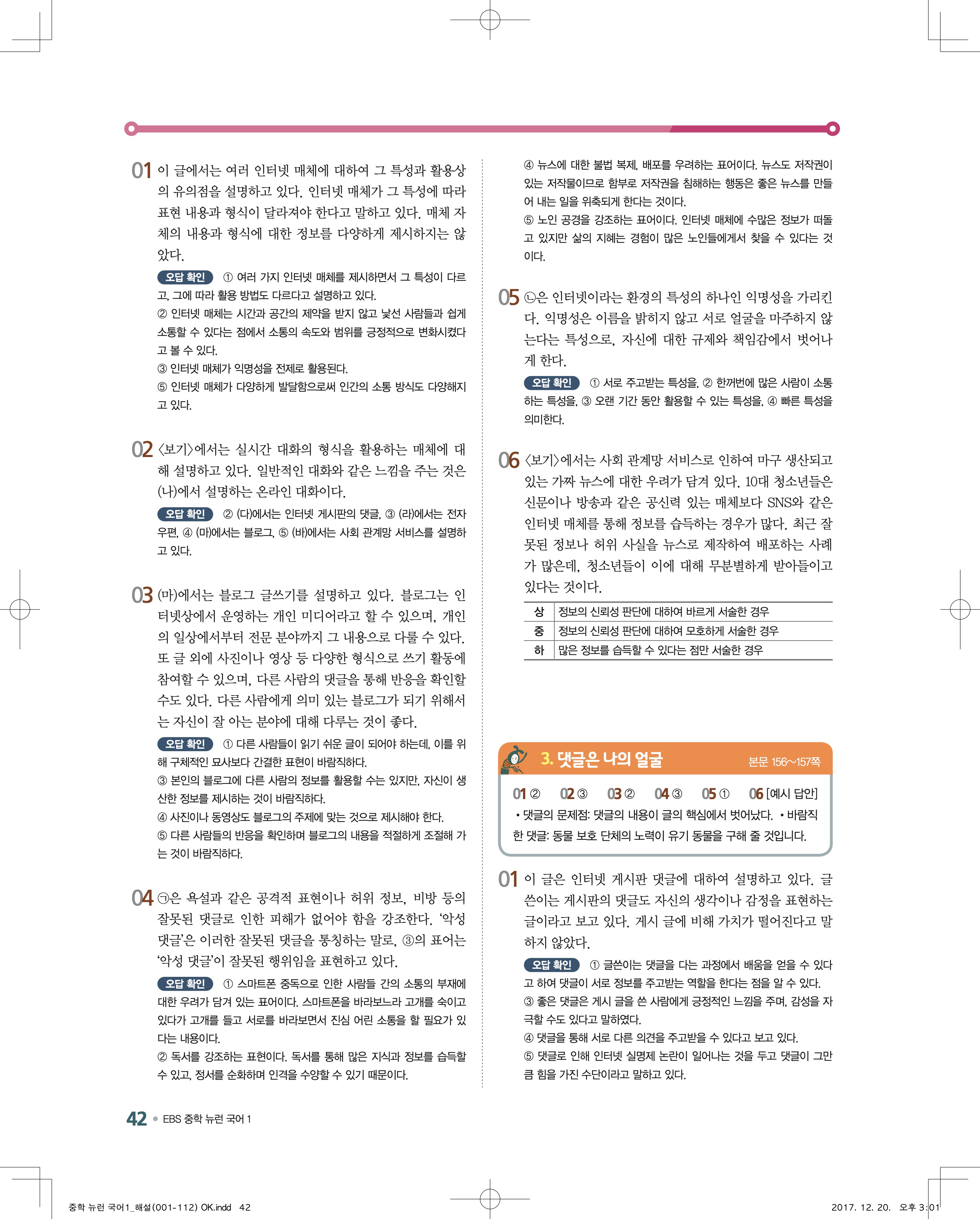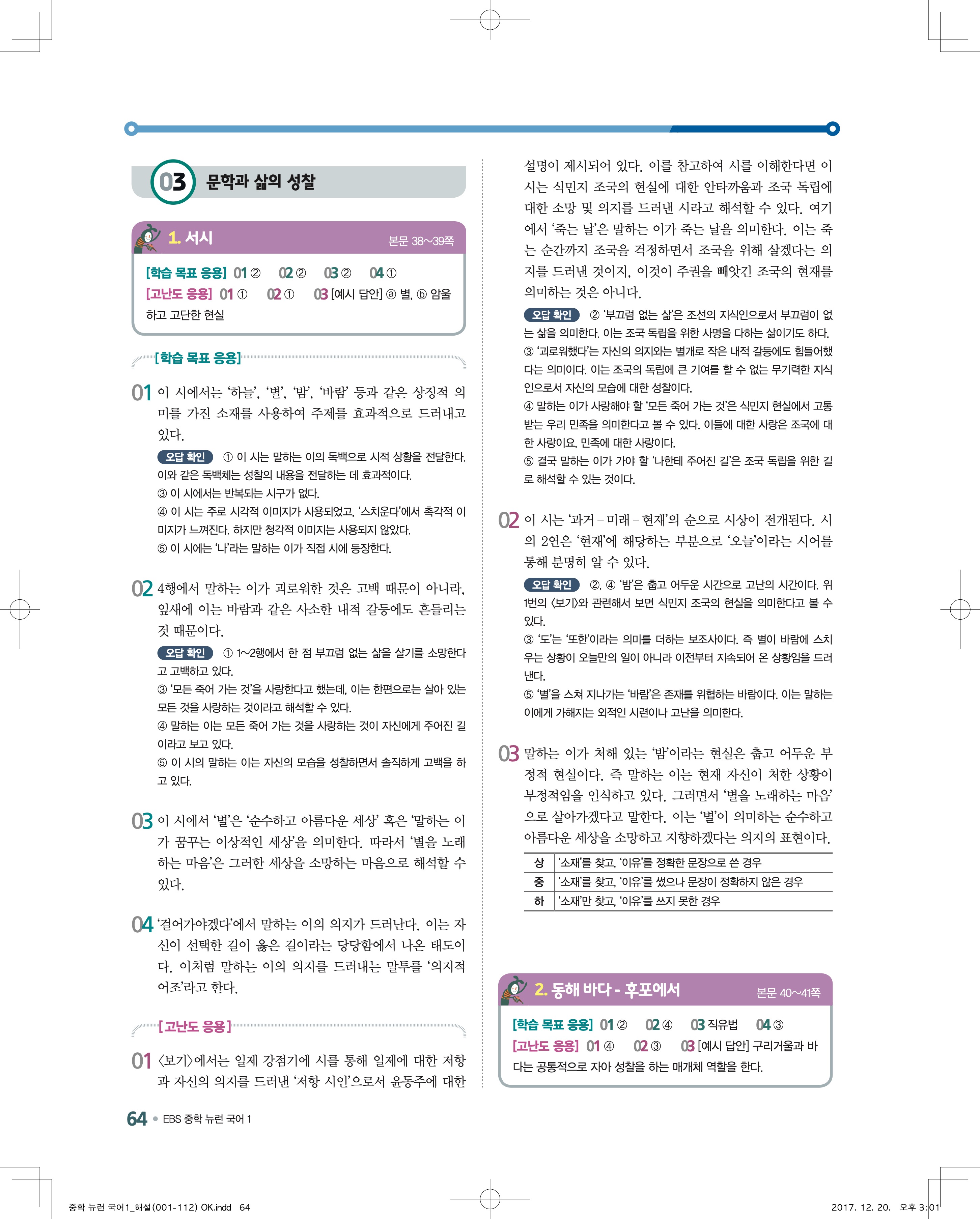 EBS 뉴런 국어1 답지 해설 바로보는 사진답지 빠른답지 모바일최적화