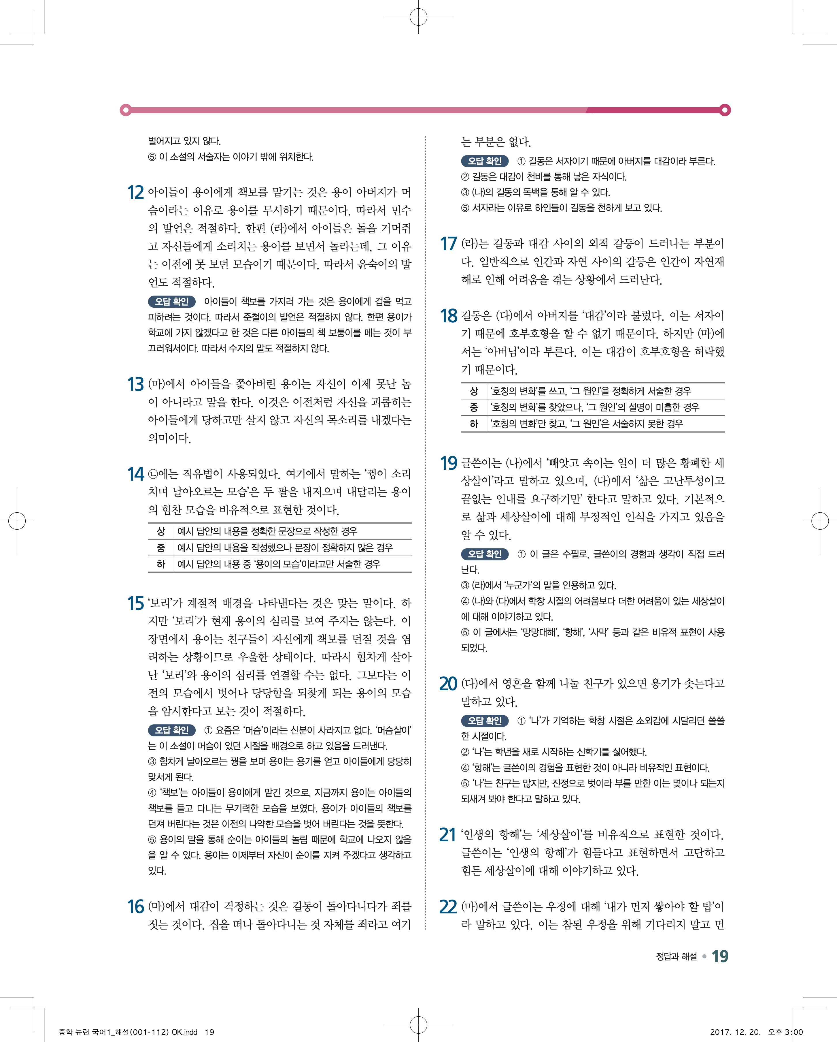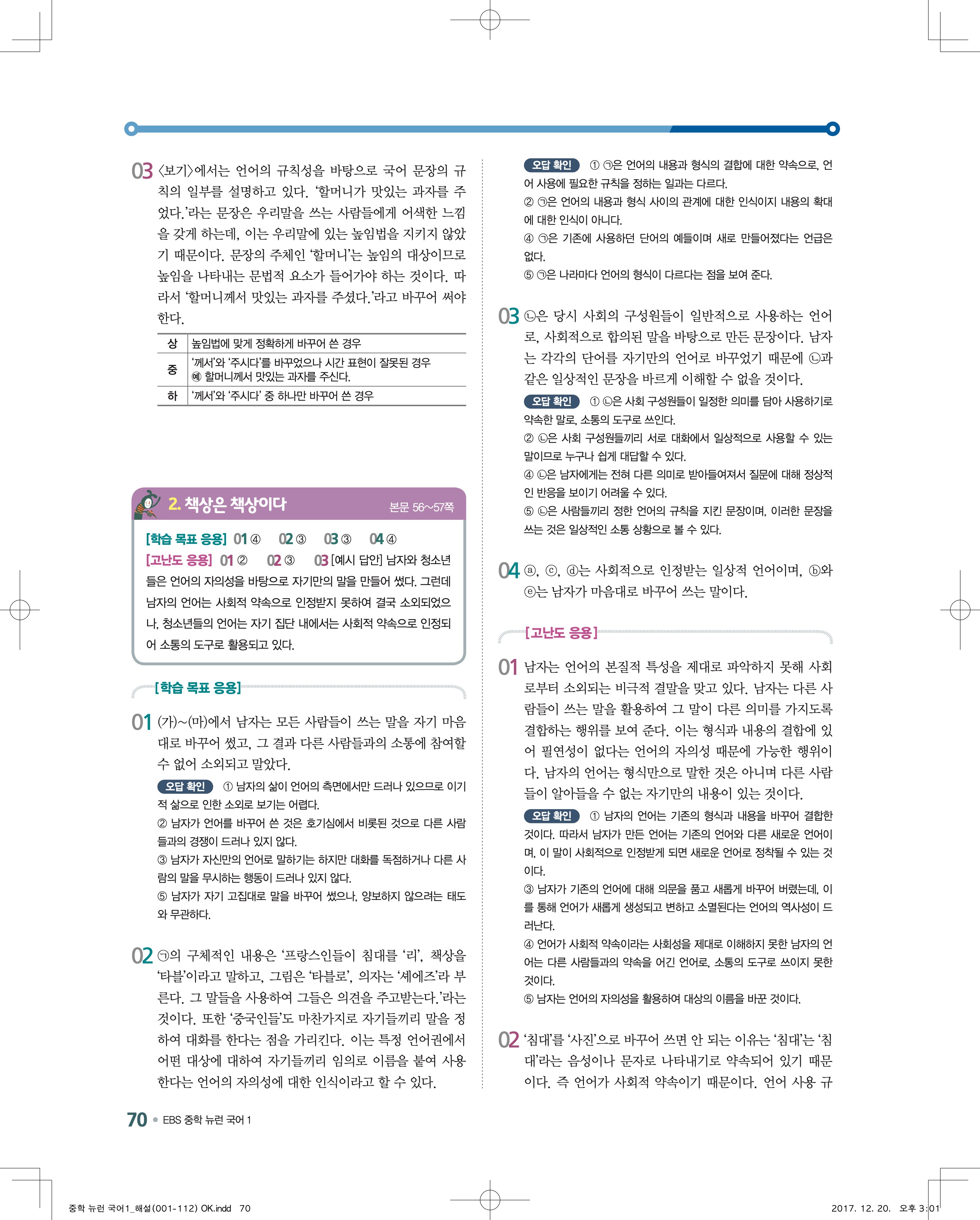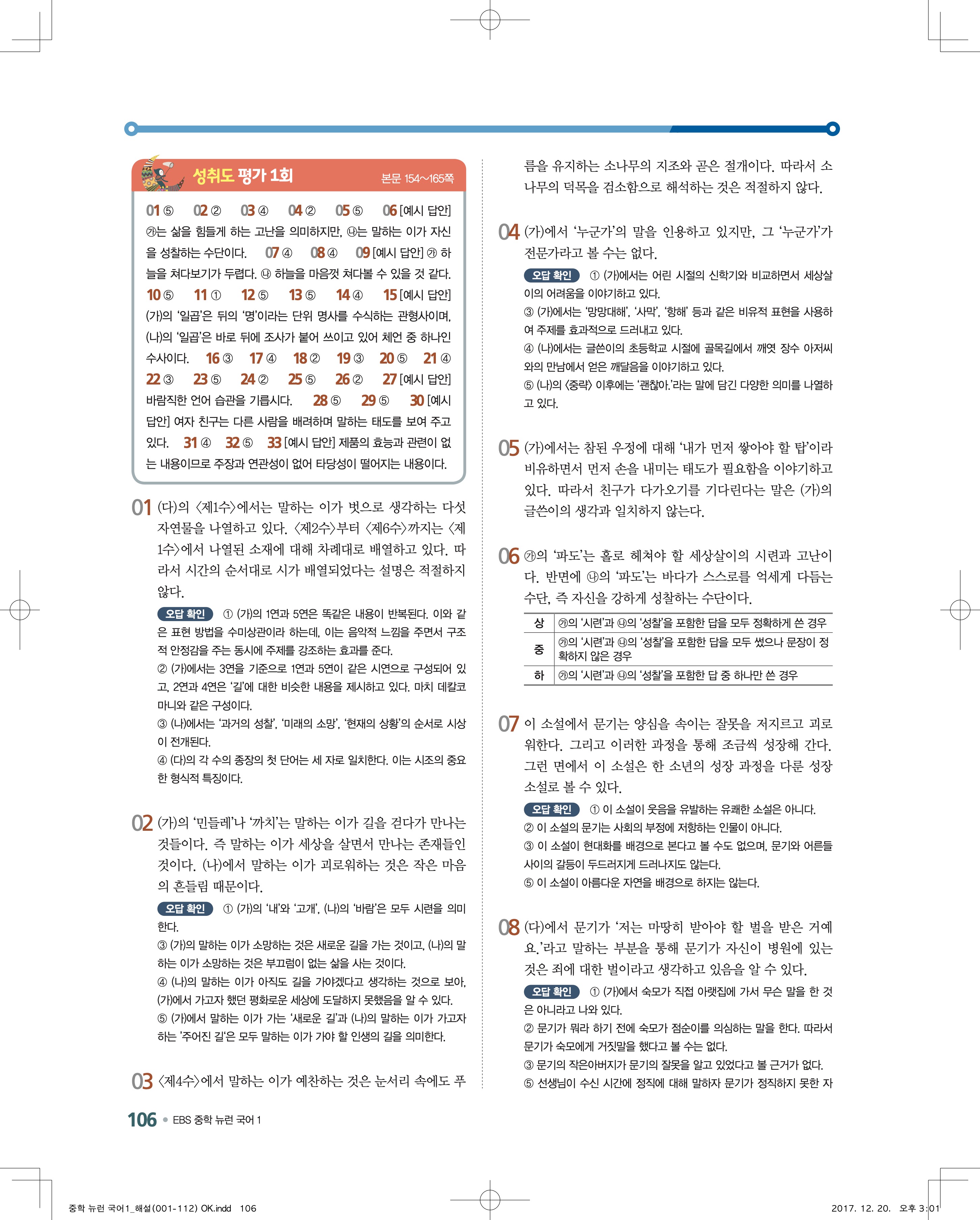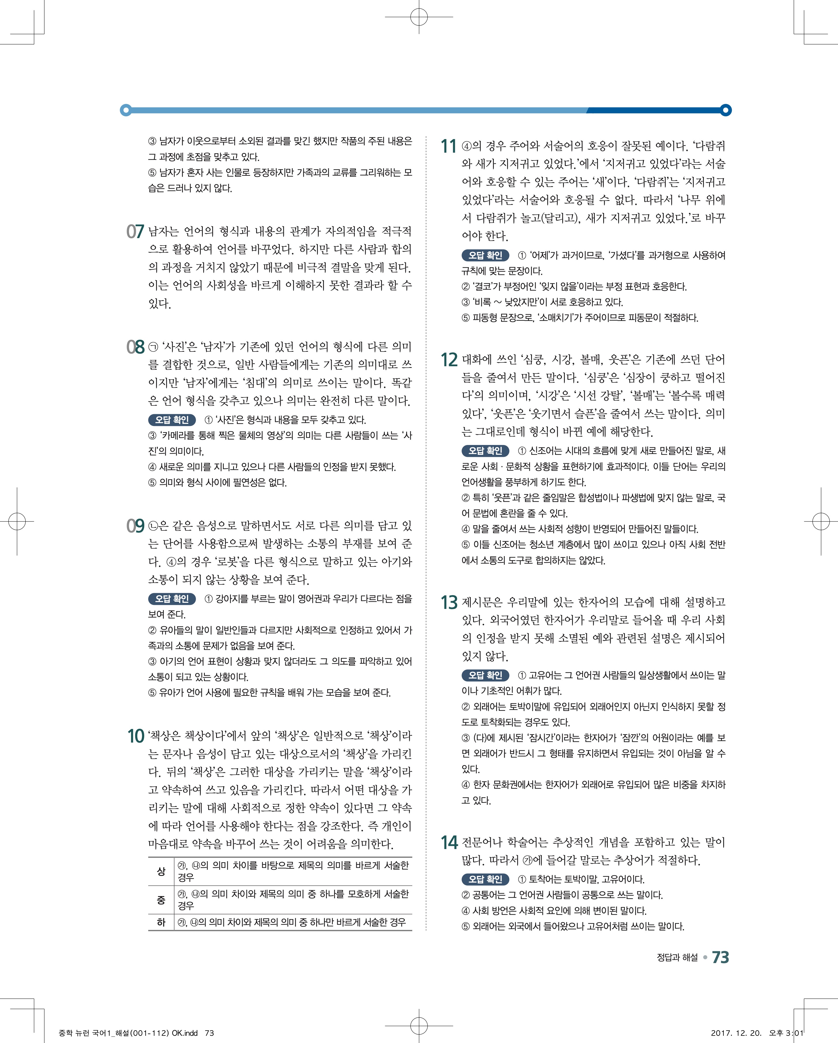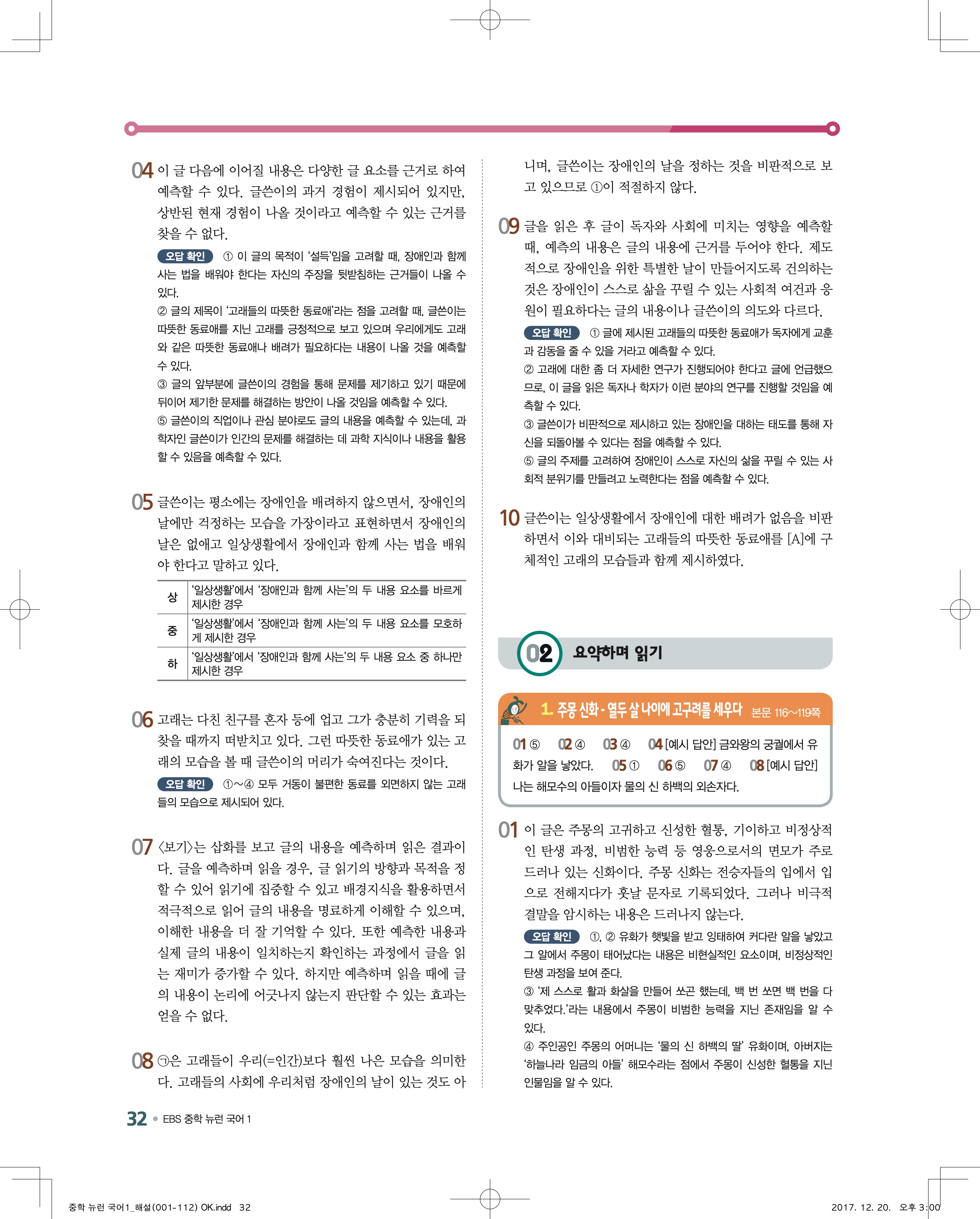 EBS 뉴런 국어1 답지 해설 바로보는 사진답지 빠른답지 모바일최적화