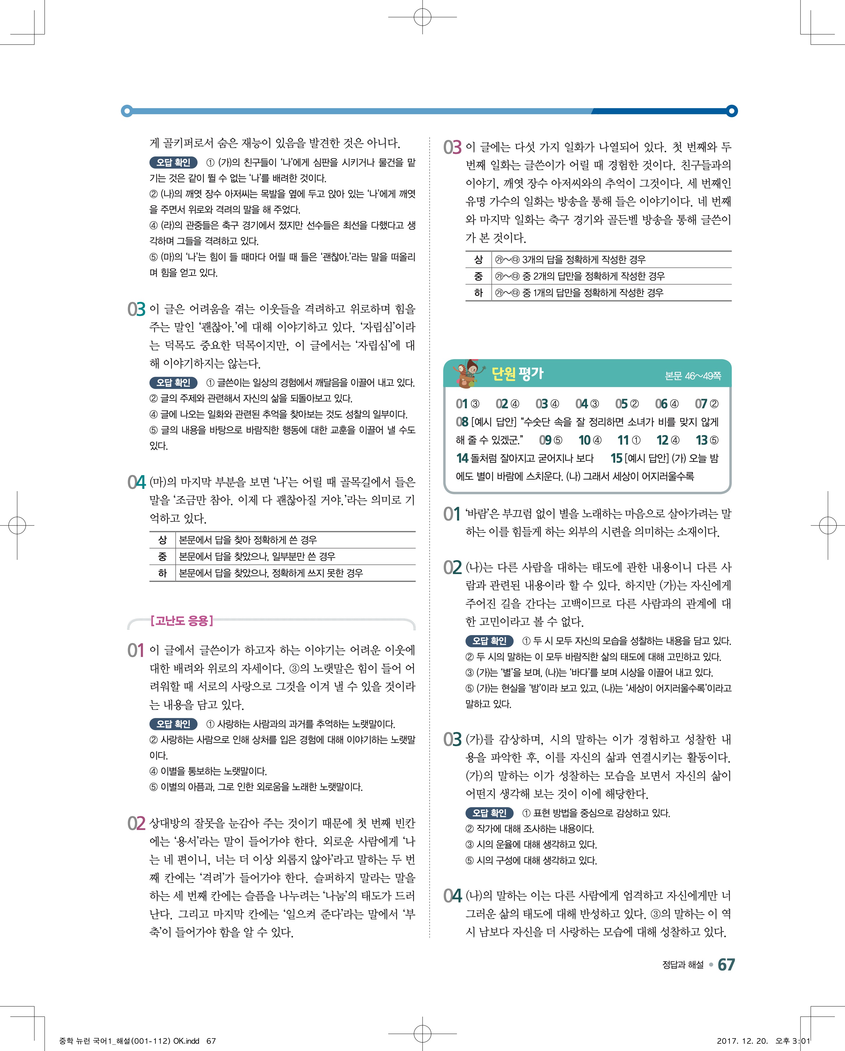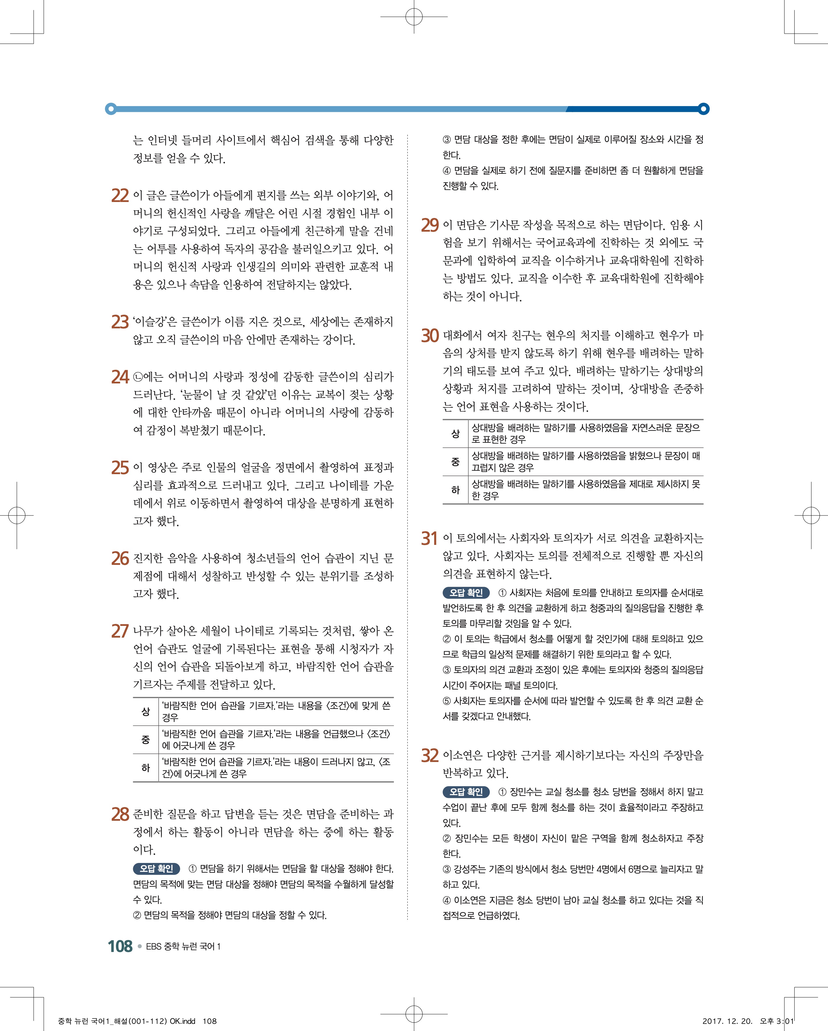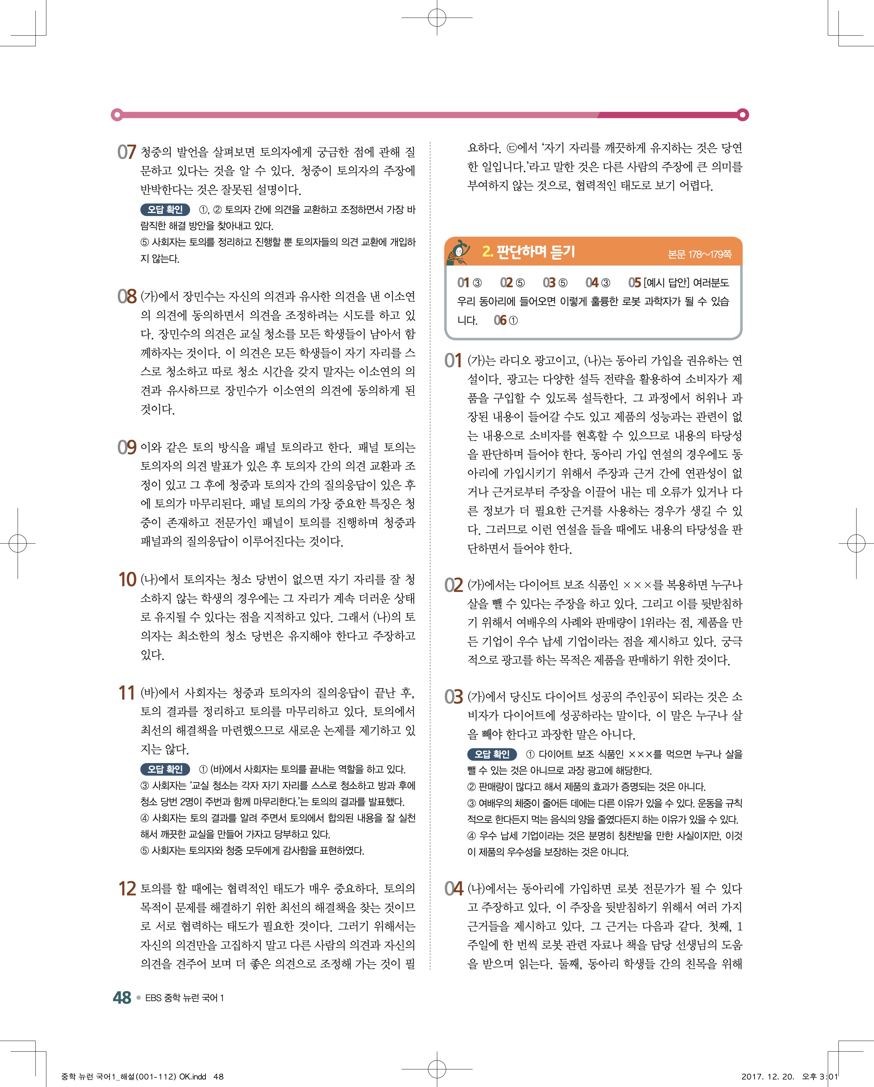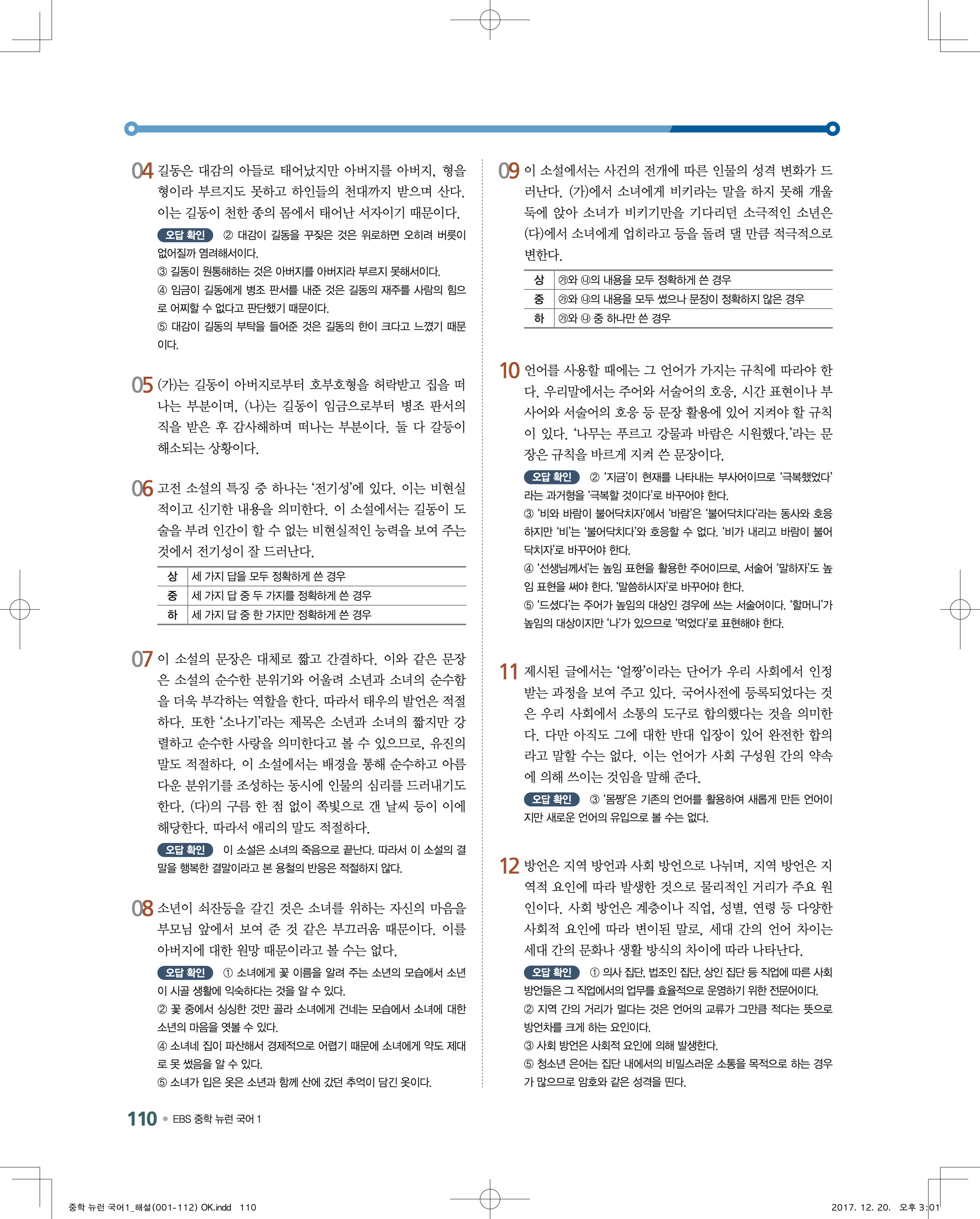 EBS 뉴런 국어1 답지 해설 바로보는 사진답지 빠른답지 모바일최적화