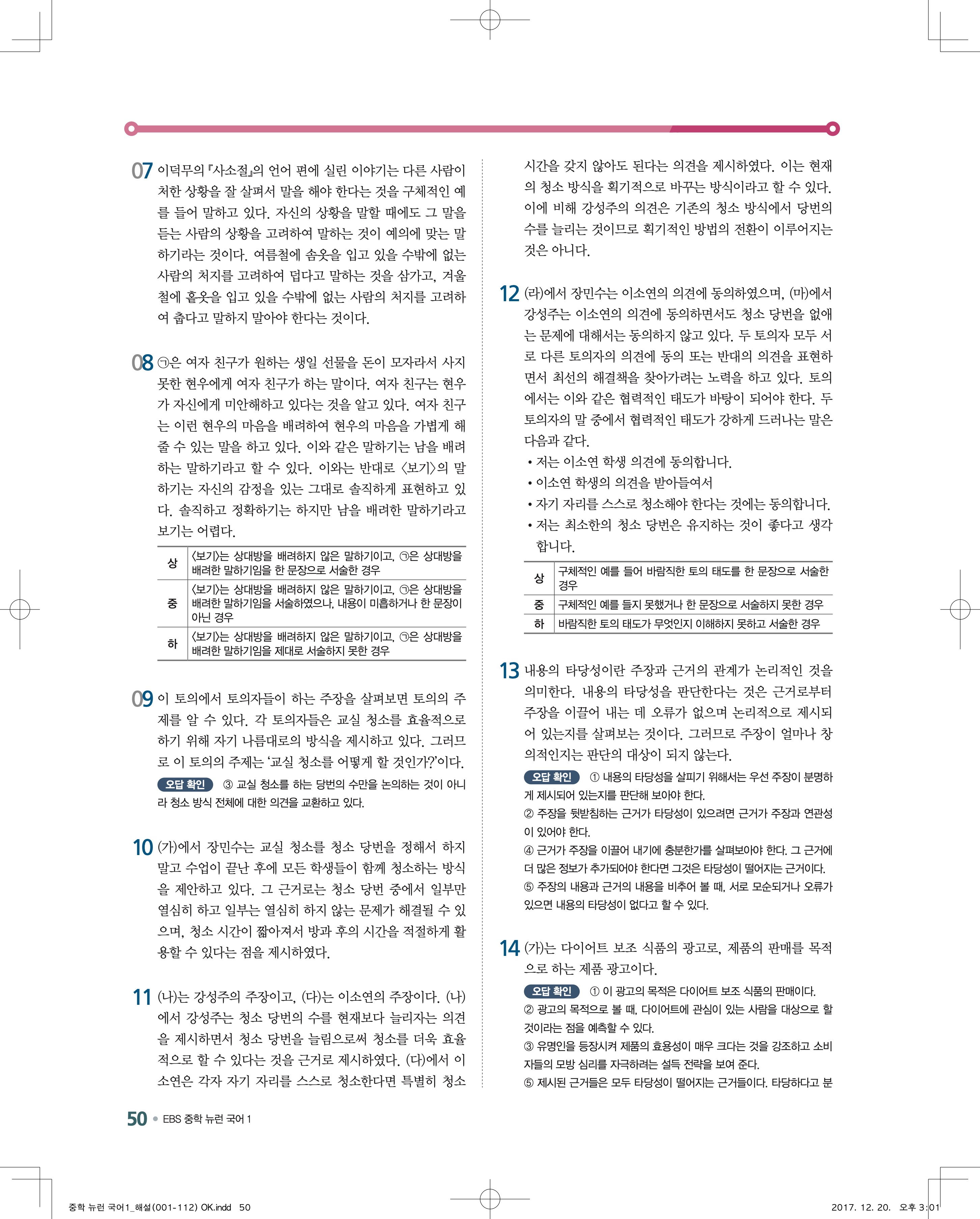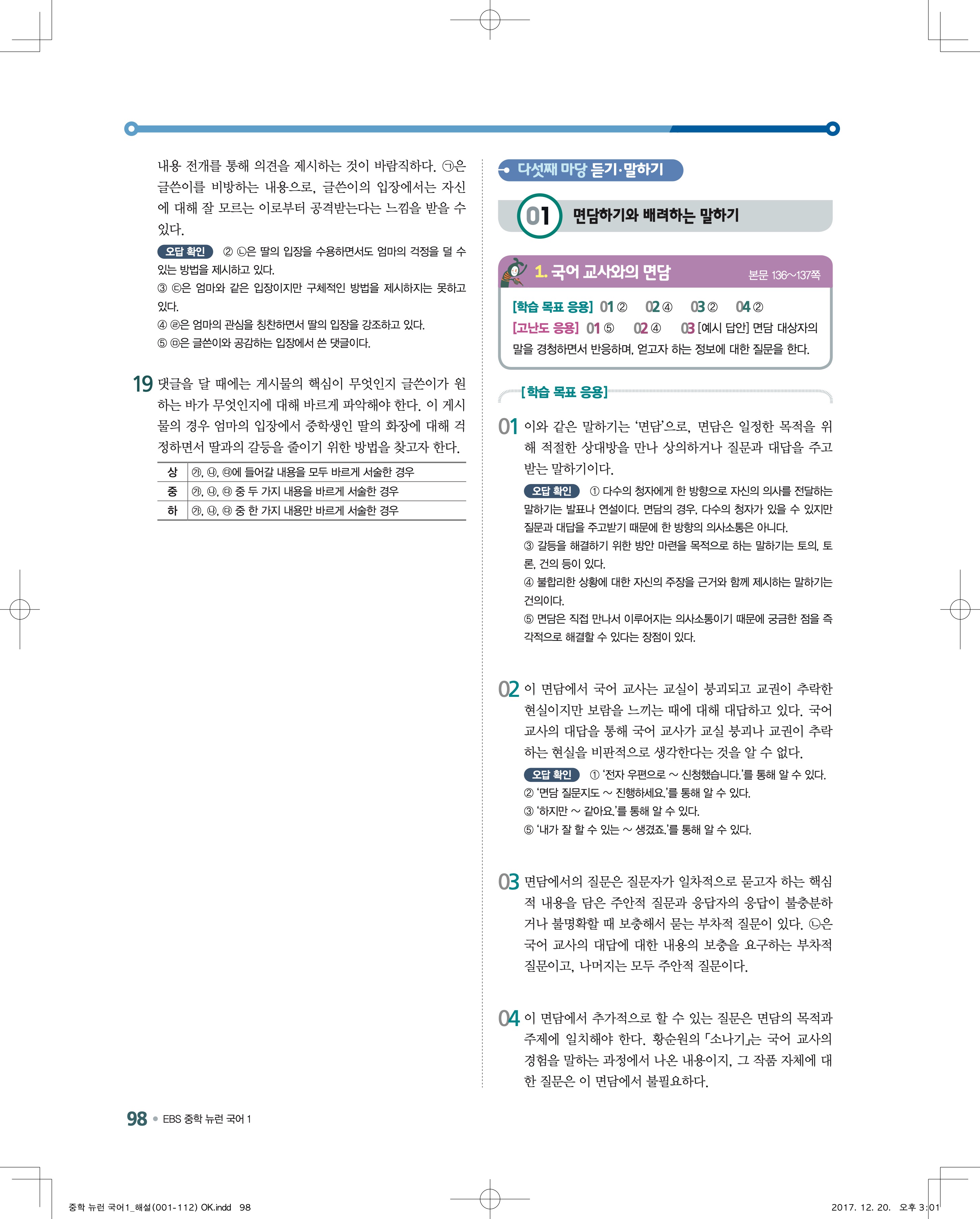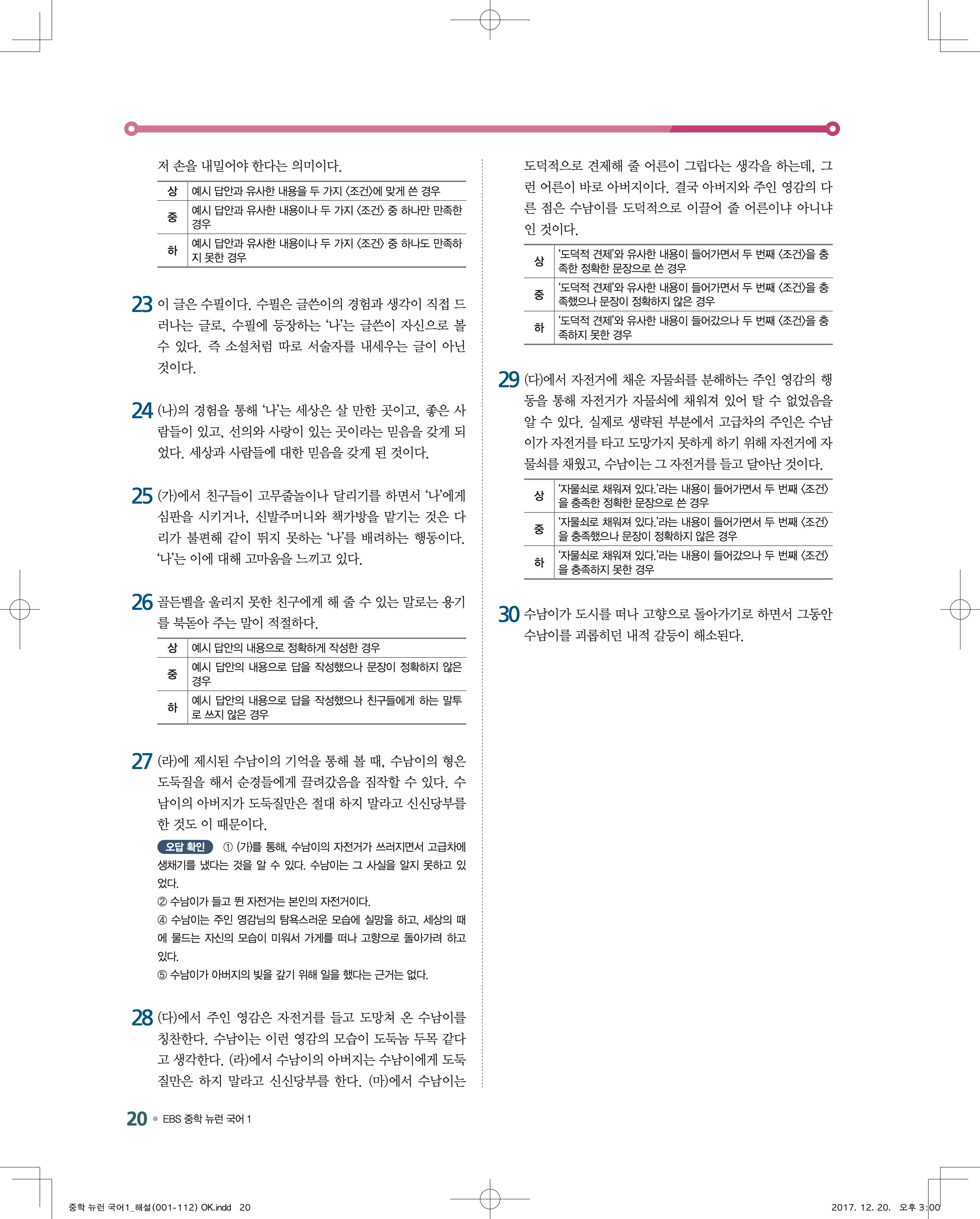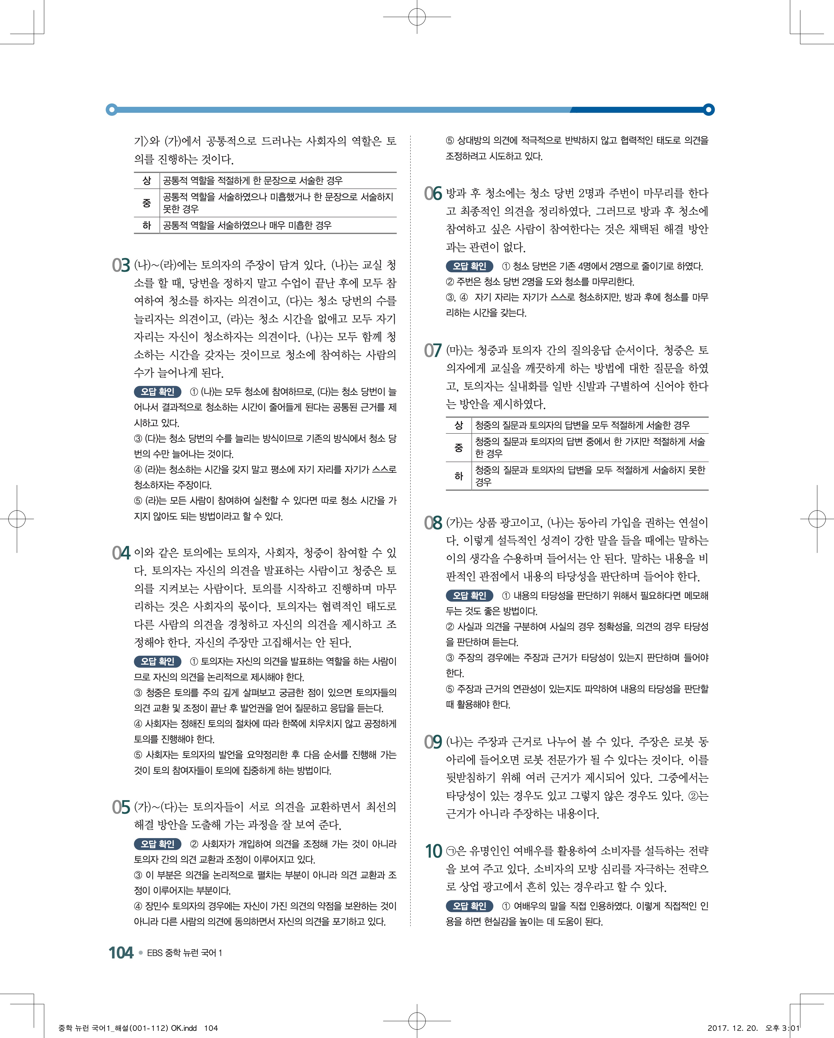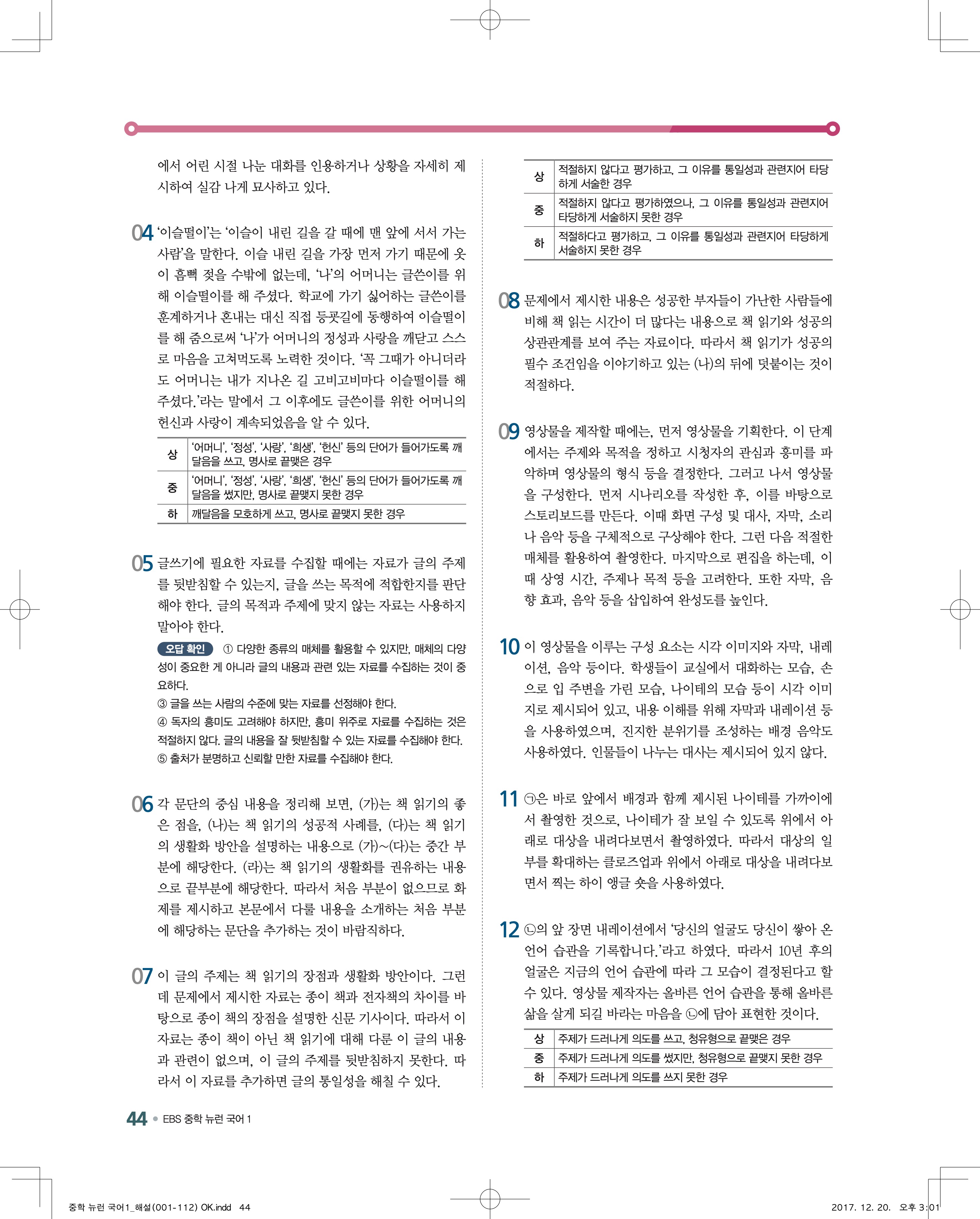 EBS 뉴런 국어1 답지 해설 바로보는 사진답지 빠른답지 모바일최적화