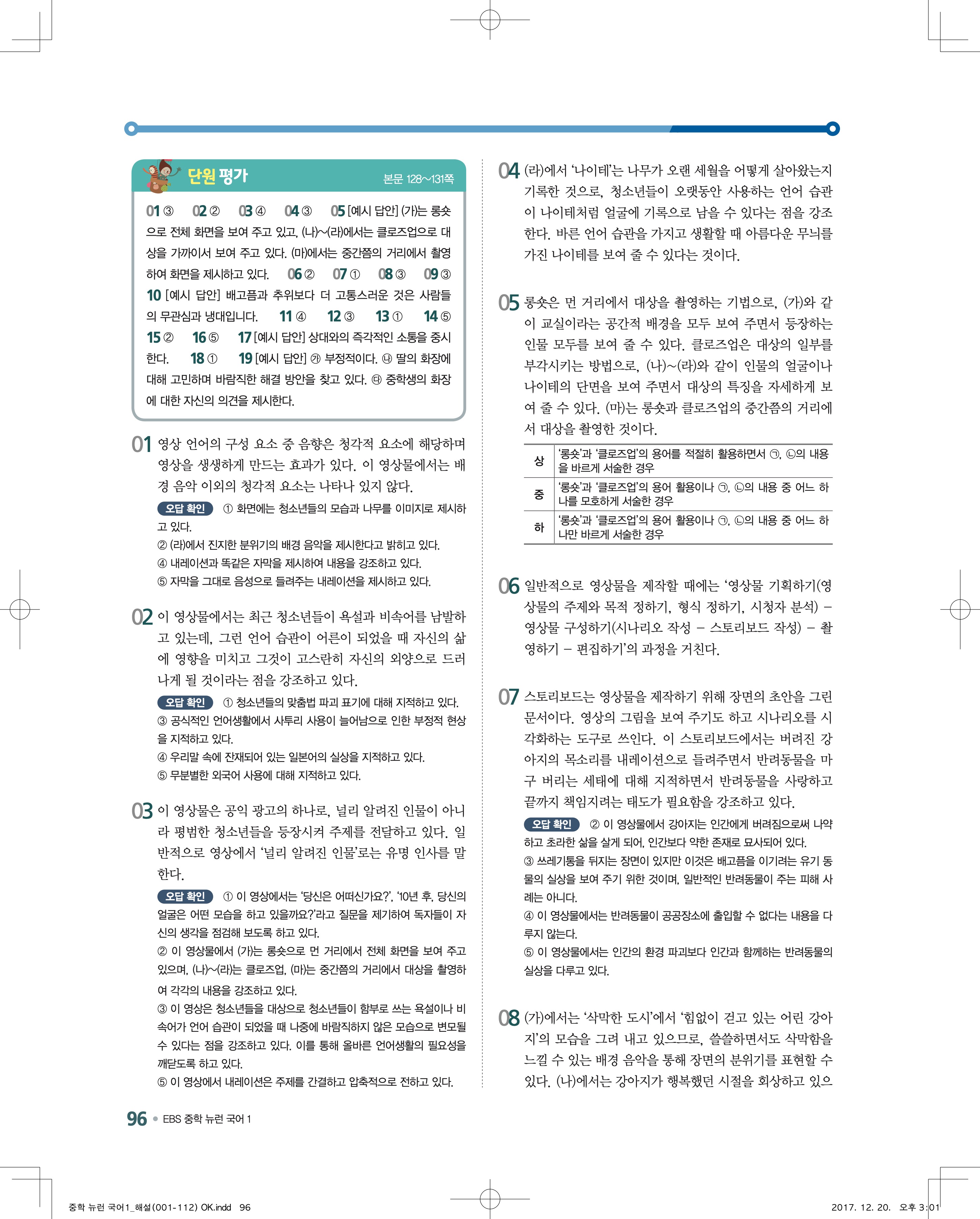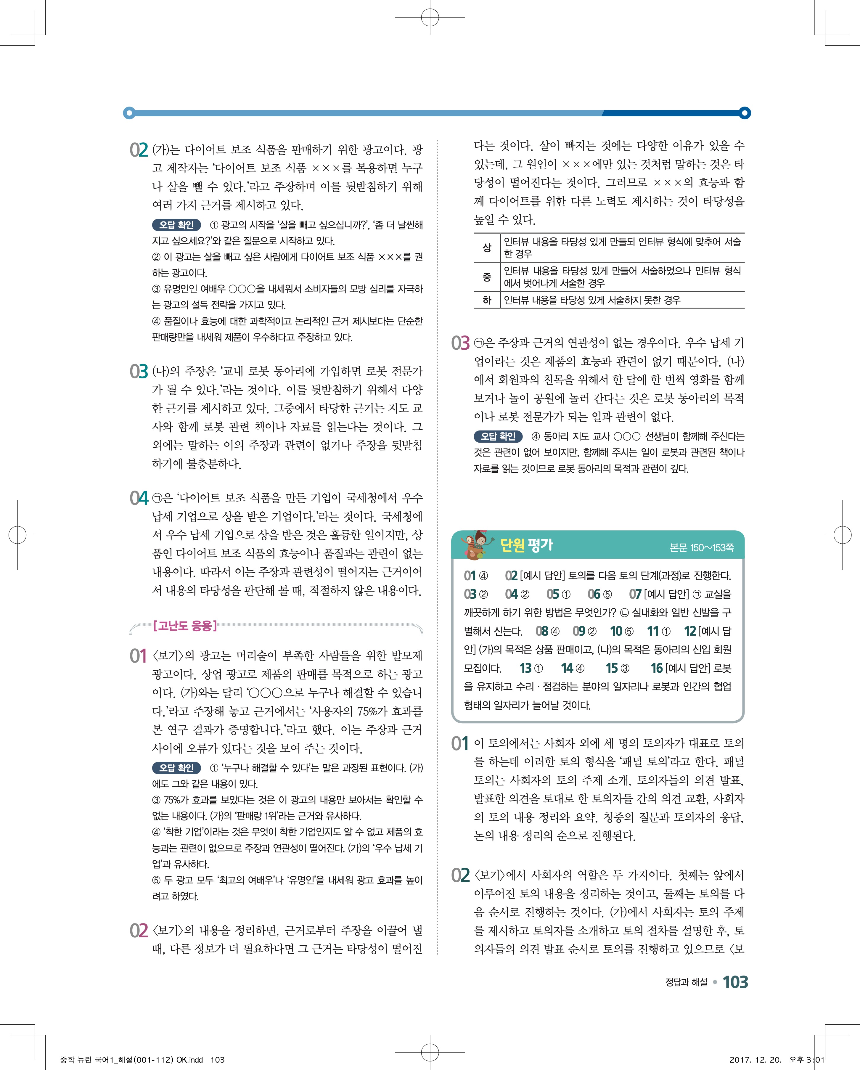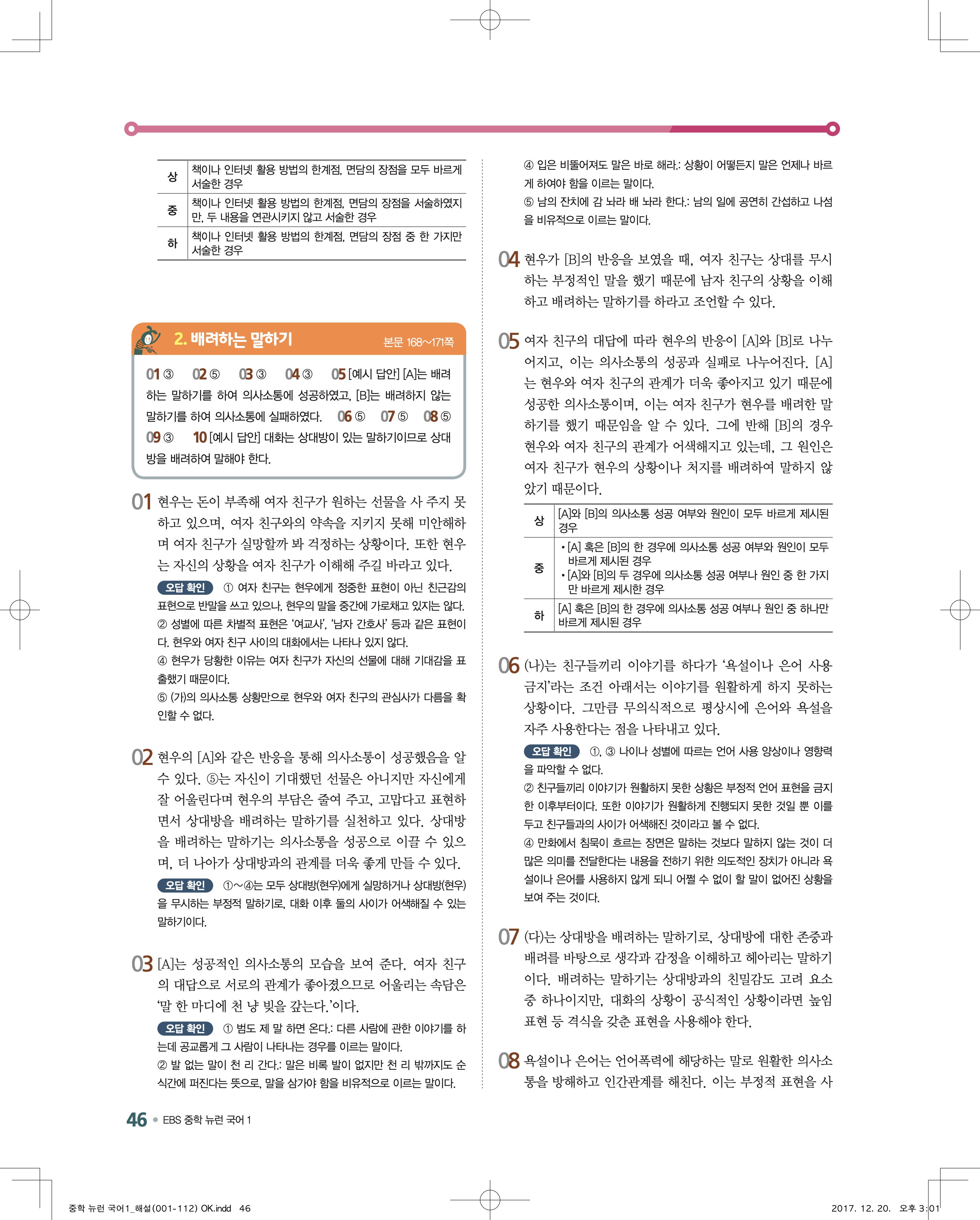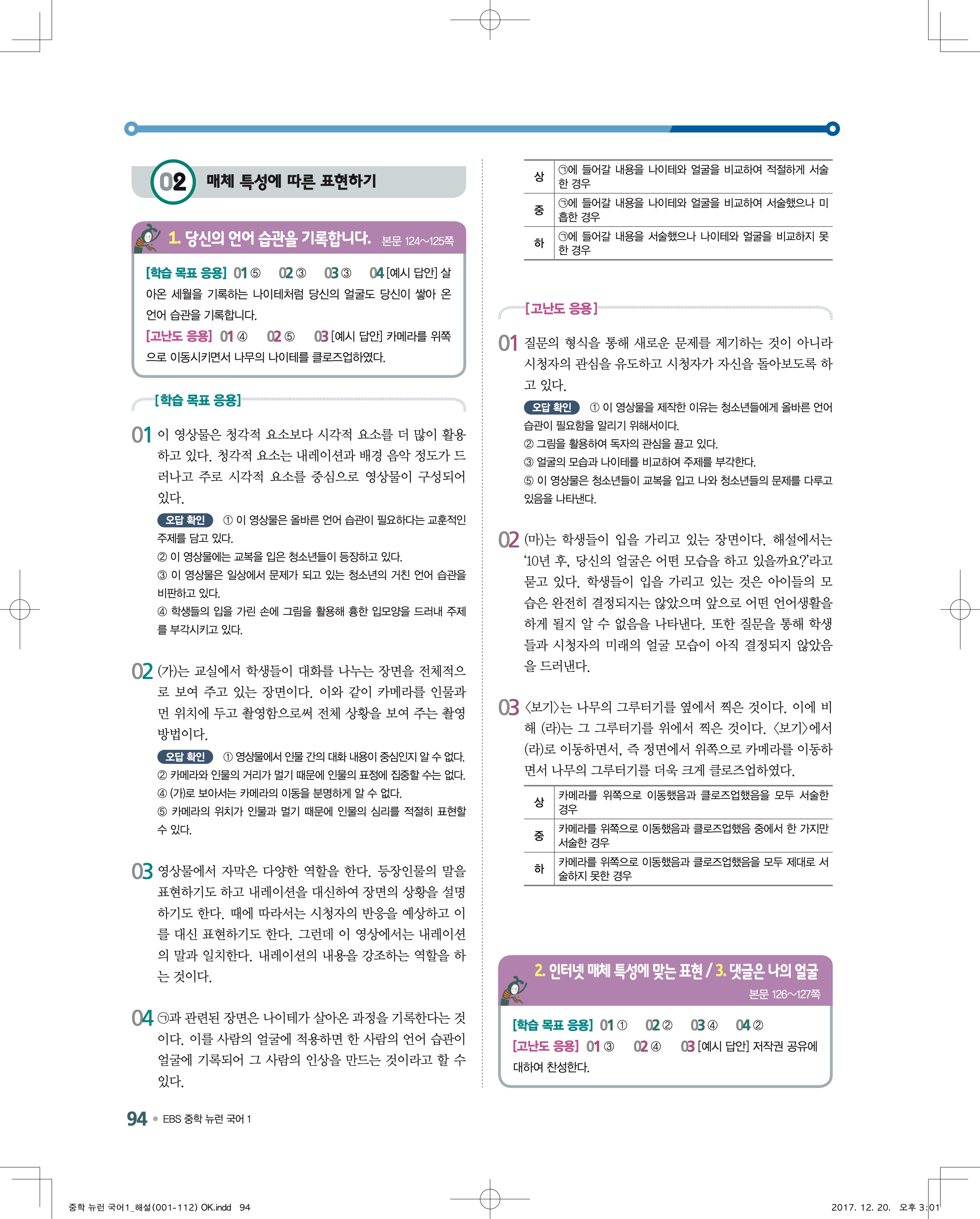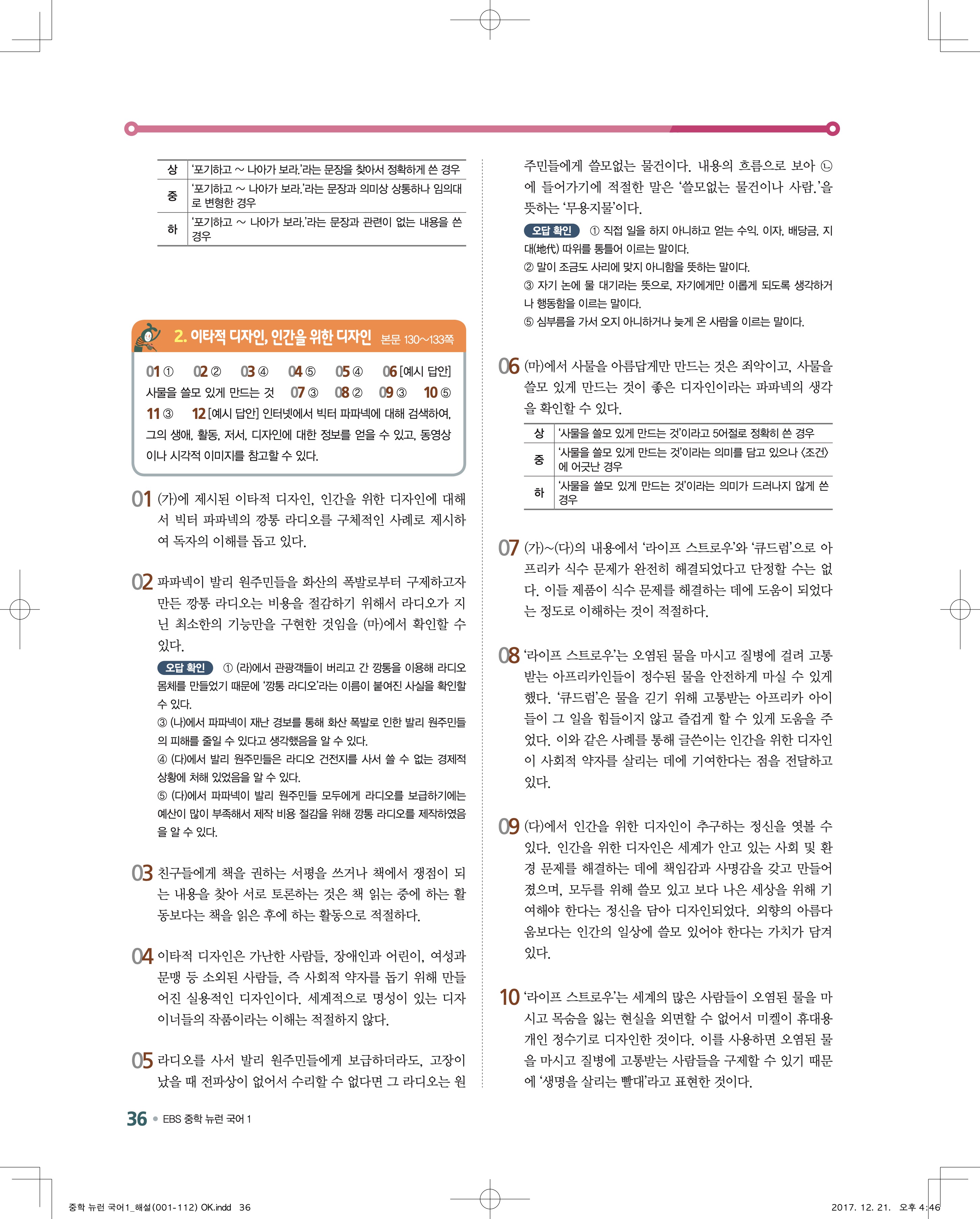 EBS 뉴런 국어1 답지 해설 바로보는 사진답지 빠른답지 모바일최적화