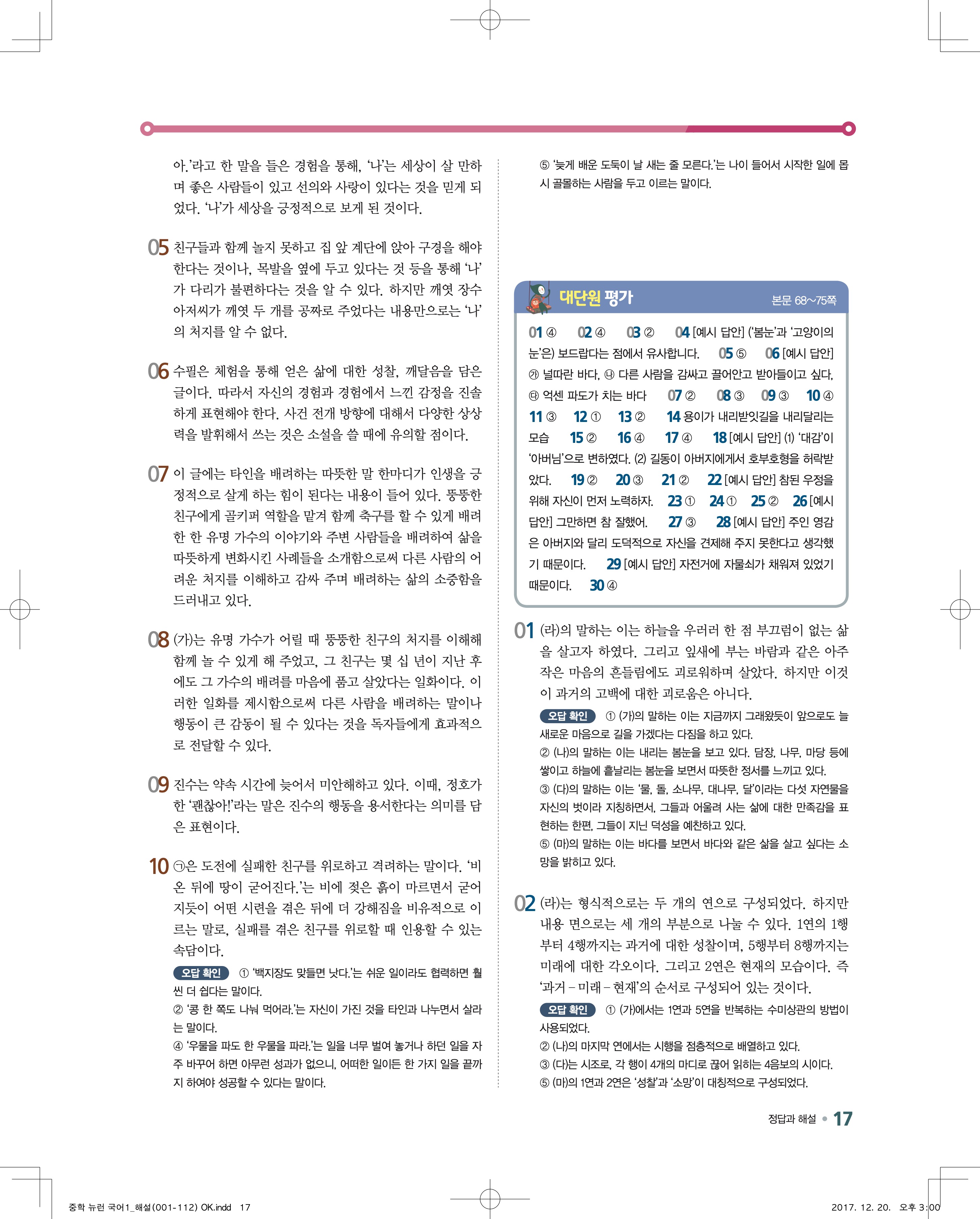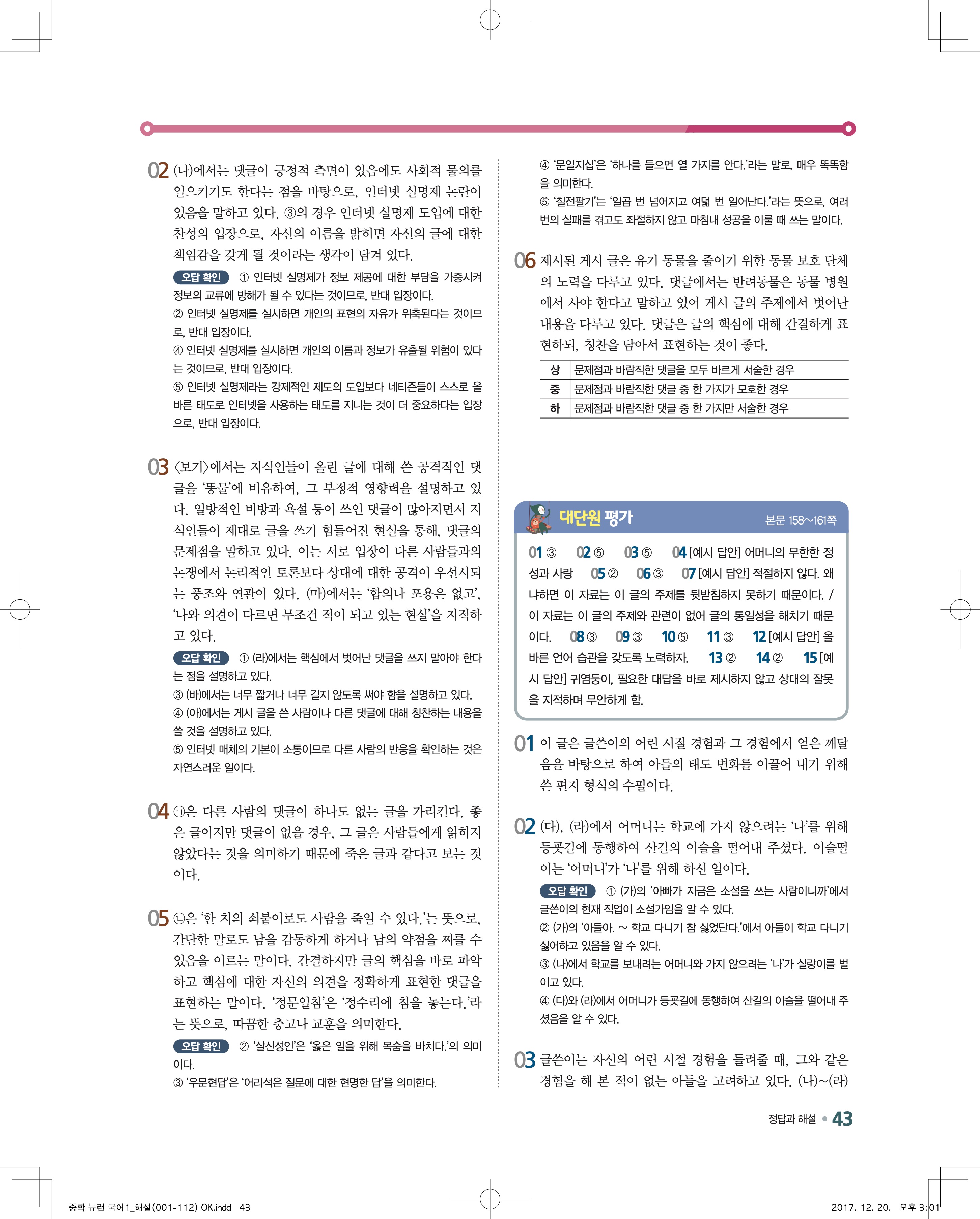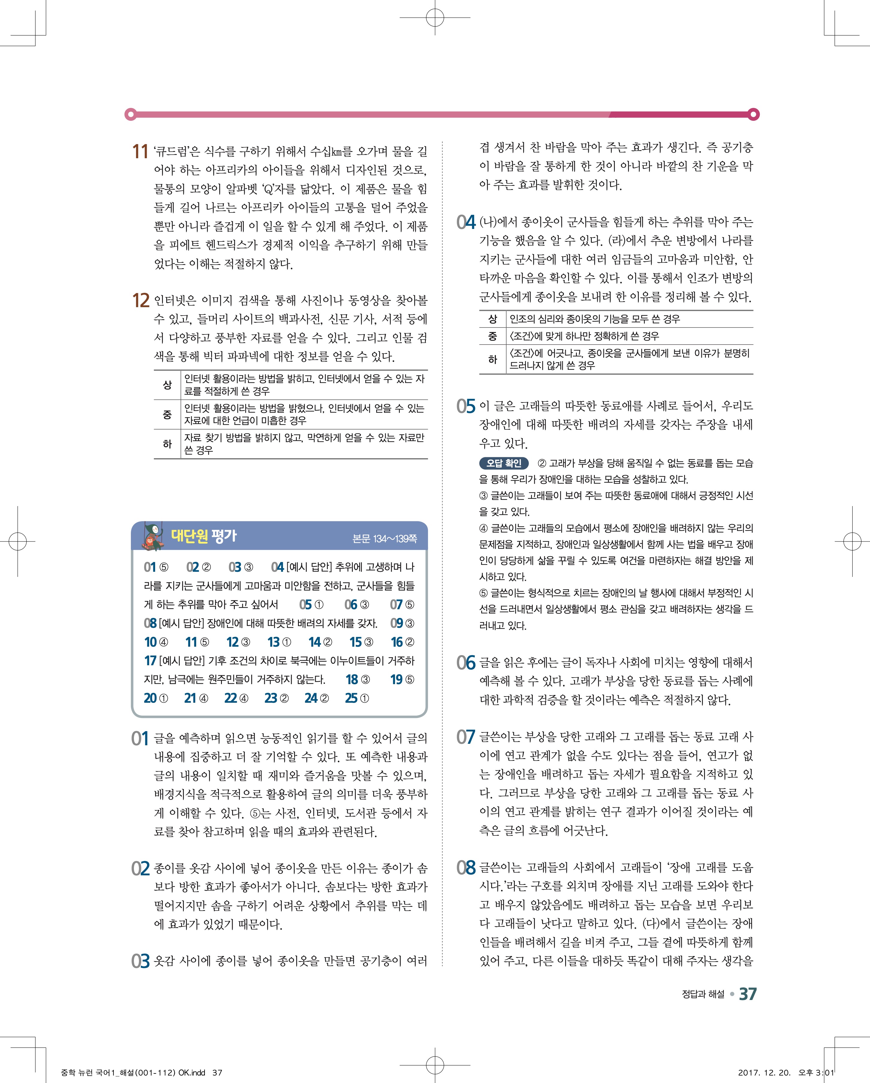 다운로드 받을필요 없이 바로 볼수 있는 모바일에 최적화된 답지 입니다