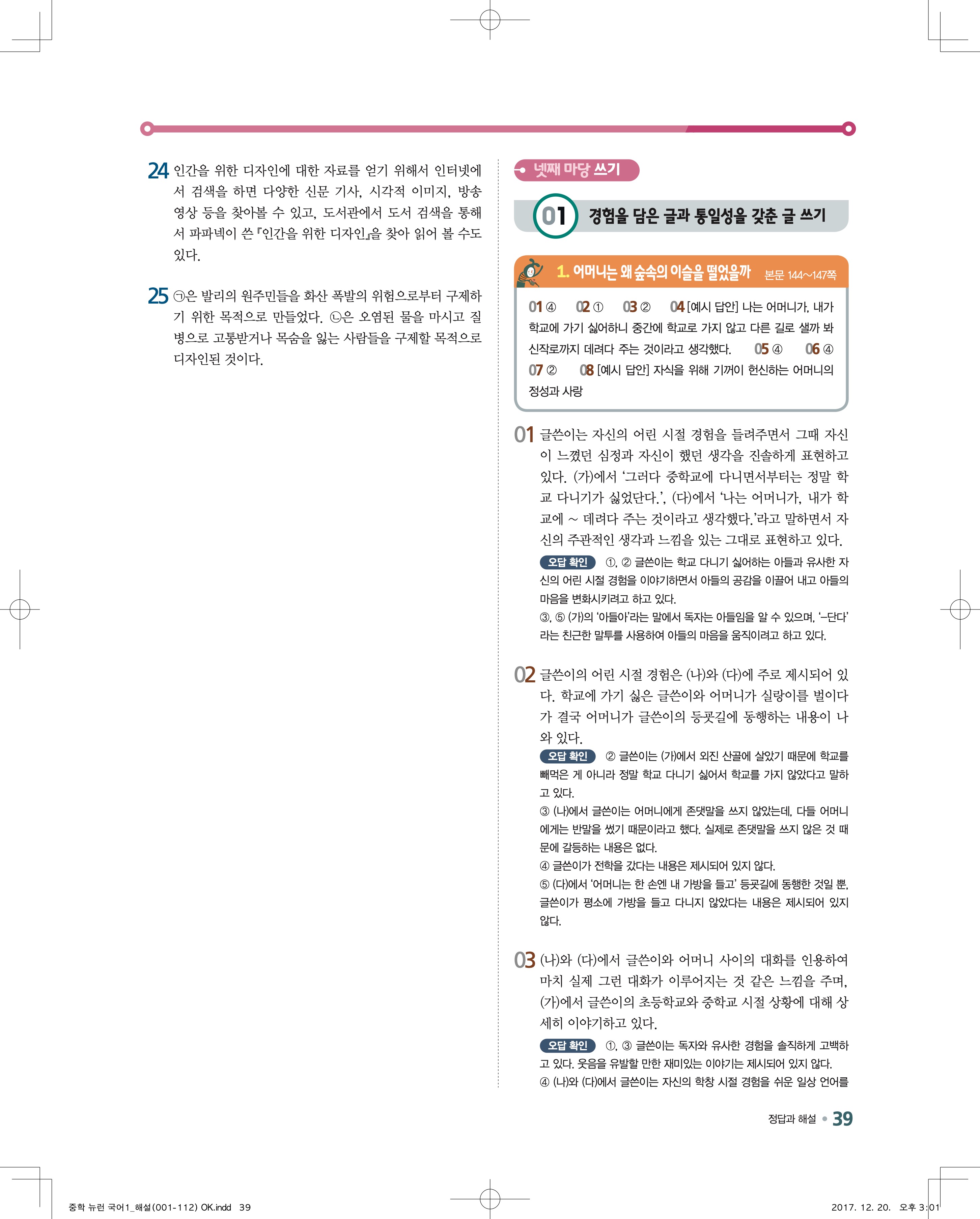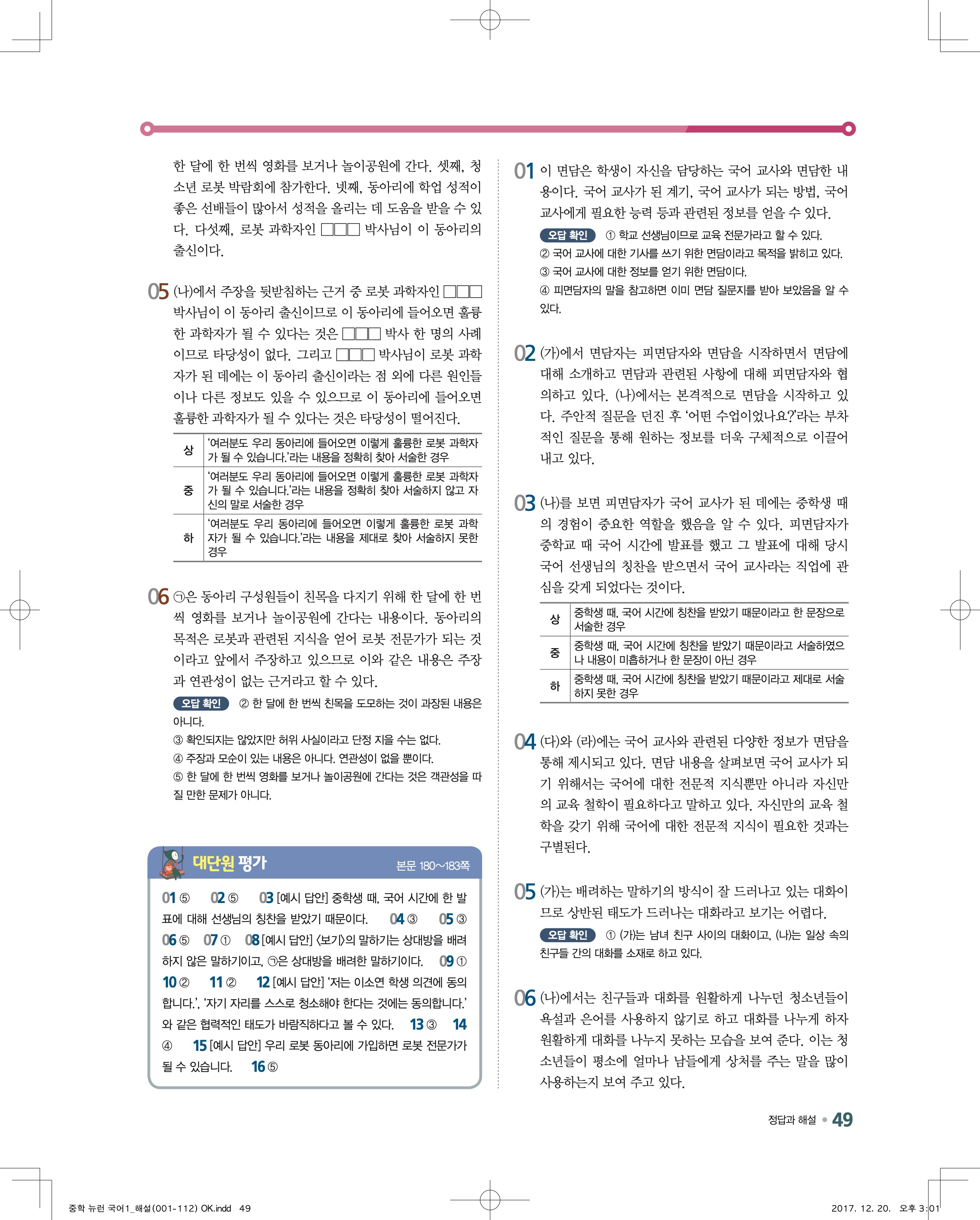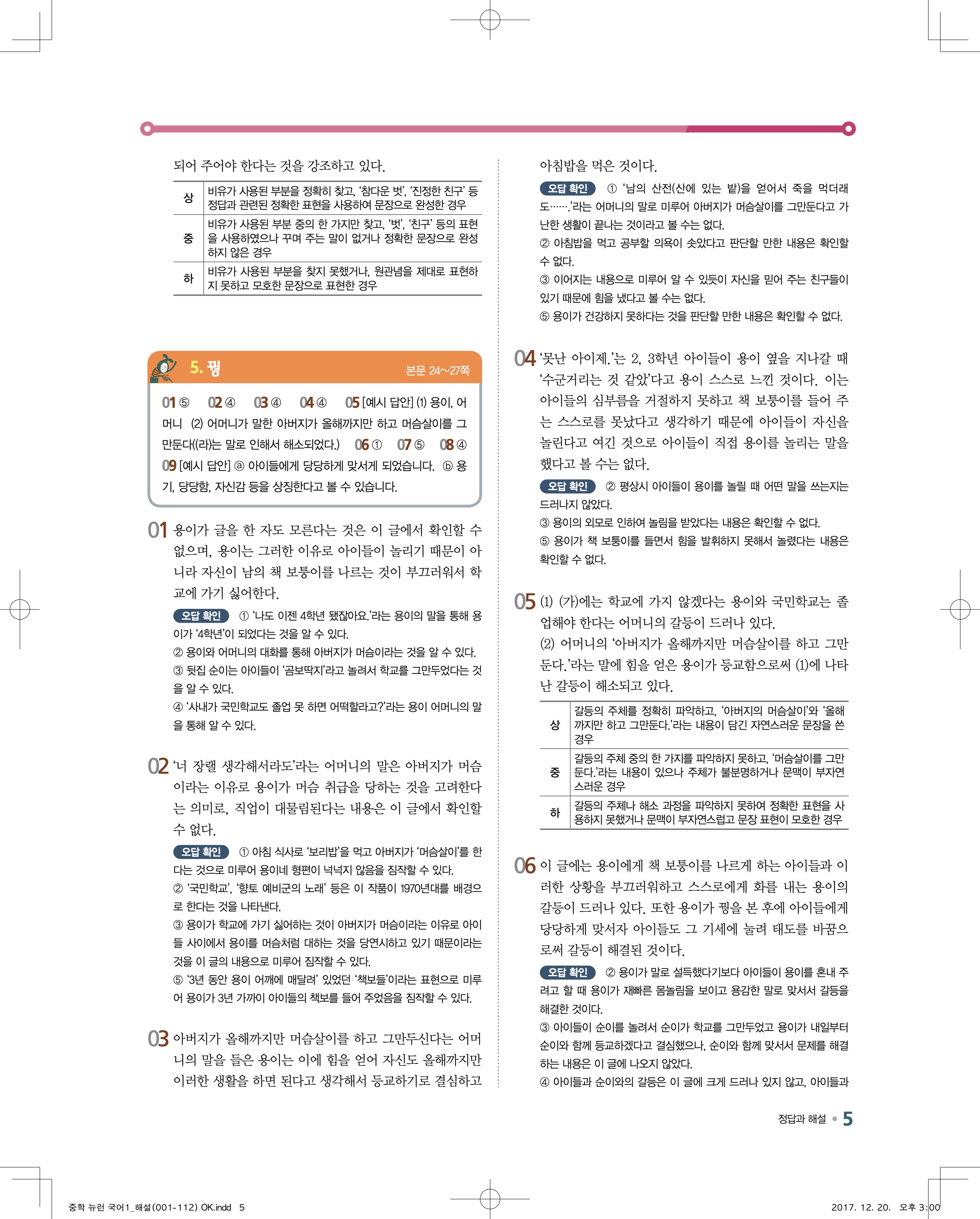 다운로드 받을필요 없이 바로 볼수 있는 모바일에 최적화된 답지 입니다