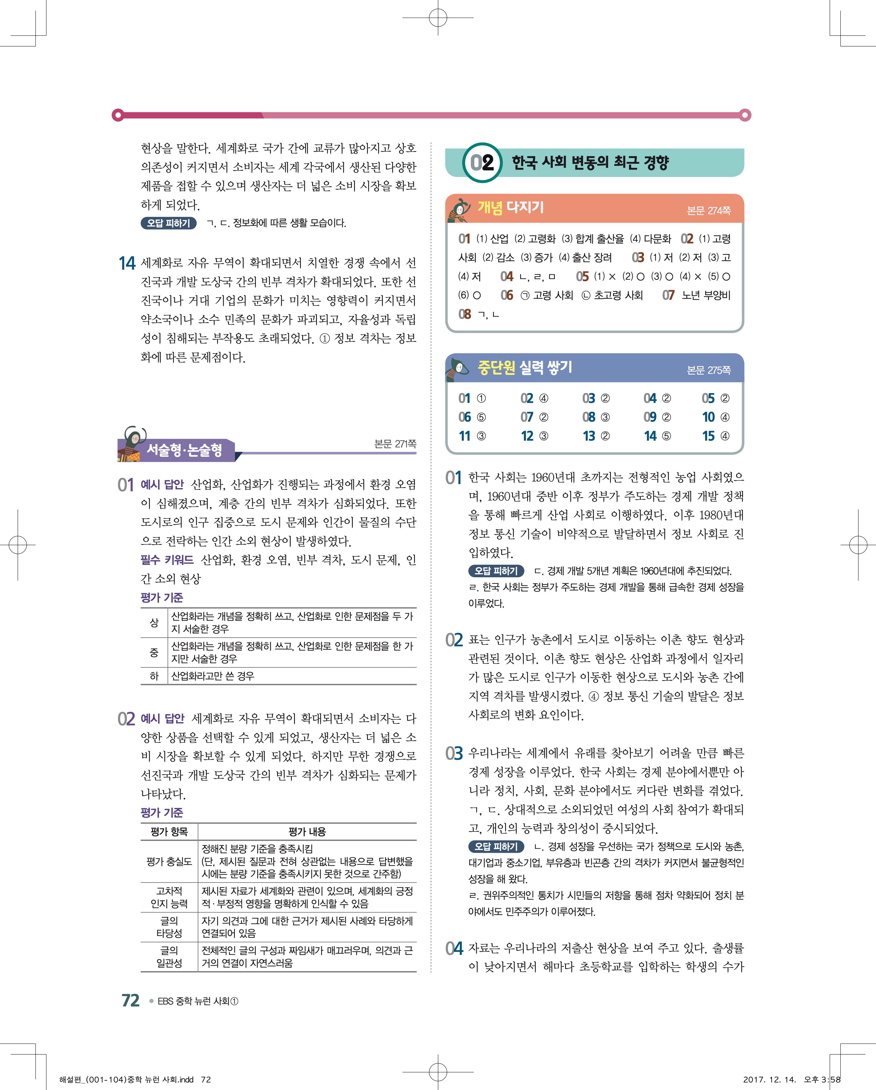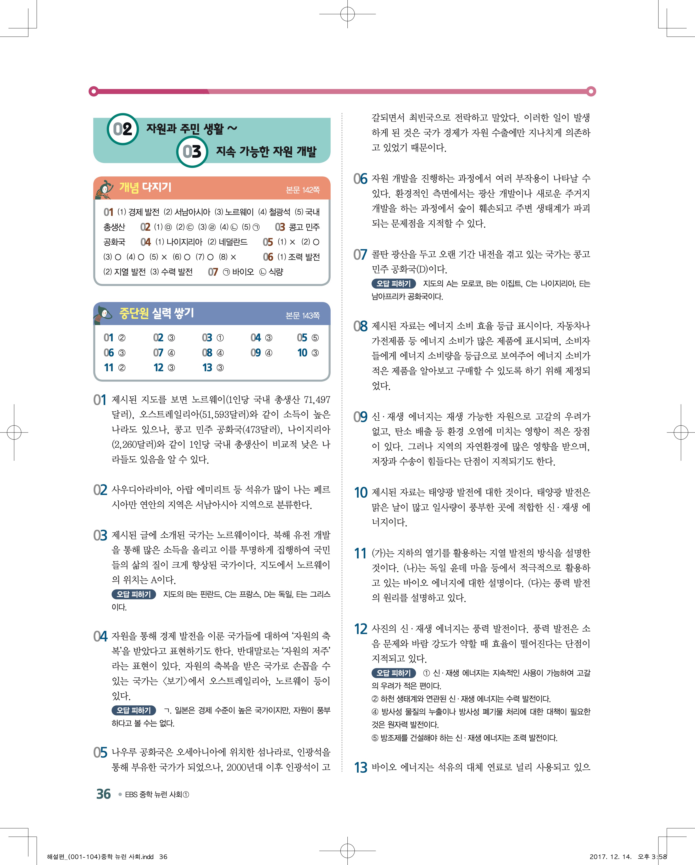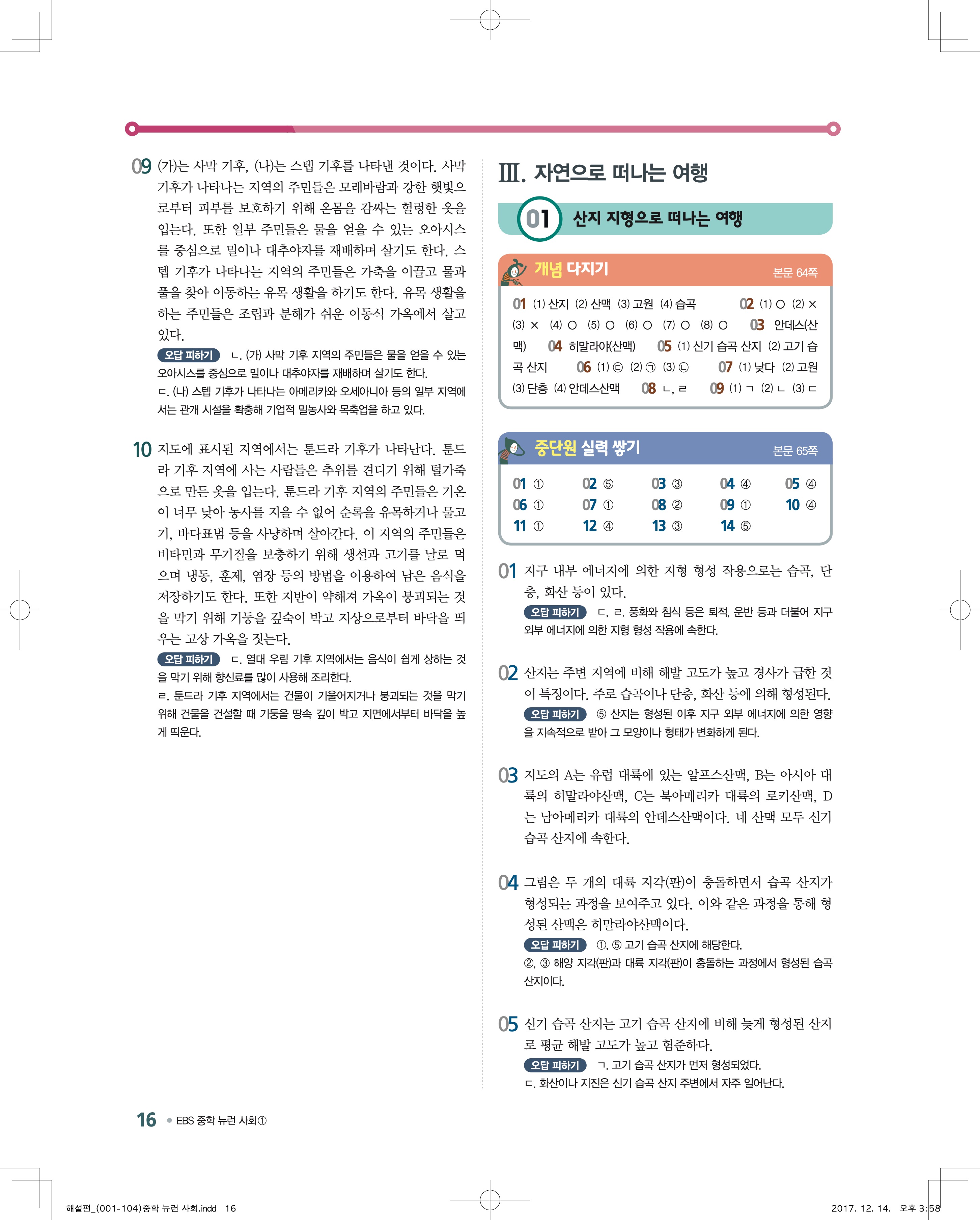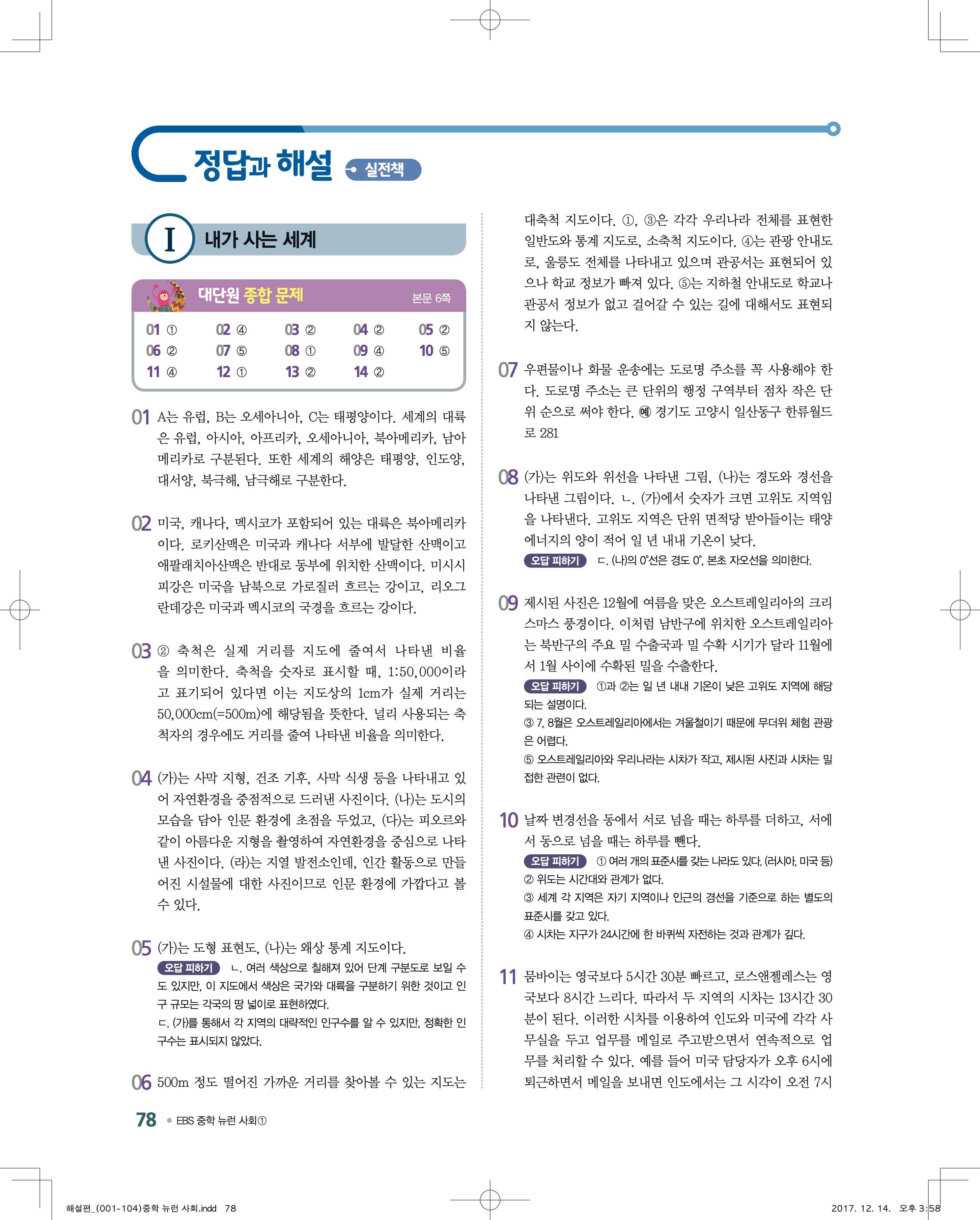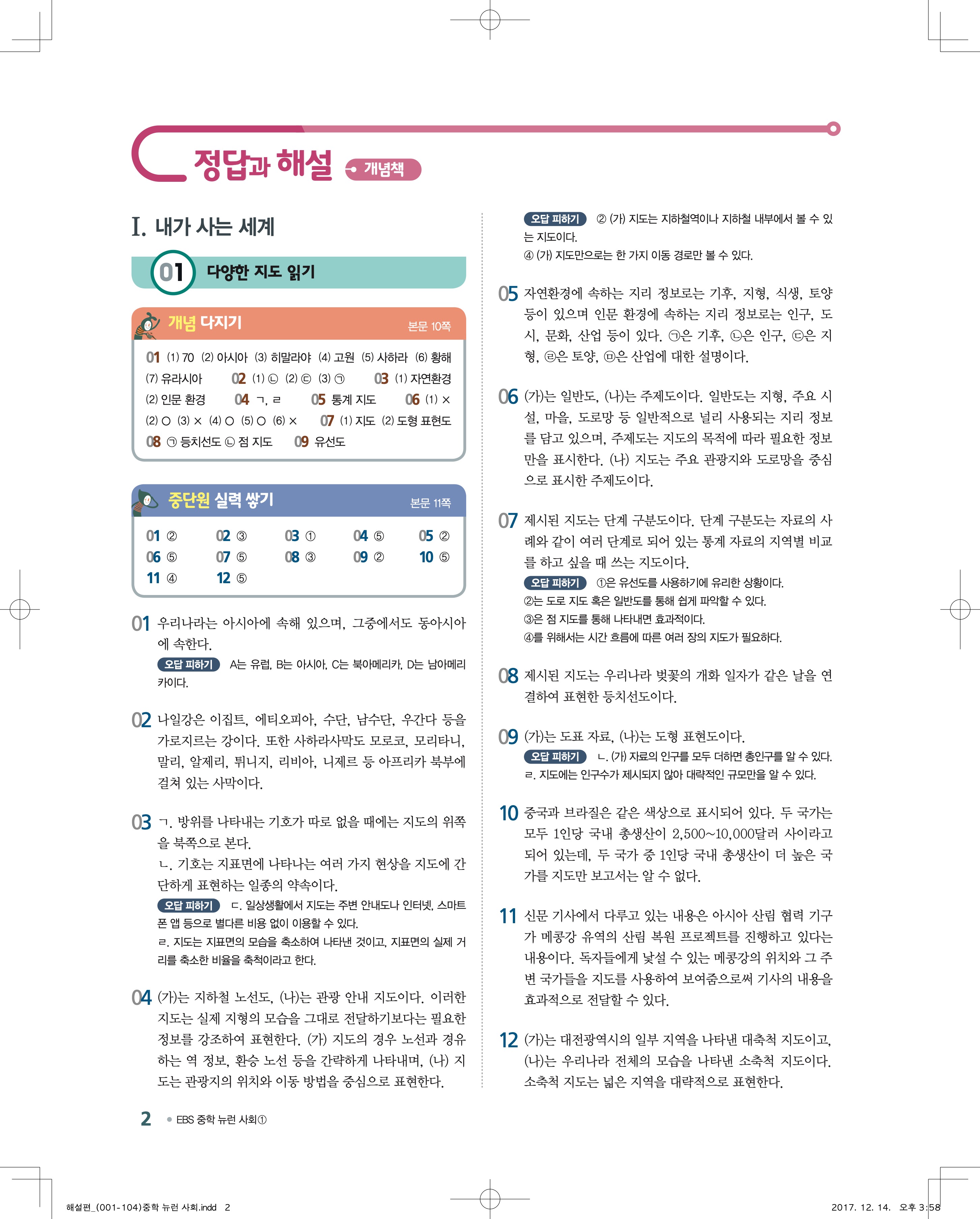 EBS 중학뉴런 사회1 답지 해설 바로보는 사진답지 빠른답지 모바일최적화