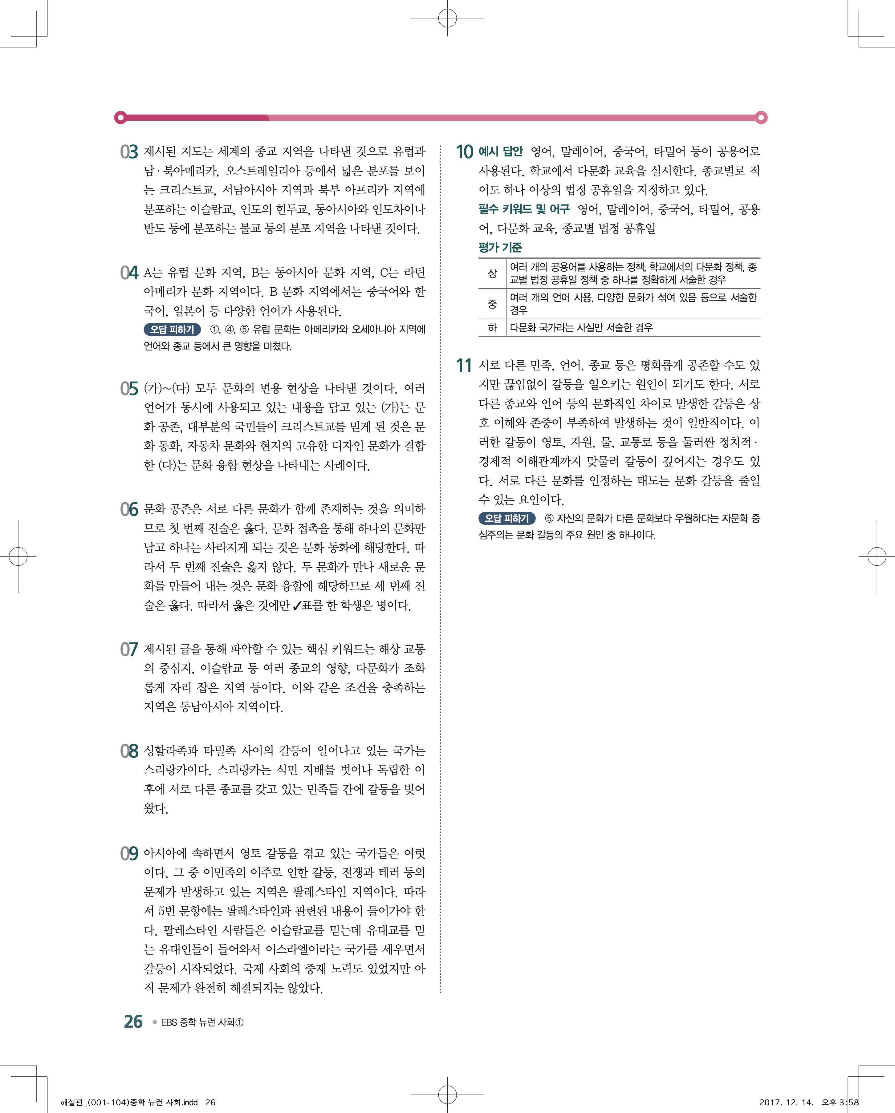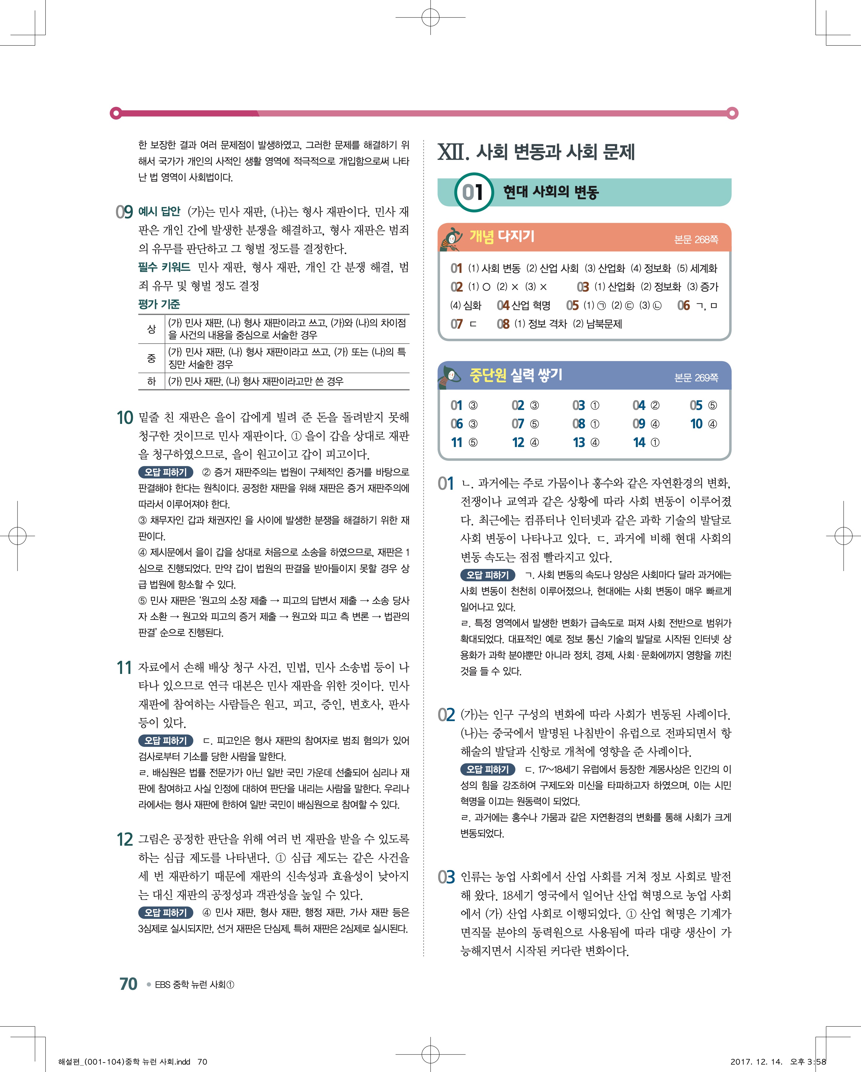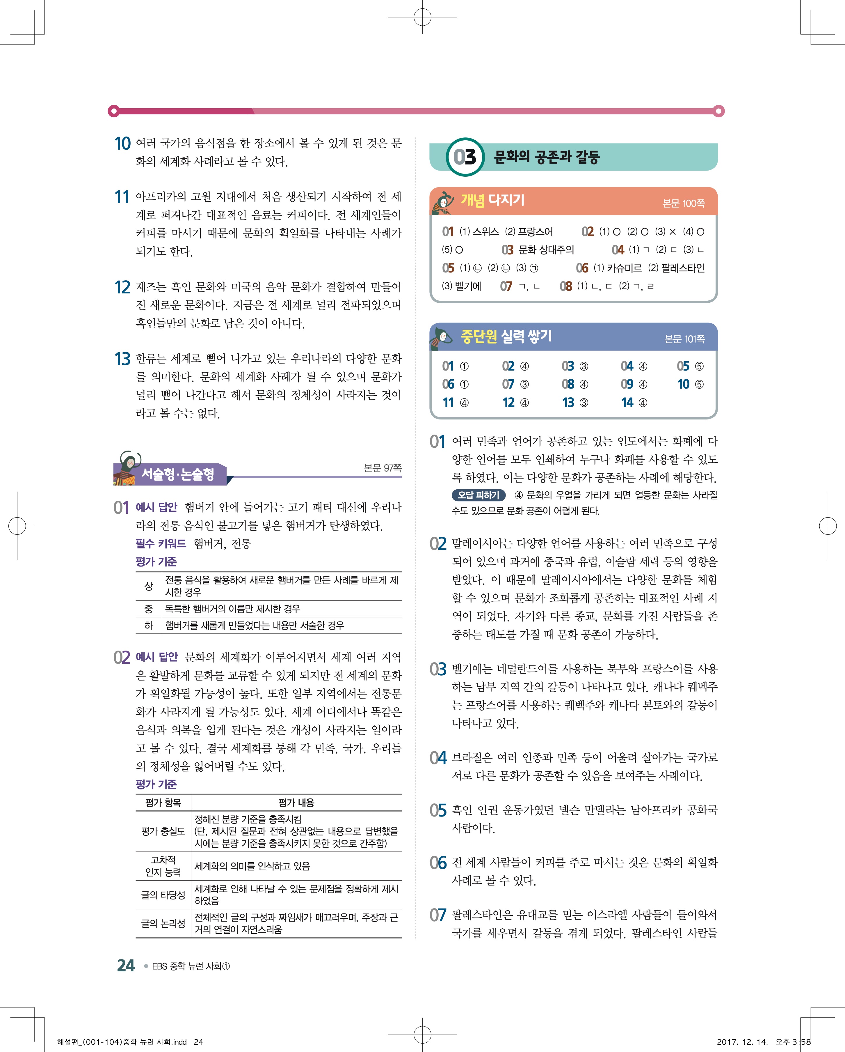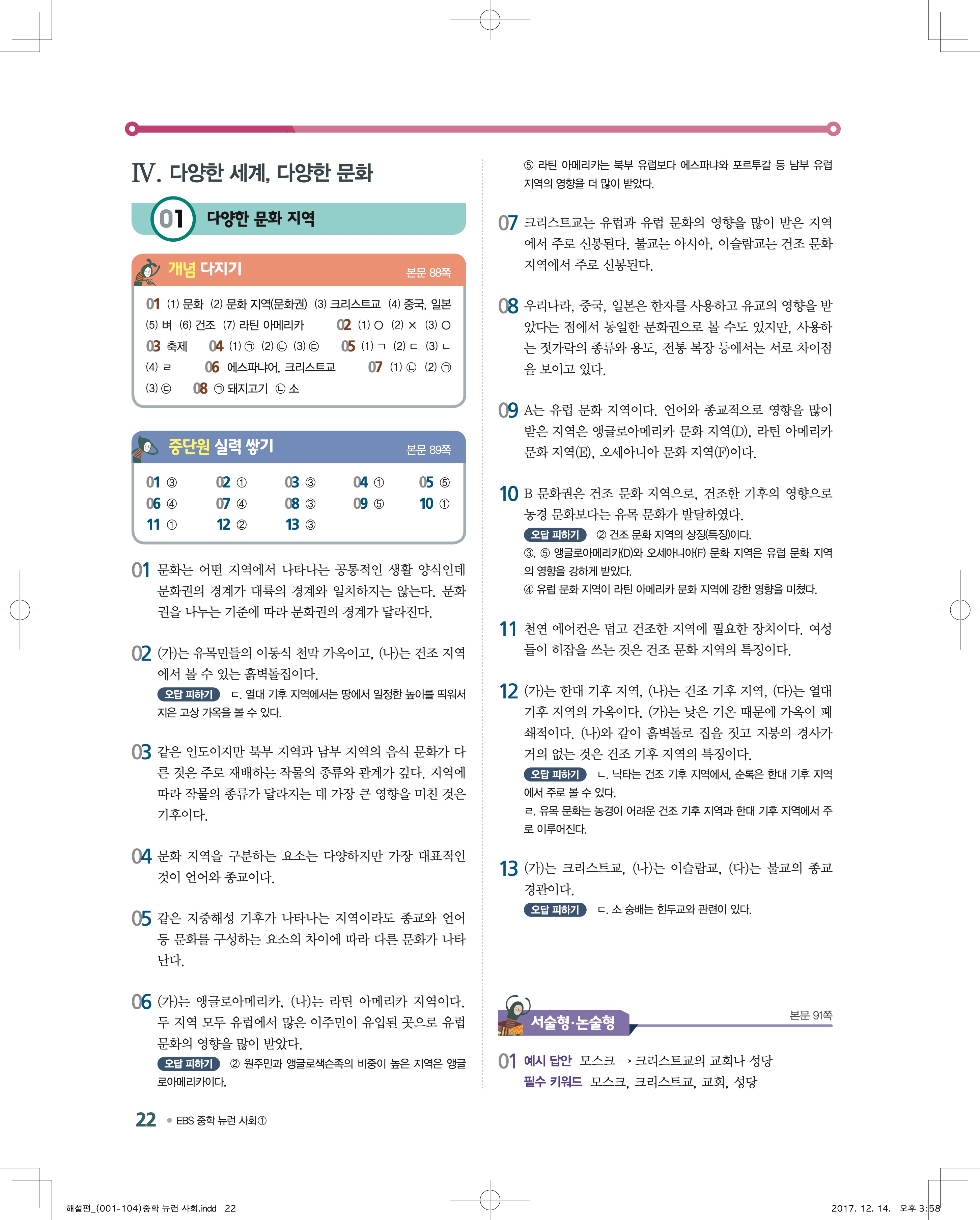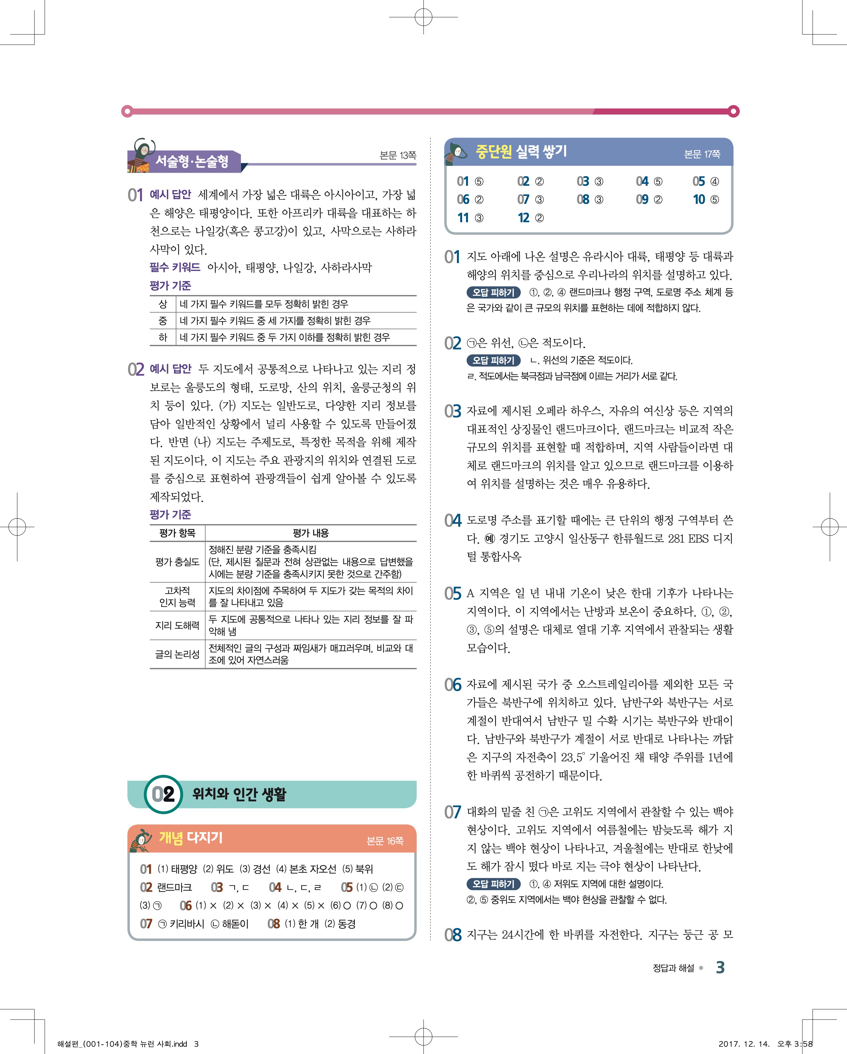 EBS 중학뉴런 사회1 답지 해설 바로보는 사진답지 빠른답지 모바일최적화