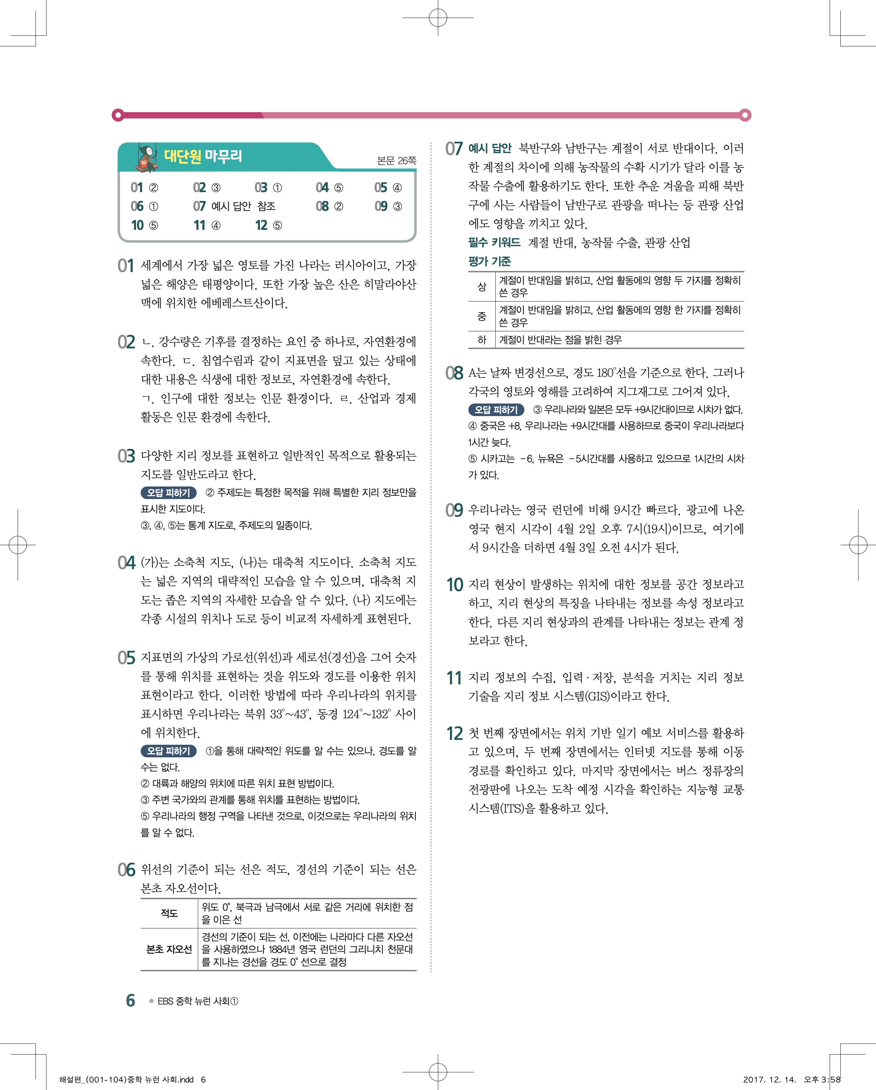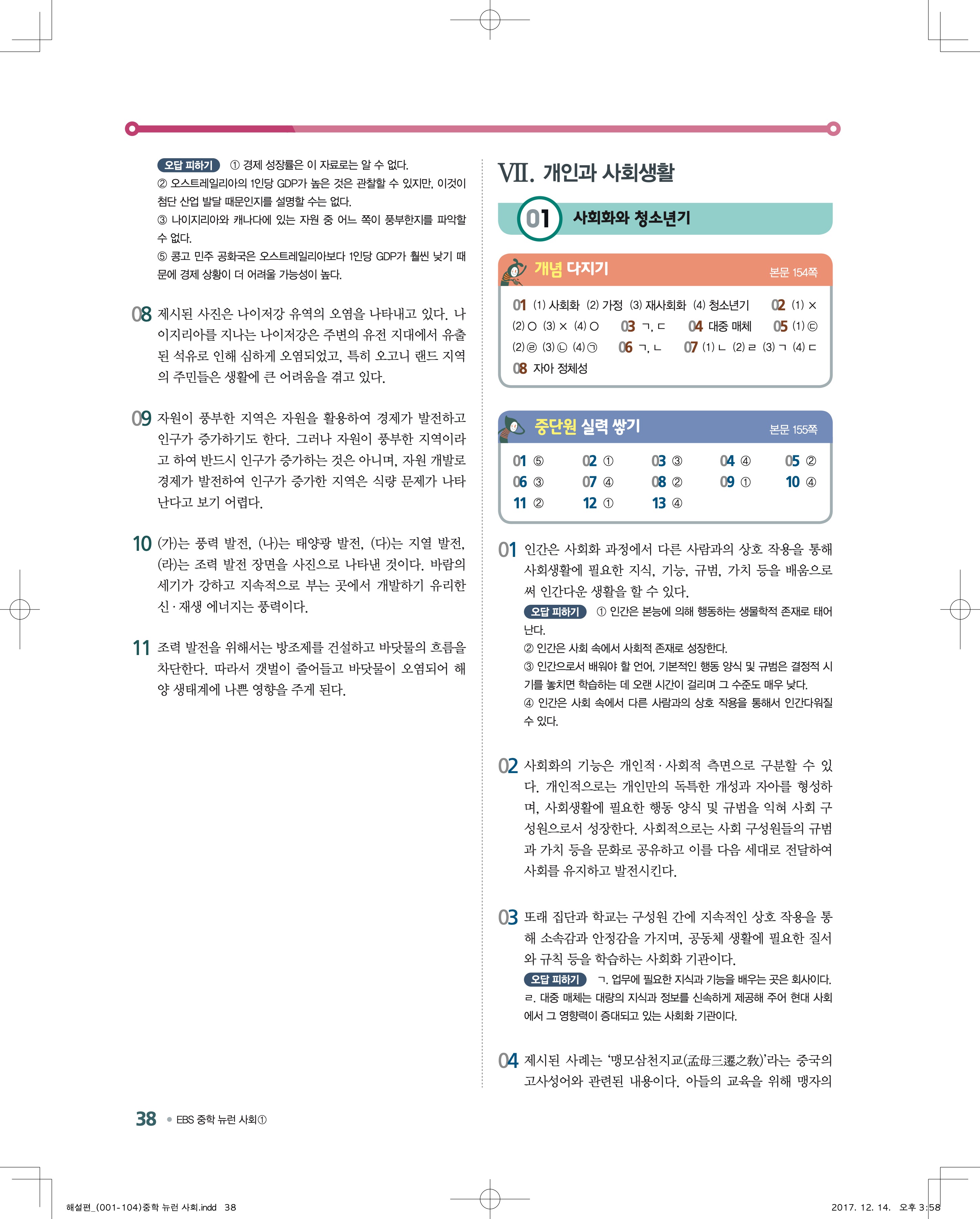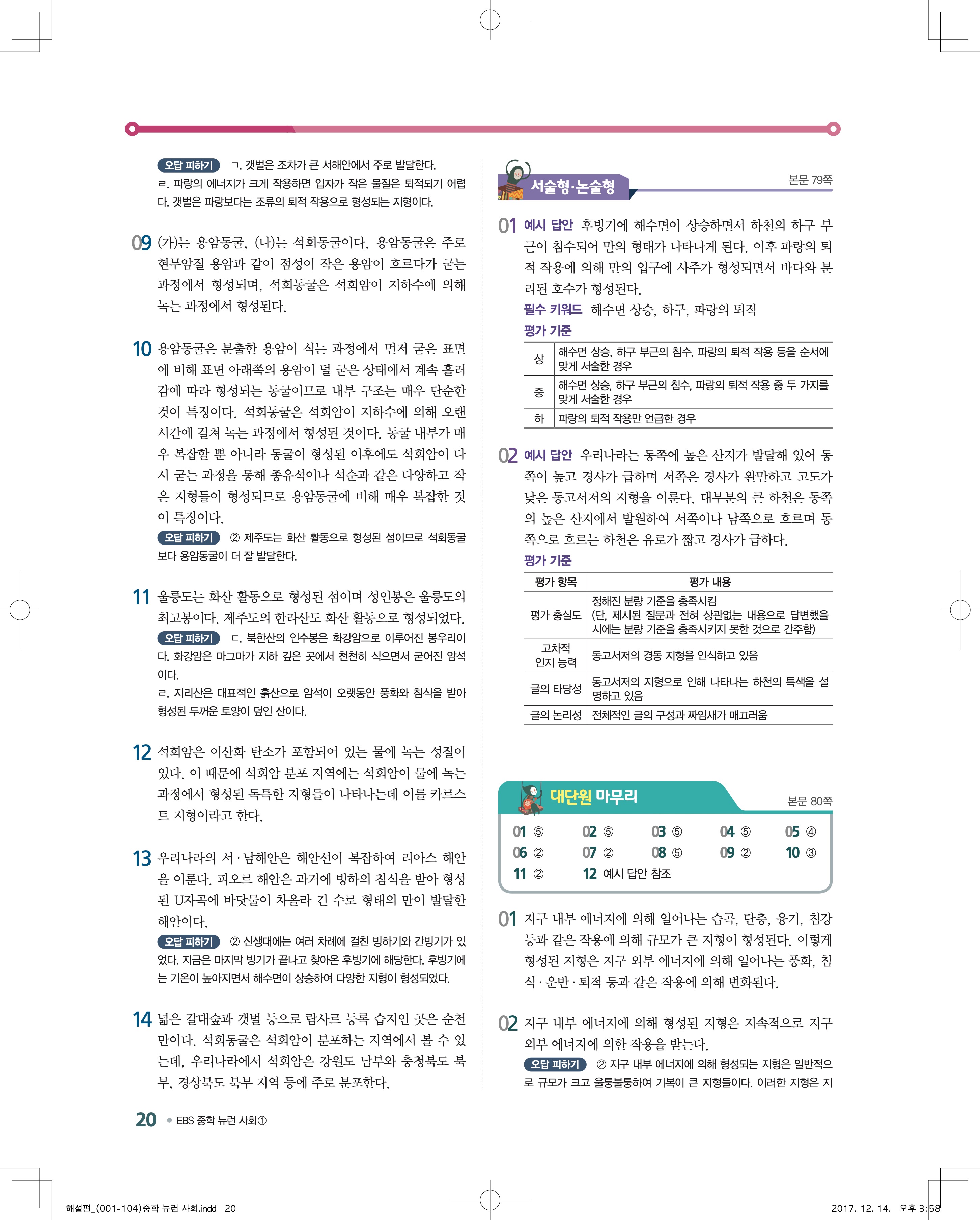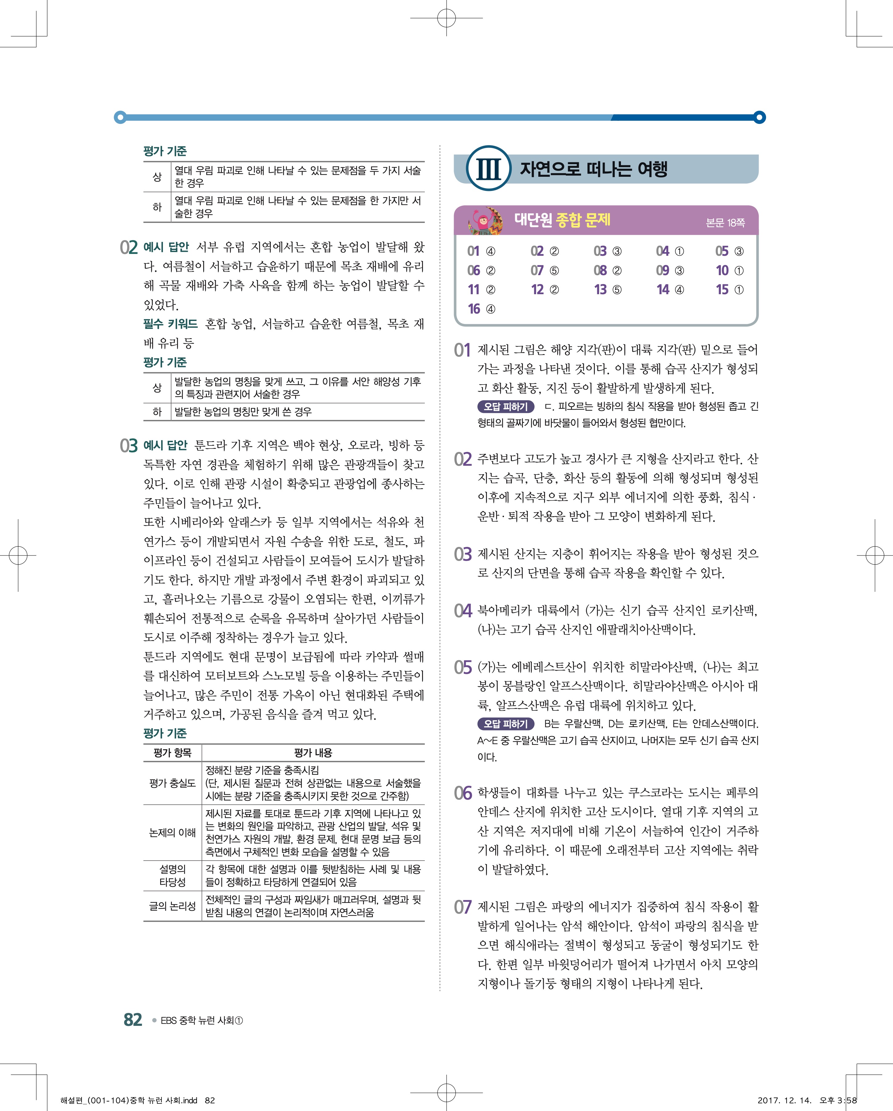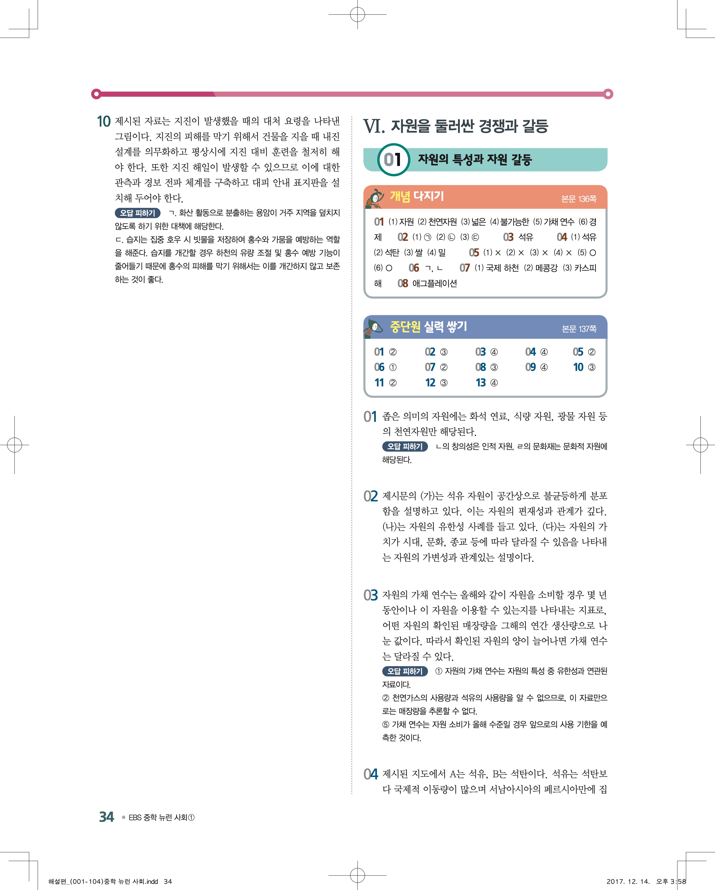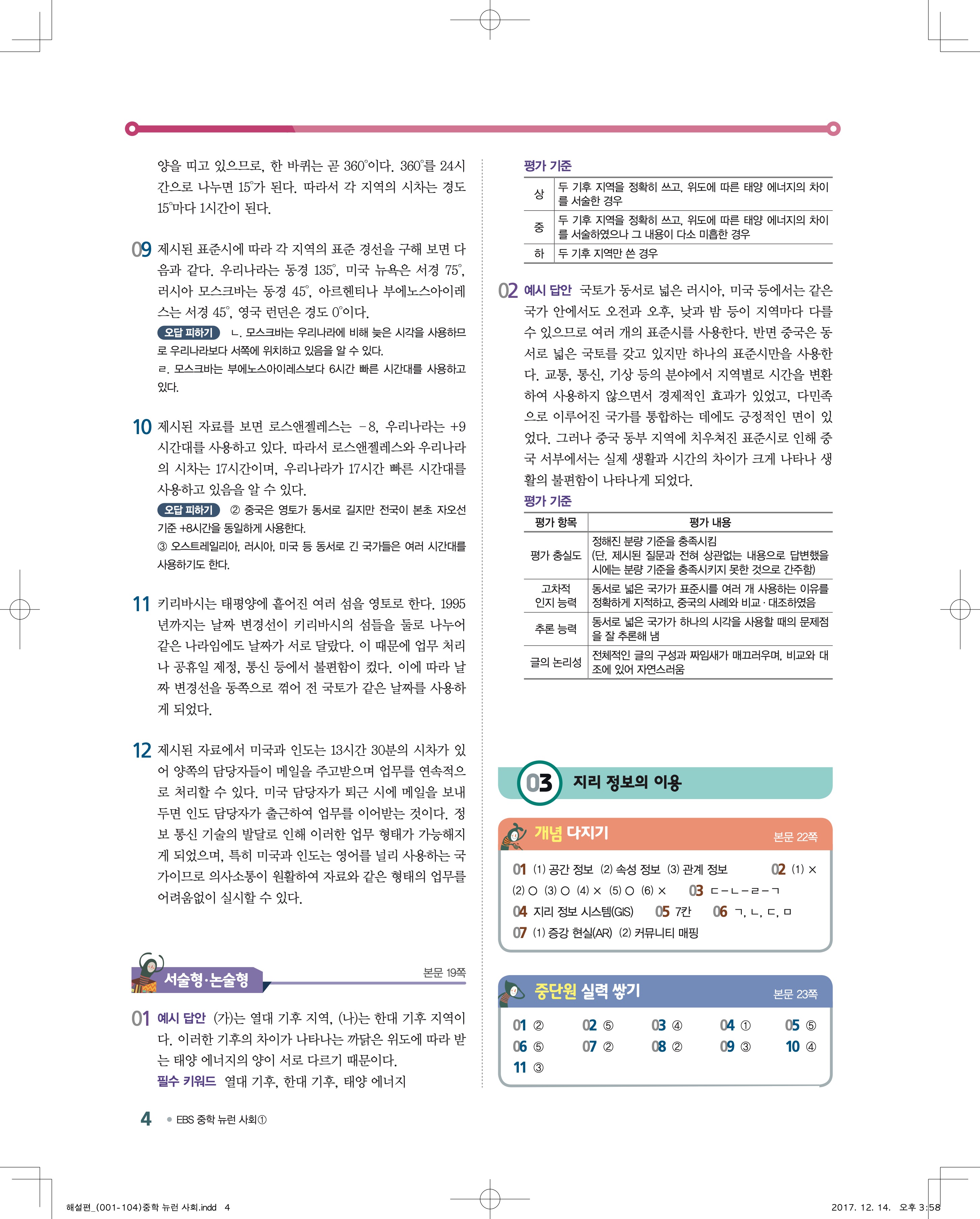 EBS 중학뉴런 사회1 답지 해설 바로보는 사진답지 빠른답지 모바일최적화