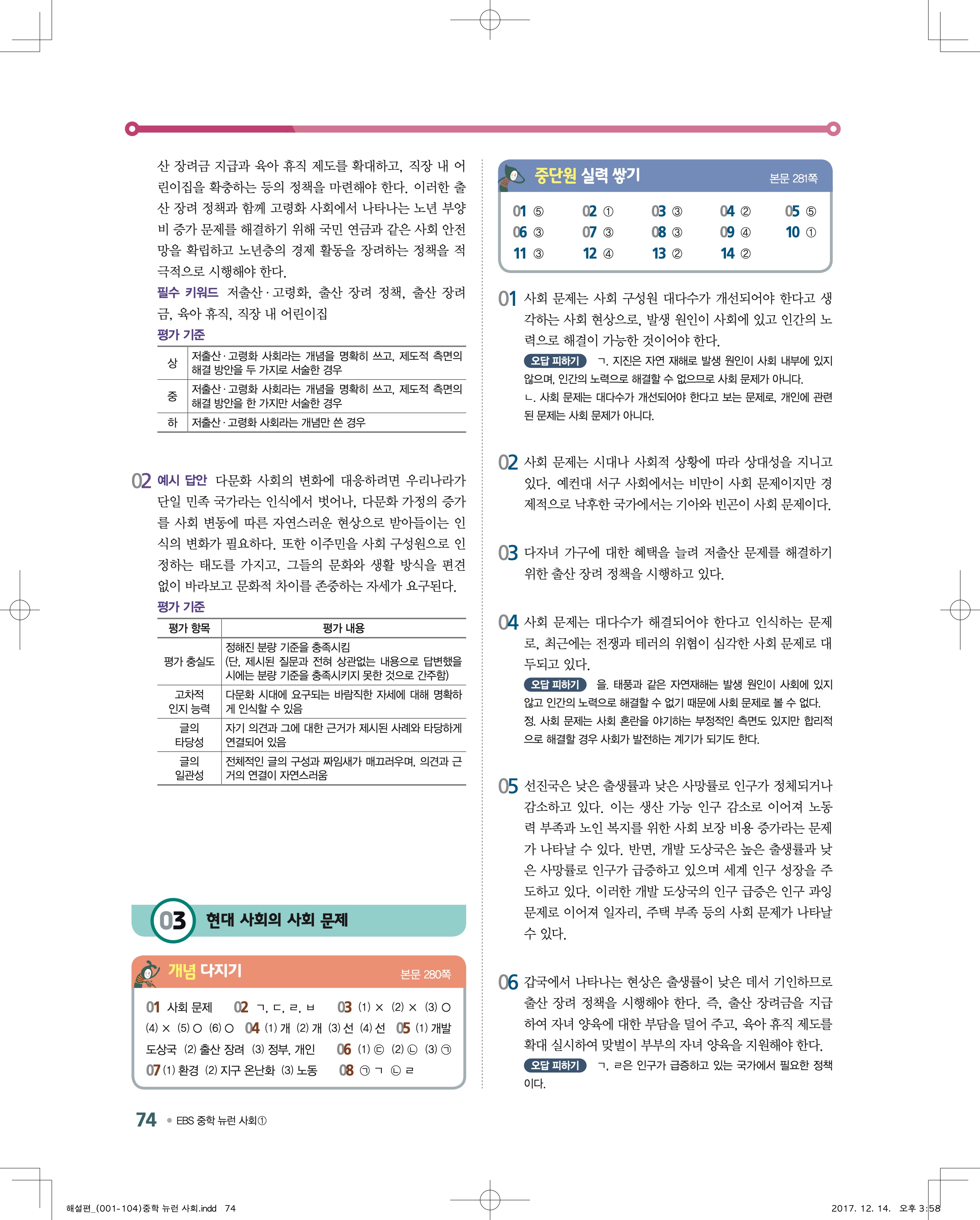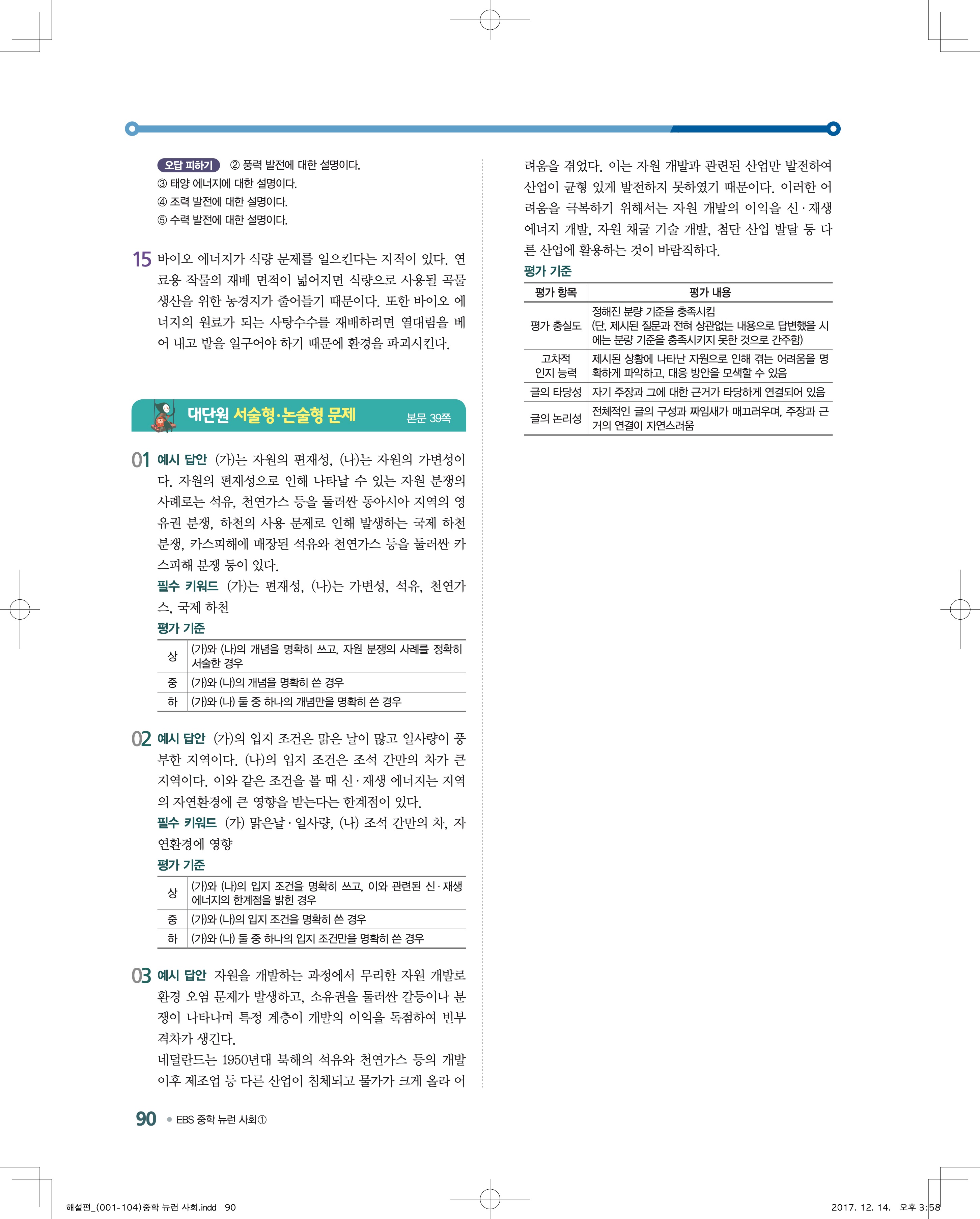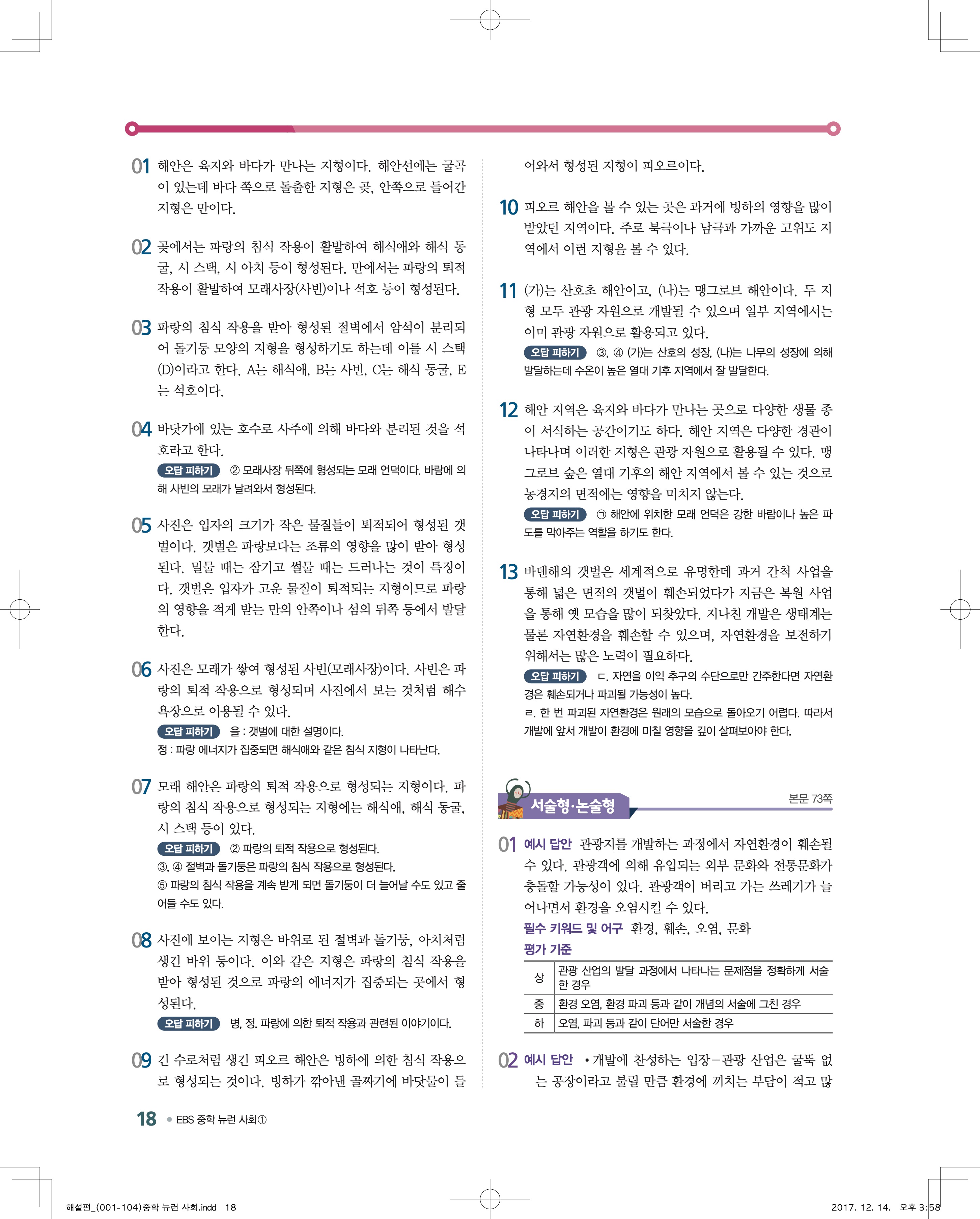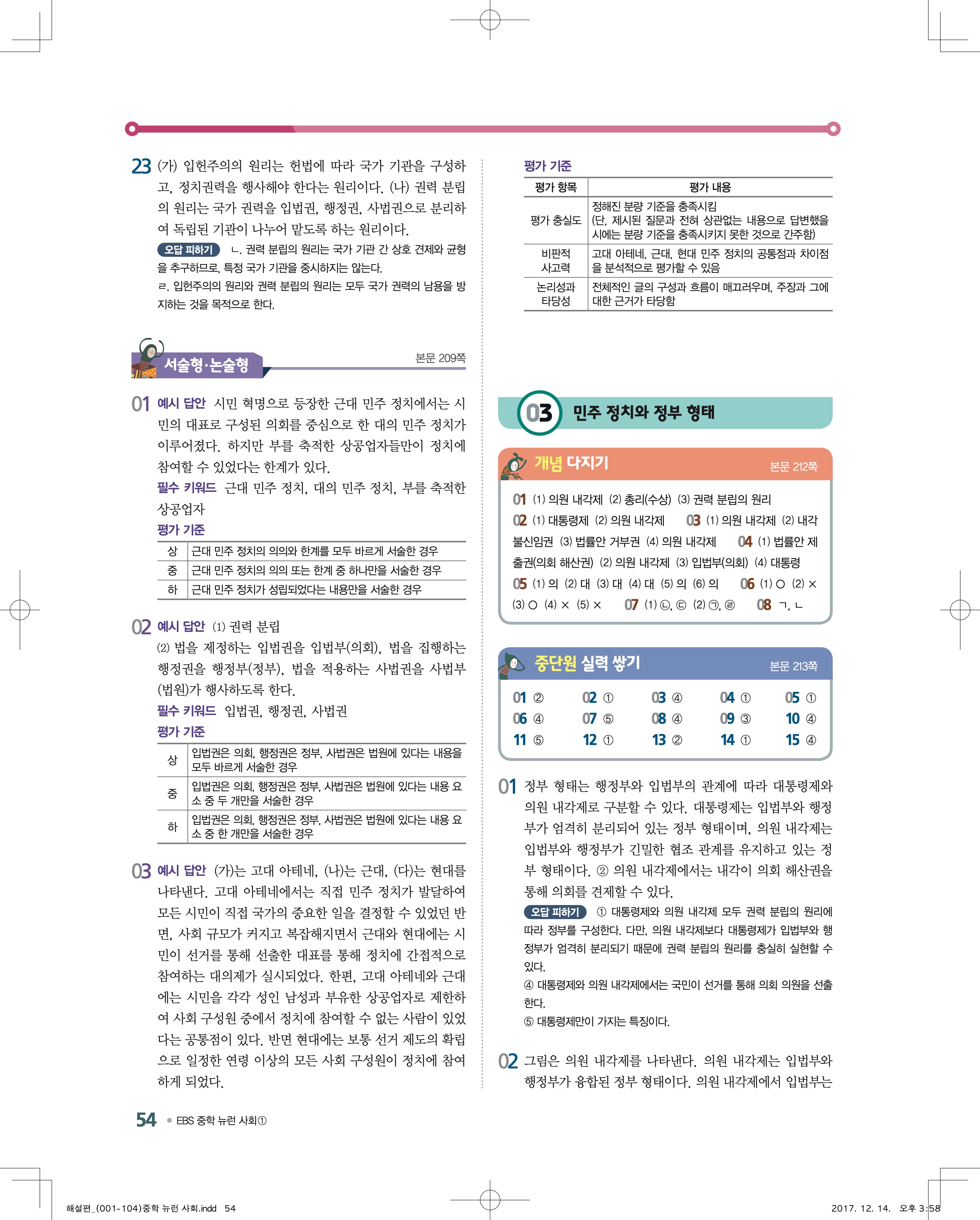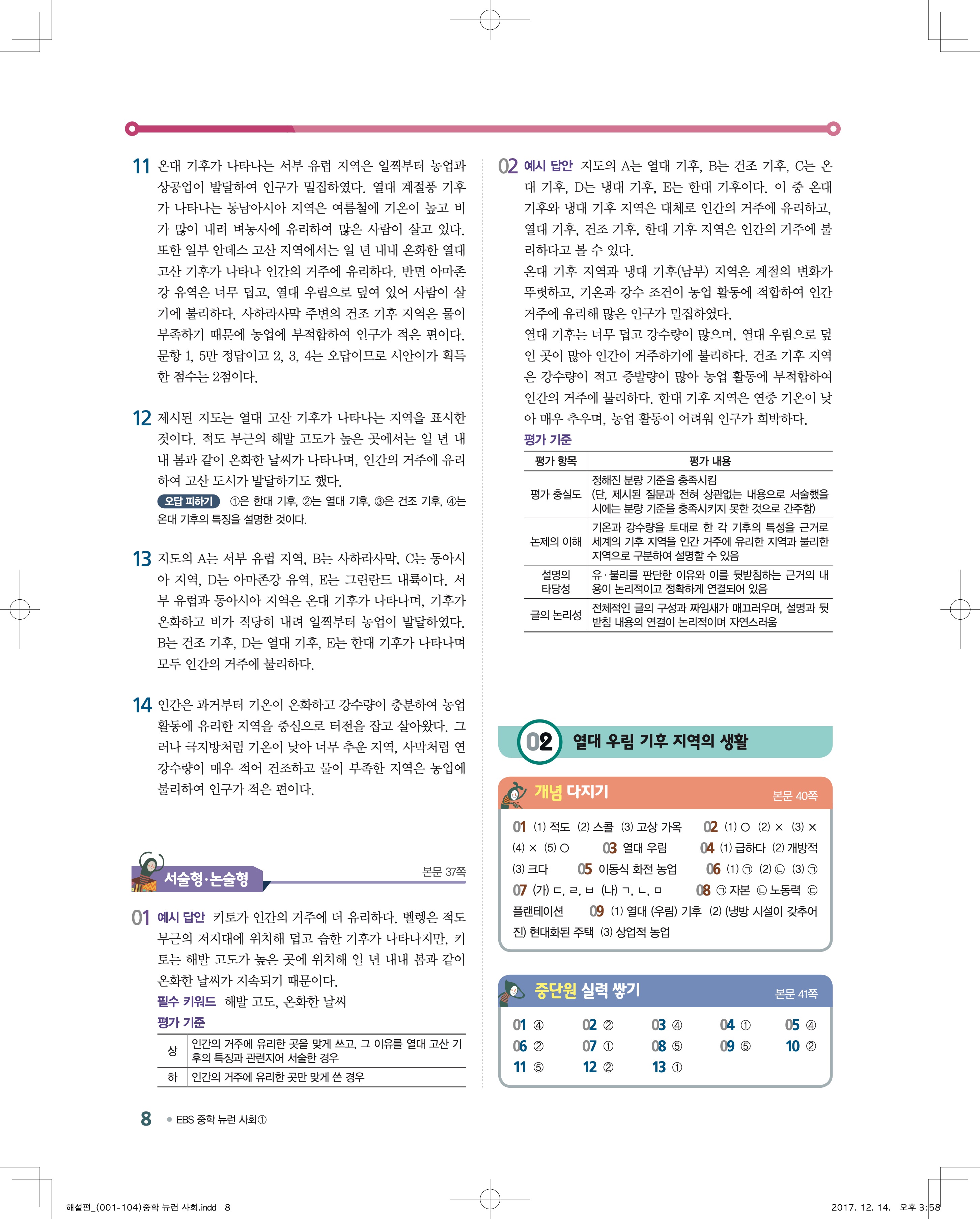EBS 중학뉴런 사회1 답지 해설 바로보는 사진답지 빠른답지 모바일최적화