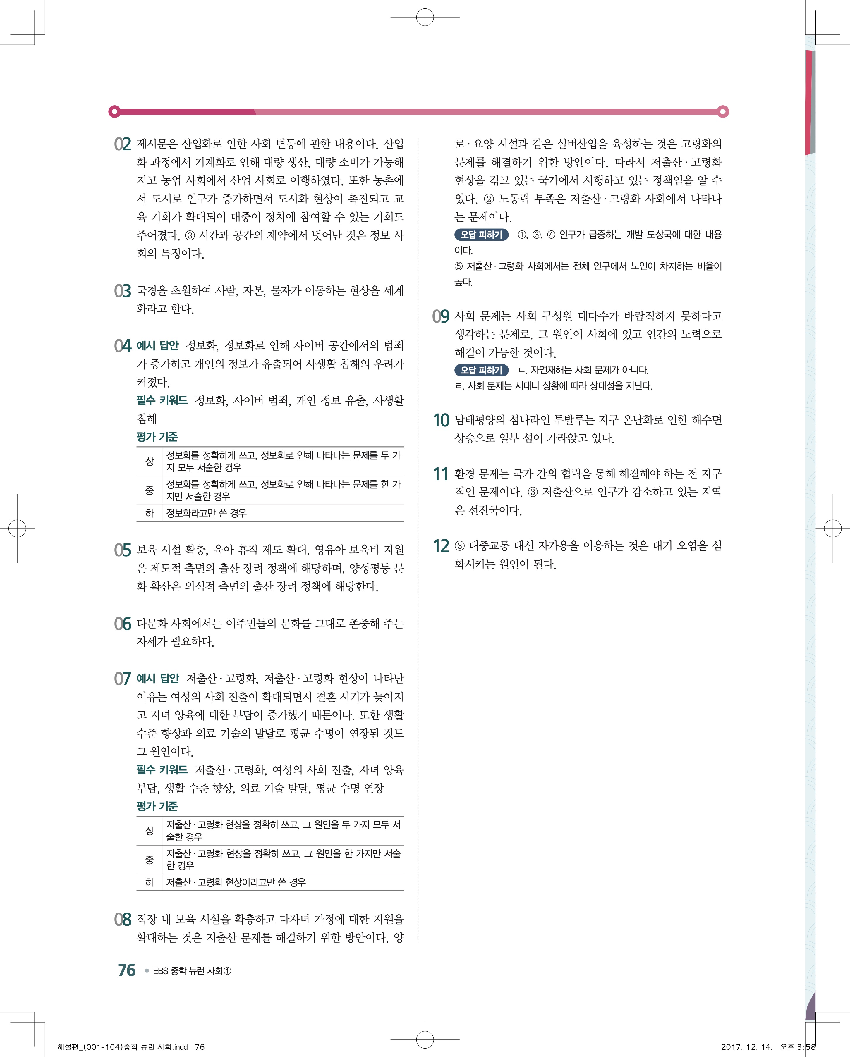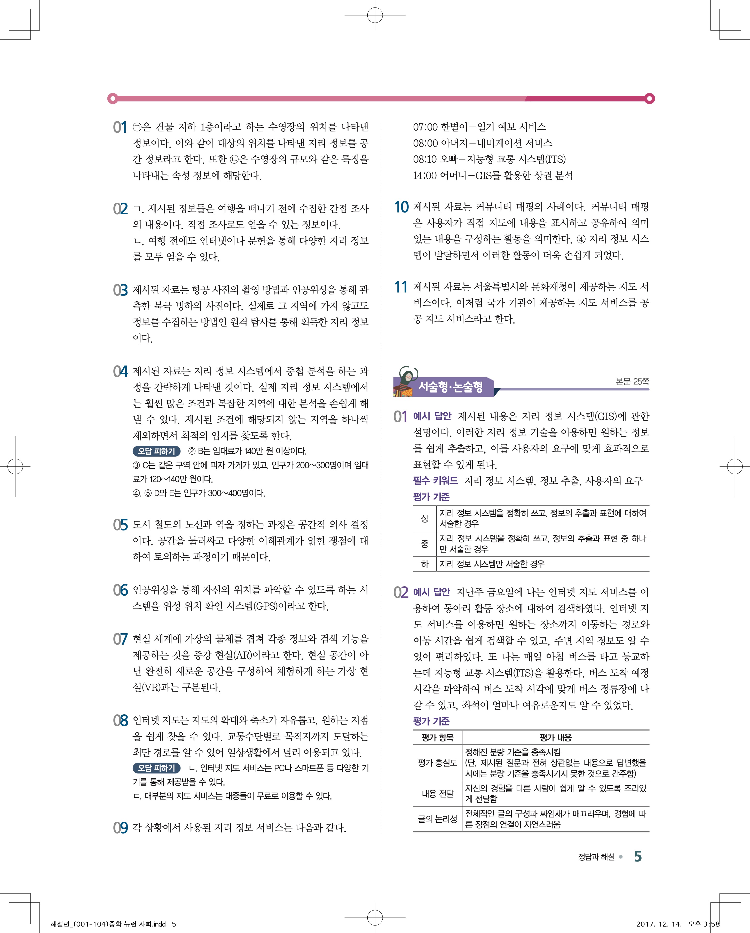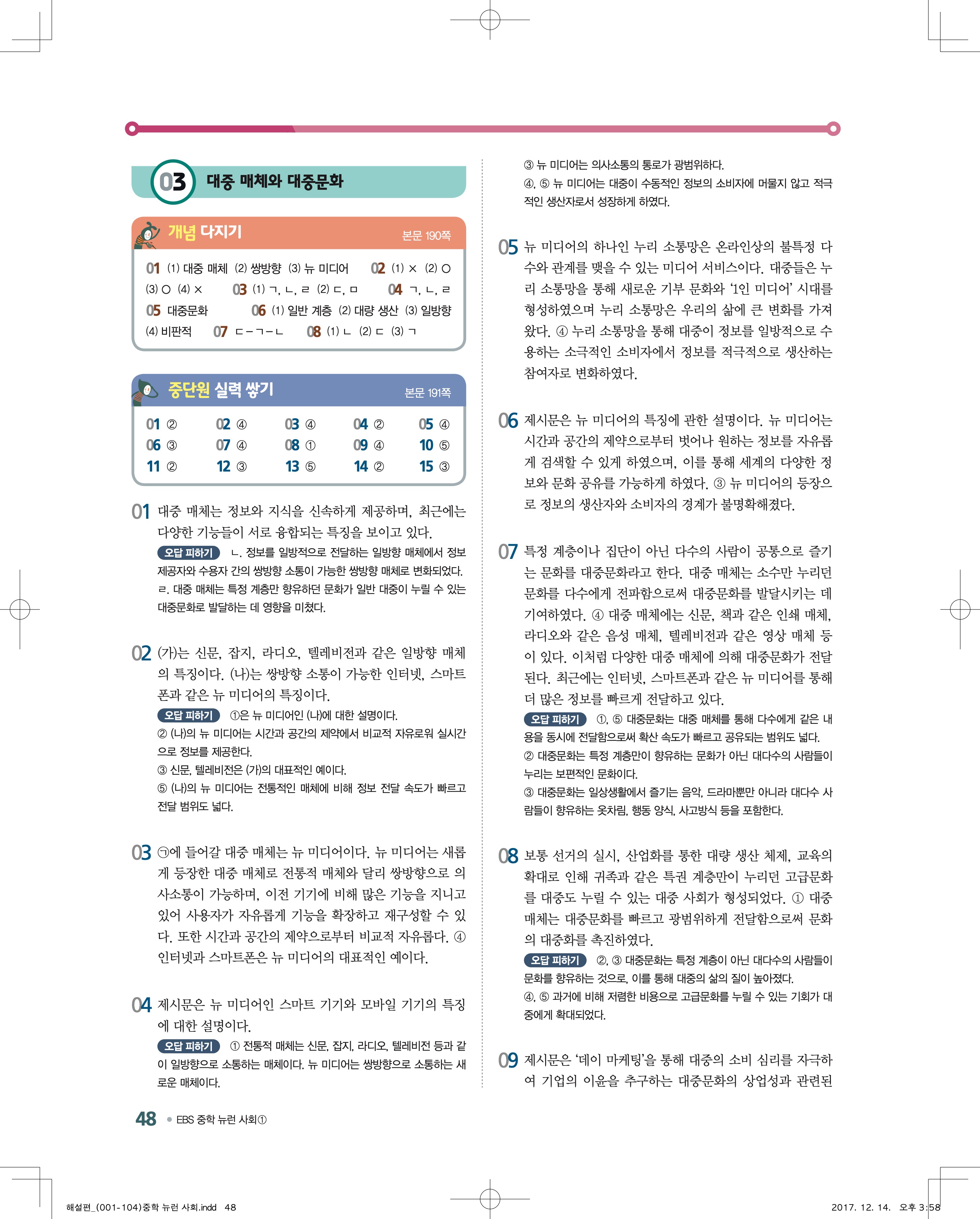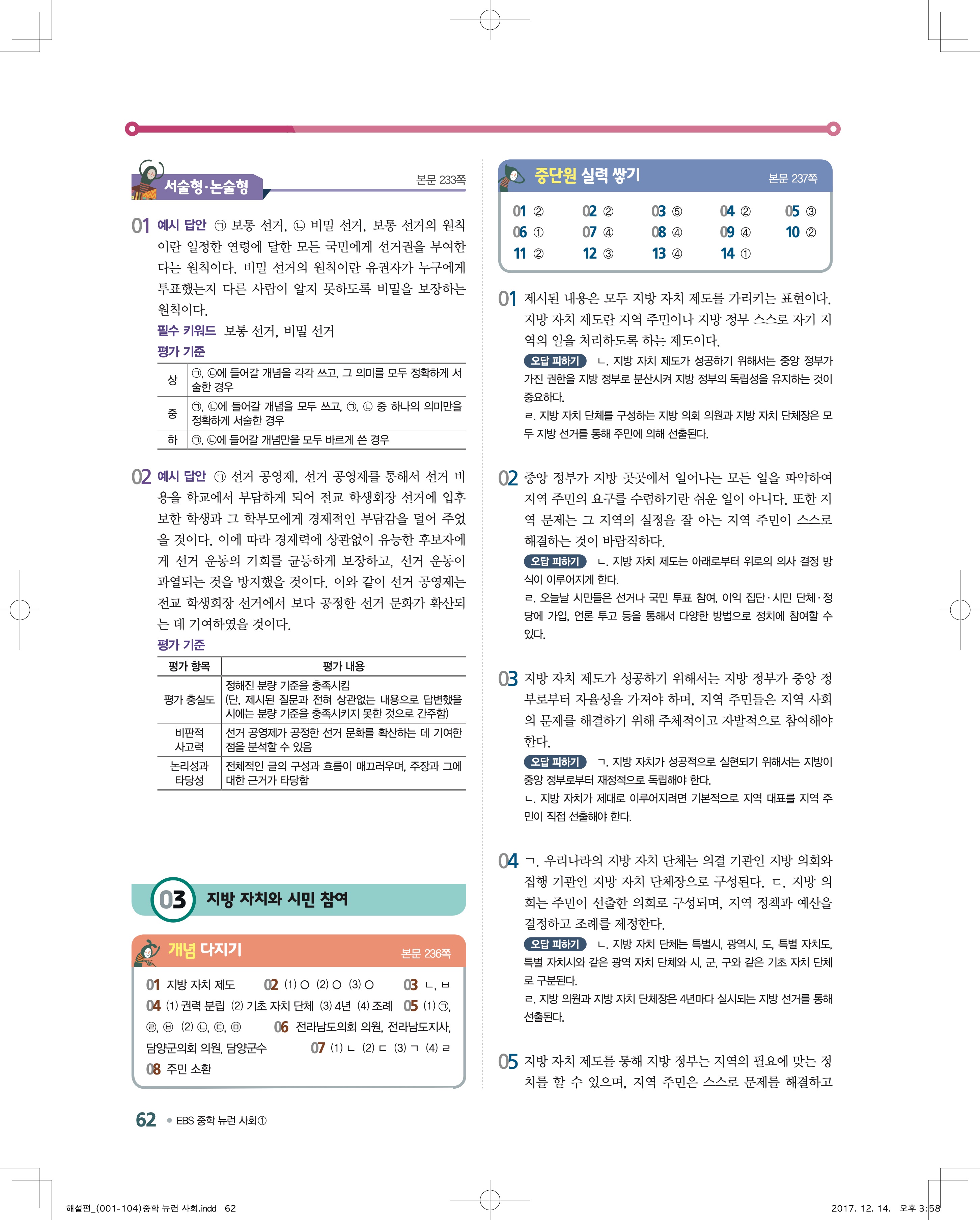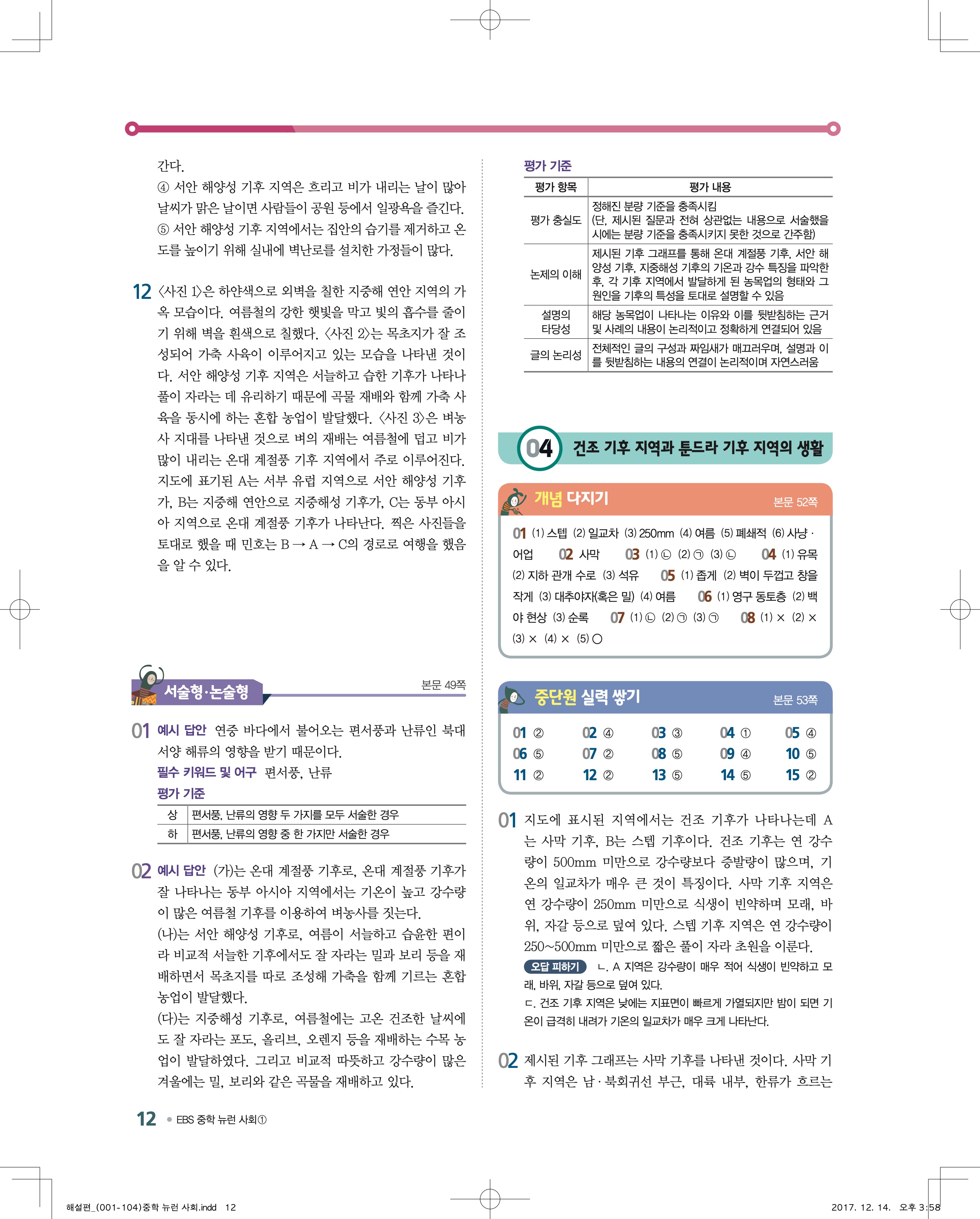 EBS 중학뉴런 사회1 답지 해설 바로보는 사진답지 빠른답지 모바일최적화