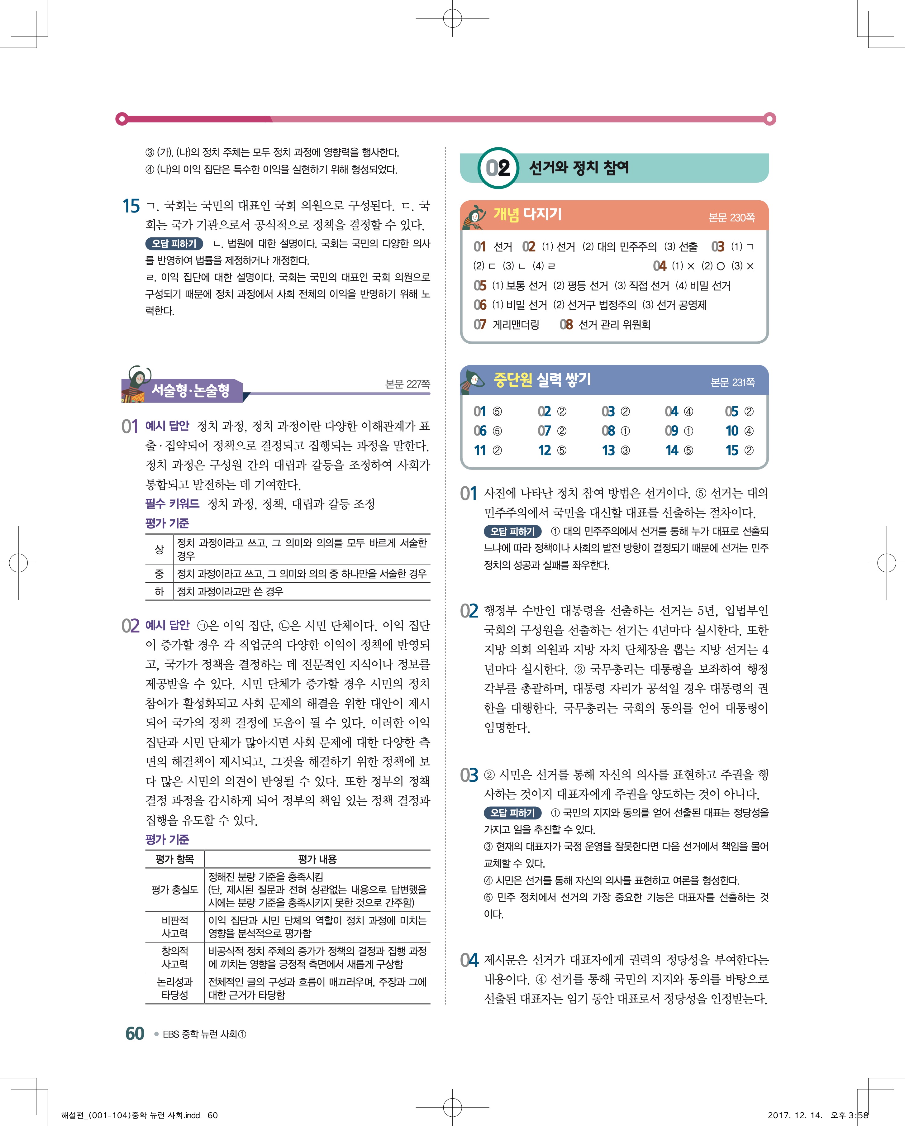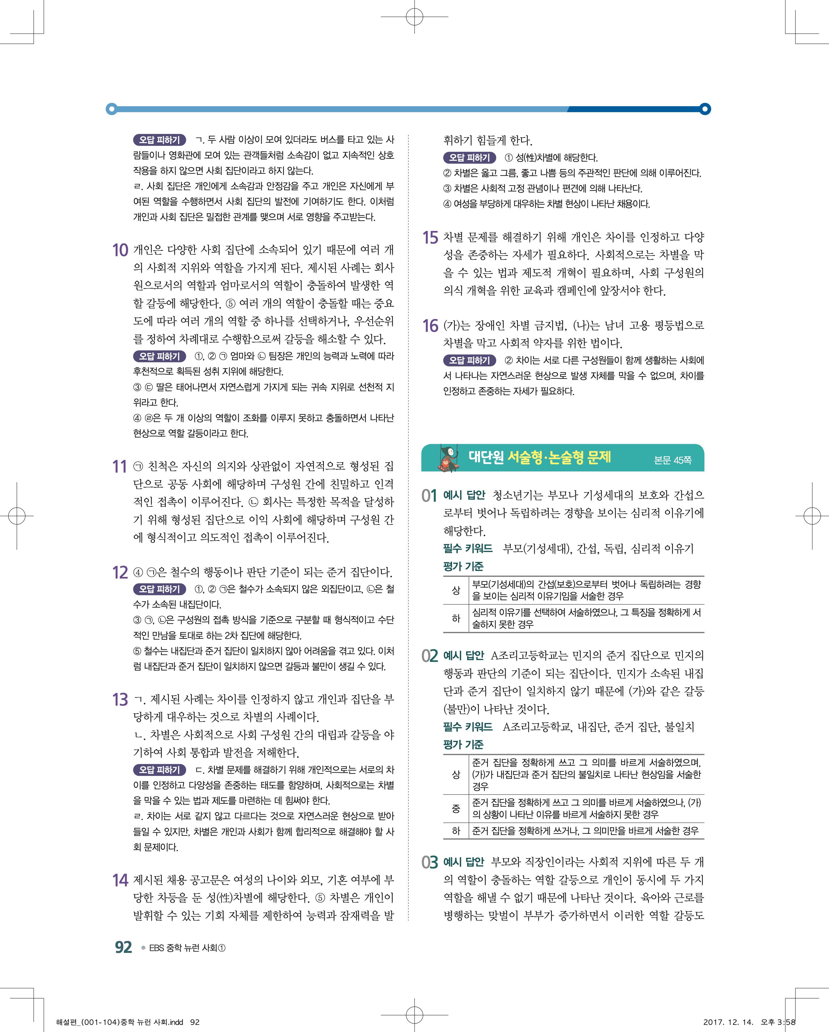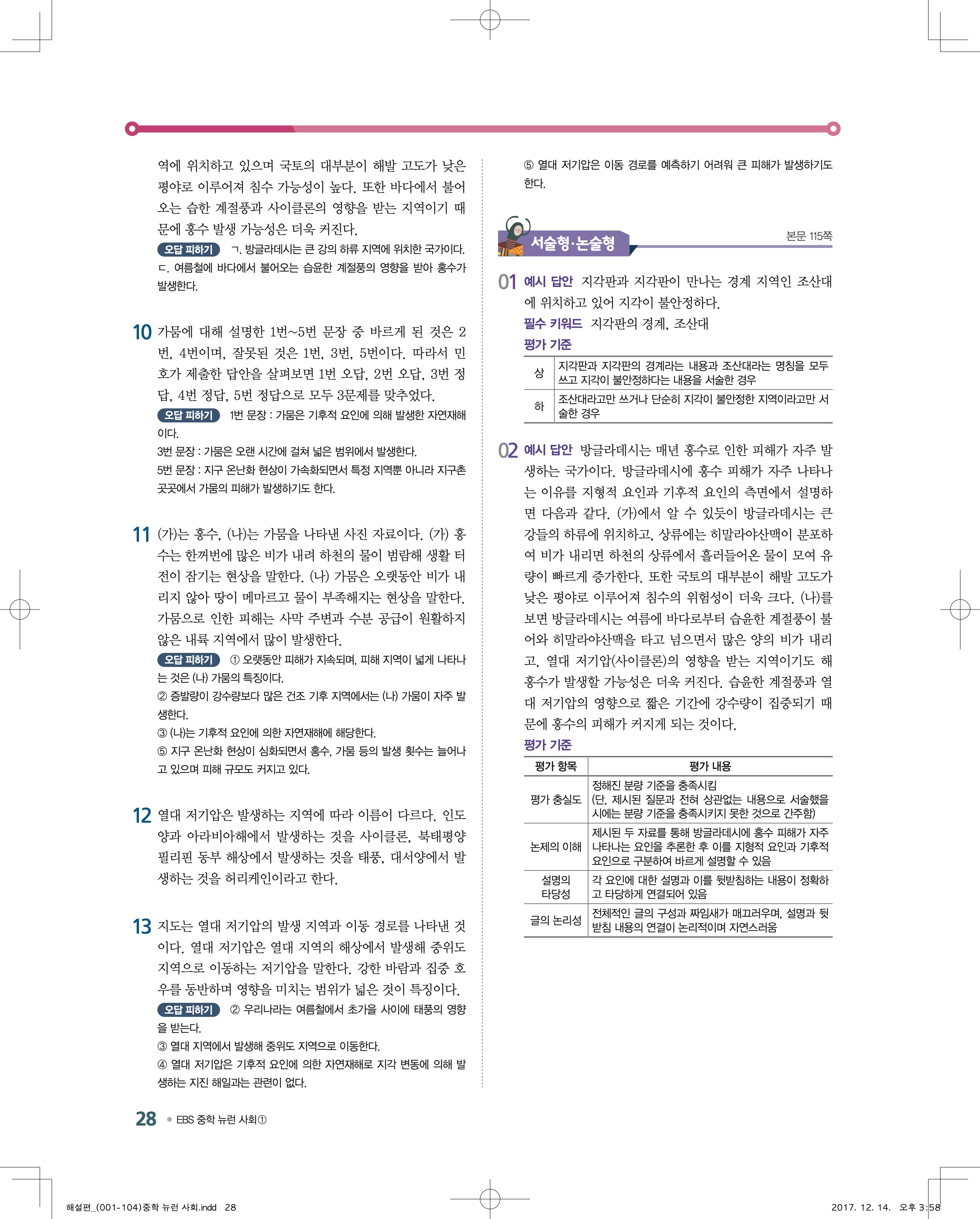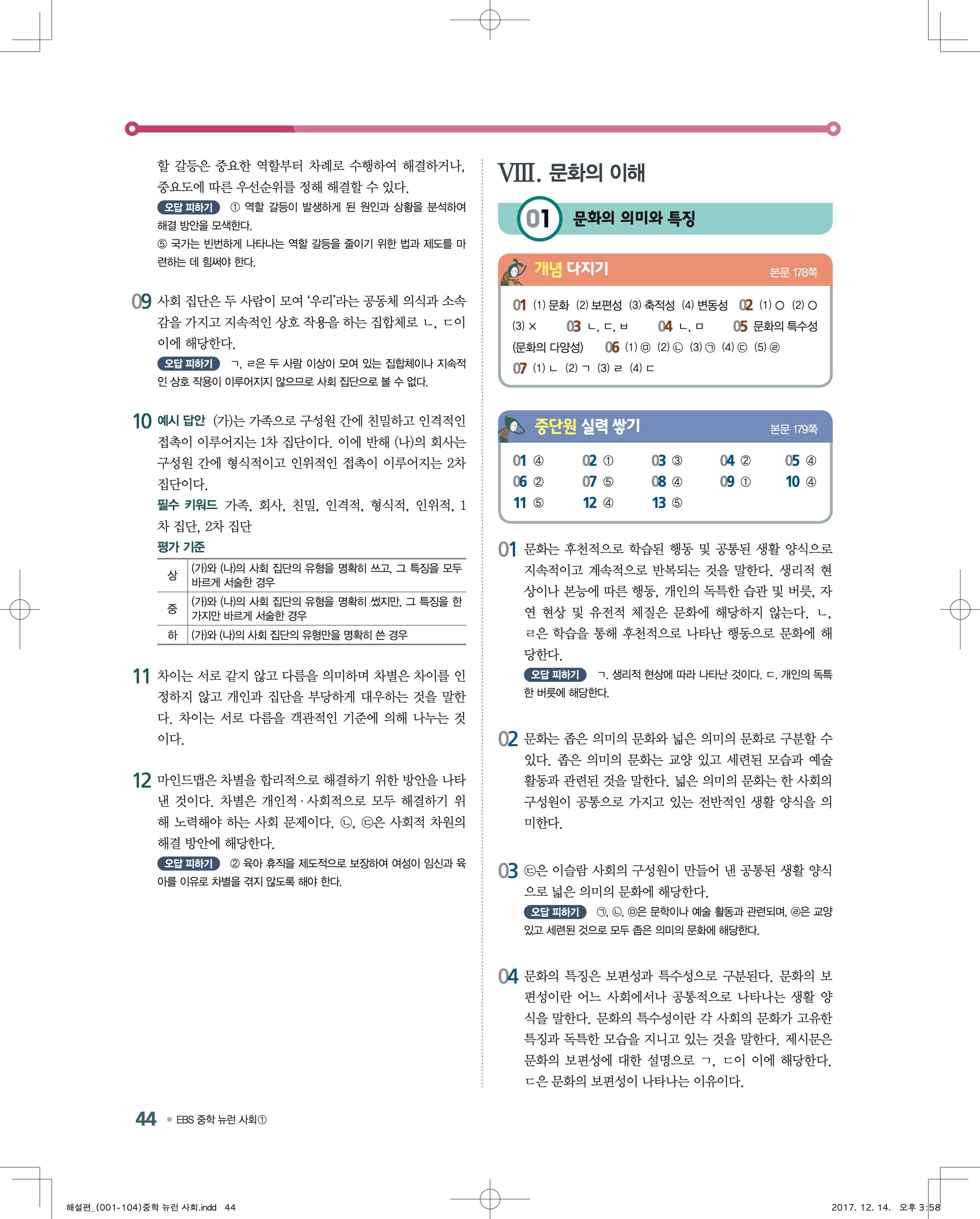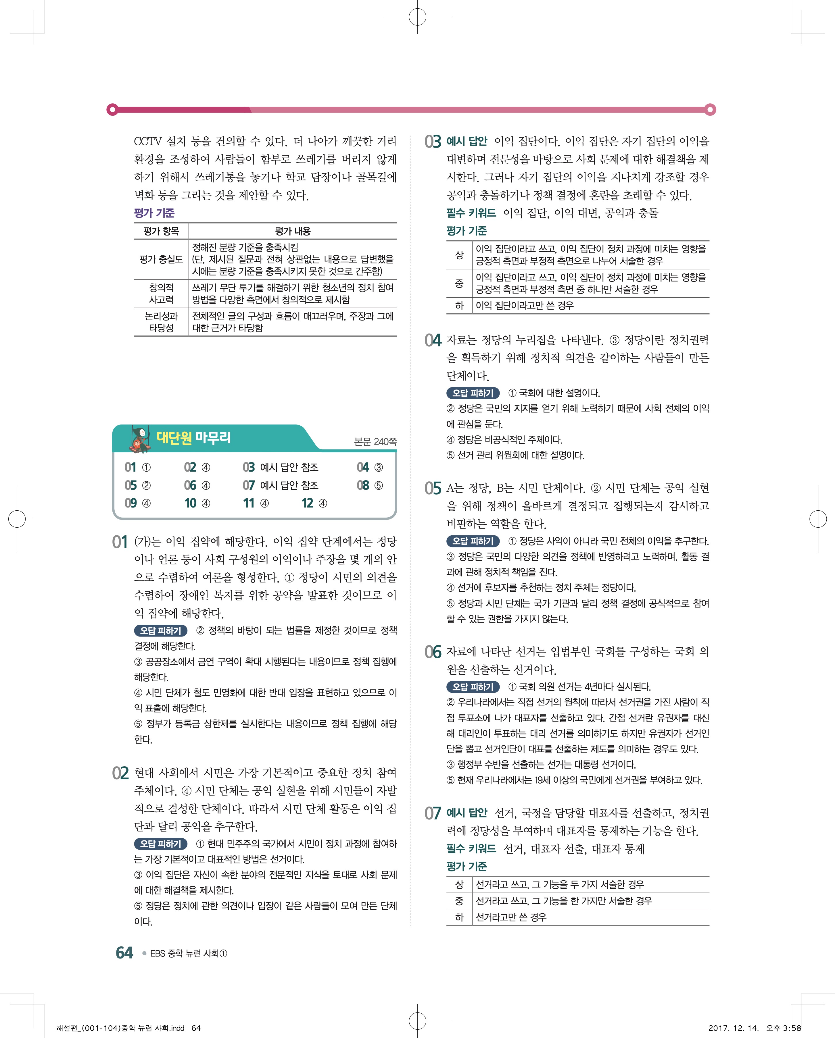 EBS 중학뉴런 사회1 답지 해설 바로보는 사진답지 빠른답지 모바일최적화