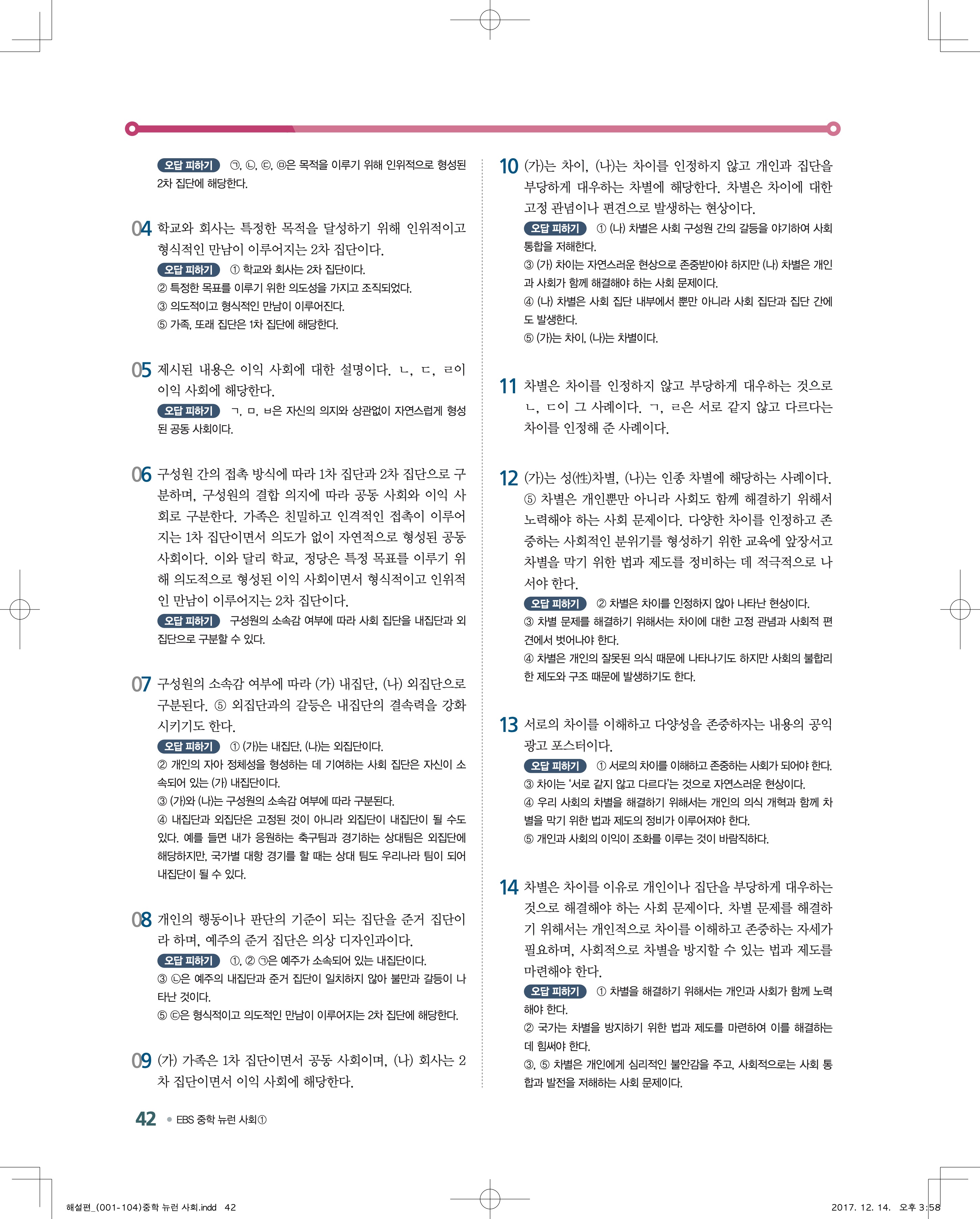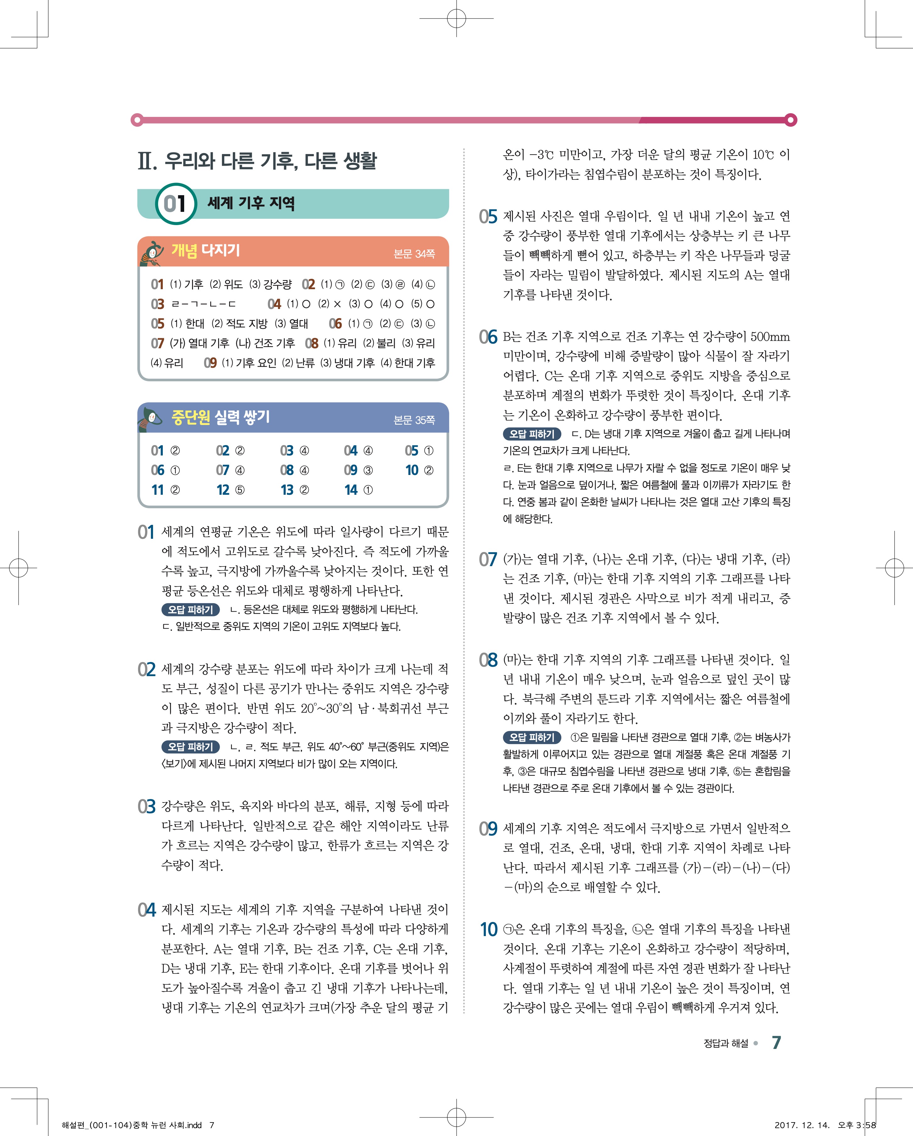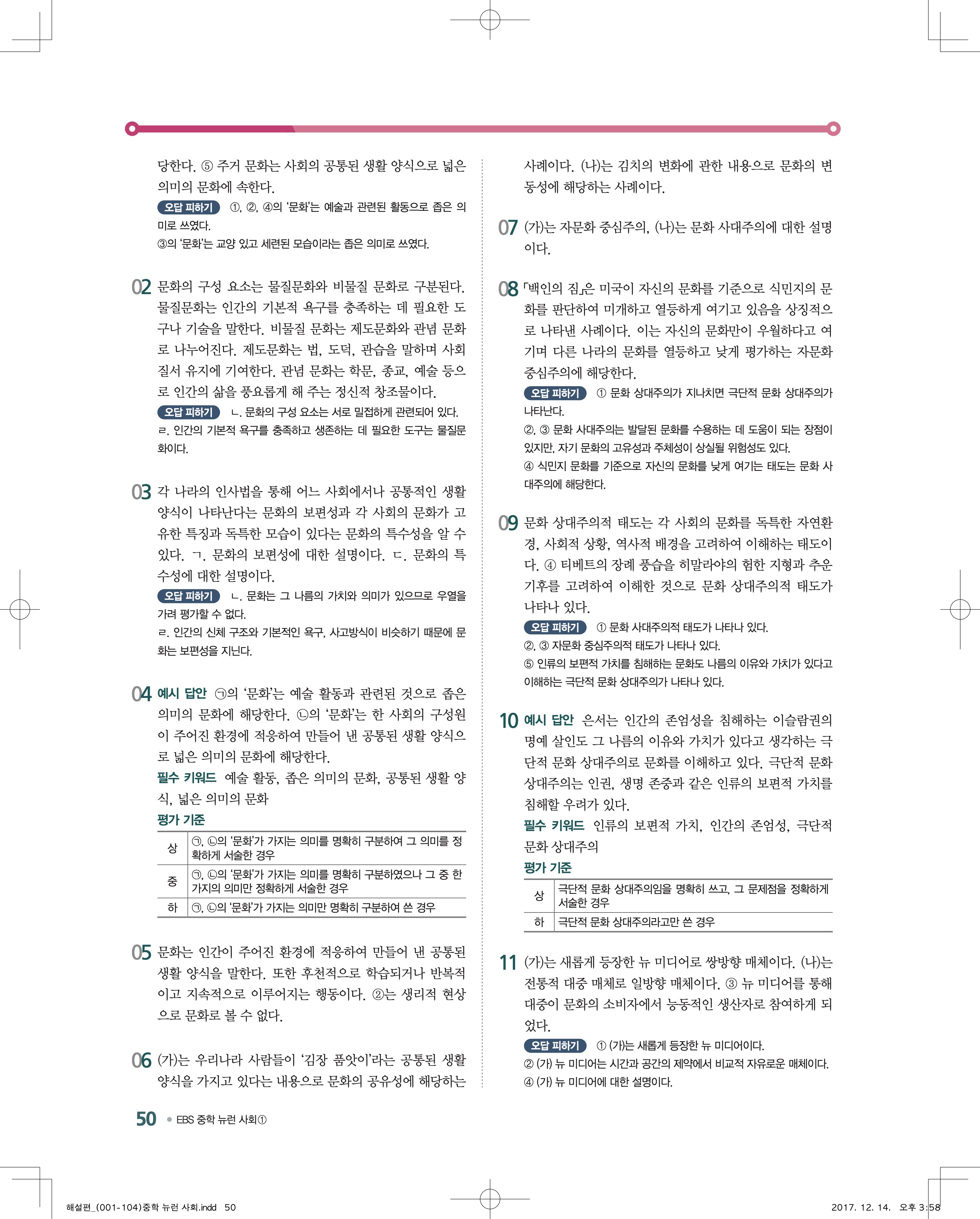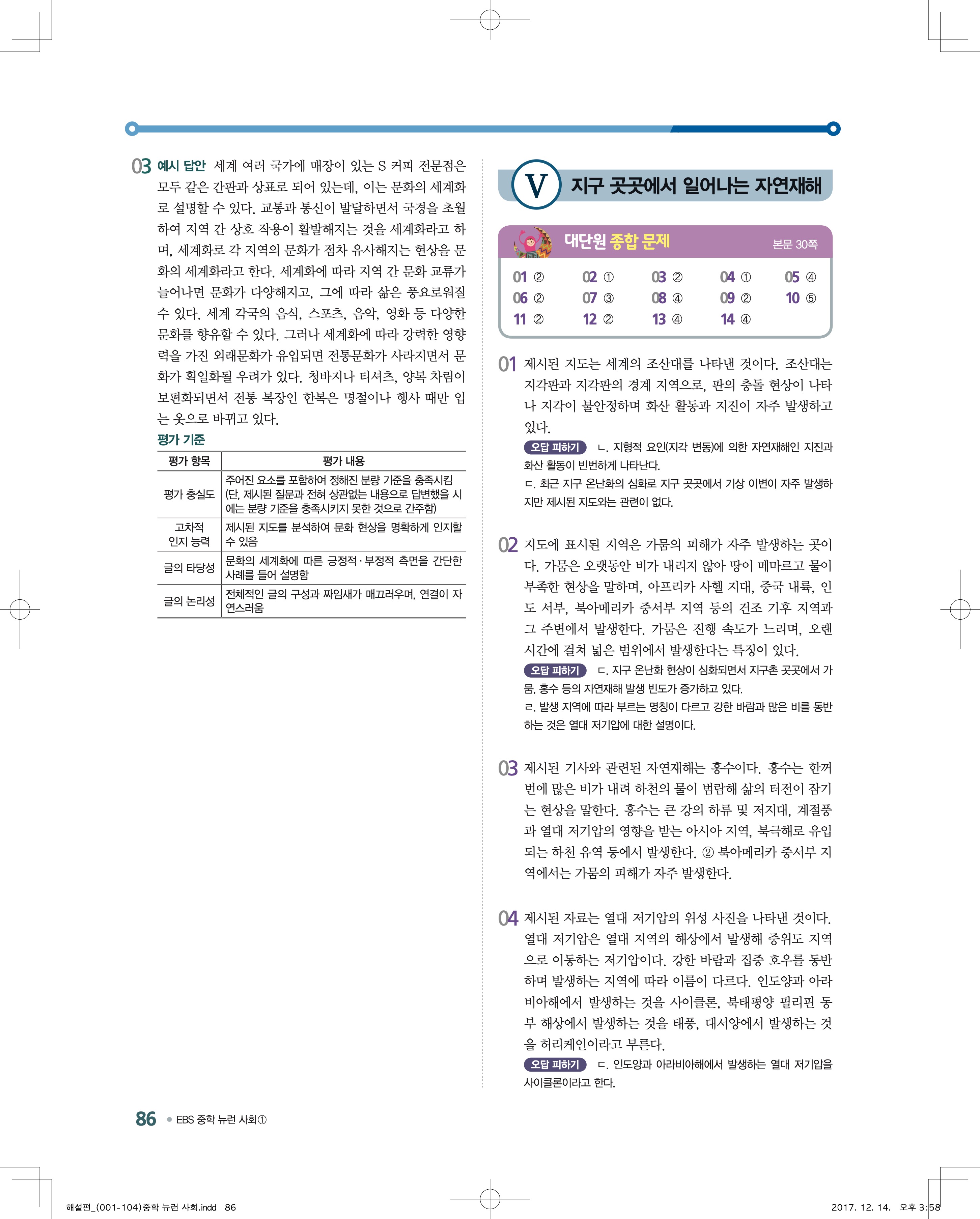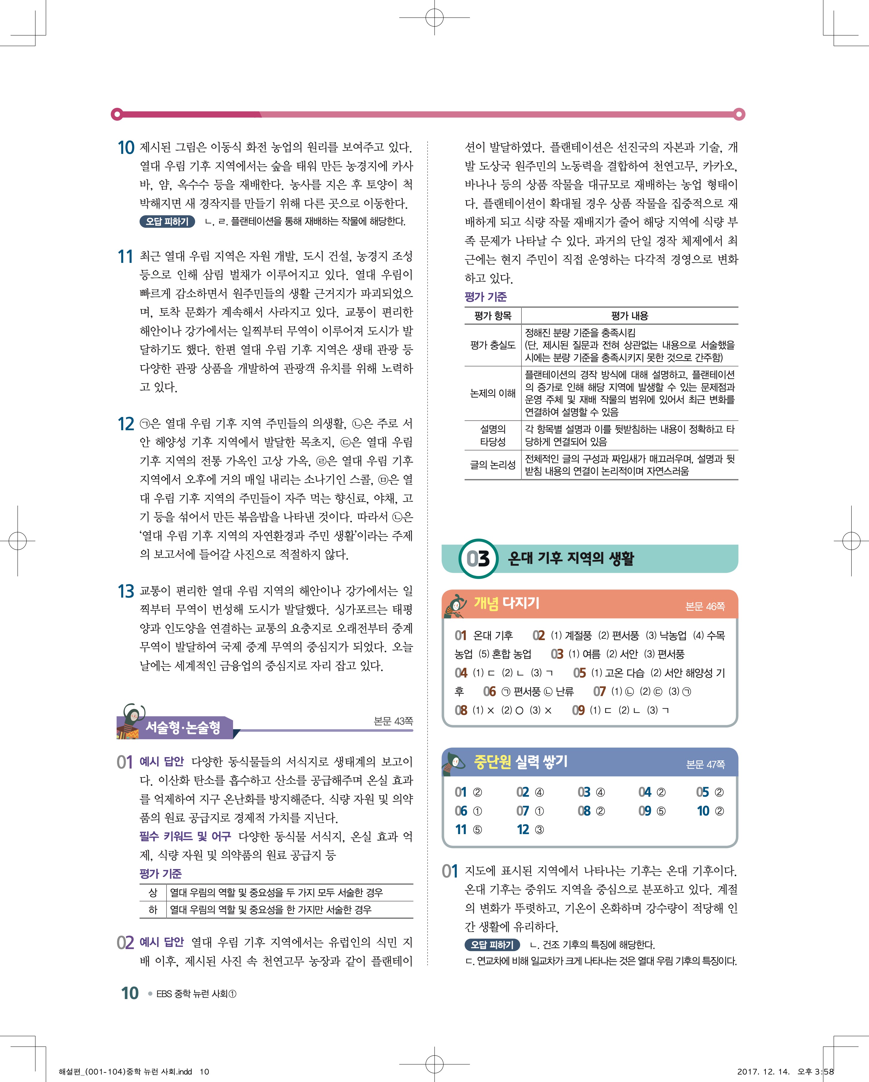 EBS 중학뉴런 사회1 답지 해설 바로보는 사진답지 빠른답지 모바일최적화