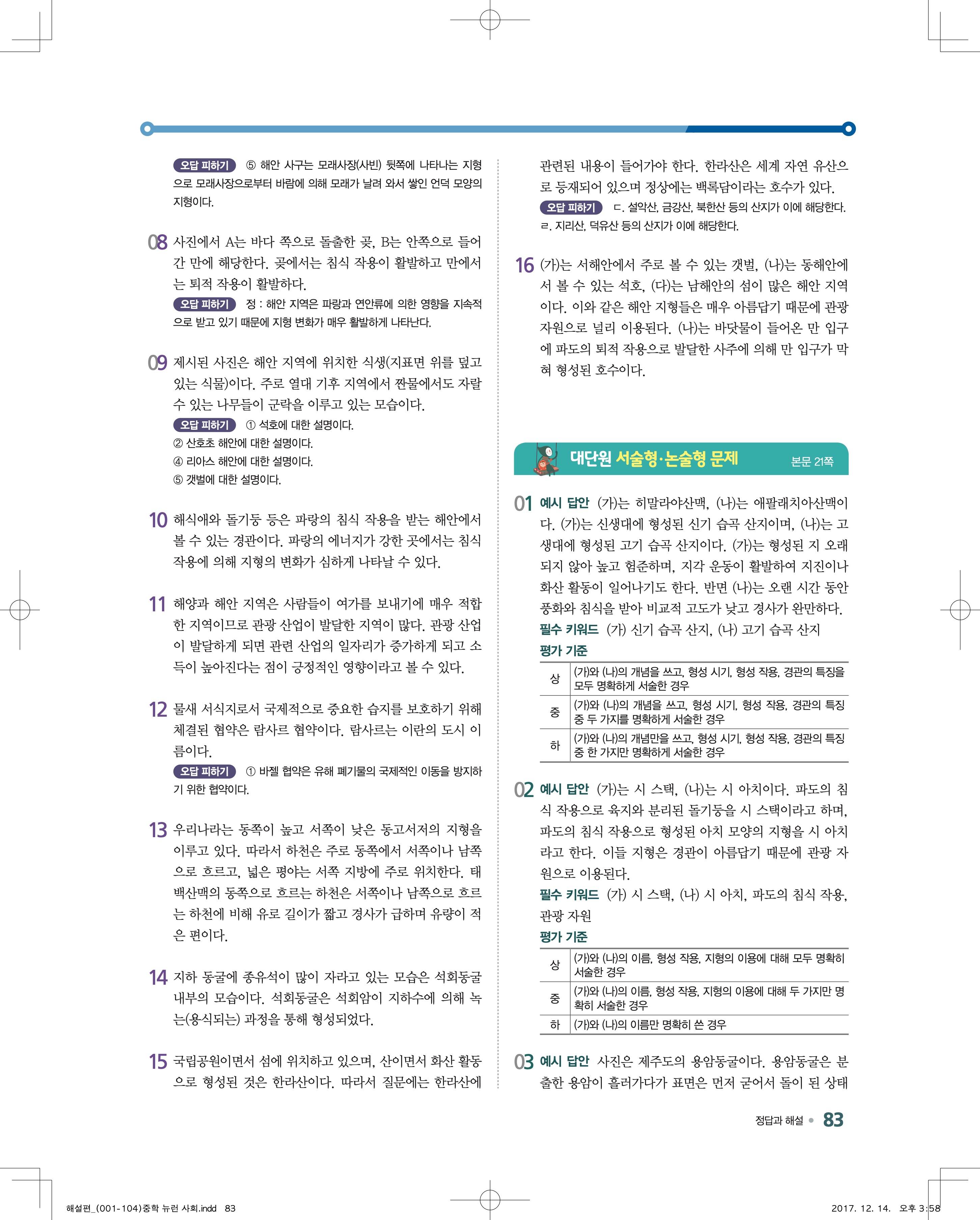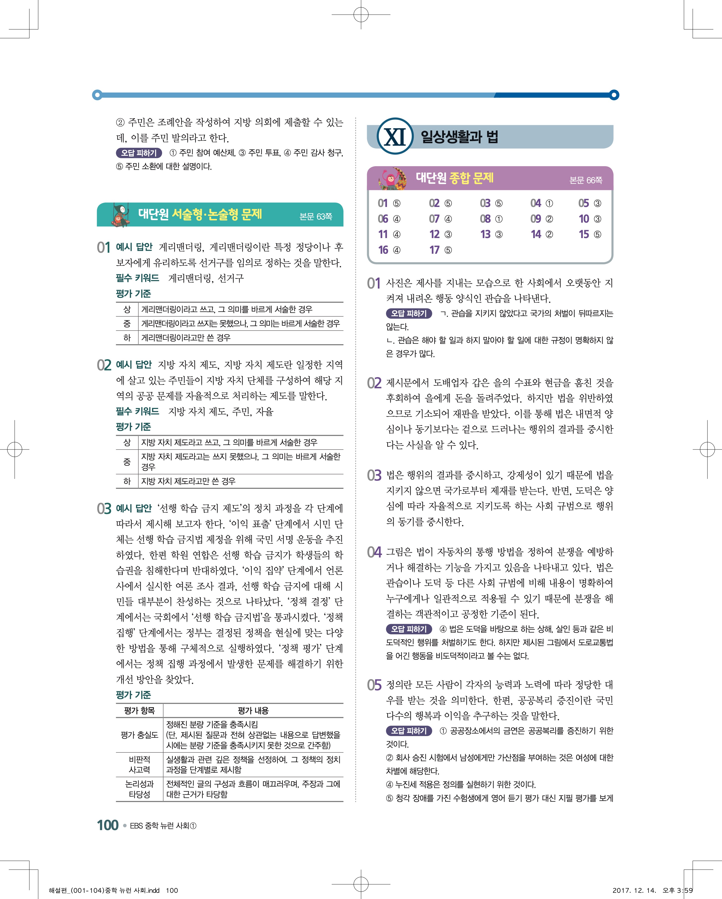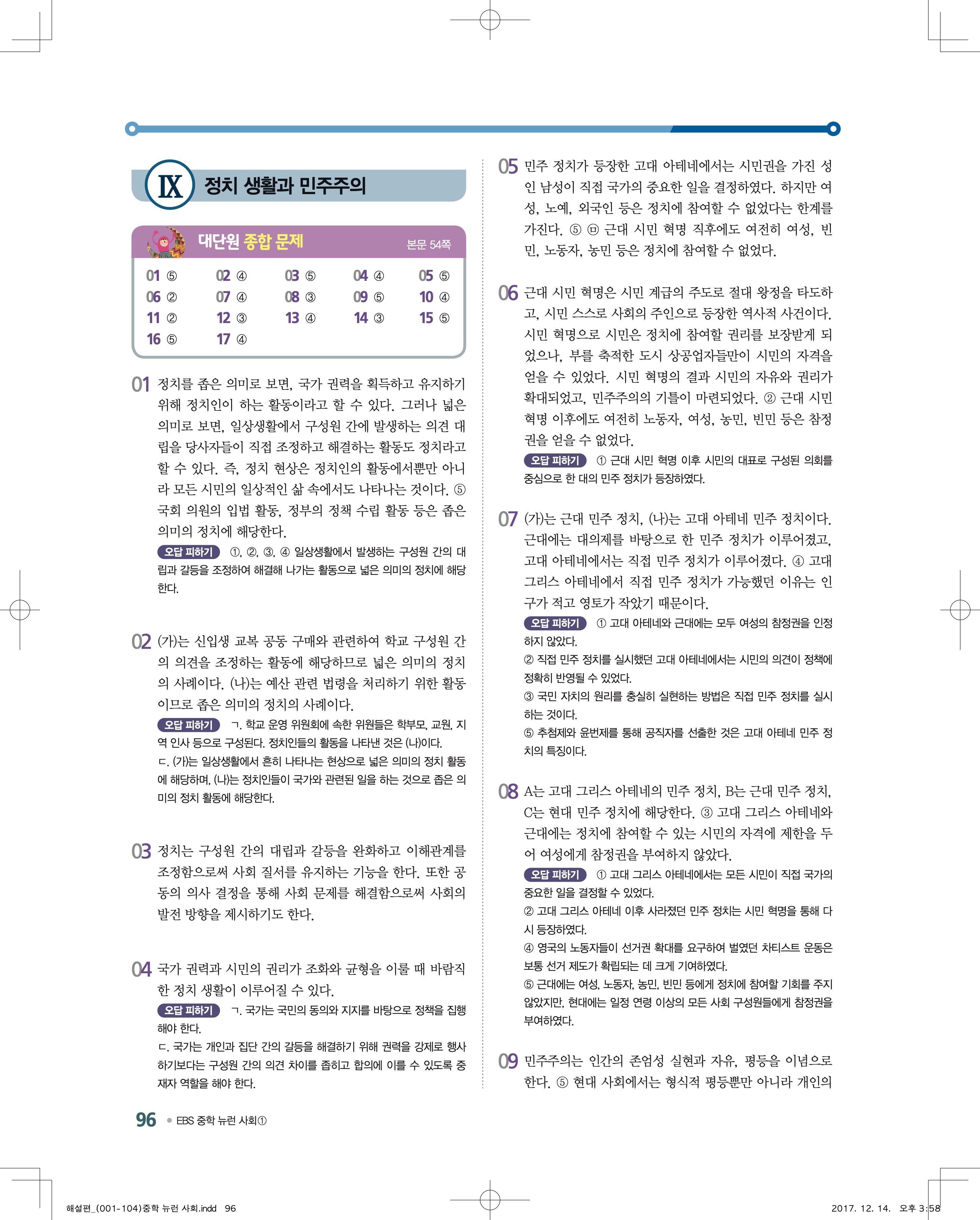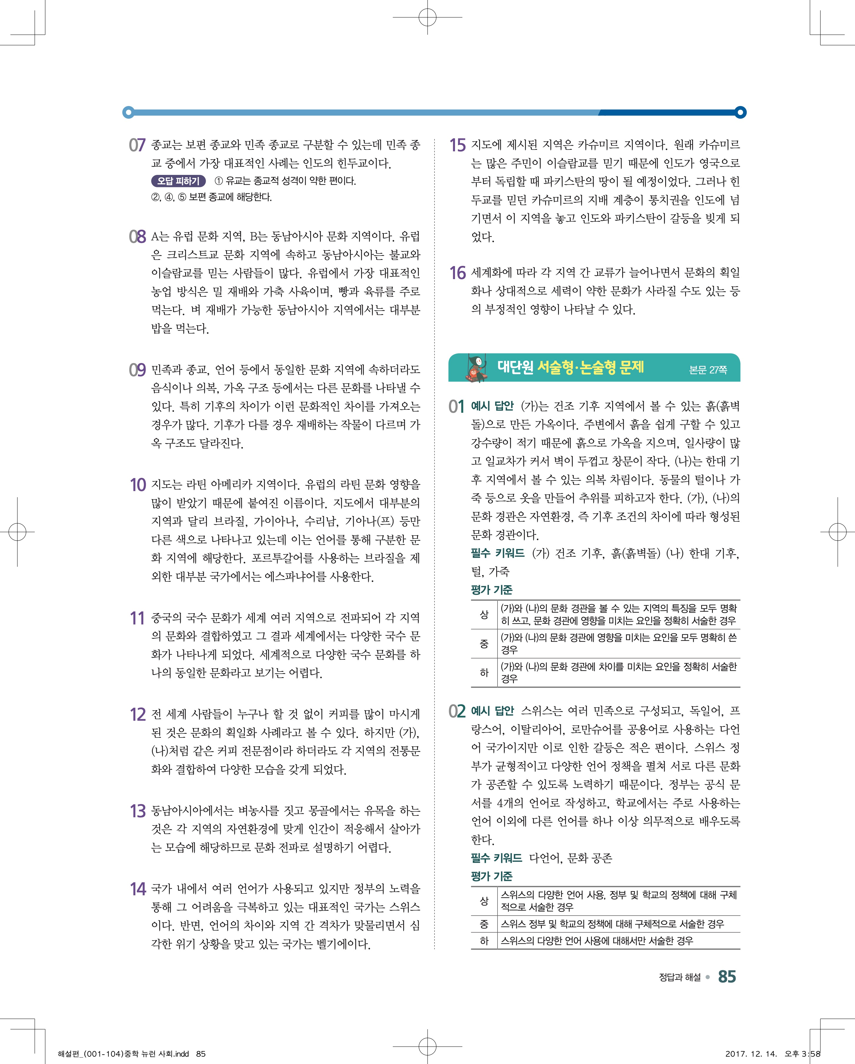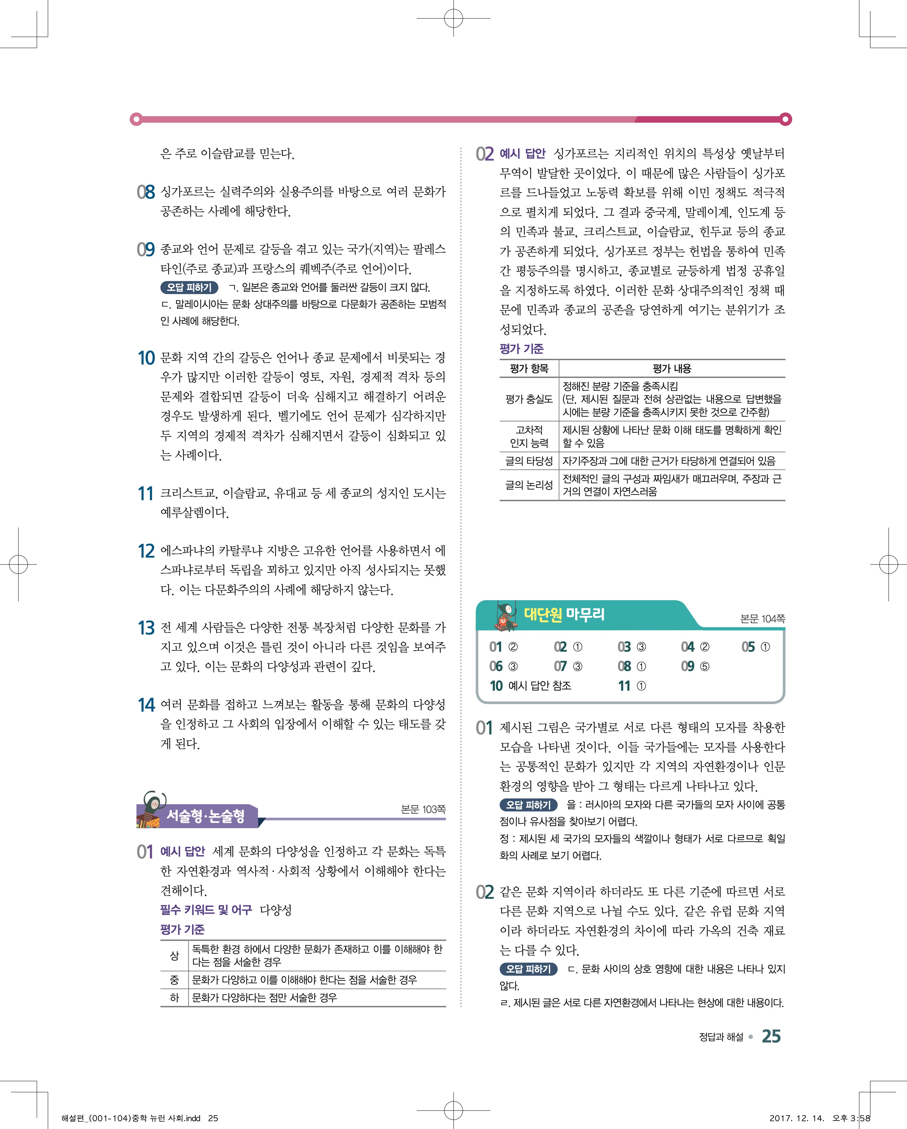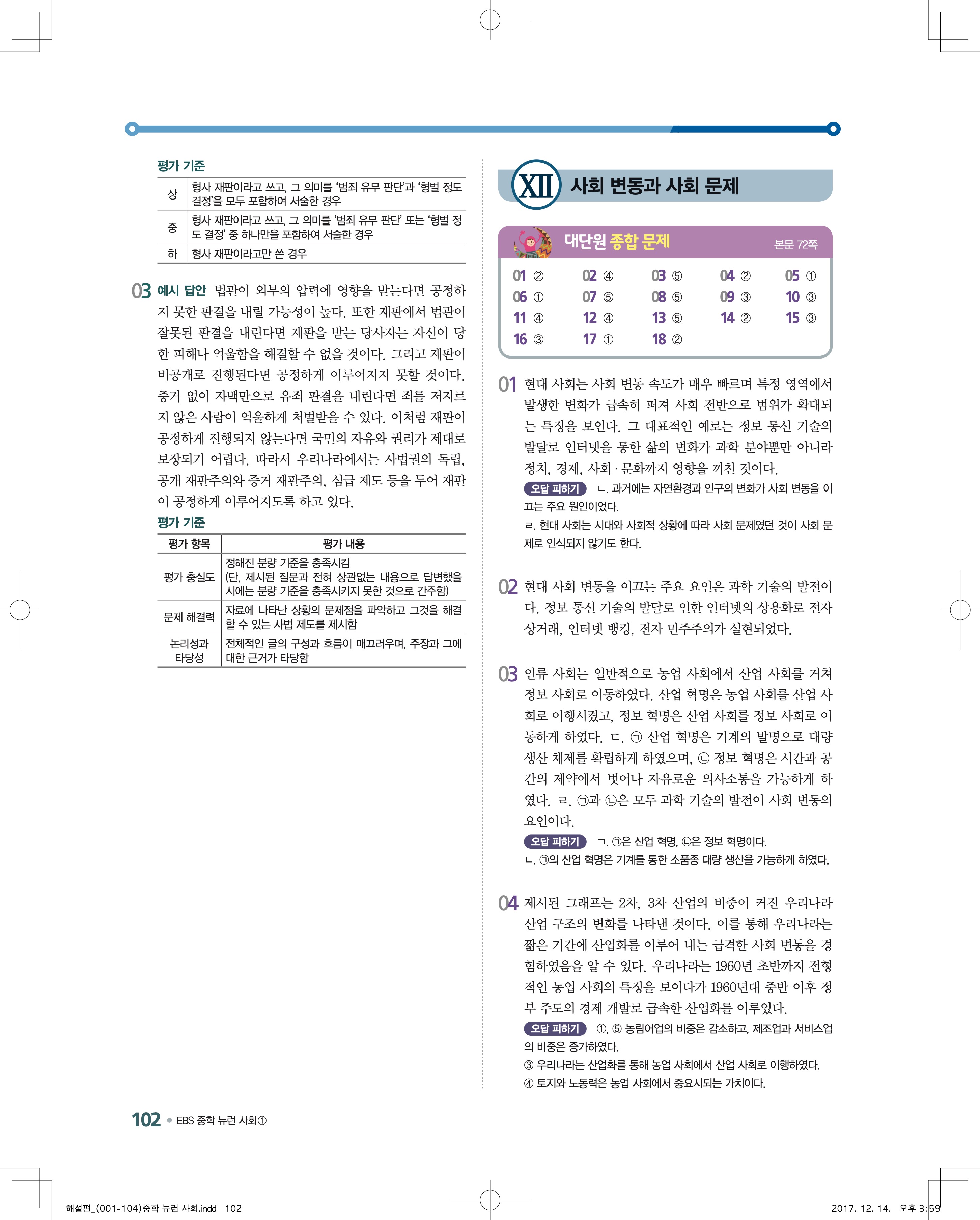 EBS 중학뉴런 사회1 답지 해설 바로보는 사진답지 빠른답지 모바일최적화