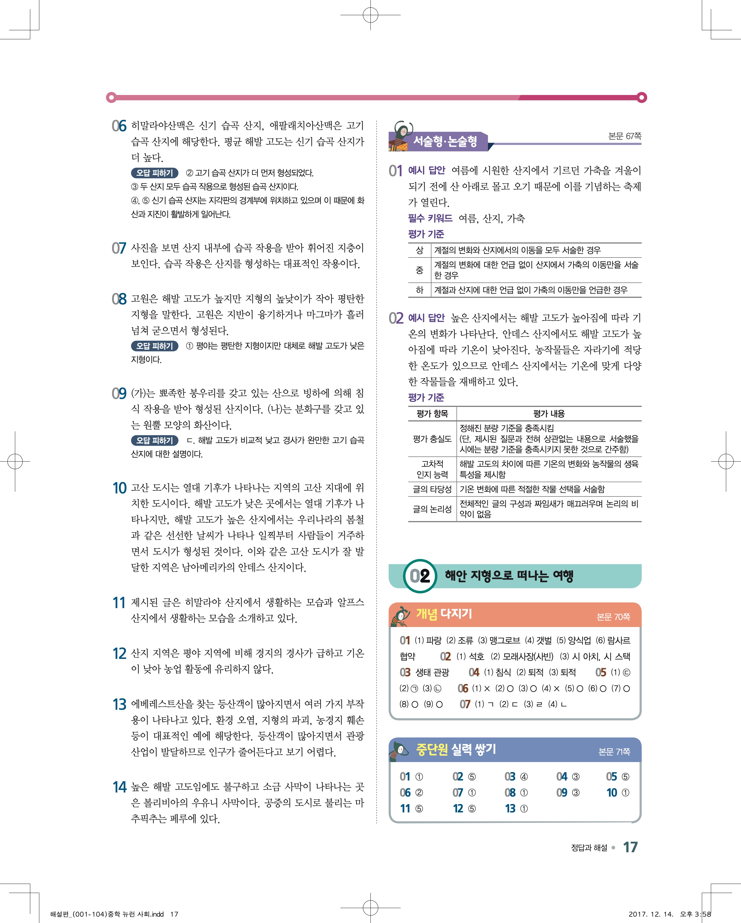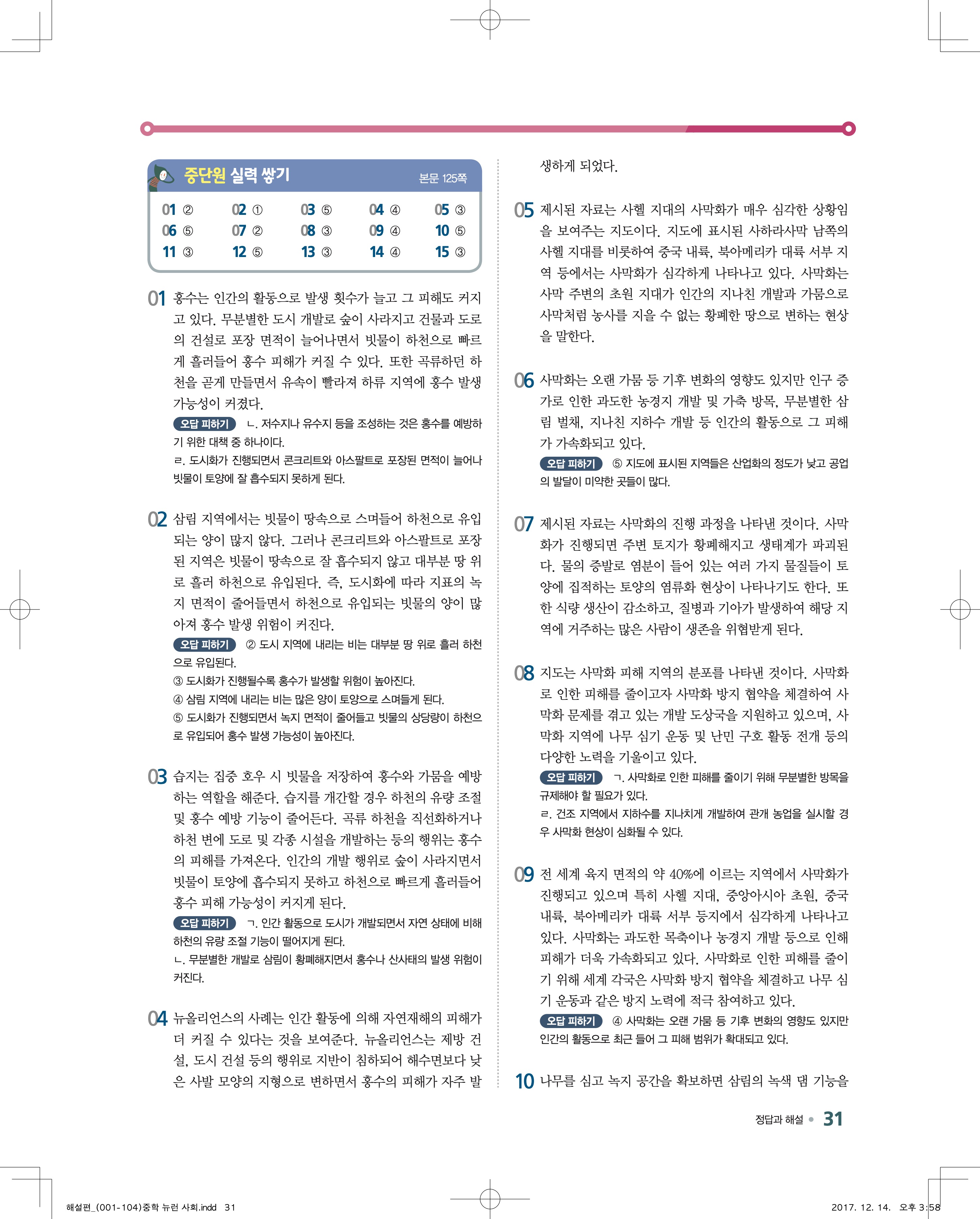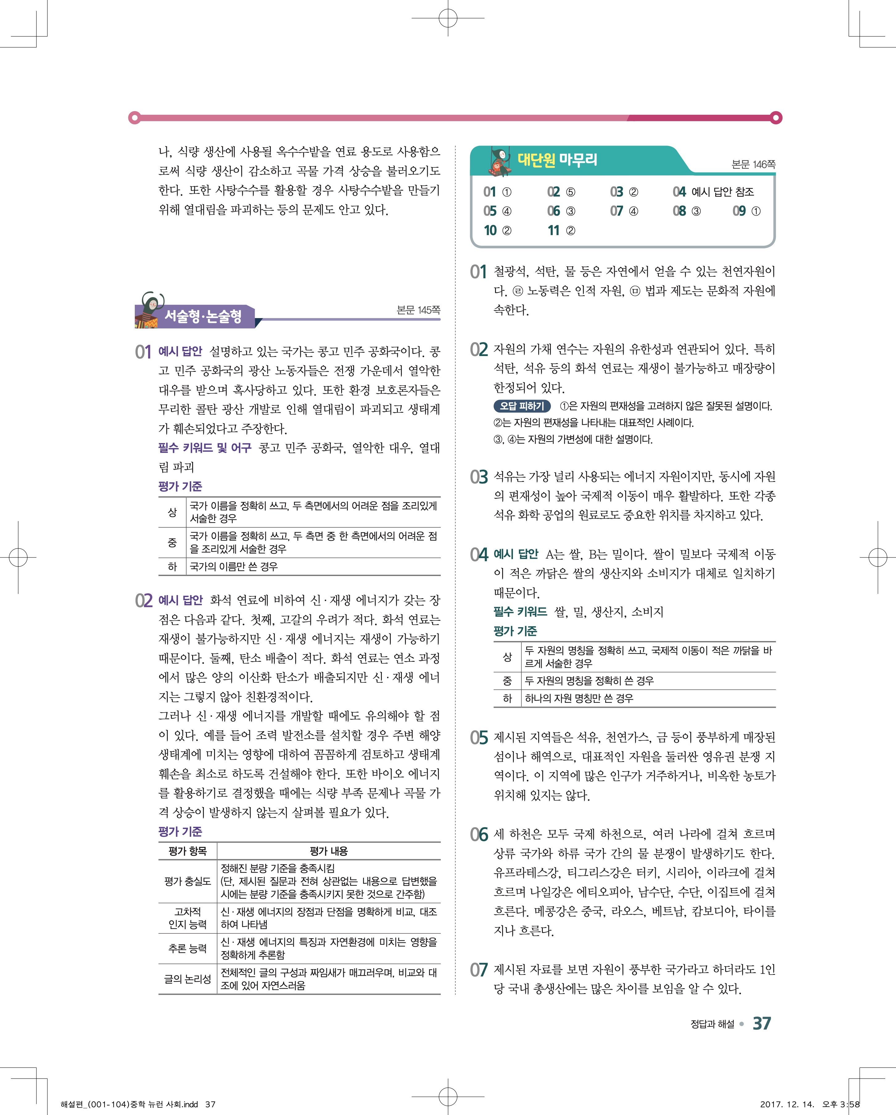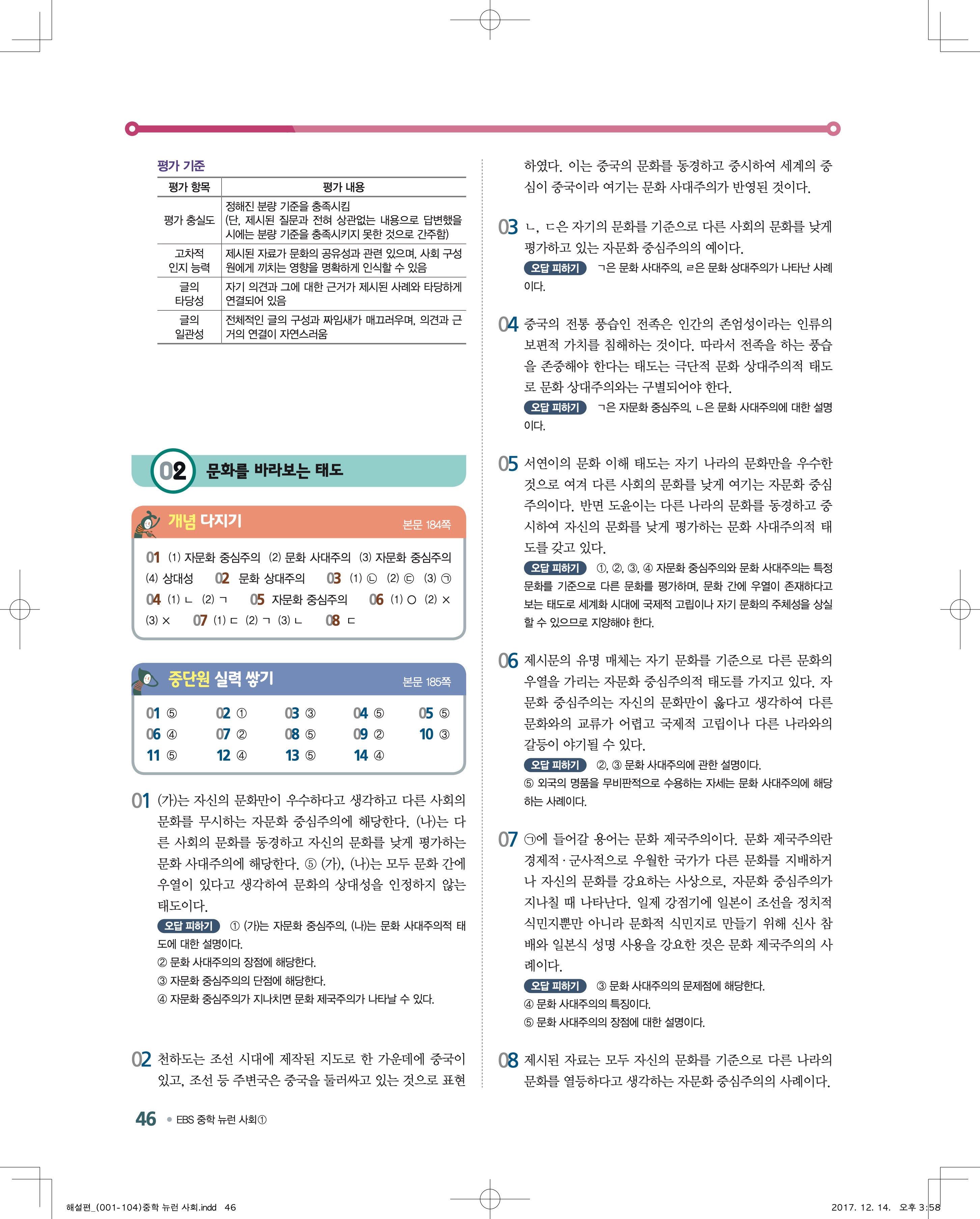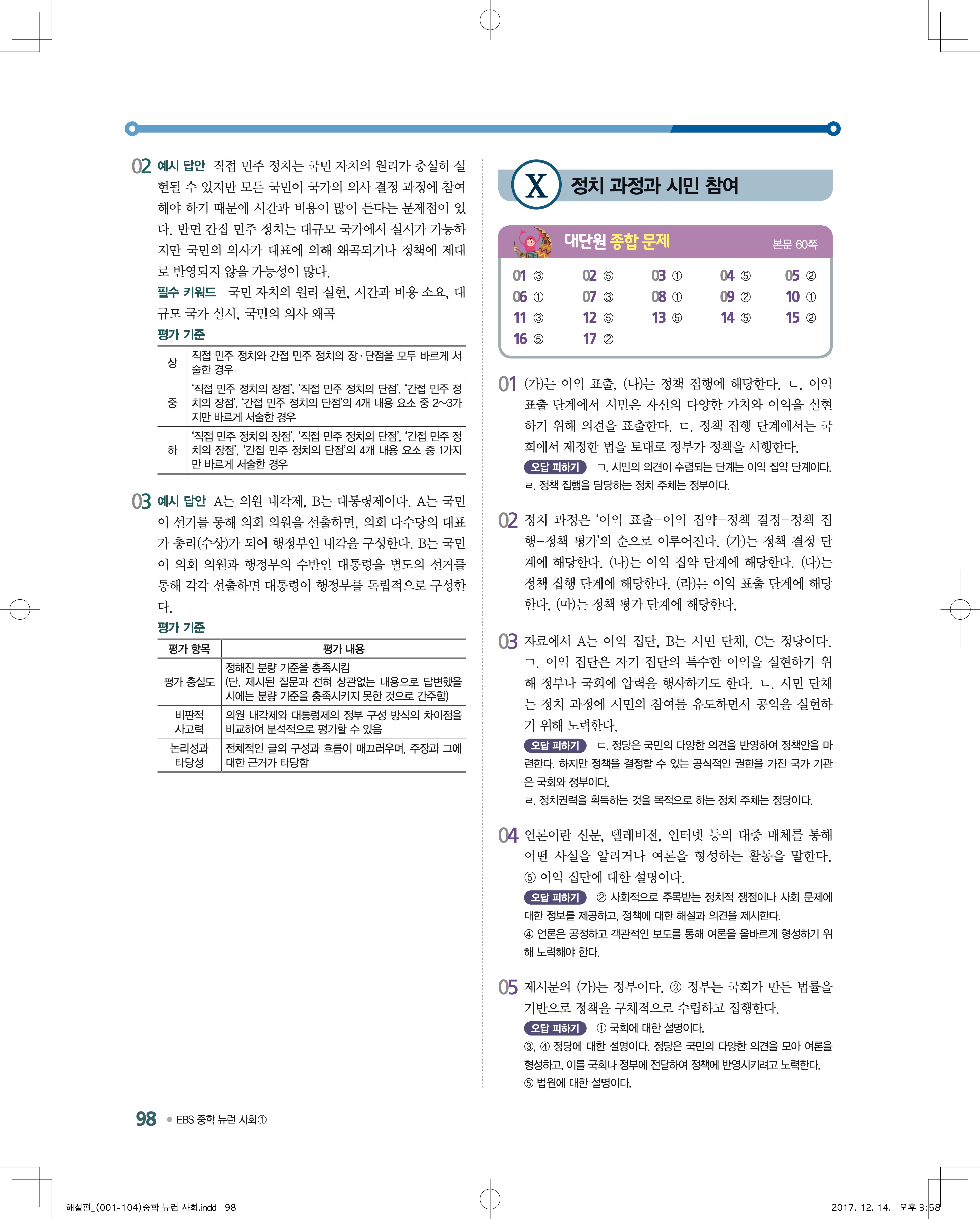 EBS 중학뉴런 사회1 답지 해설 바로보는 사진답지 빠른답지 모바일최적화
