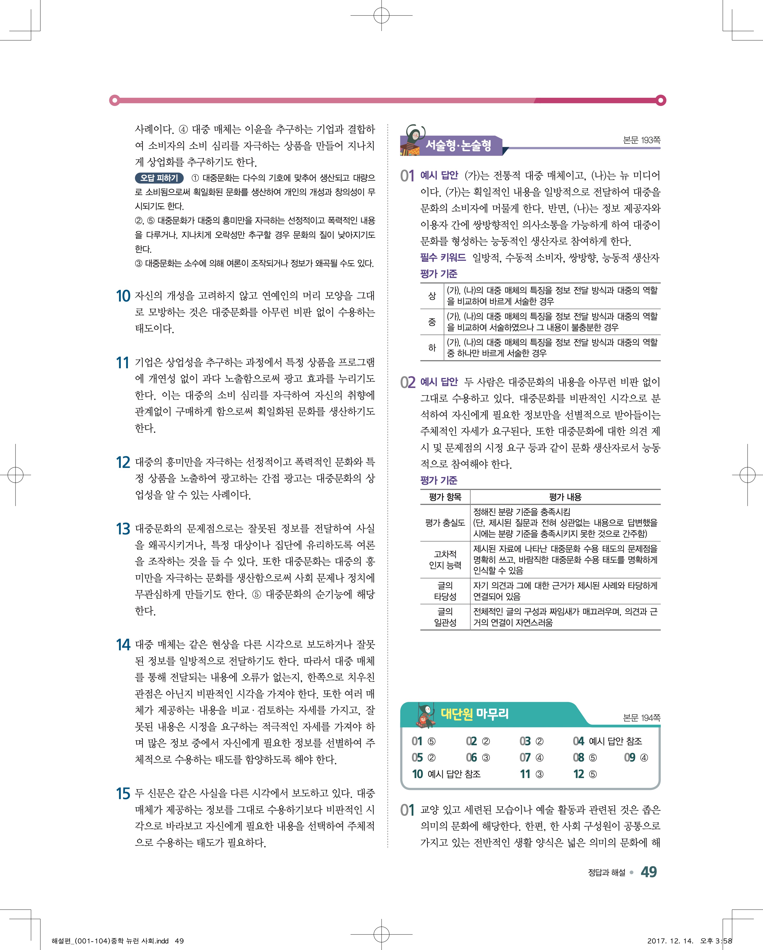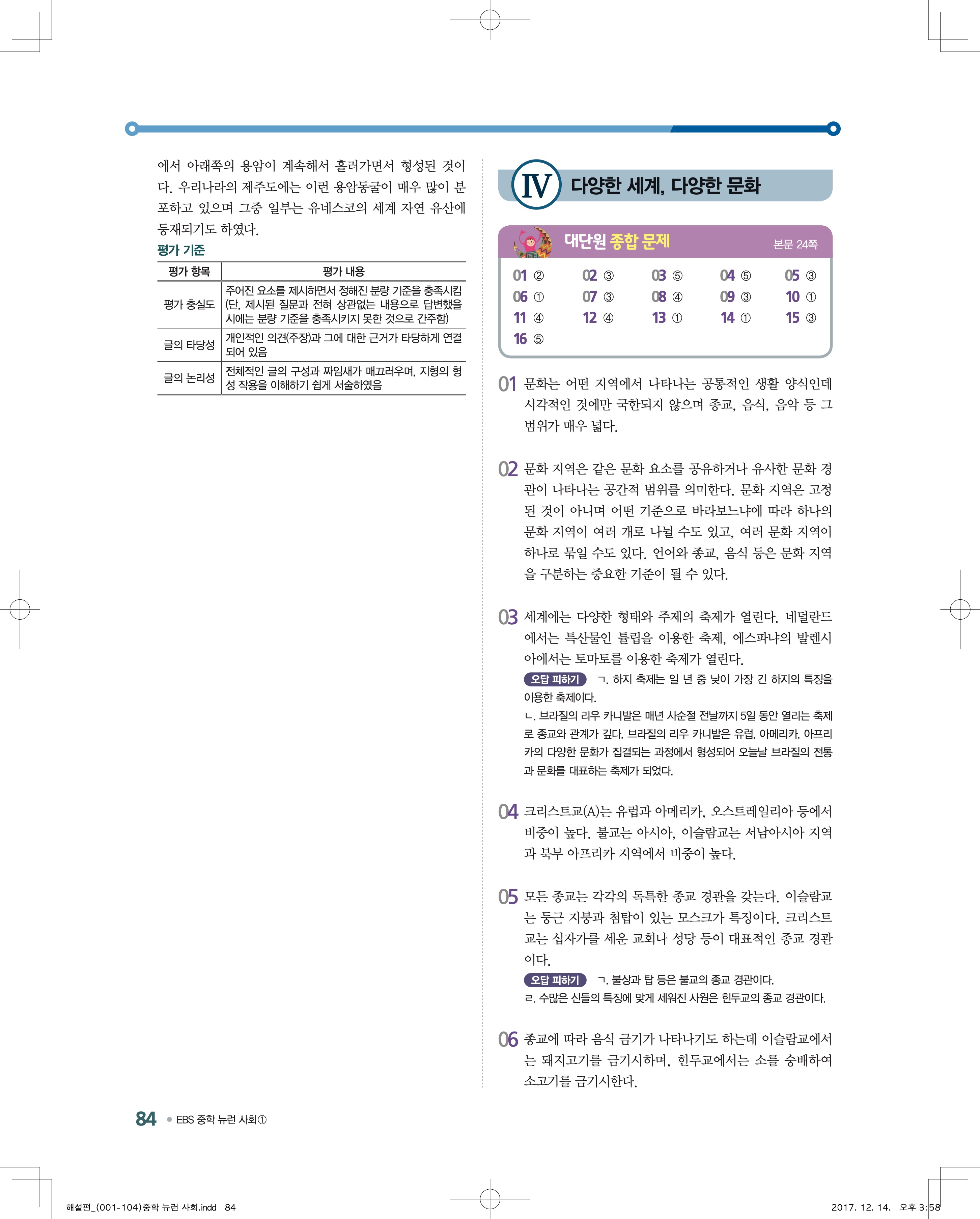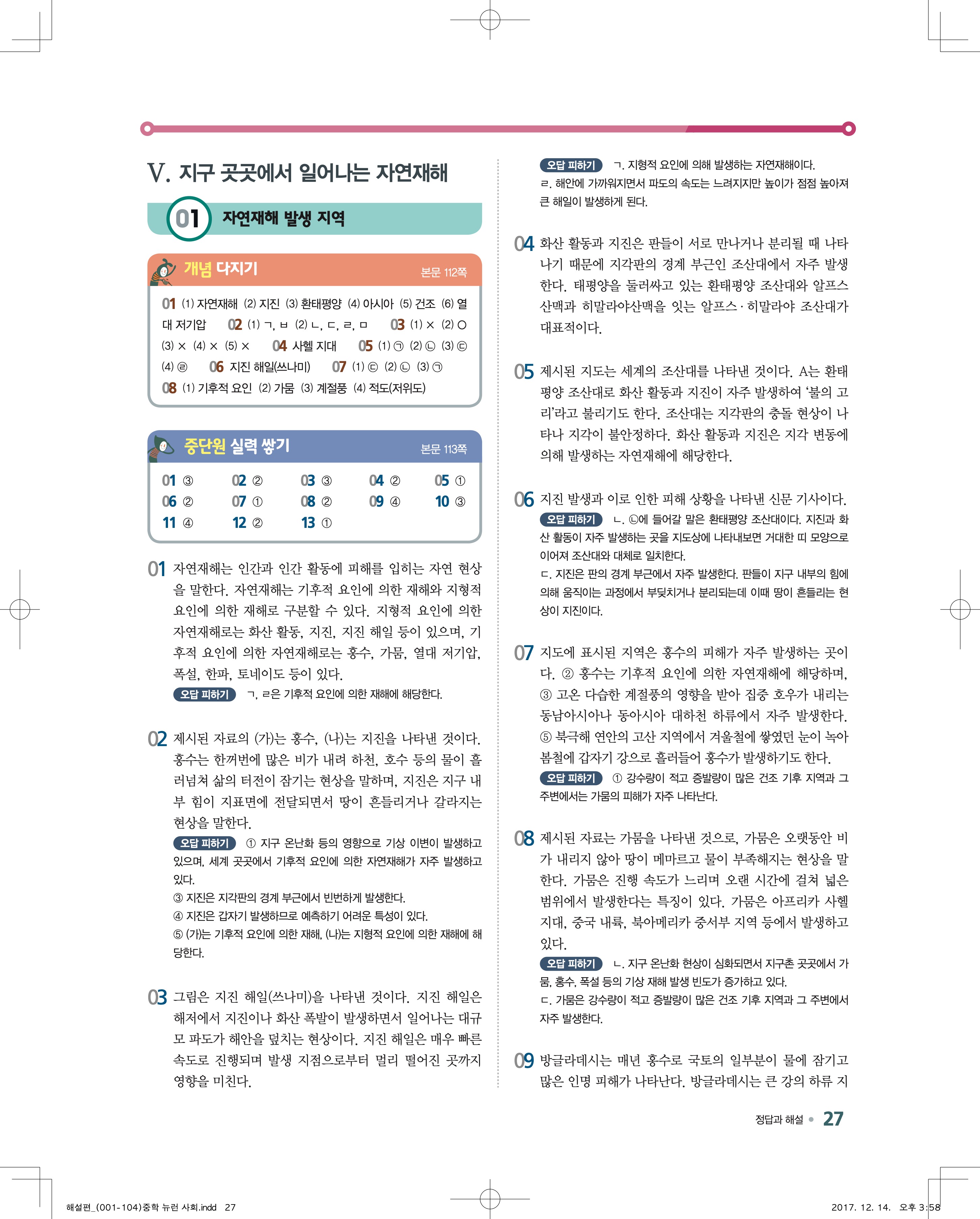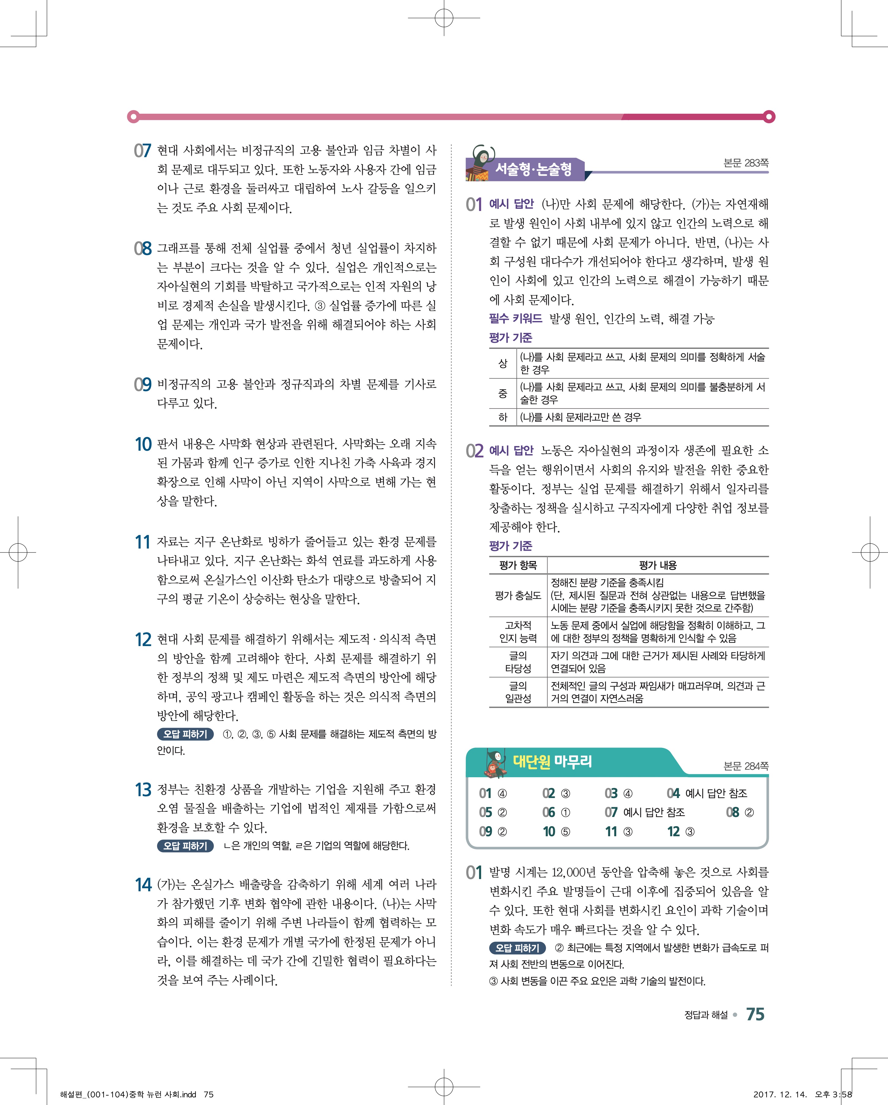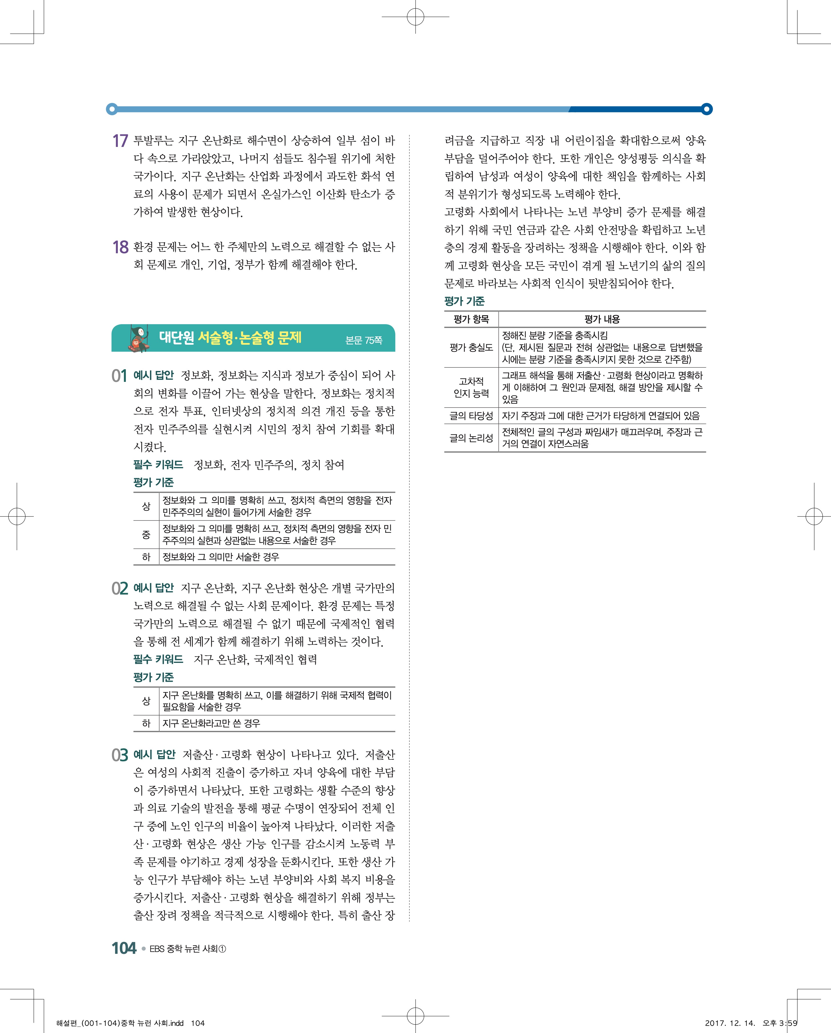 EBS 중학뉴런 사회1 답지 해설 바로보는 사진답지 빠른답지 모바일최적화