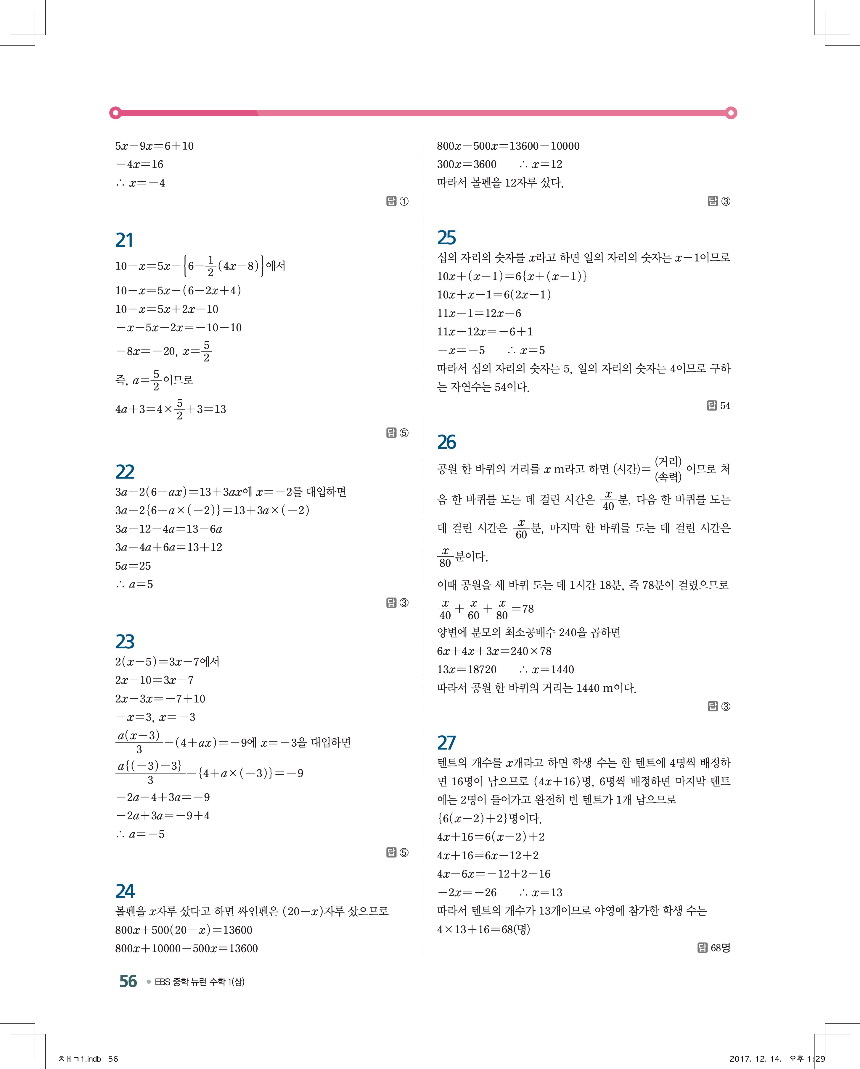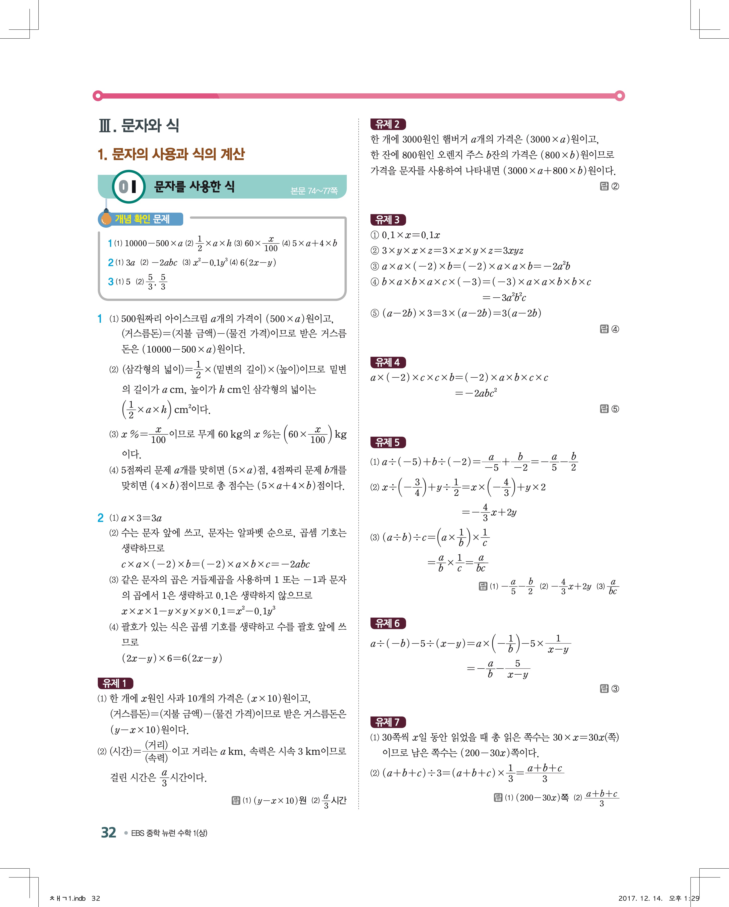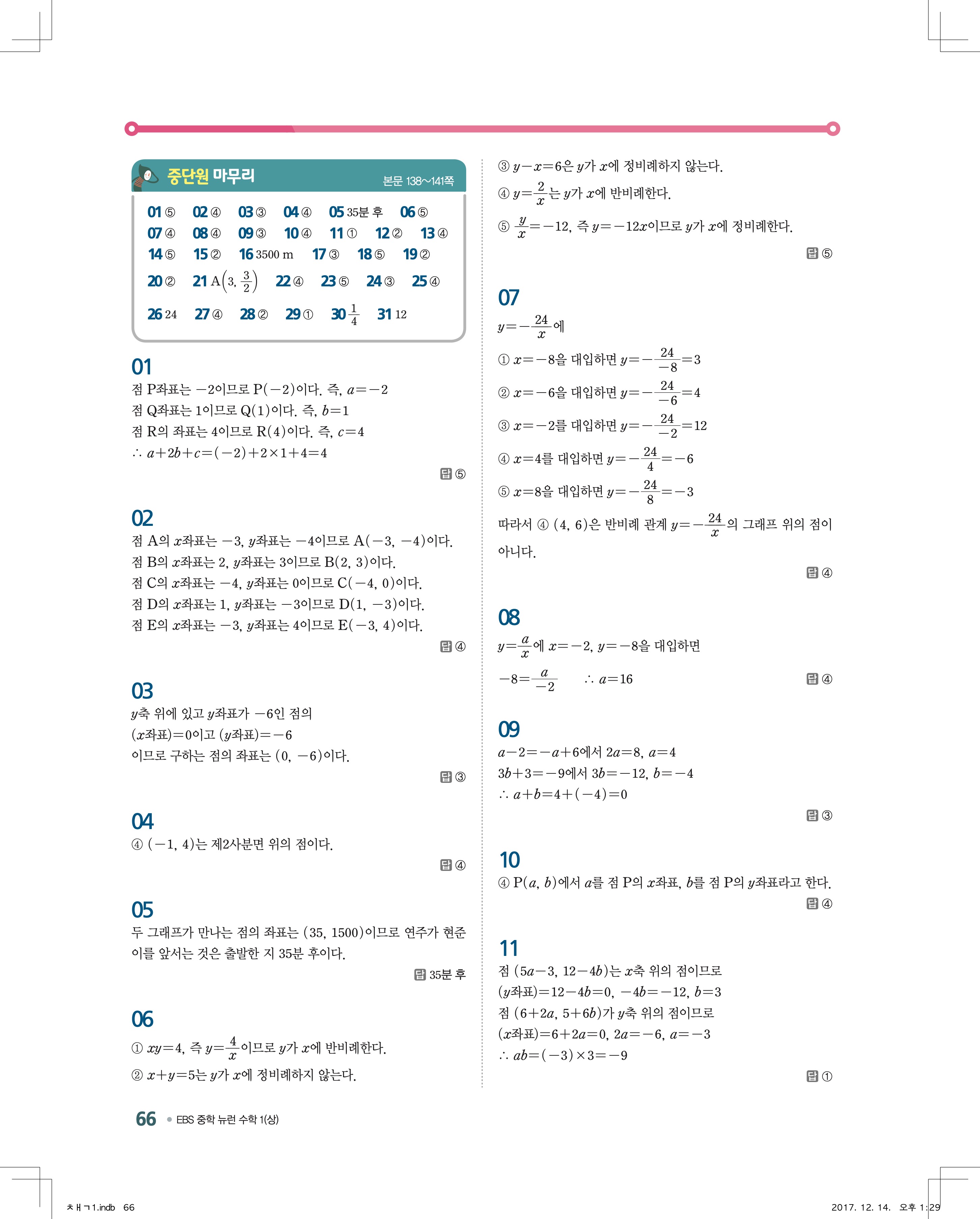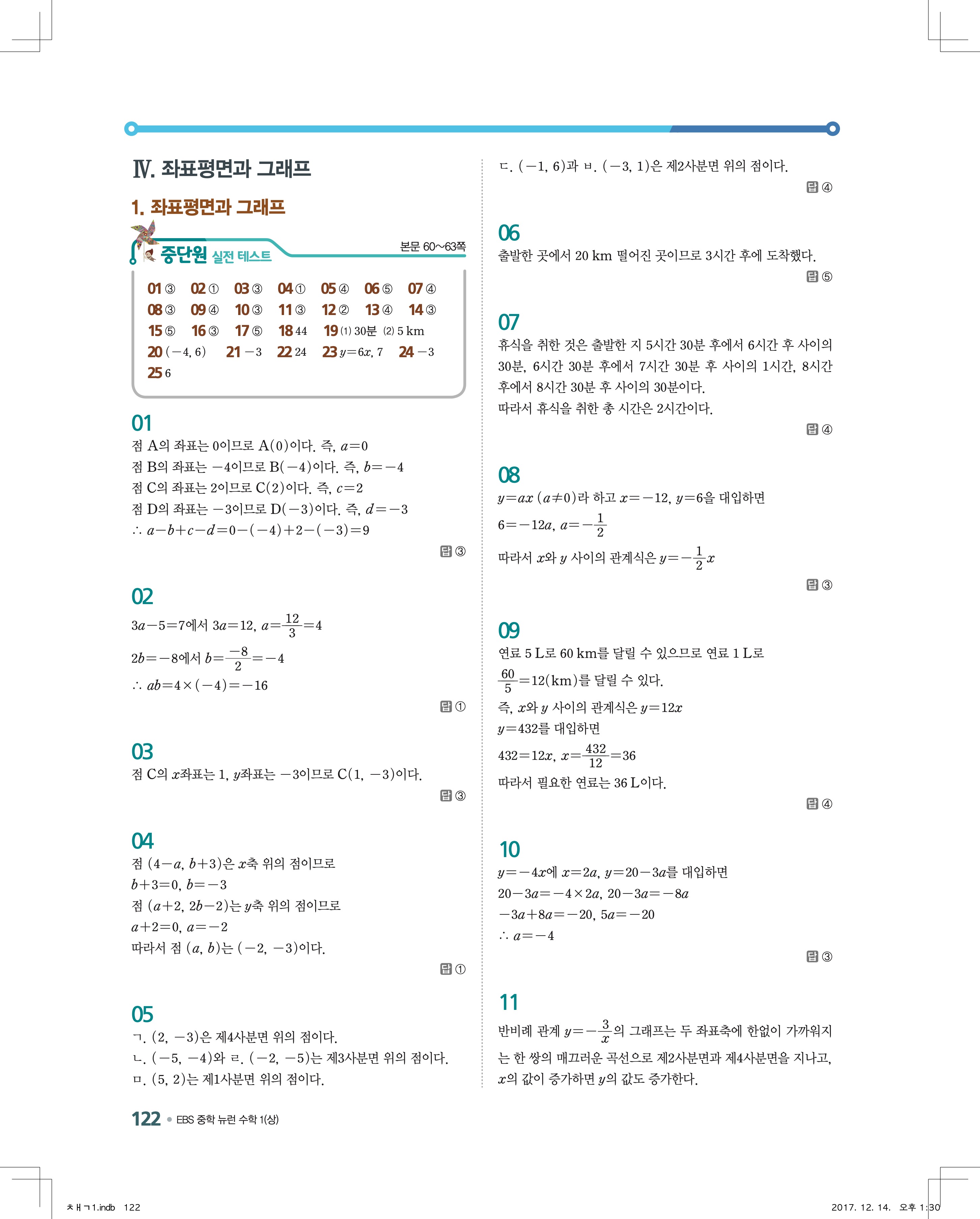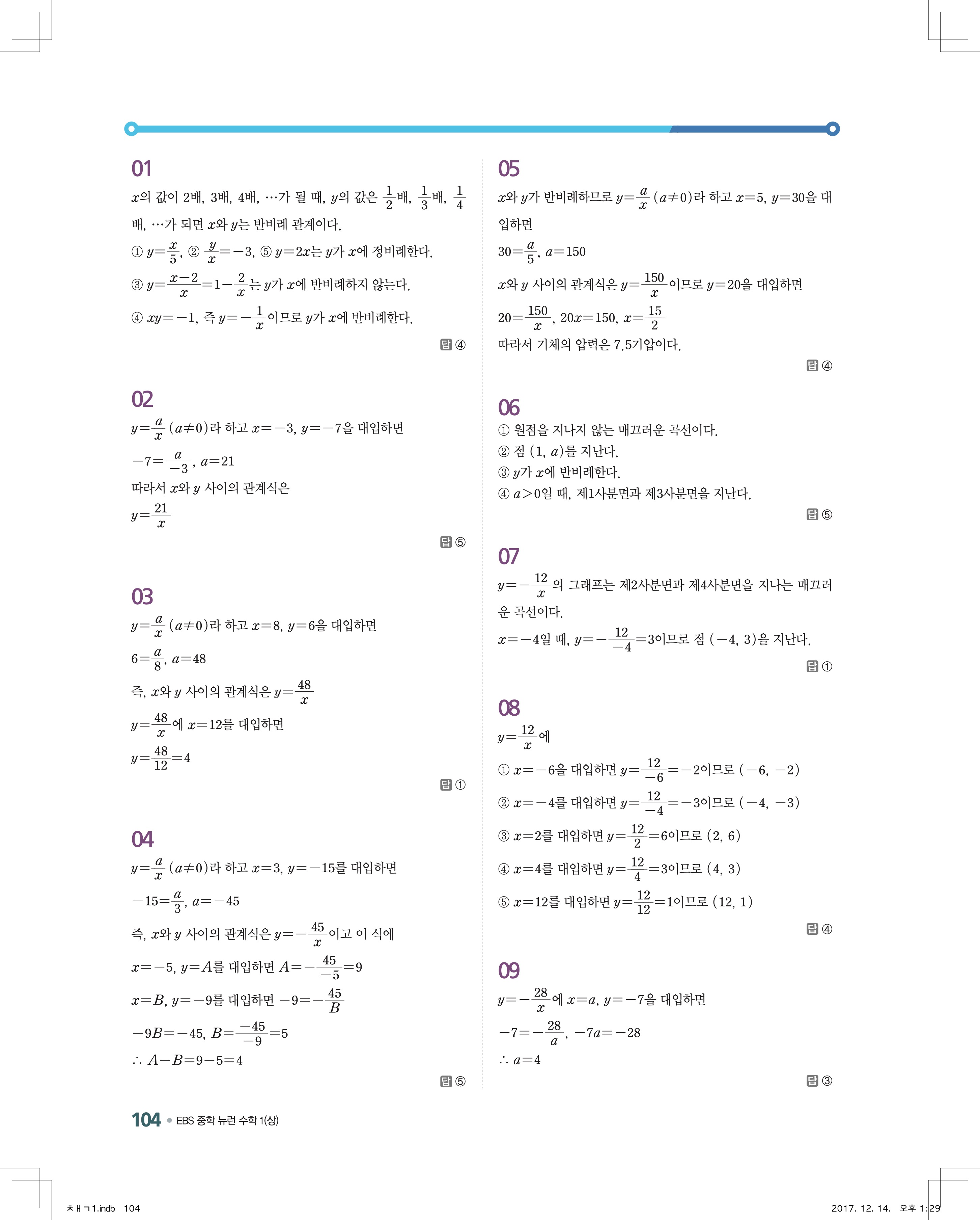 EBS 중학뉴런 수학1상 답지 해설 바로보는 사진답지 빠른답지 모바일최적화