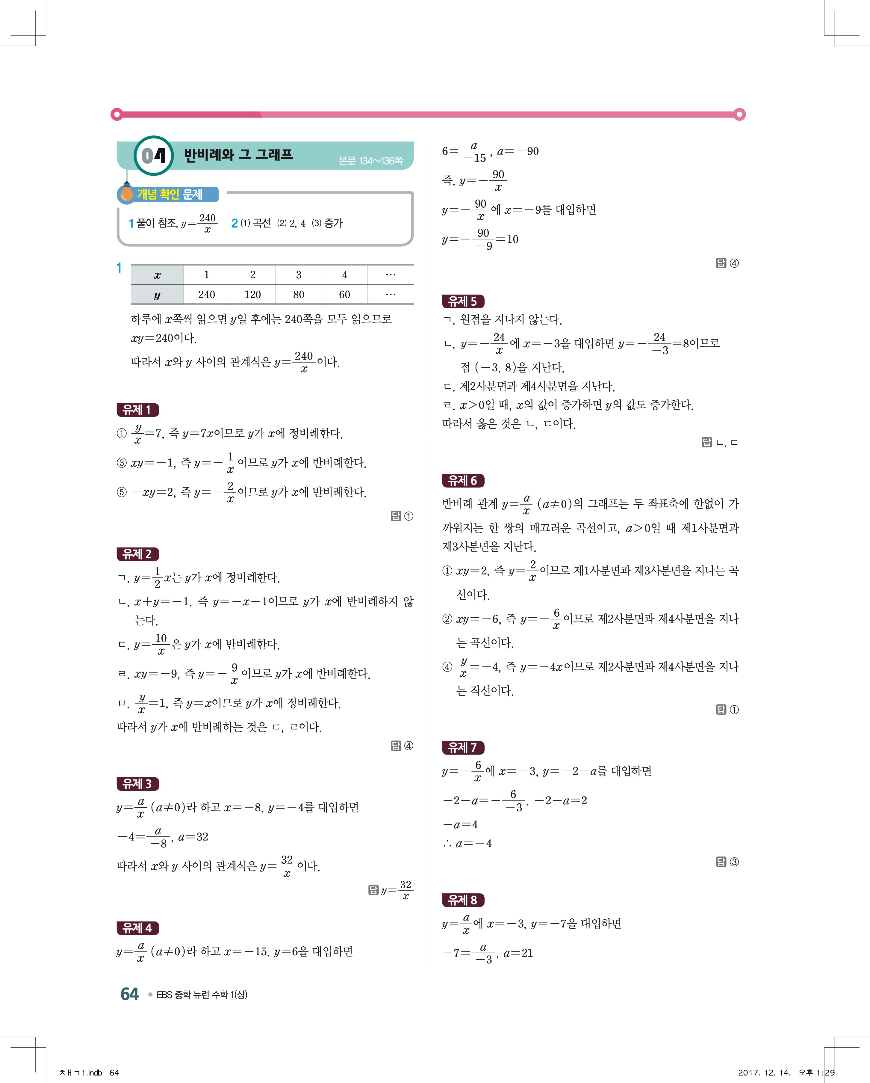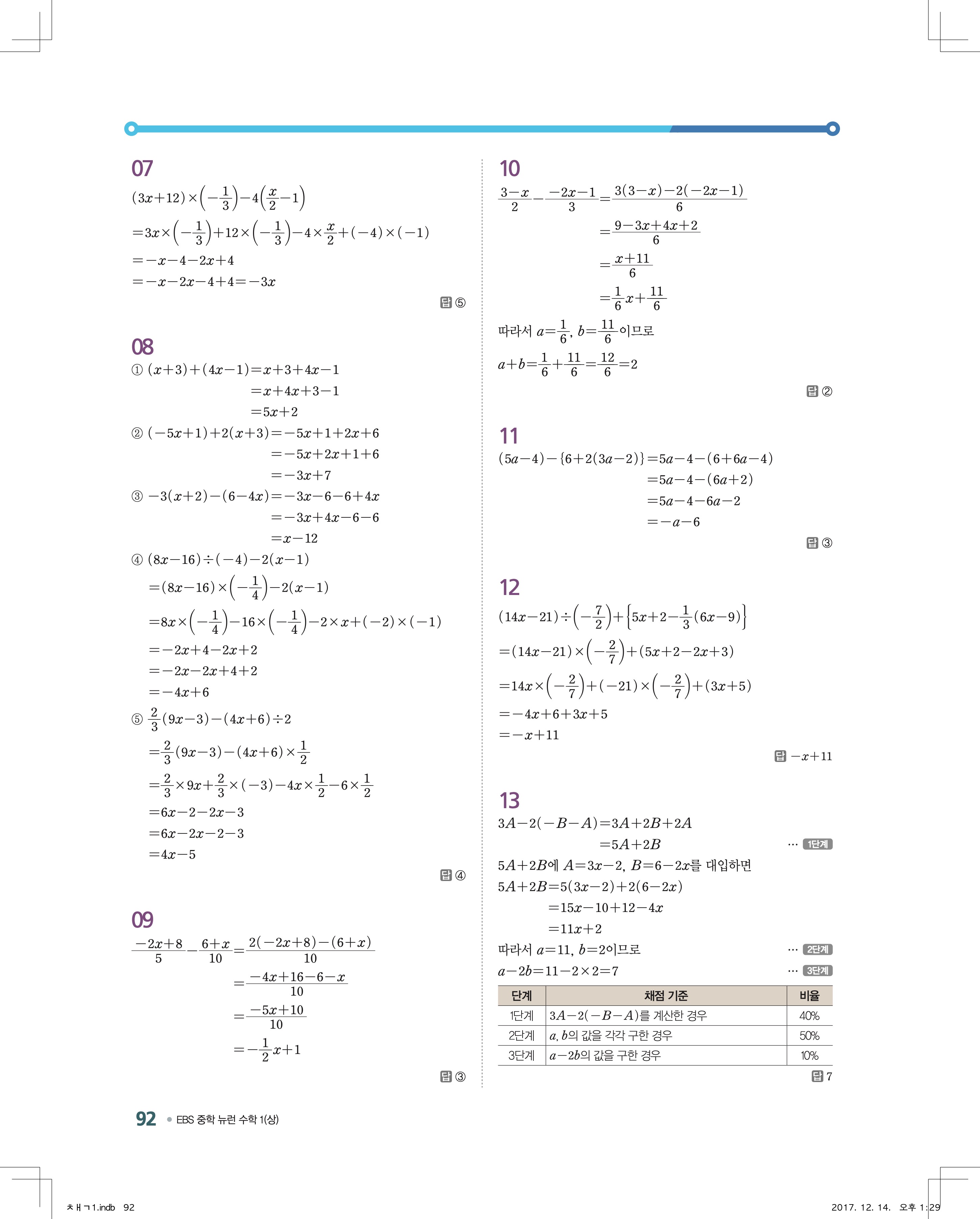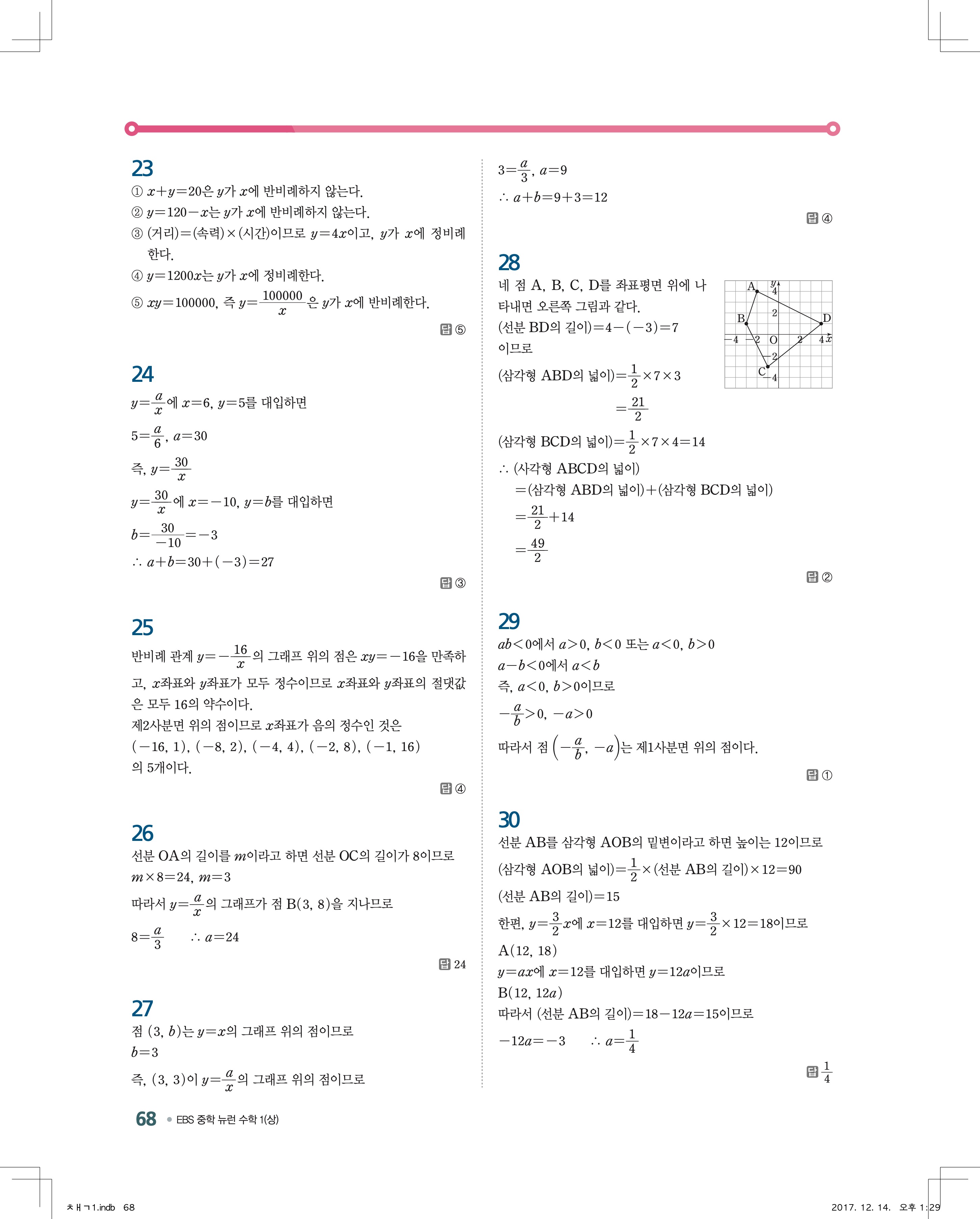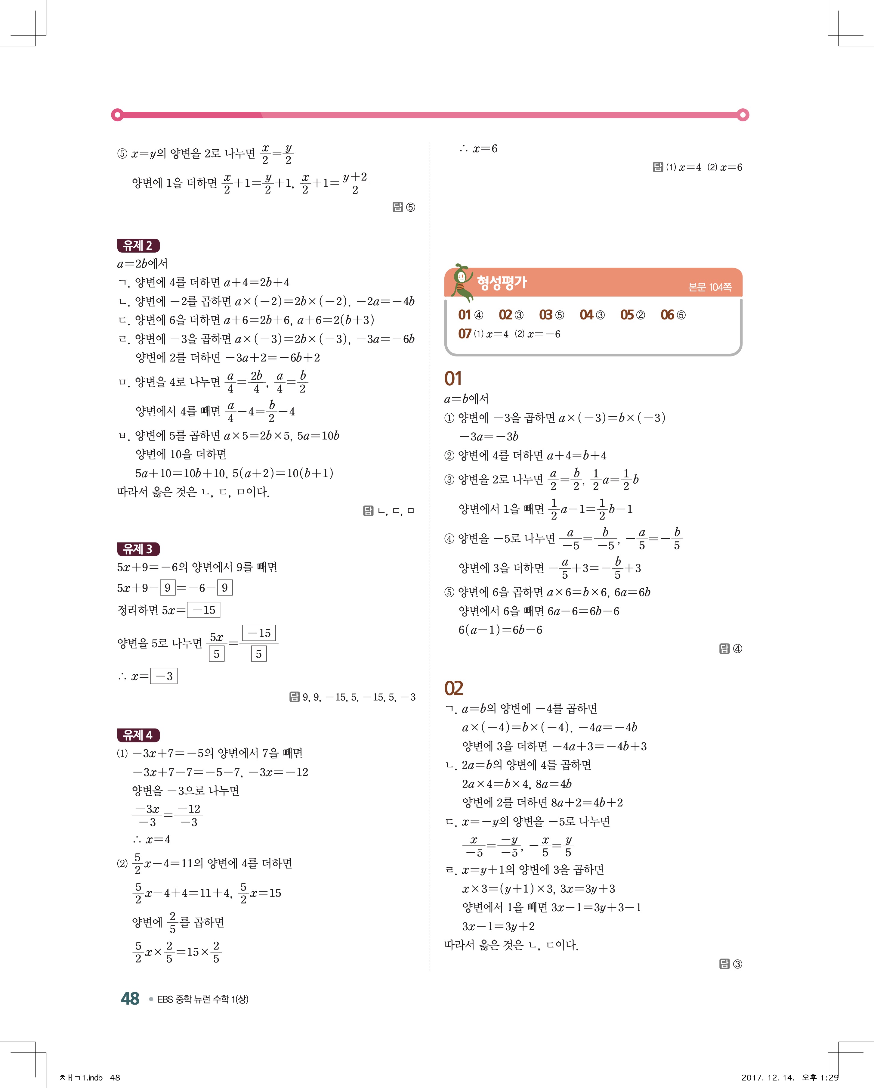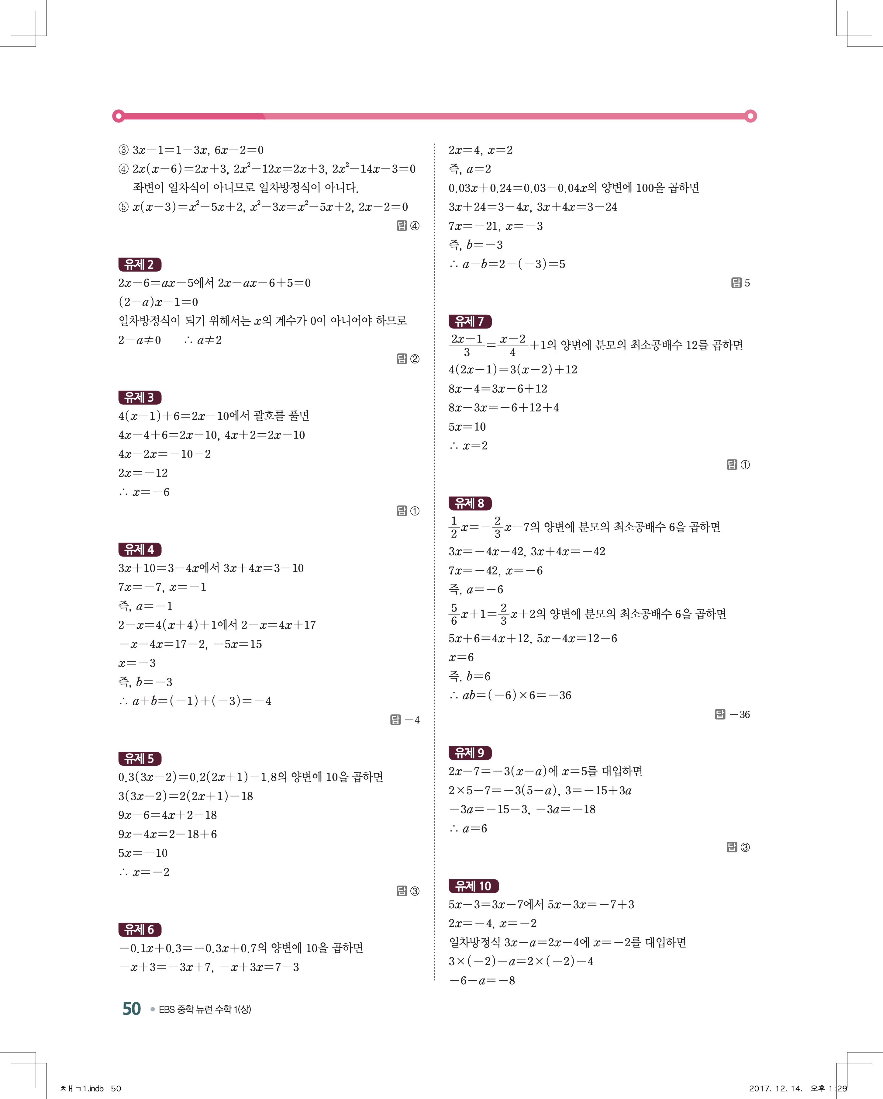 EBS 중학뉴런 수학1상 답지 해설 바로보는 사진답지 빠른답지 모바일최적화