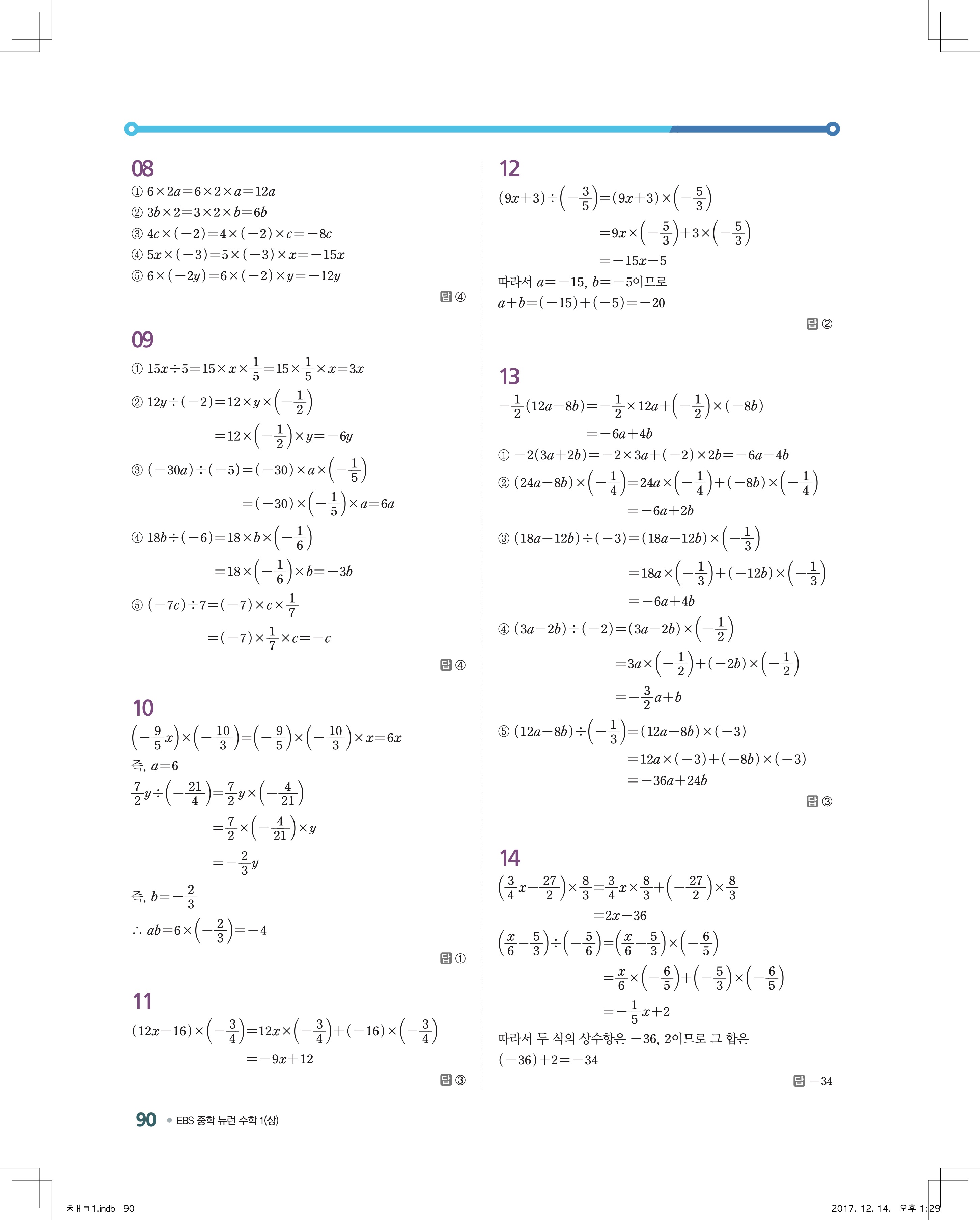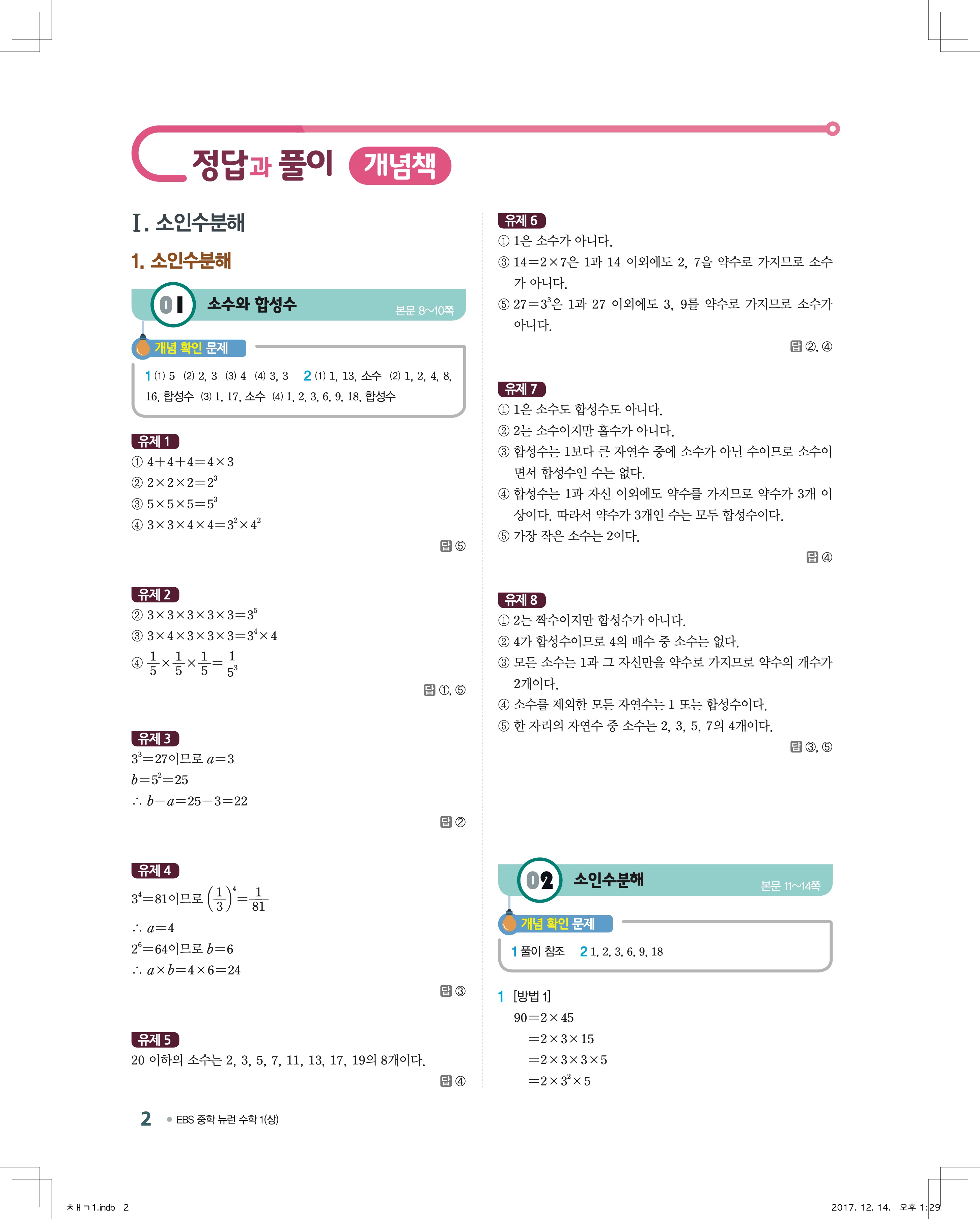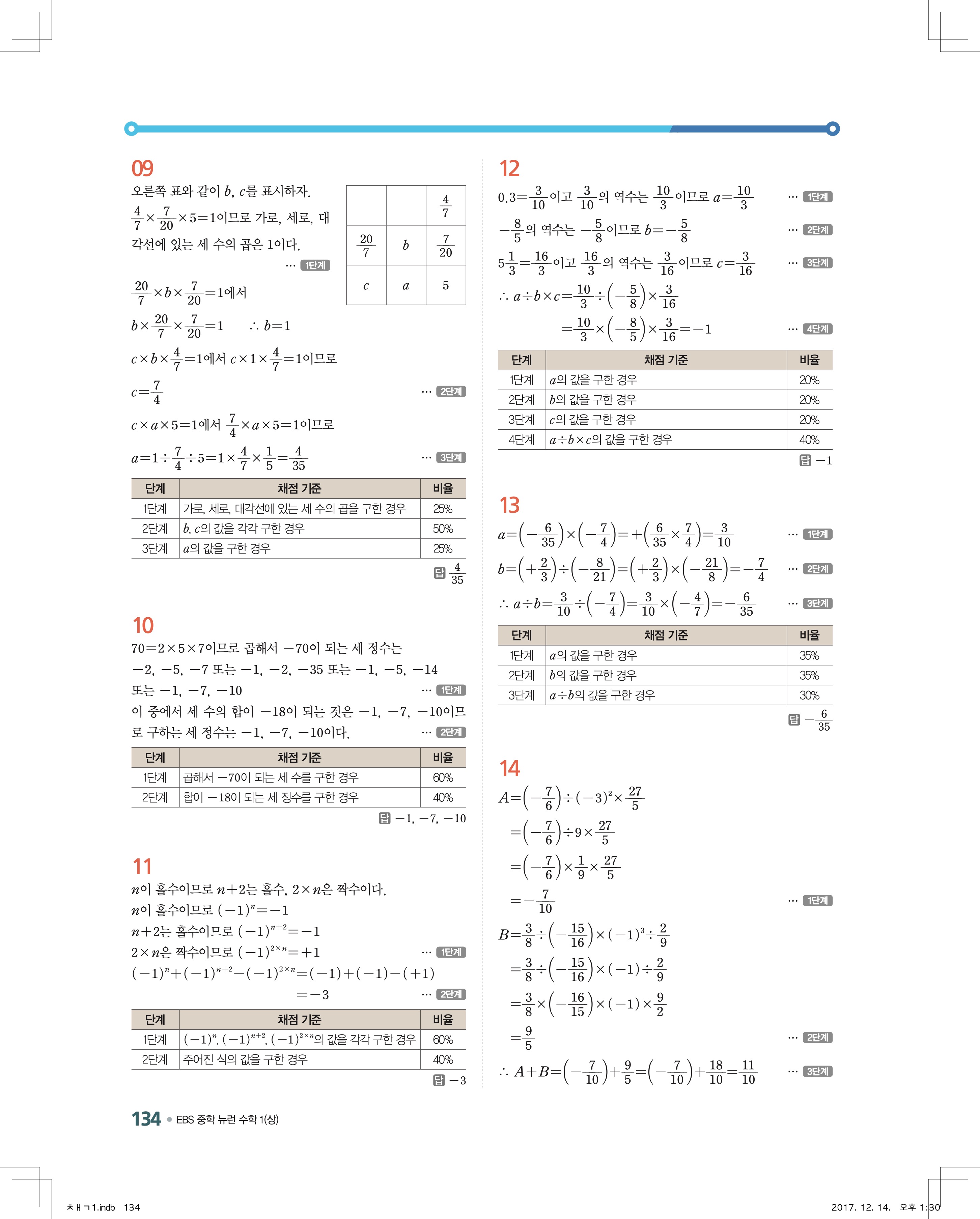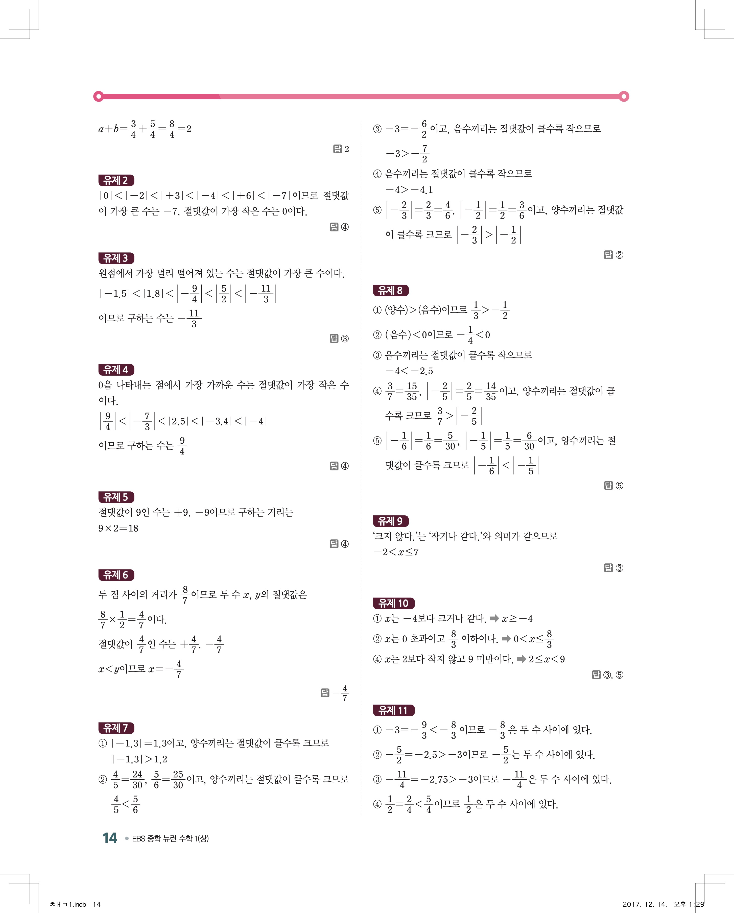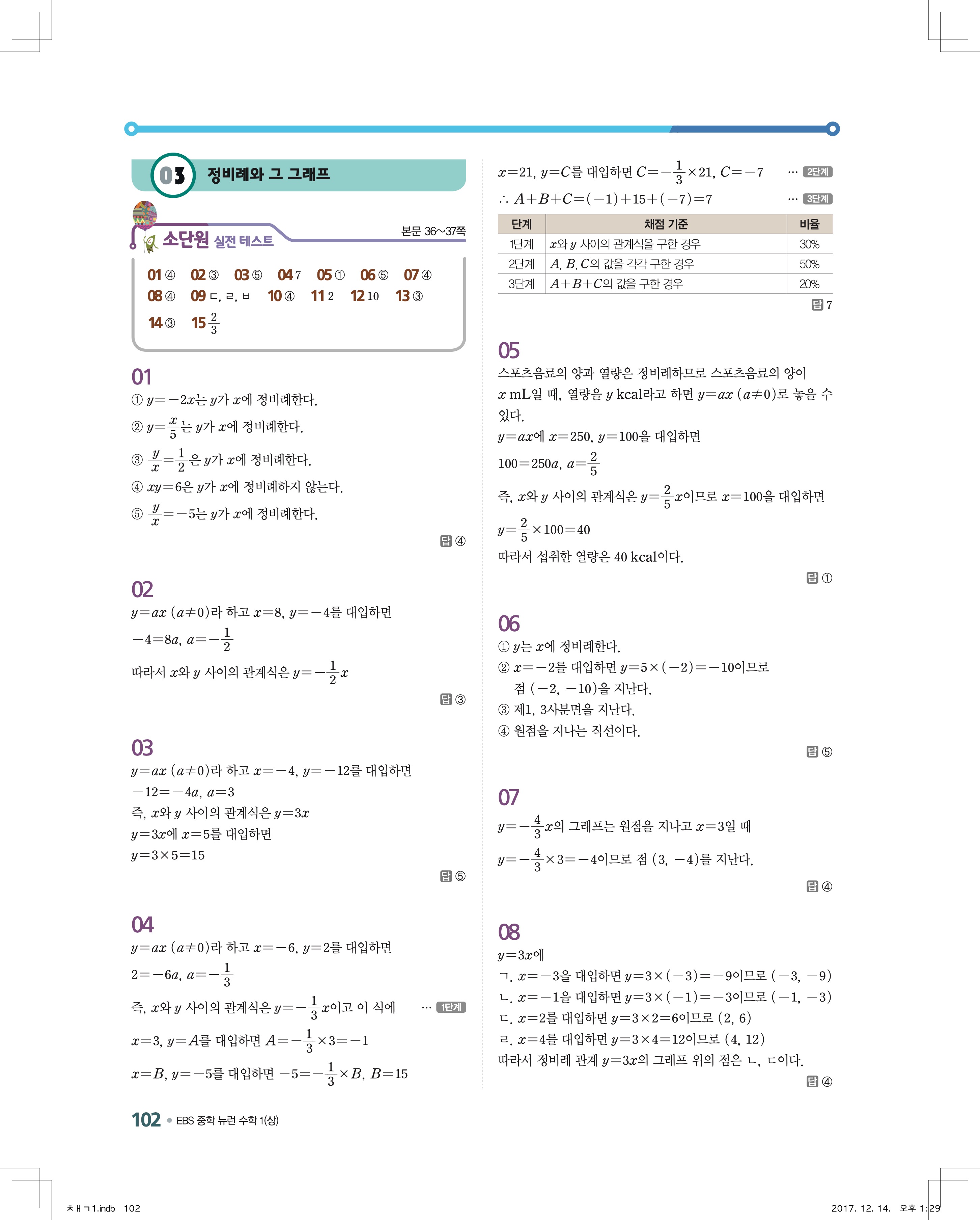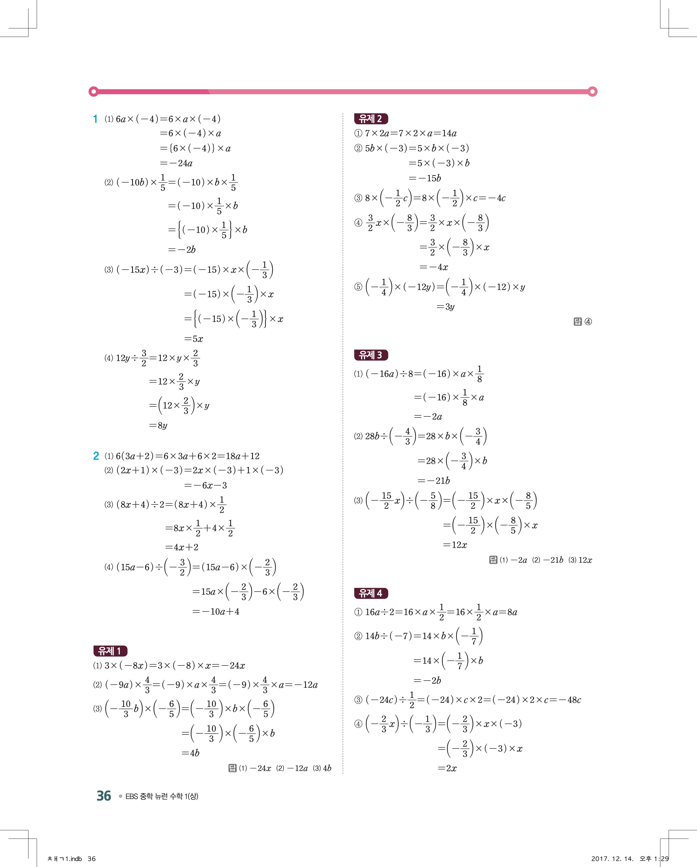 EBS 중학뉴런 수학1상 답지 해설 바로보는 사진답지 빠른답지 모바일최적화