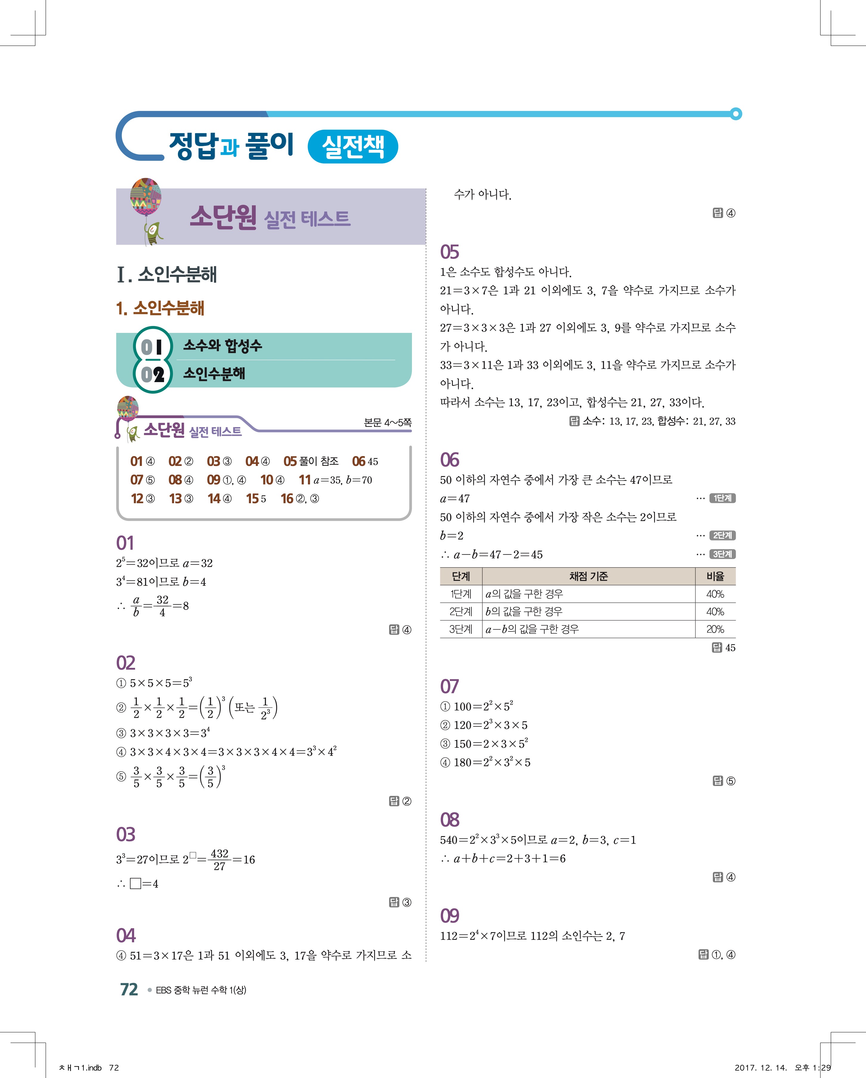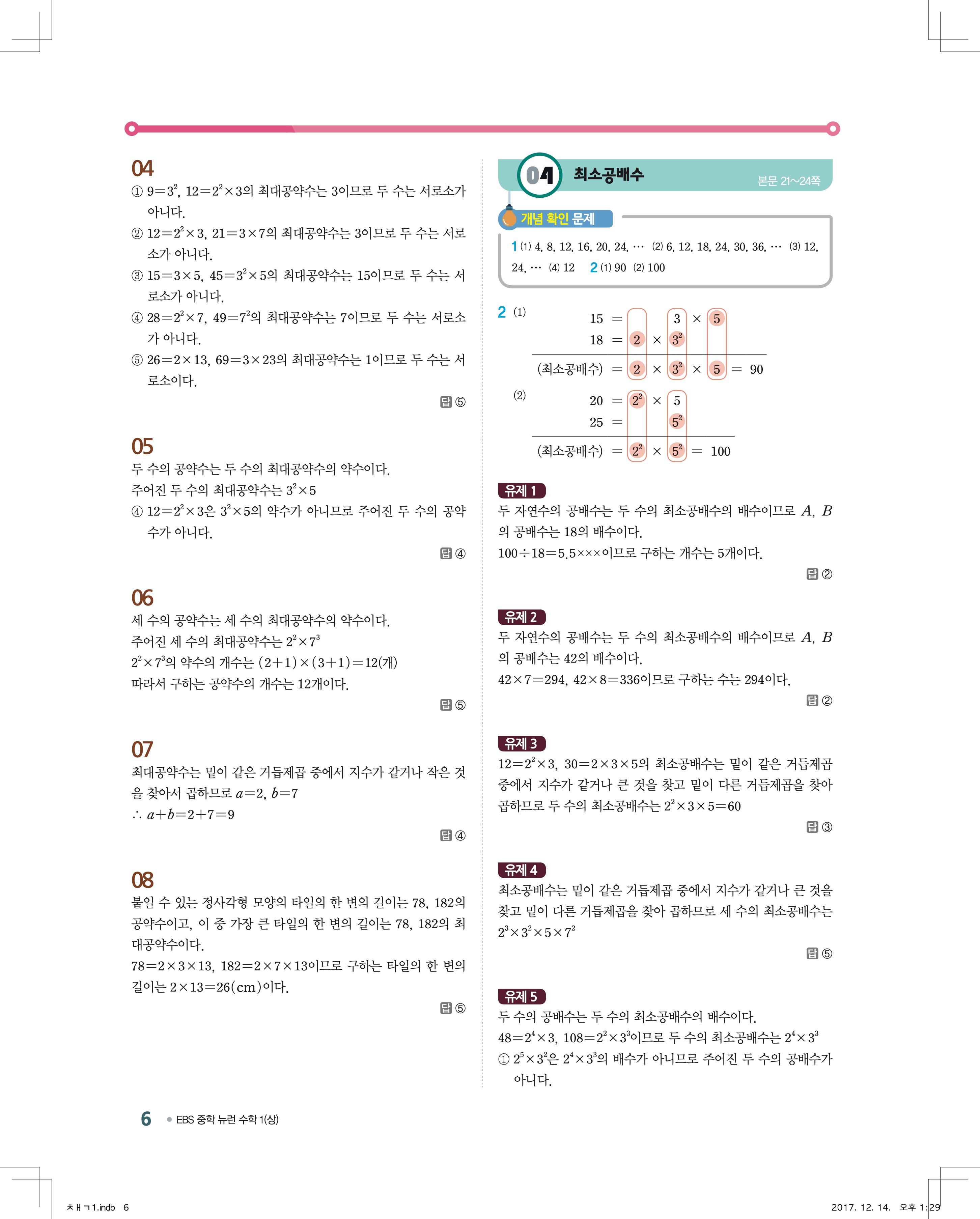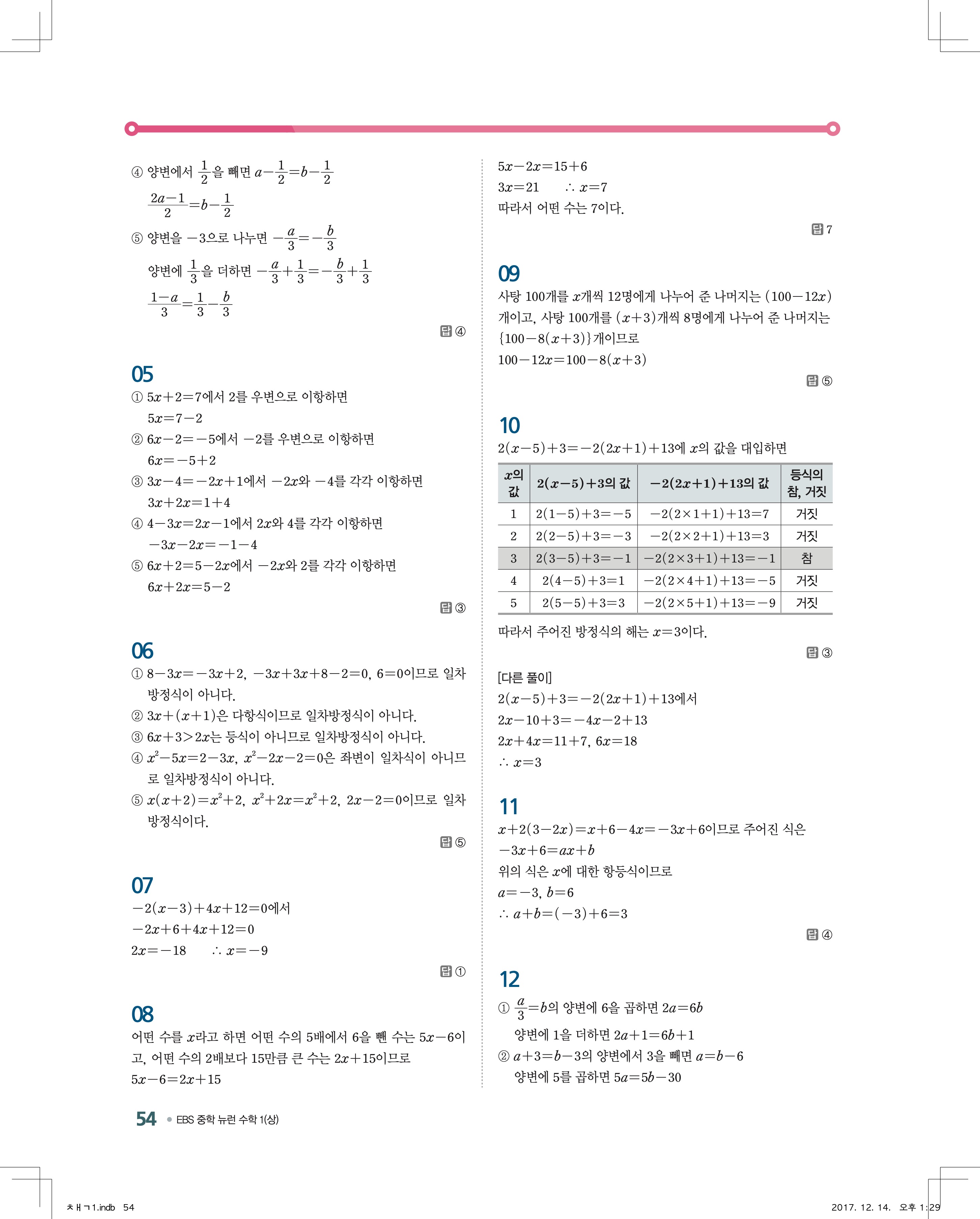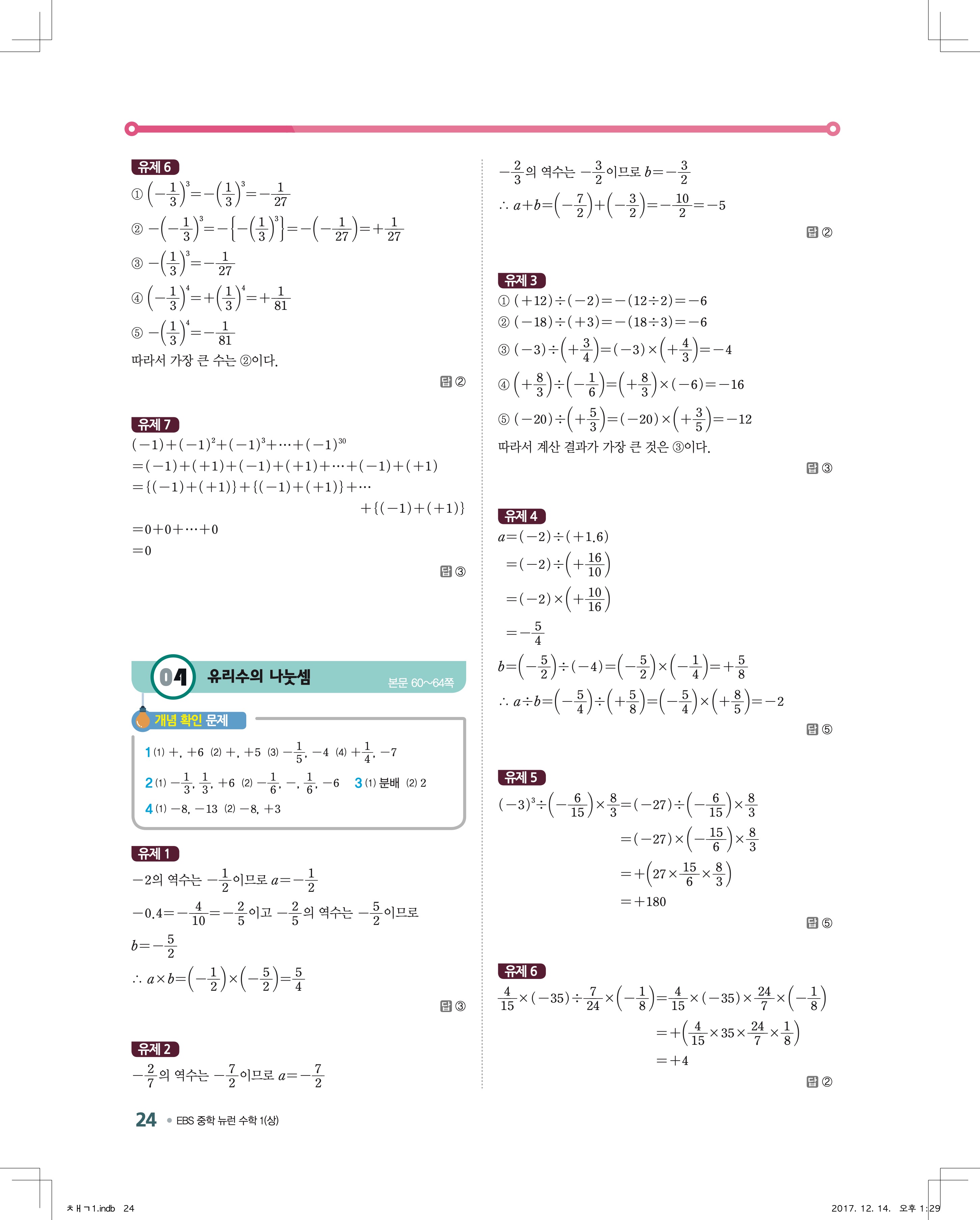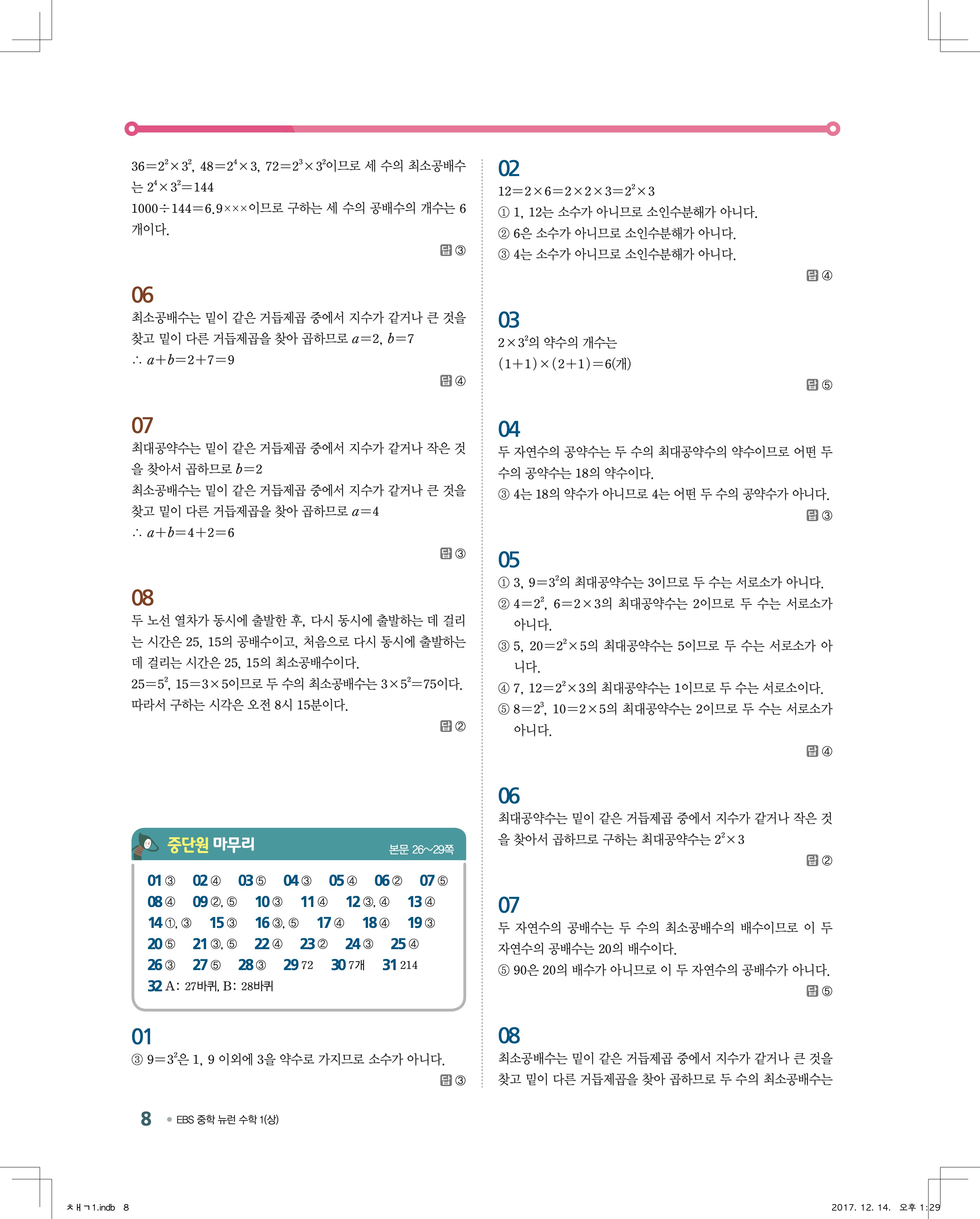 EBS 중학뉴런 수학1상 답지 해설 바로보는 사진답지 빠른답지 모바일최적화