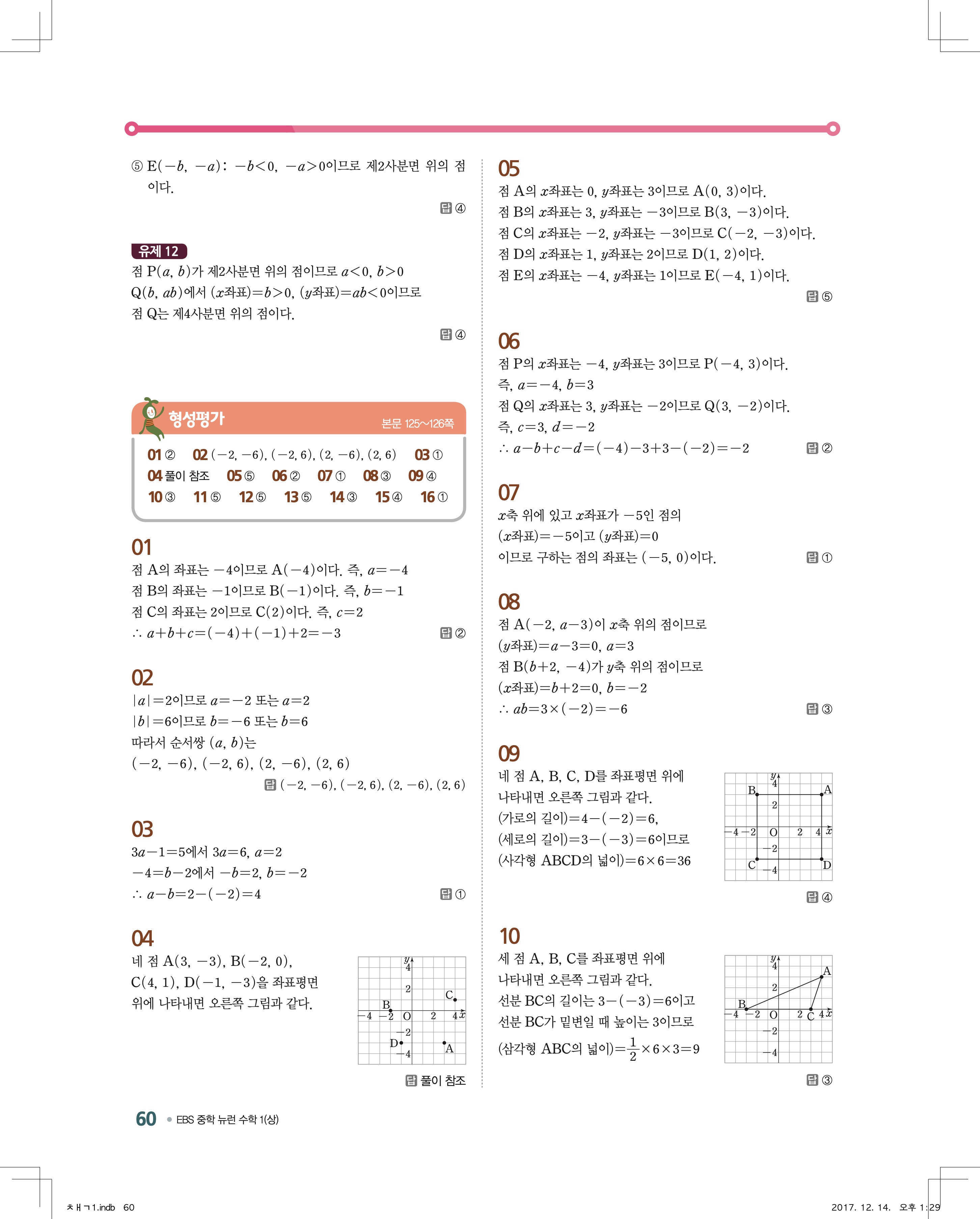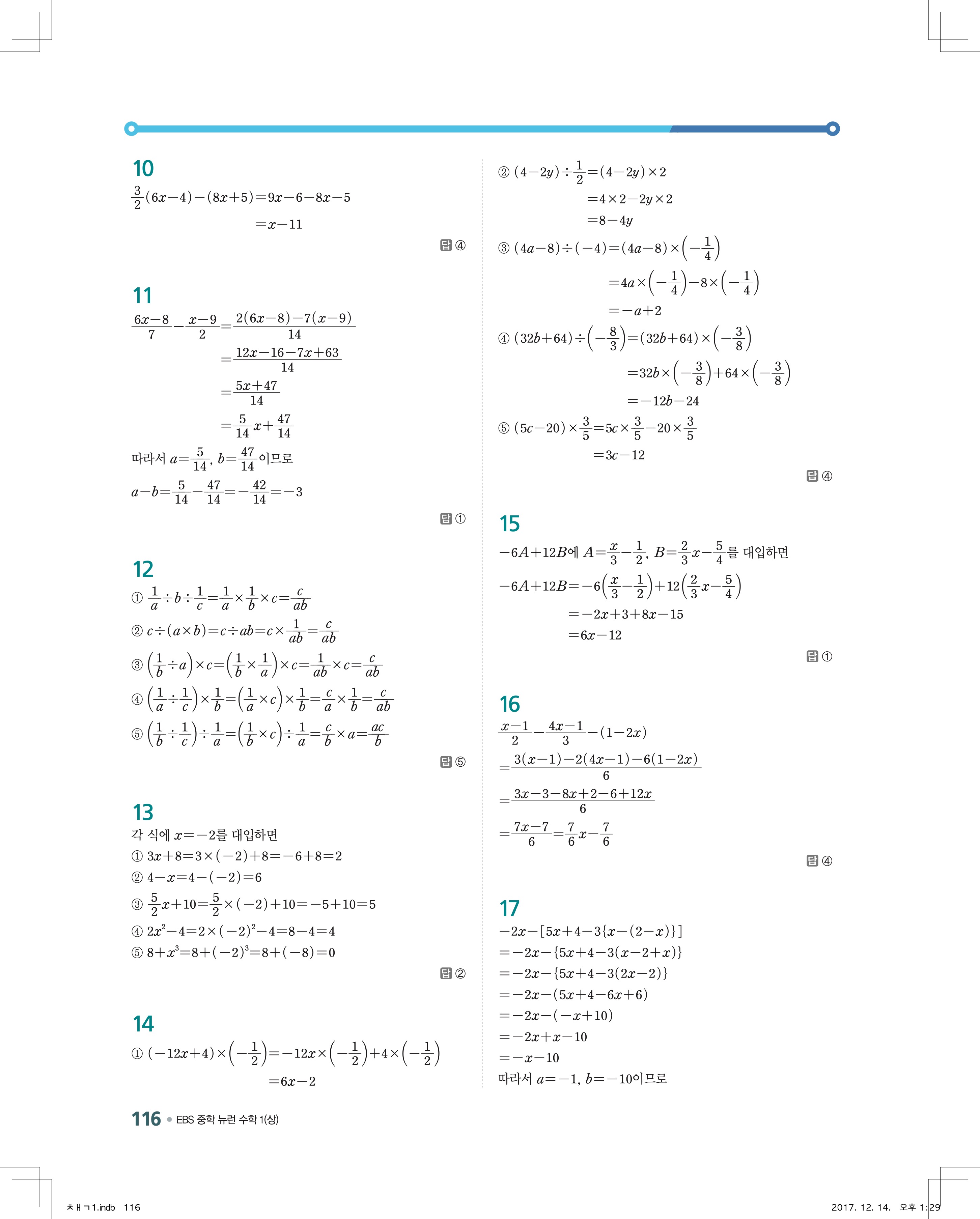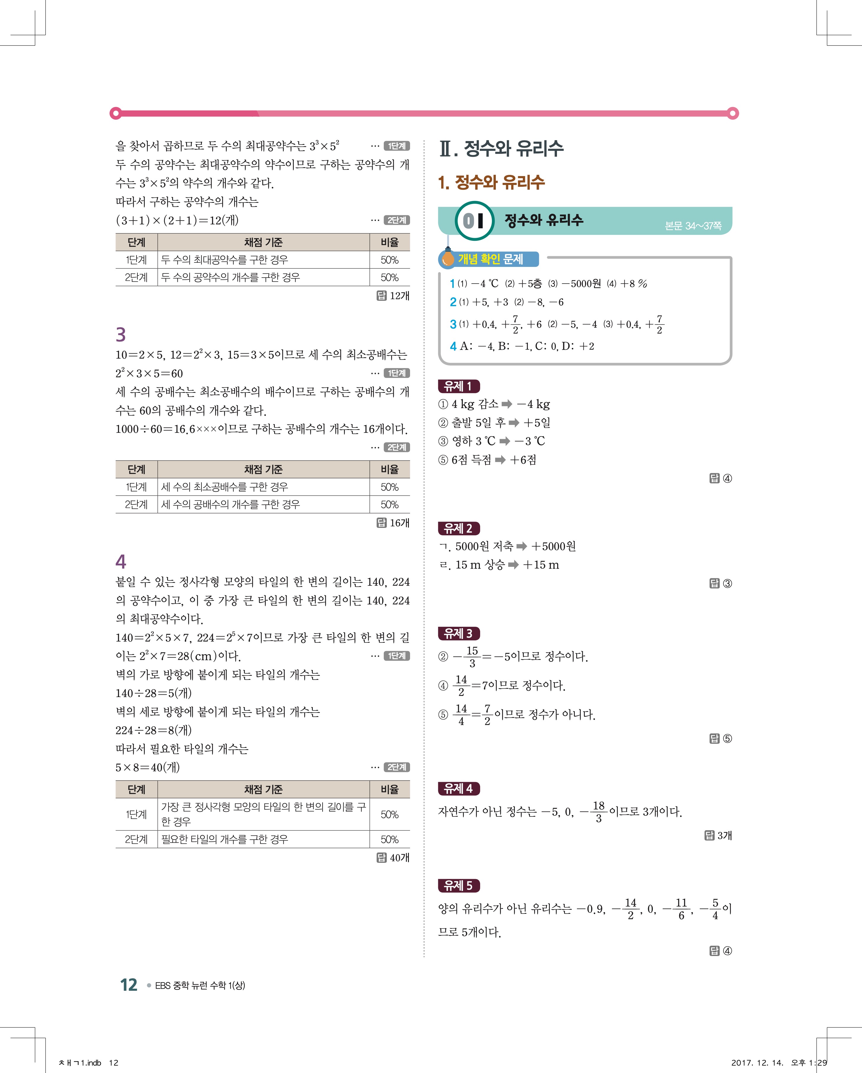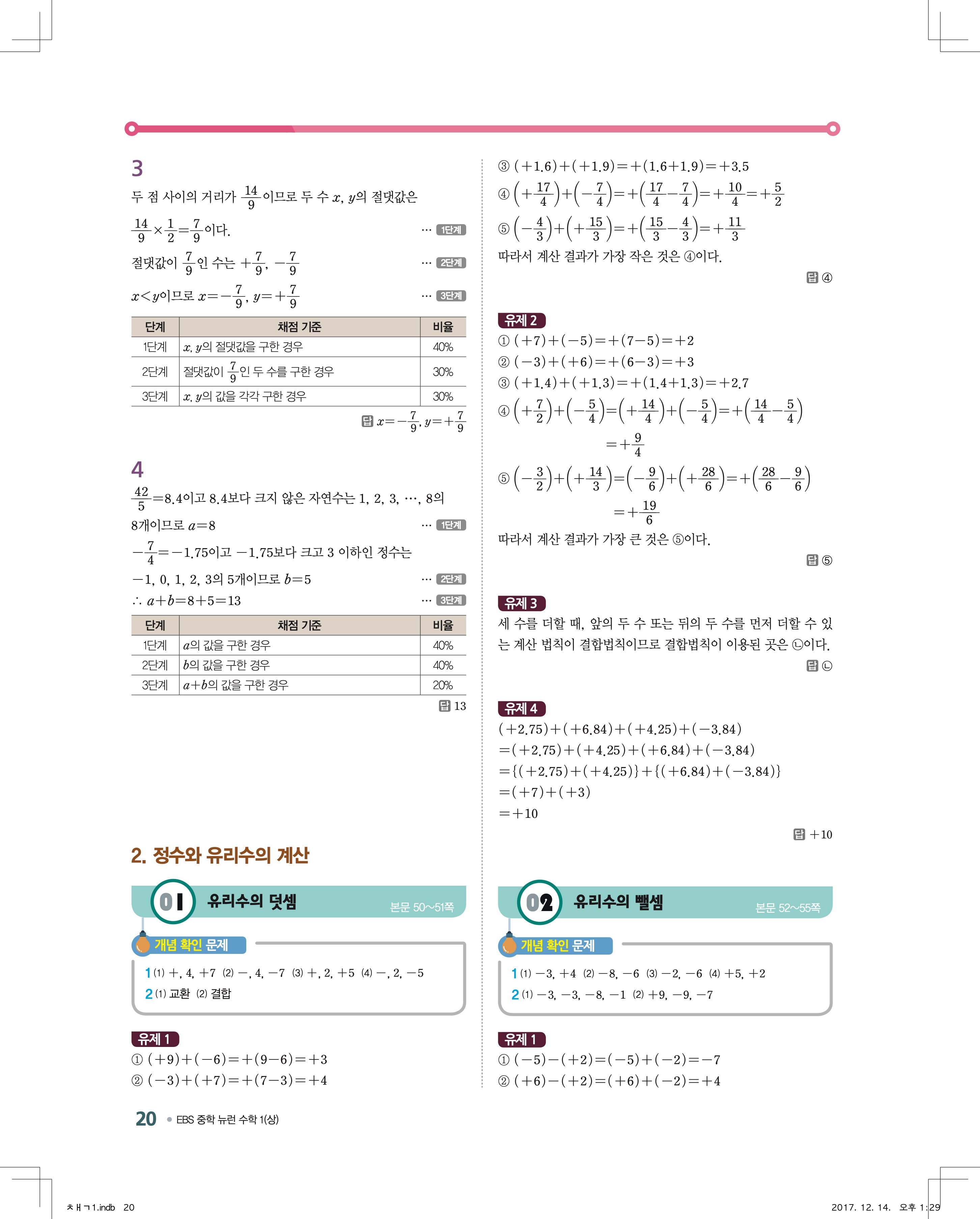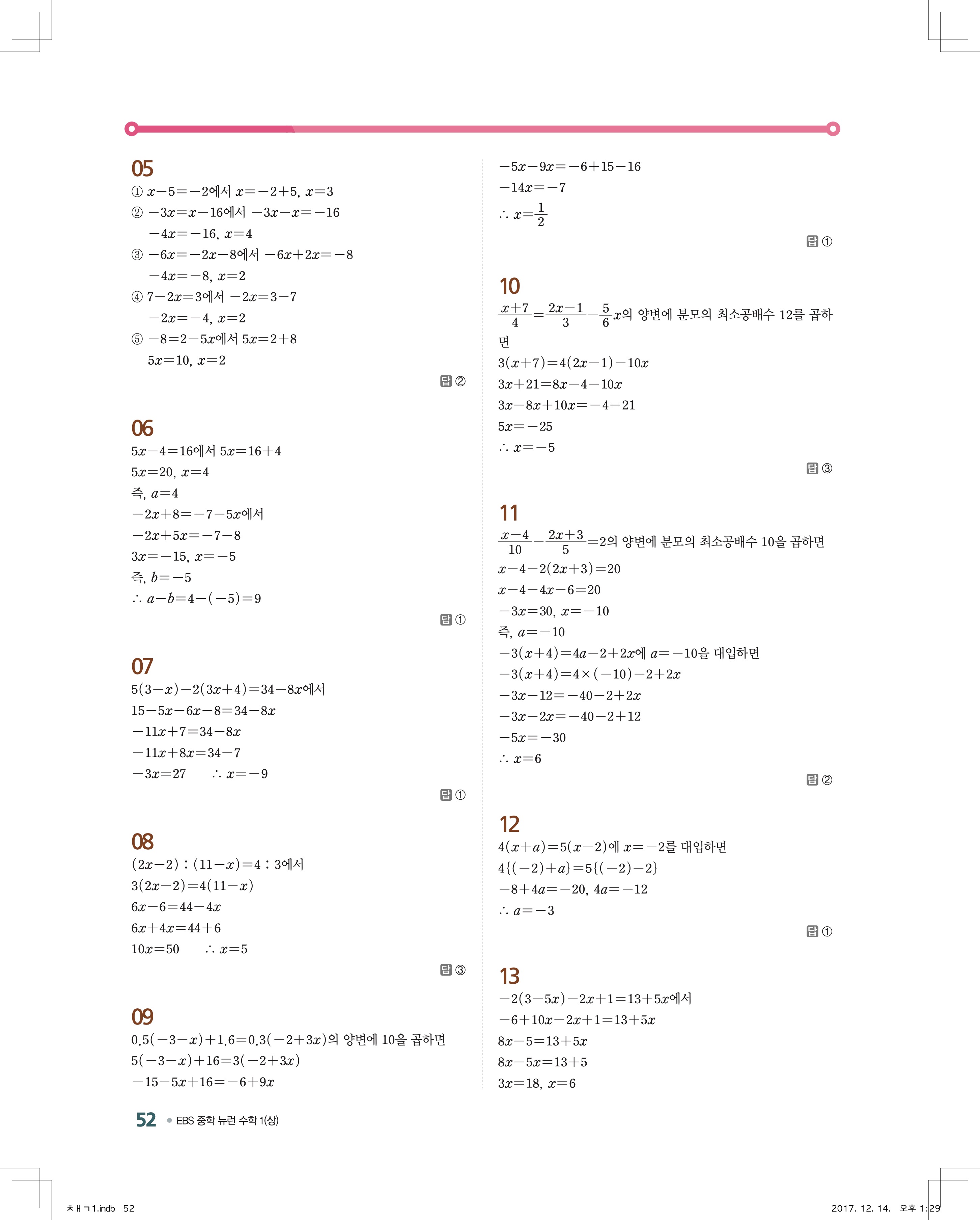 EBS 중학뉴런 수학1상 답지 해설 바로보는 사진답지 빠른답지 모바일최적화