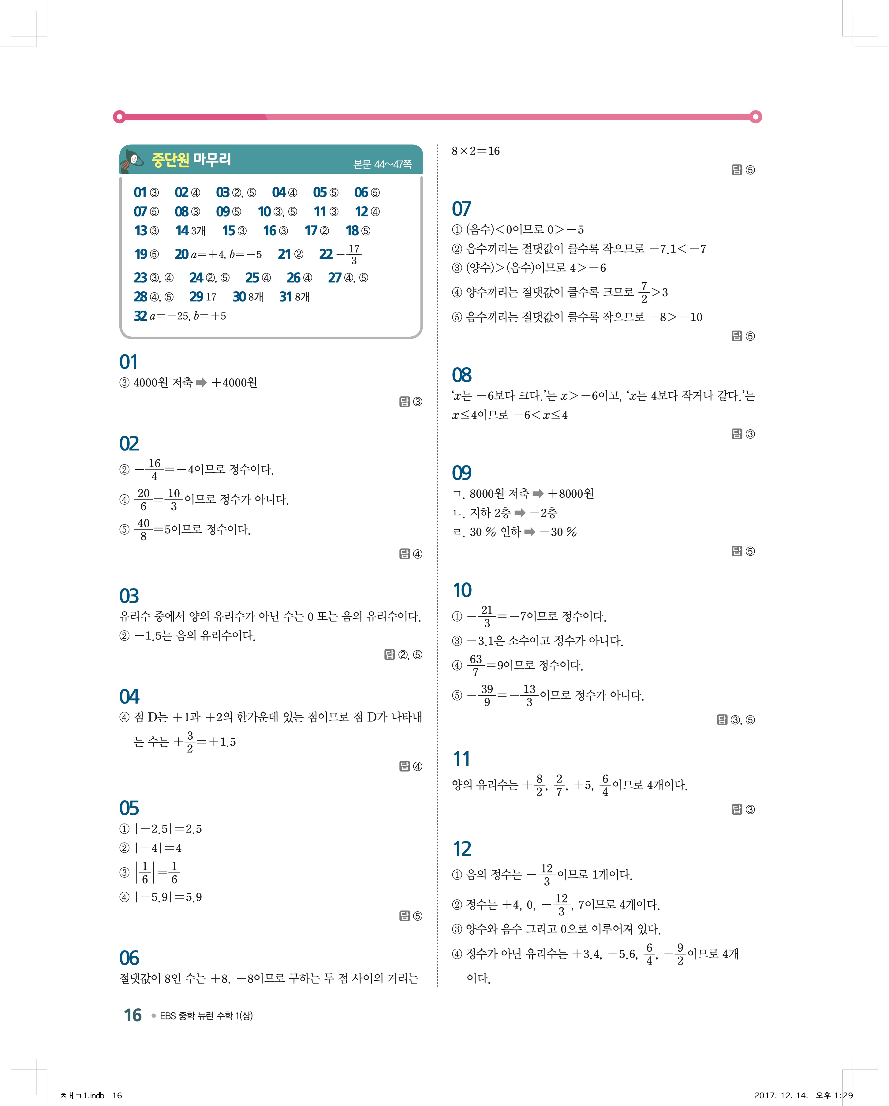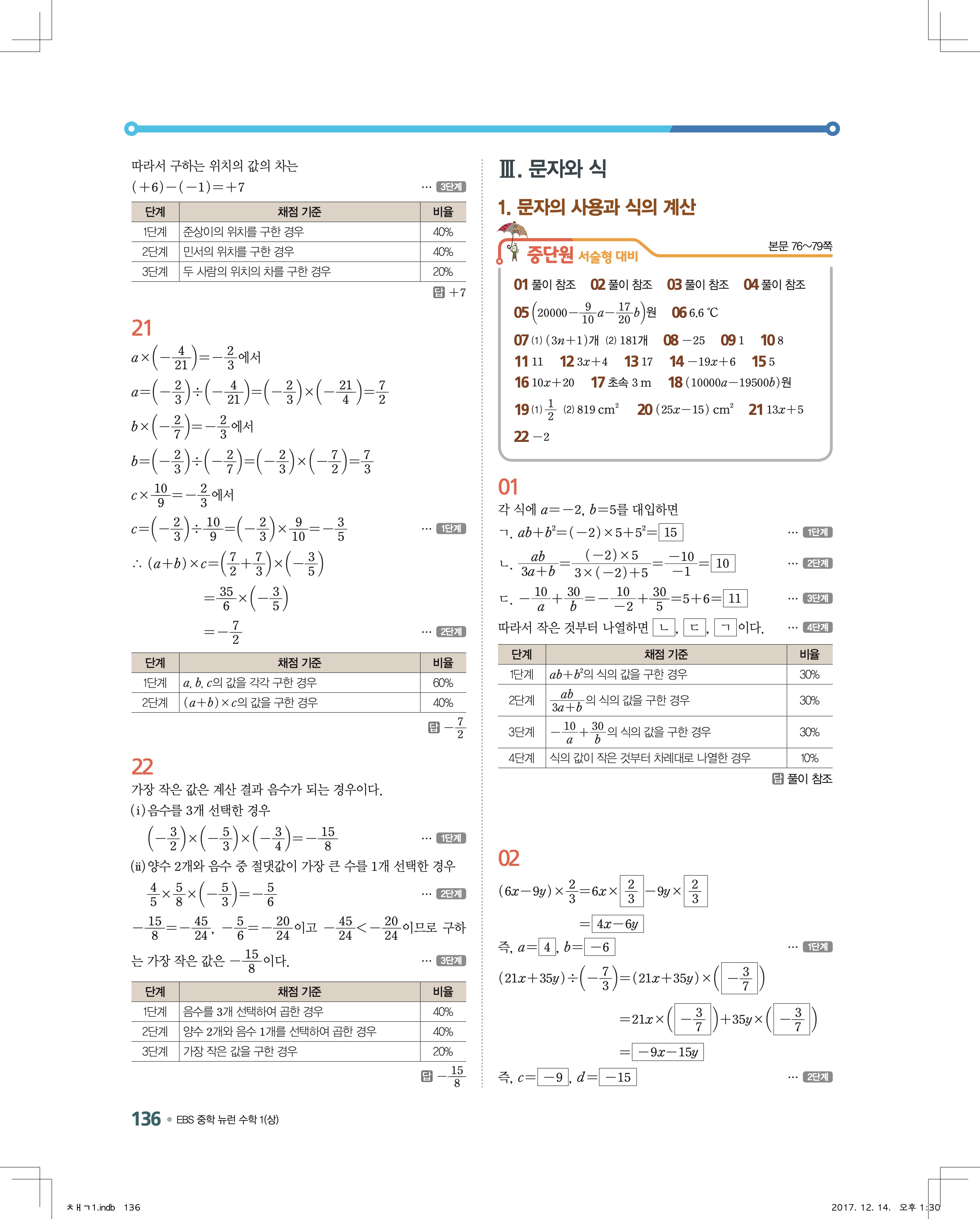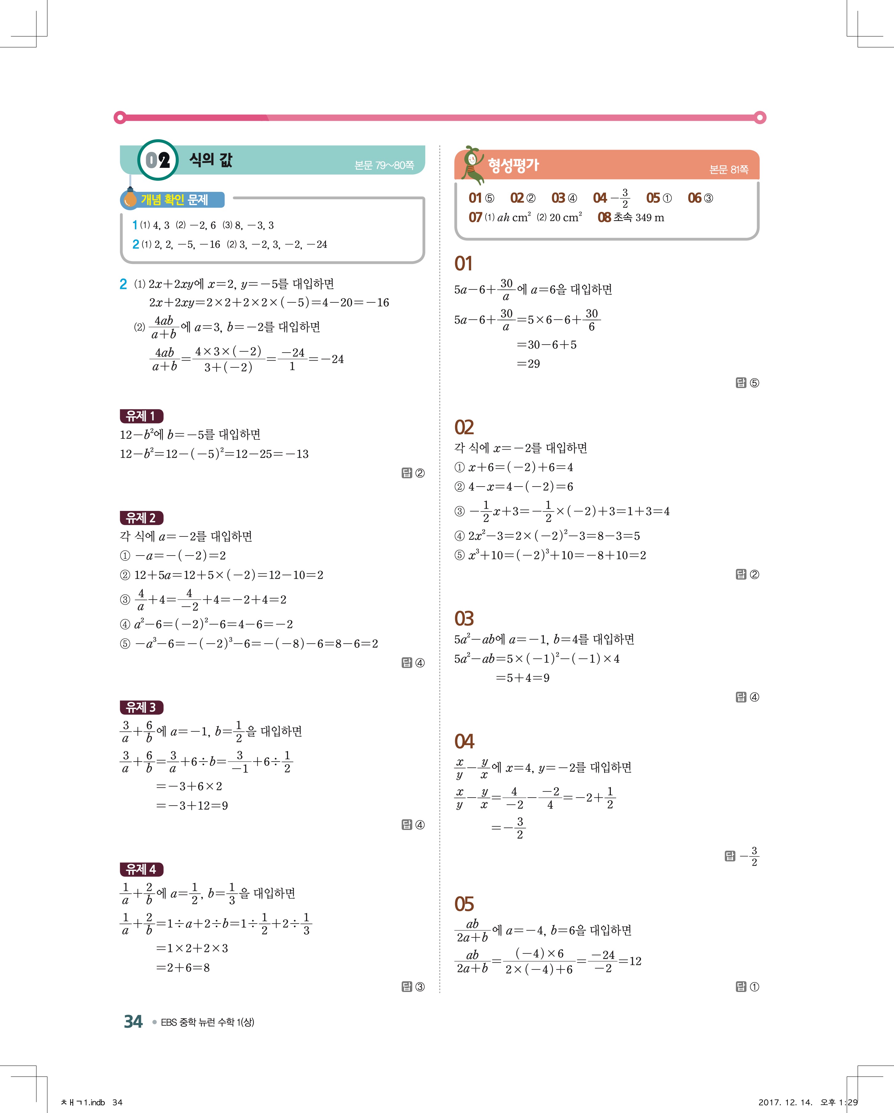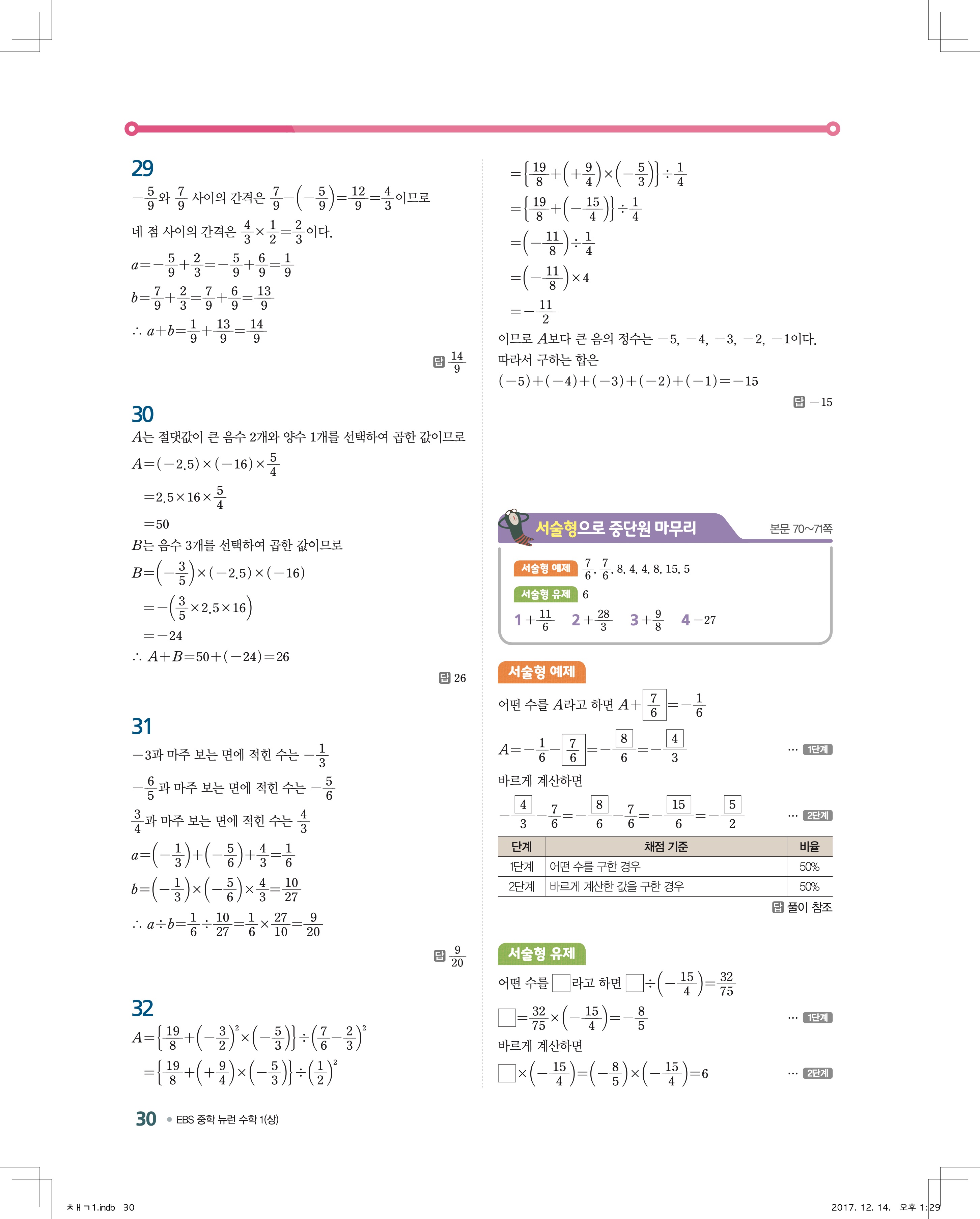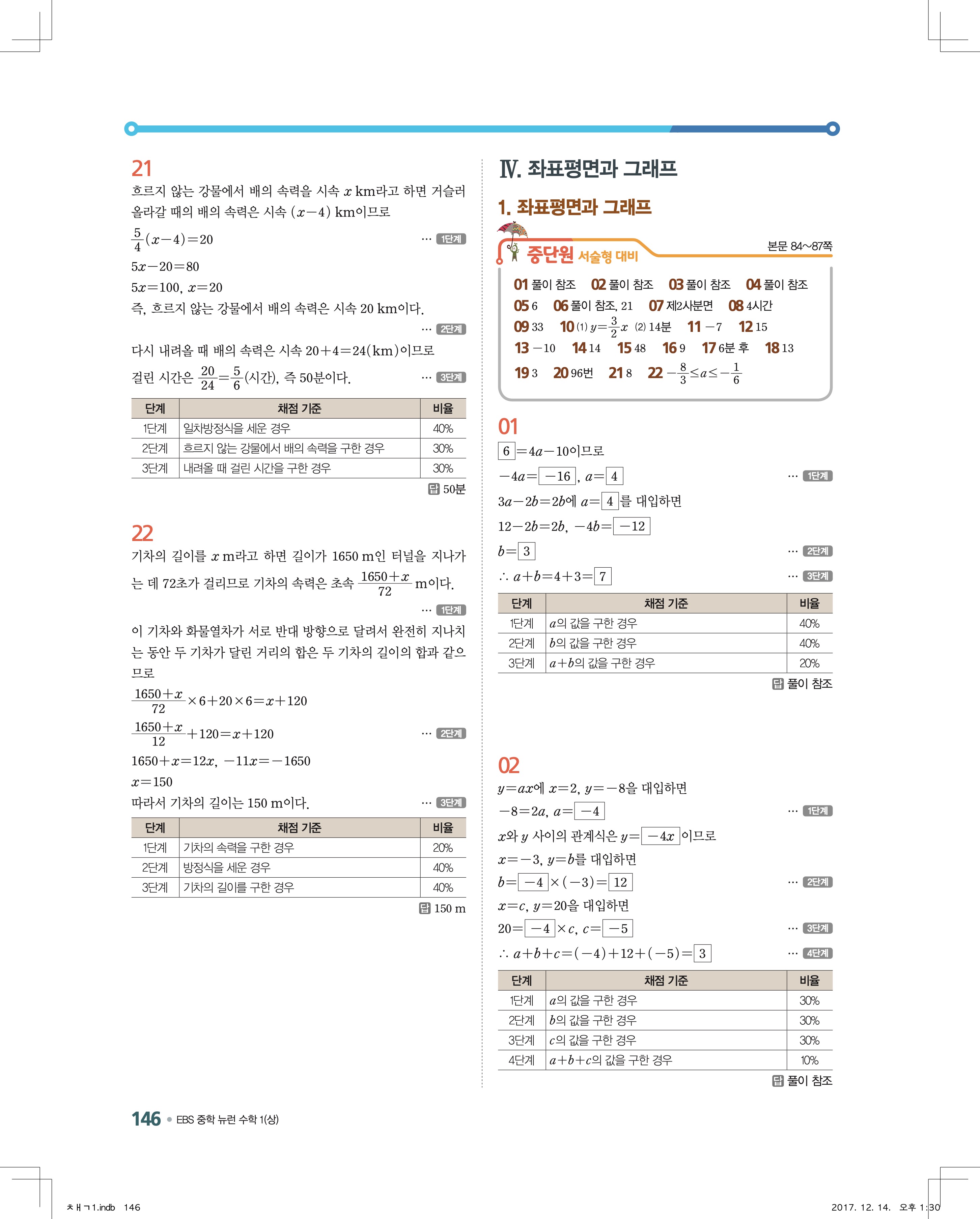 EBS 중학뉴런 수학1상 답지 해설 바로보는 사진답지 빠른답지 모바일최적화