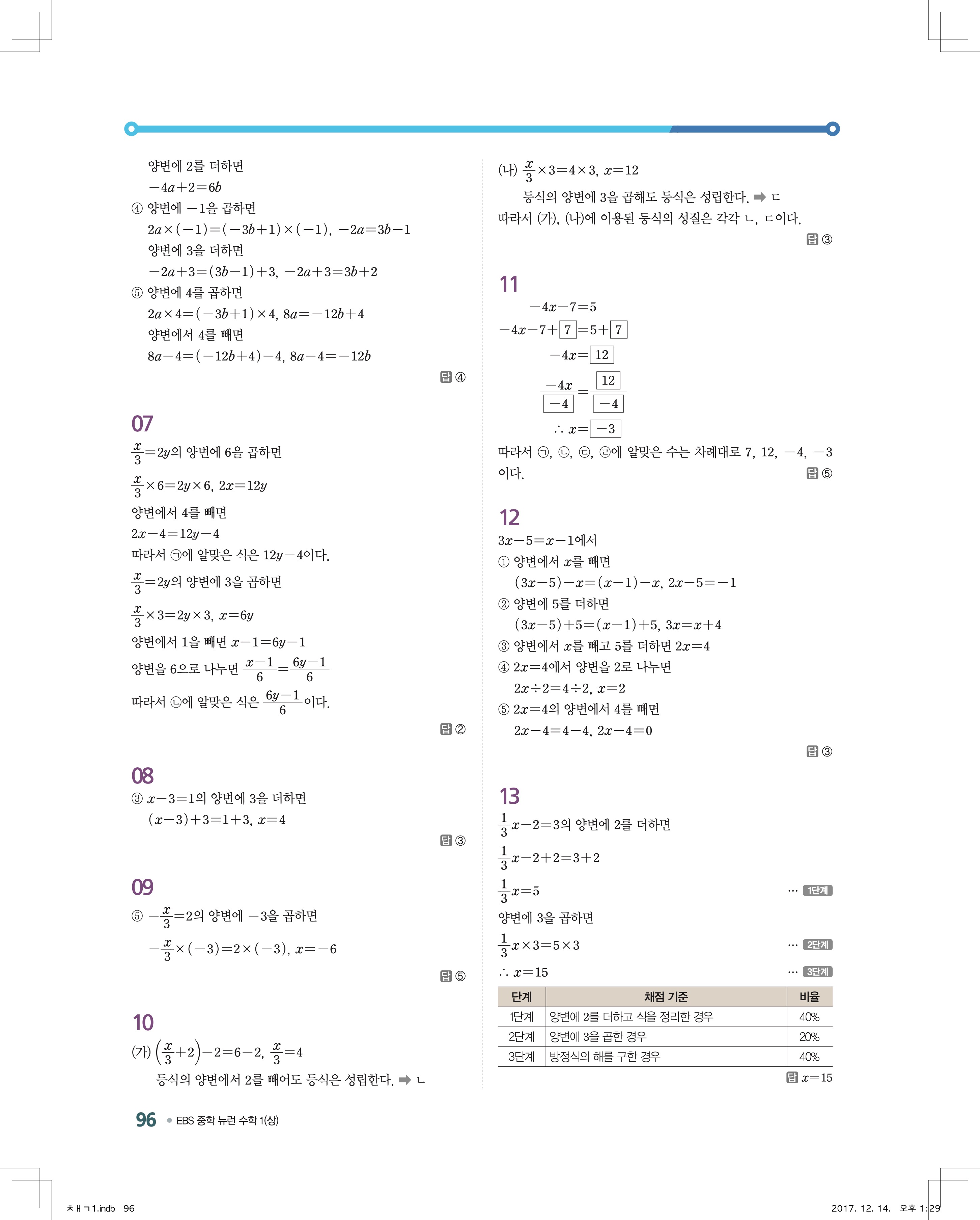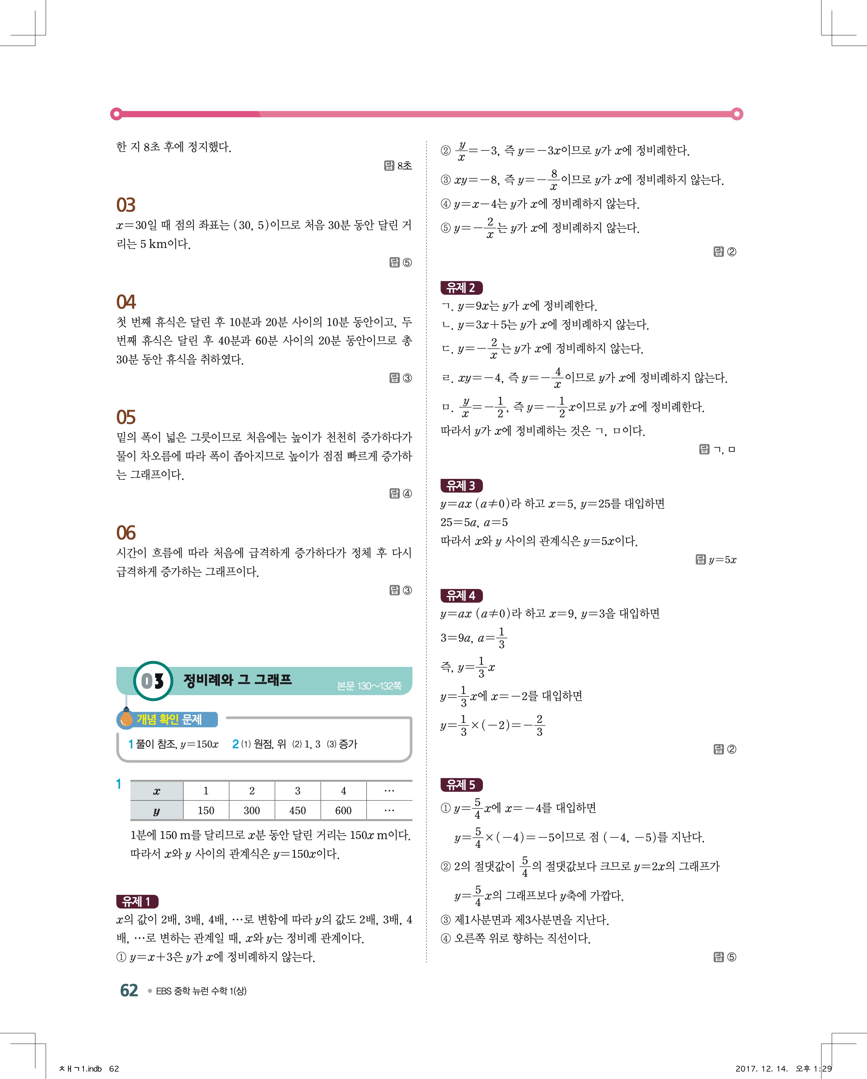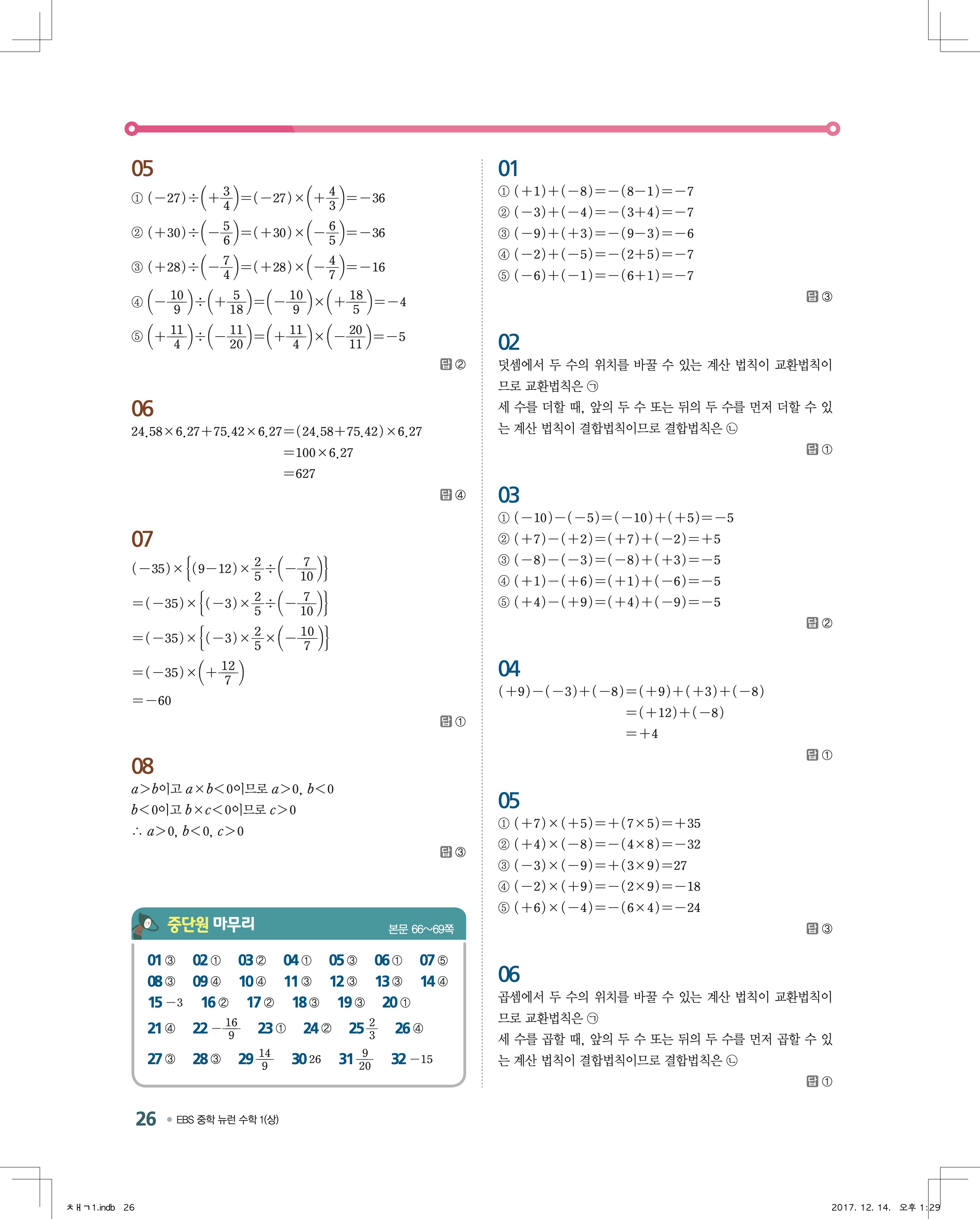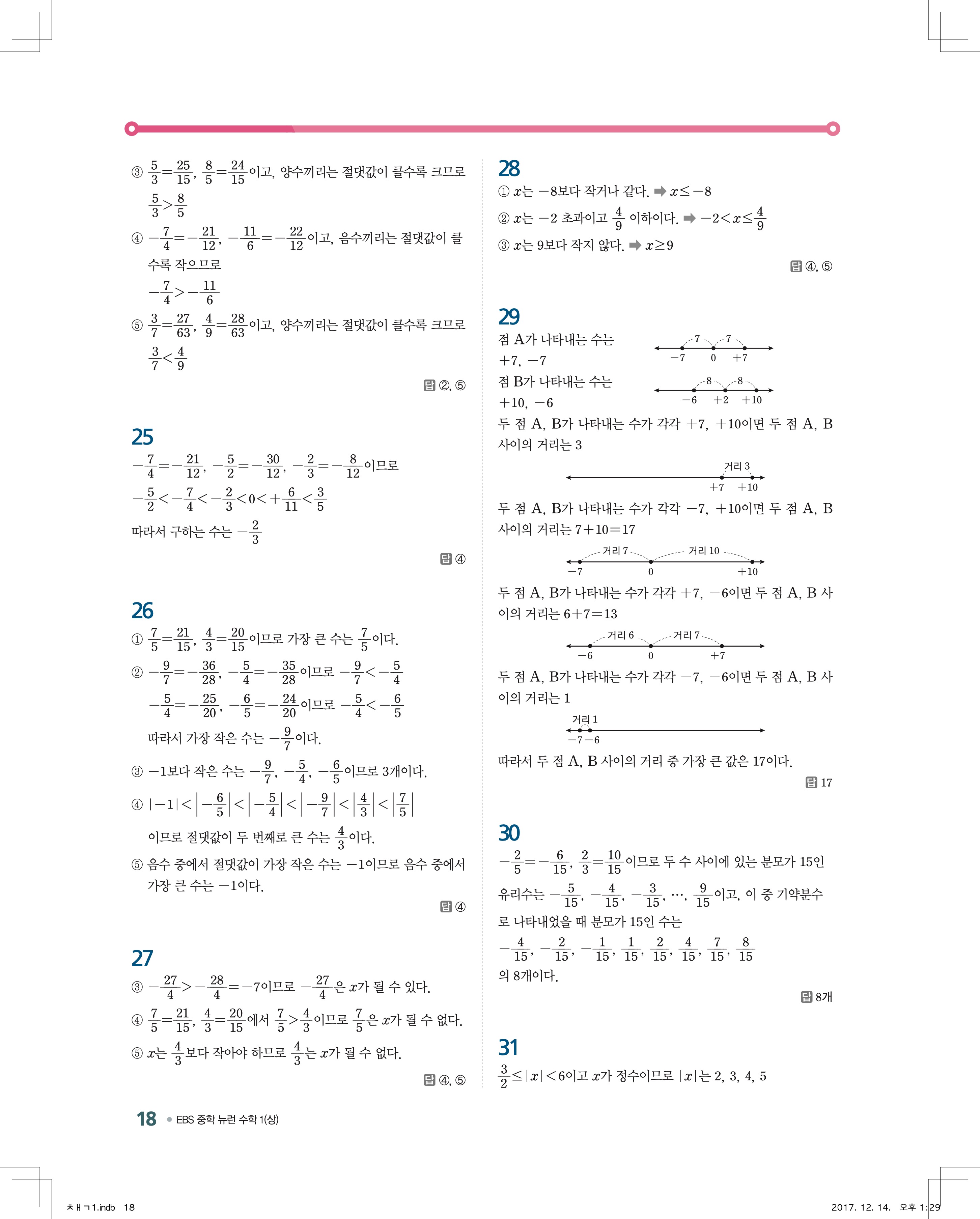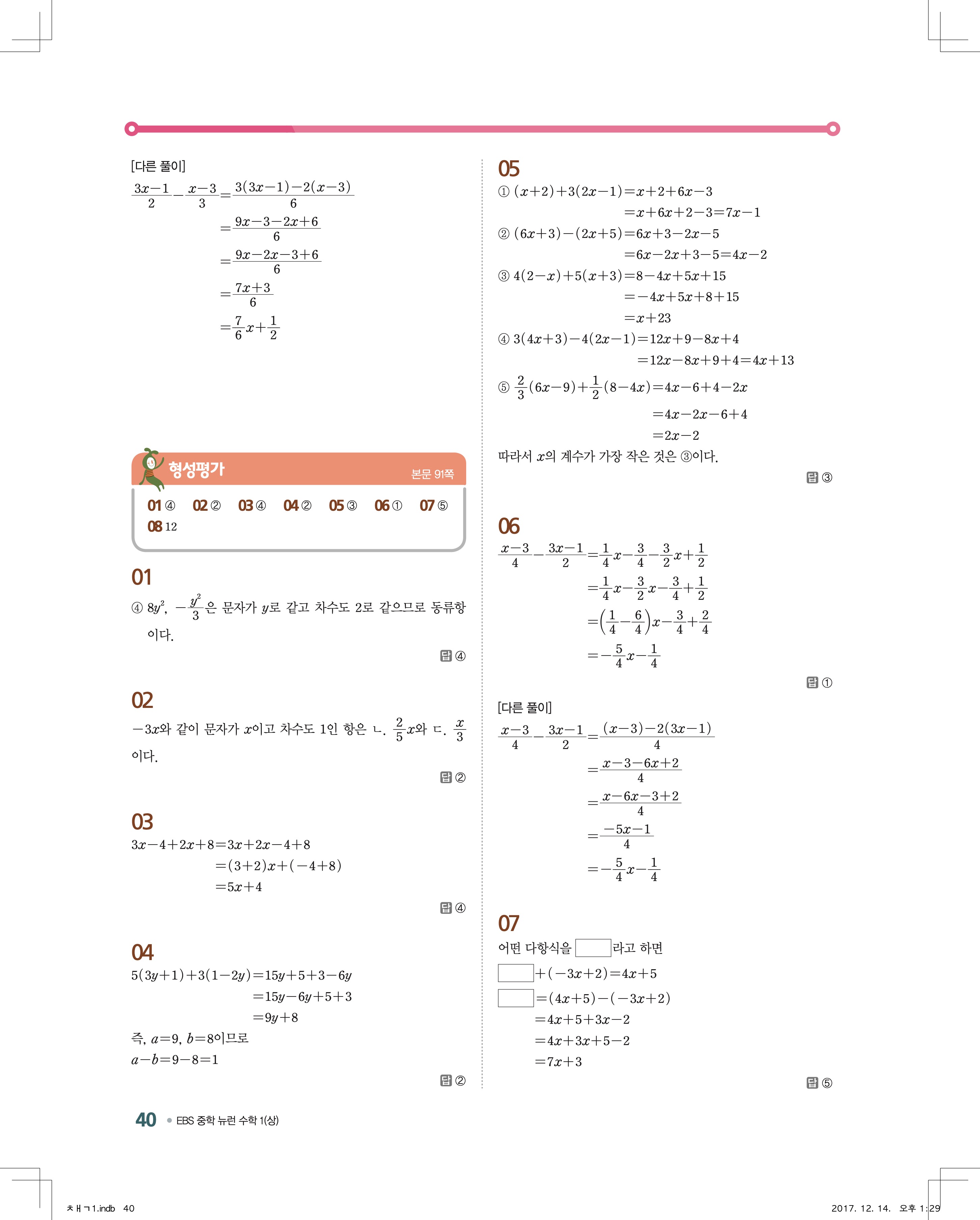 EBS 중학뉴런 수학1상 답지 해설 바로보는 사진답지 빠른답지 모바일최적화