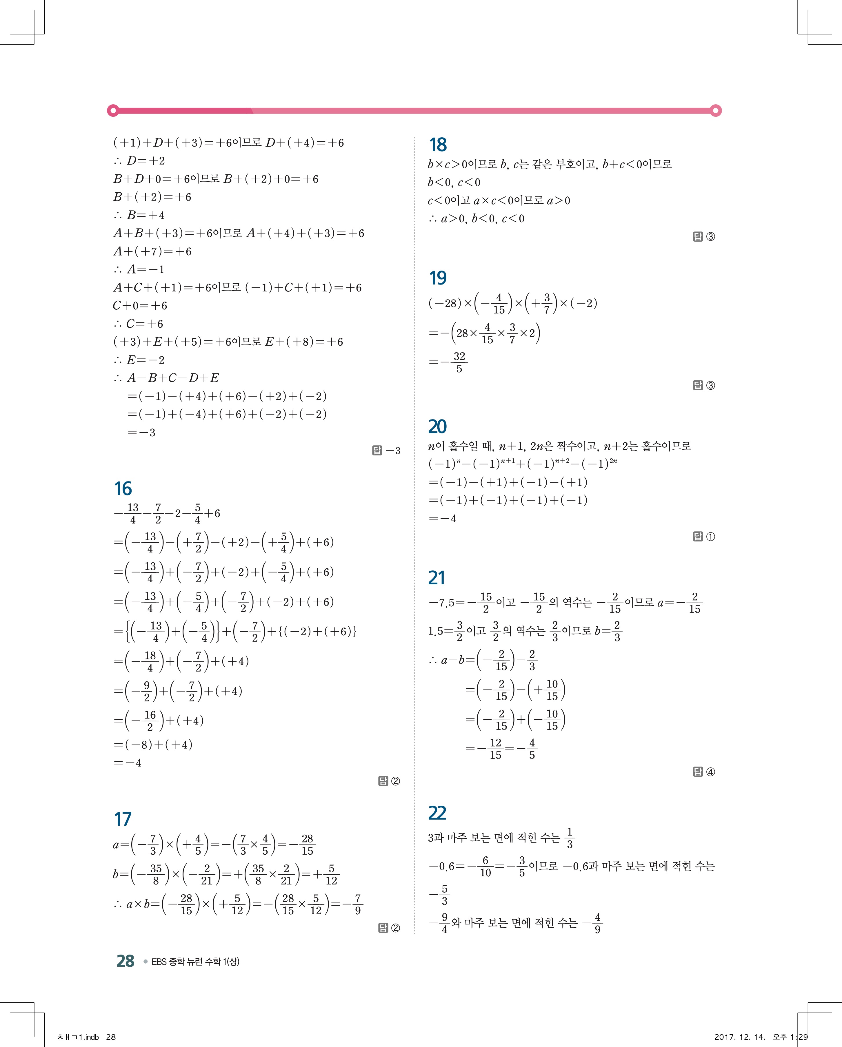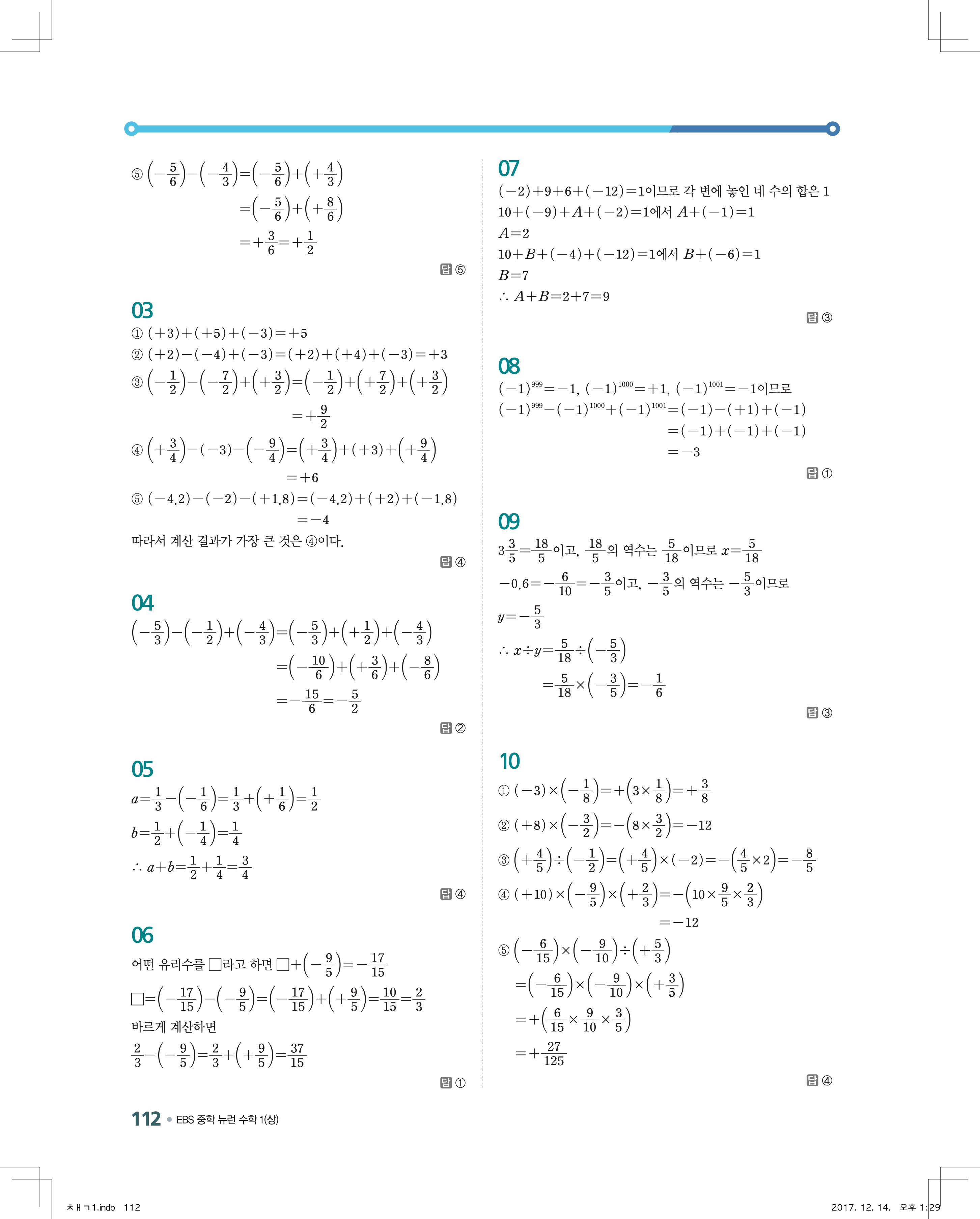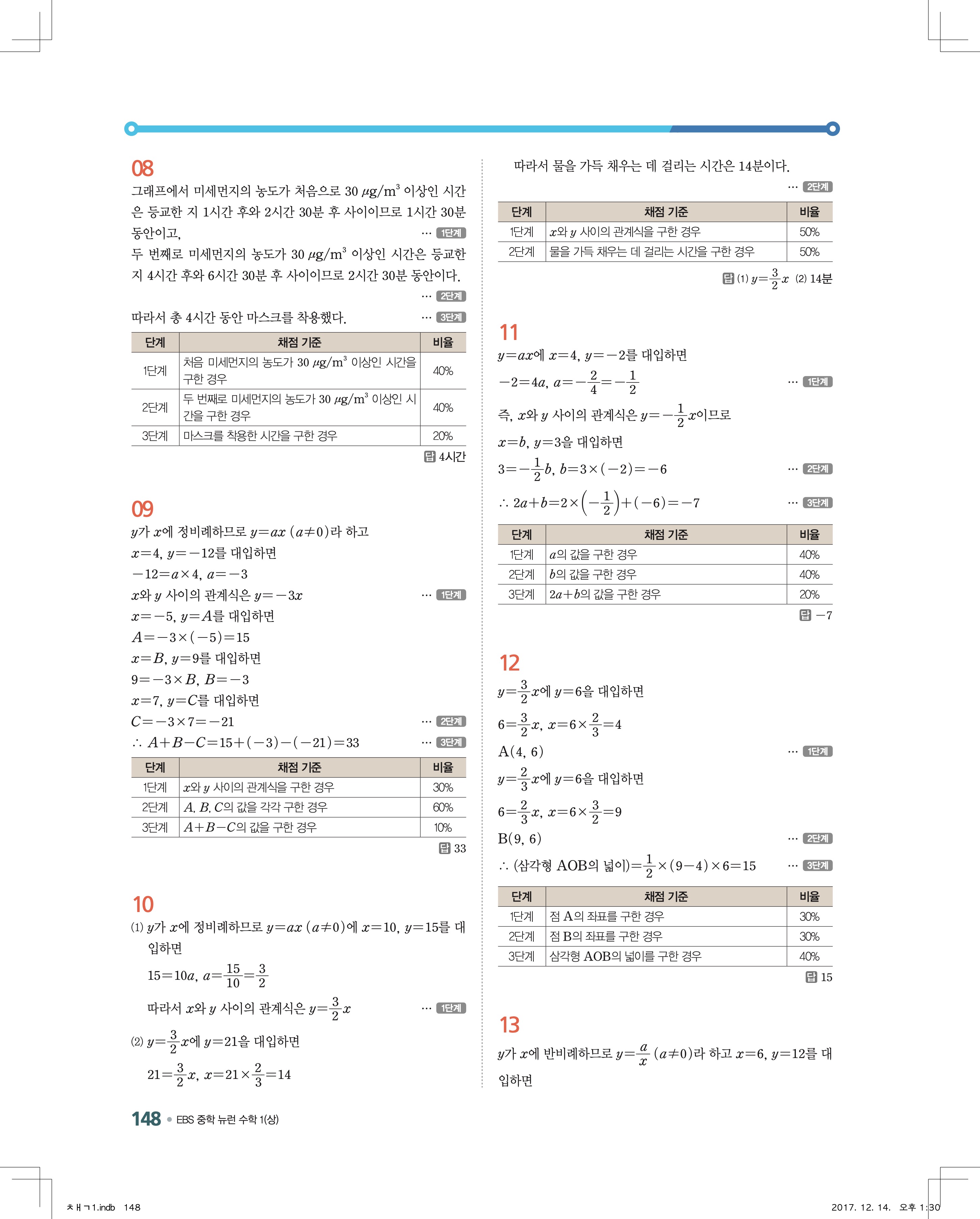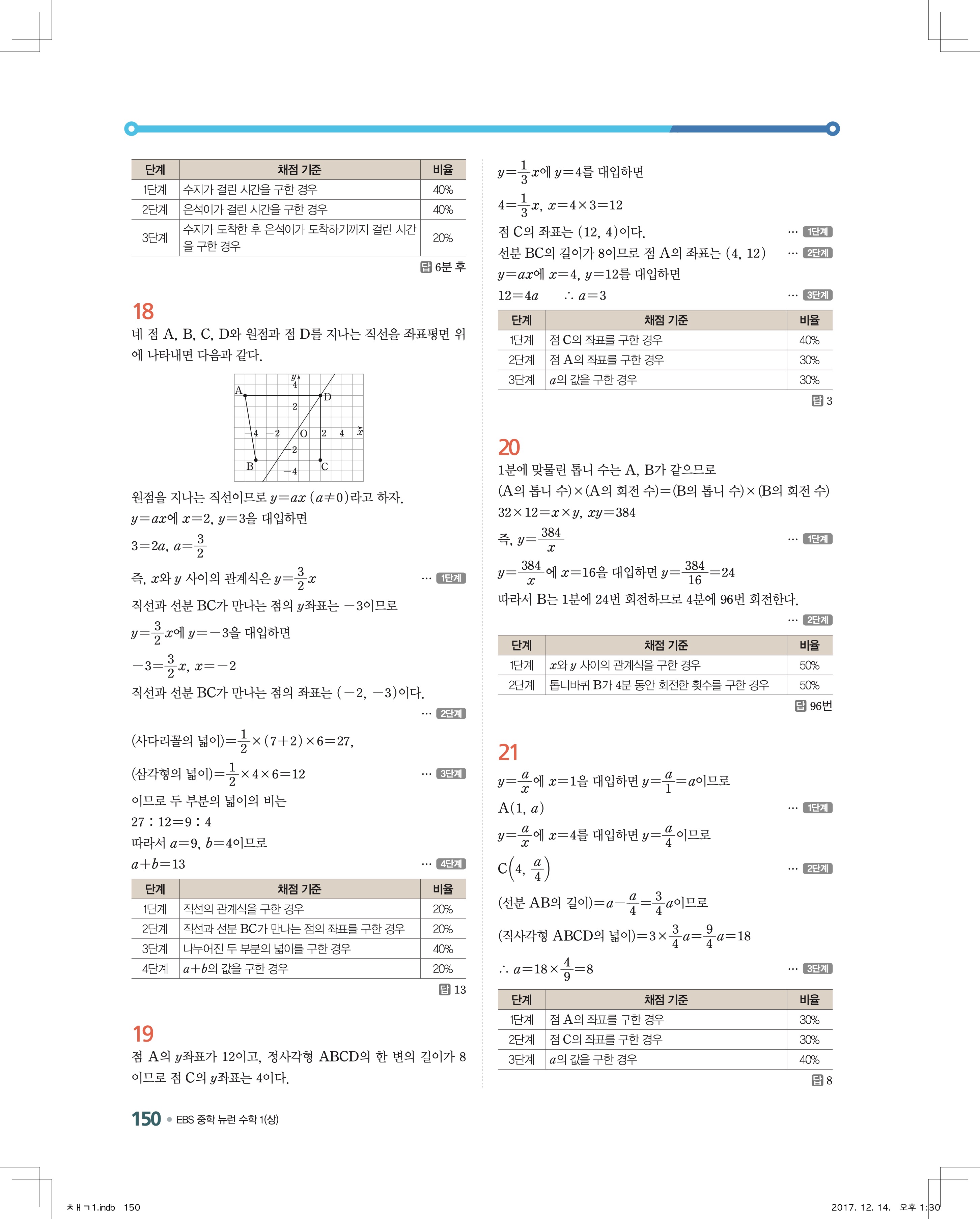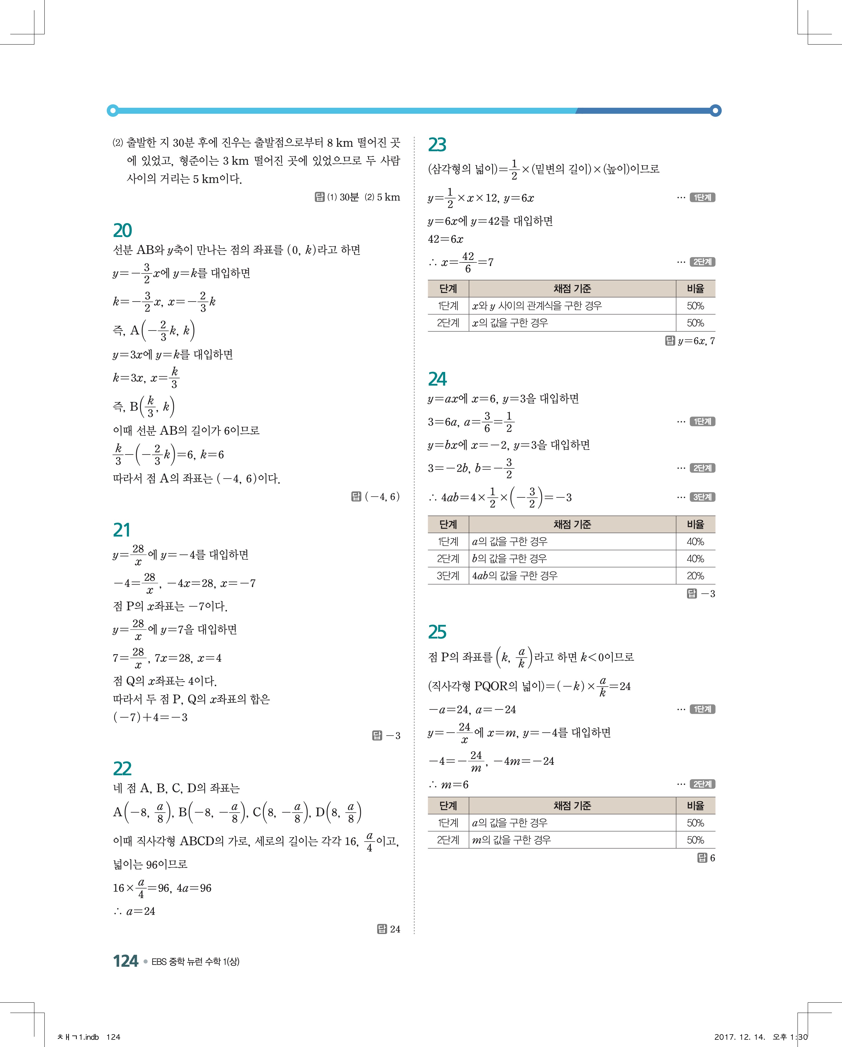 EBS 중학뉴런 수학1상 답지 해설 바로보는 사진답지 빠른답지 모바일최적화