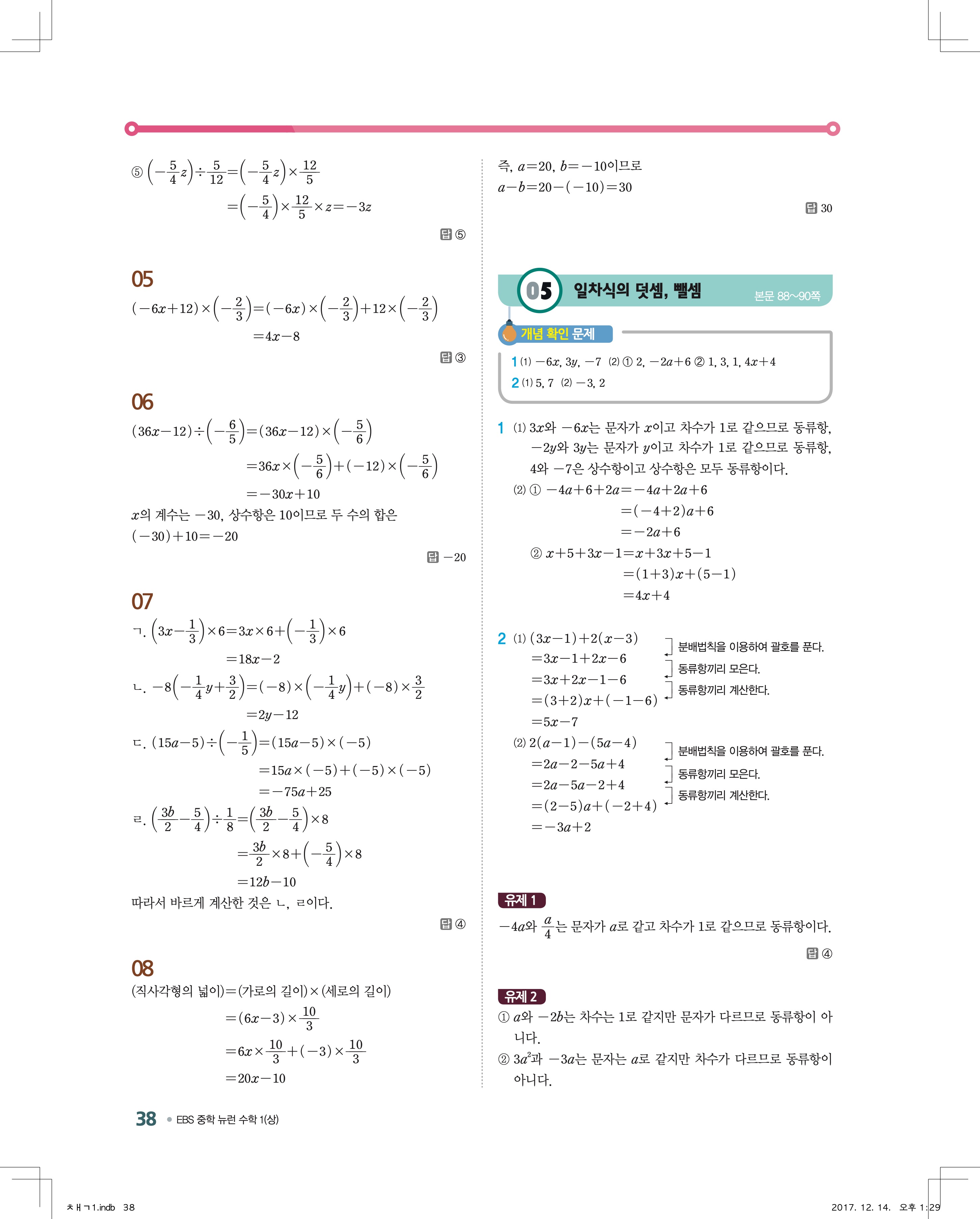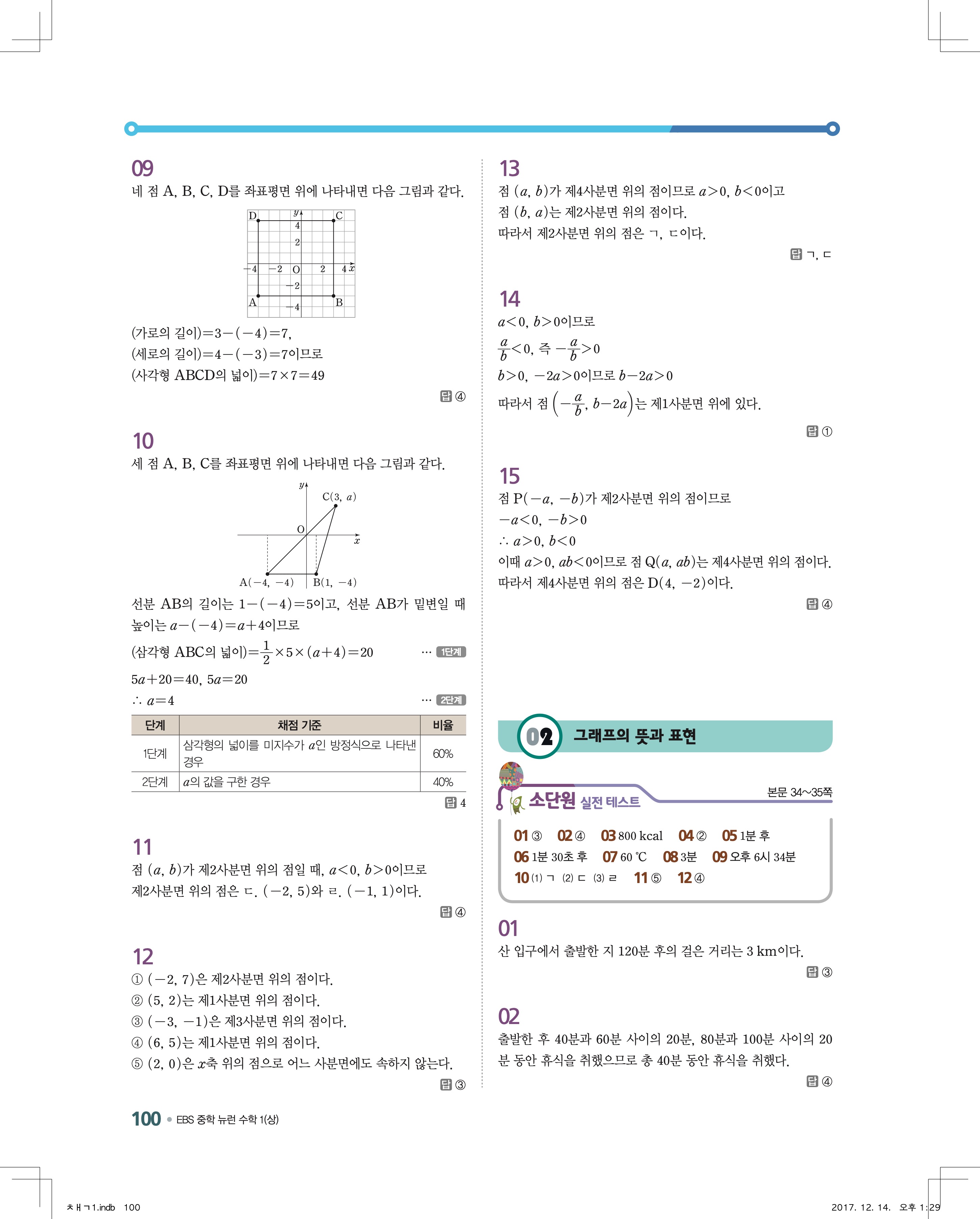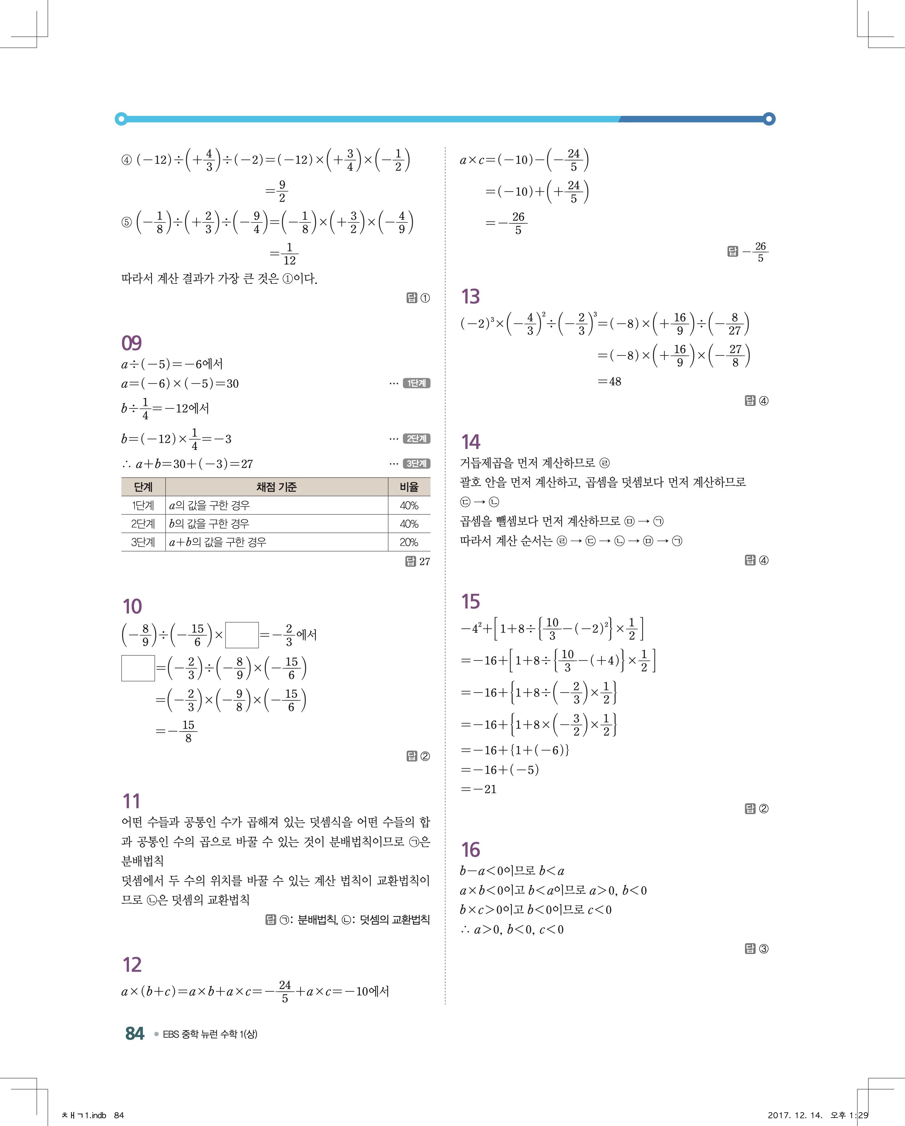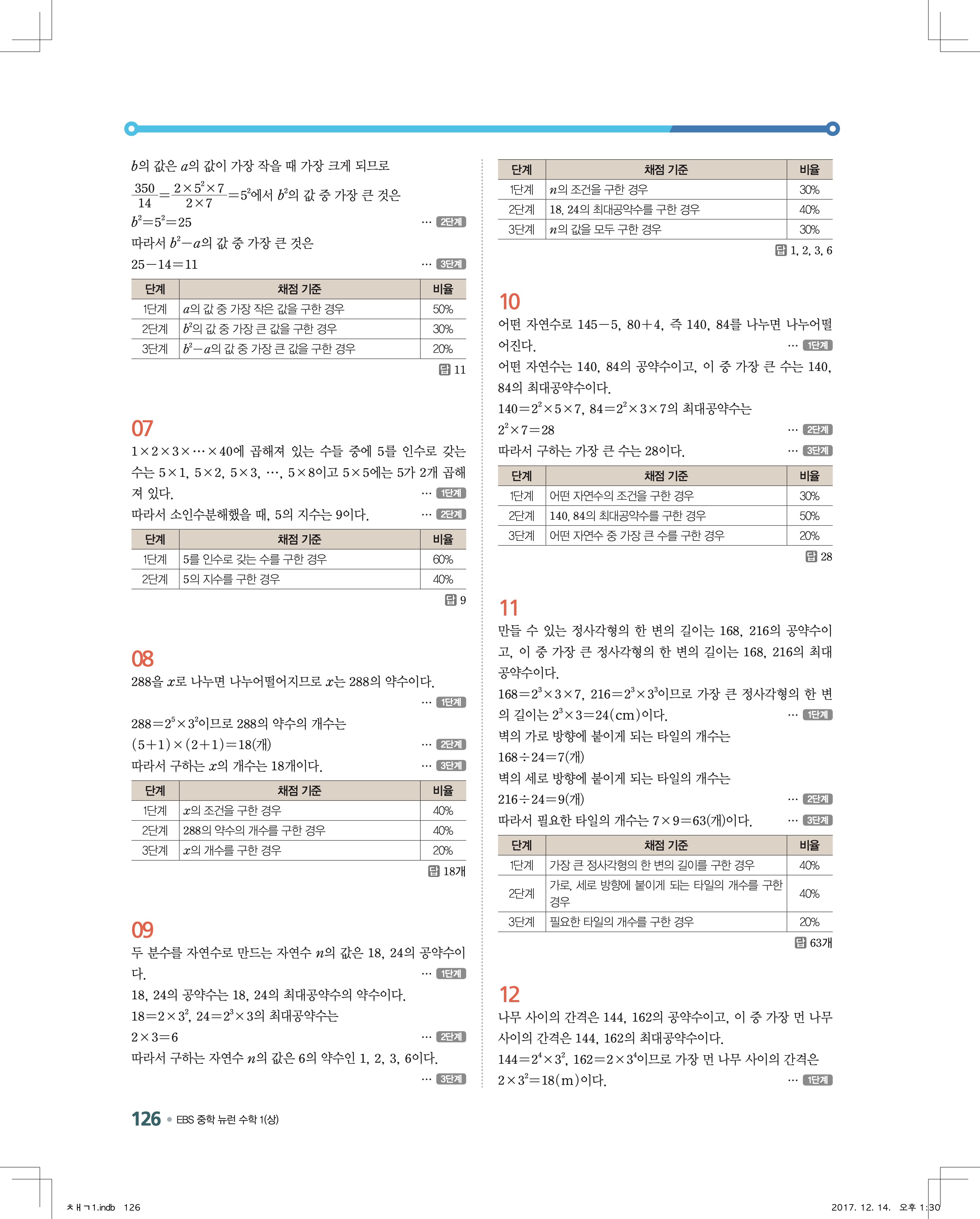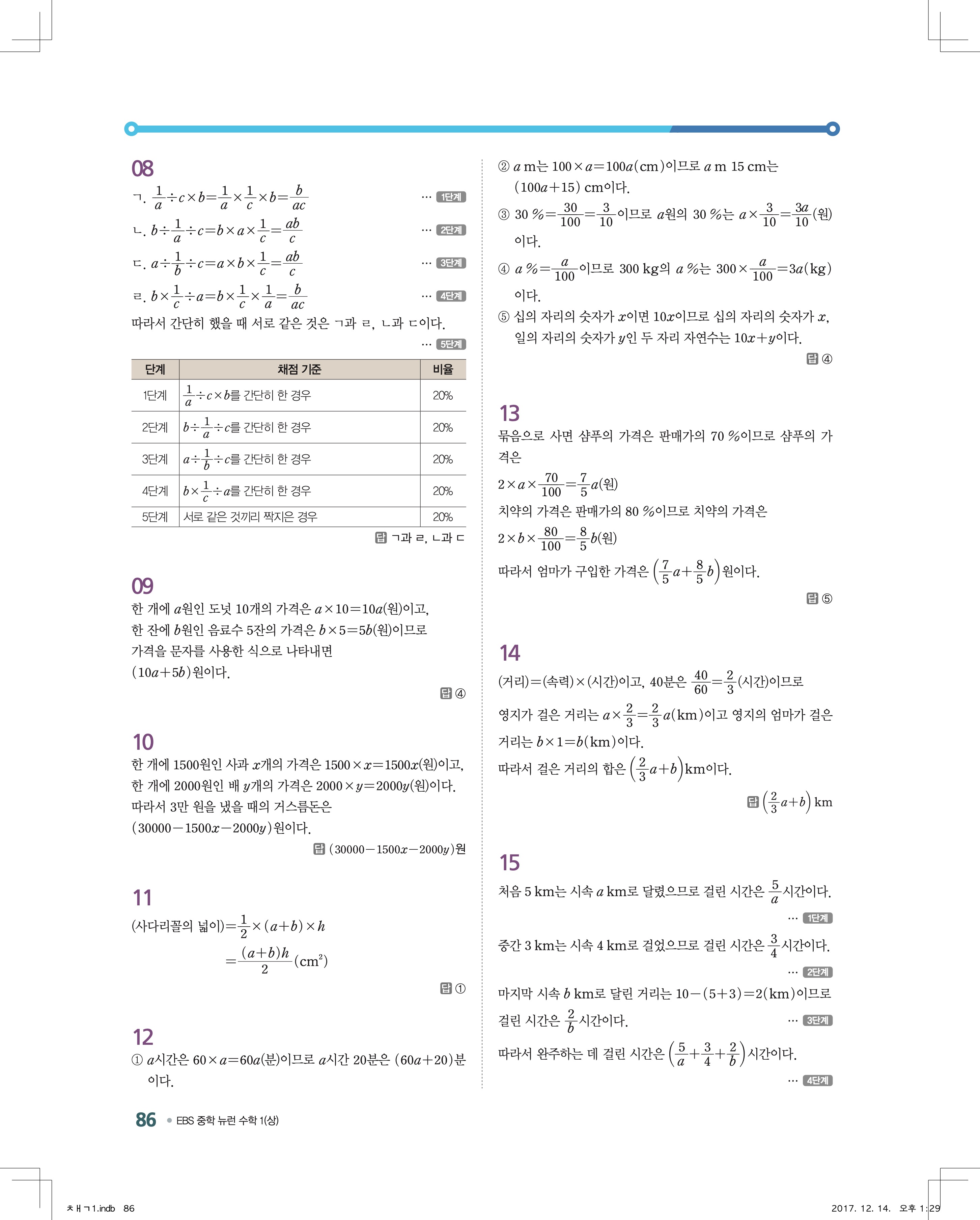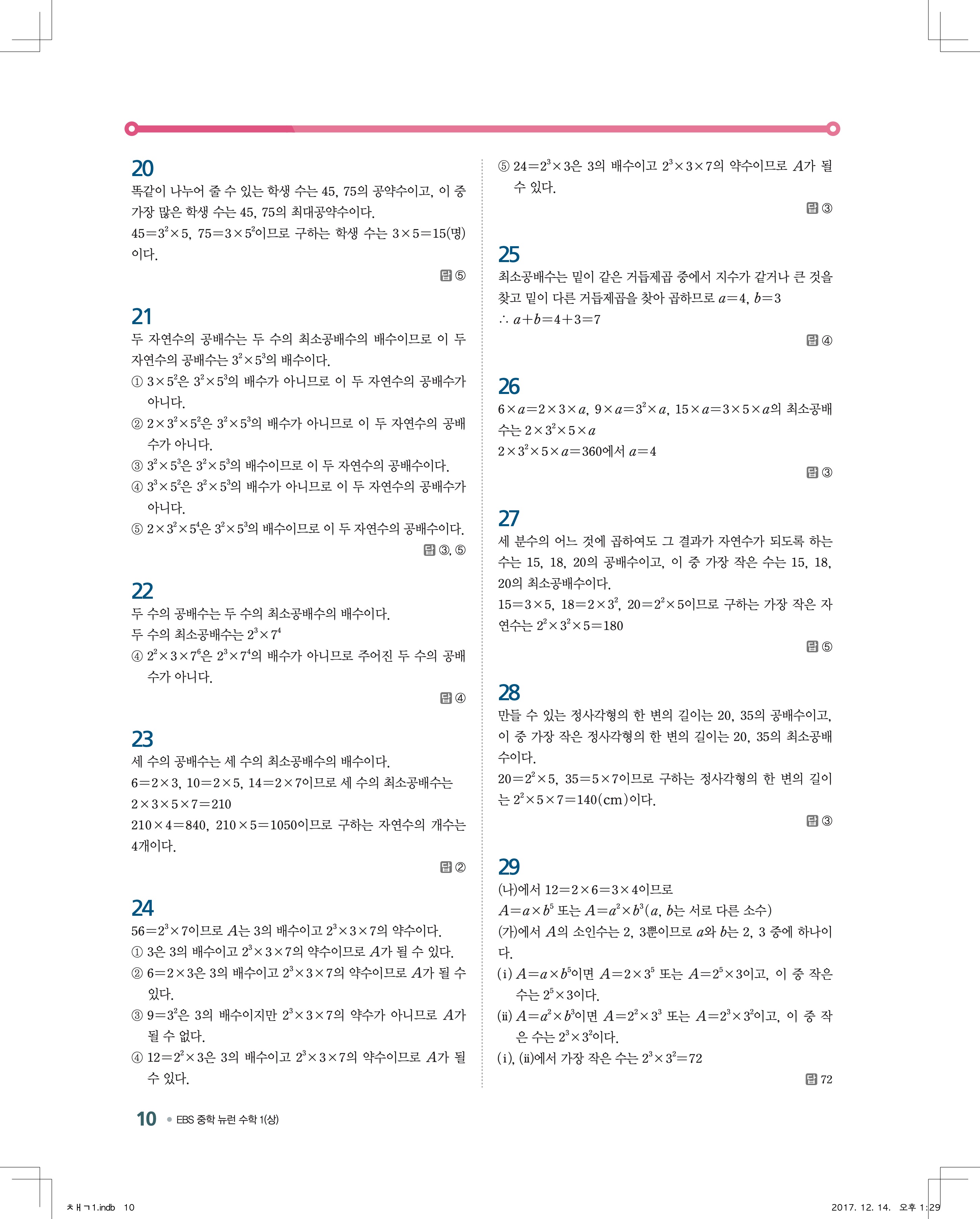 EBS 중학뉴런 수학1상 답지 해설 바로보는 사진답지 빠른답지 모바일최적화