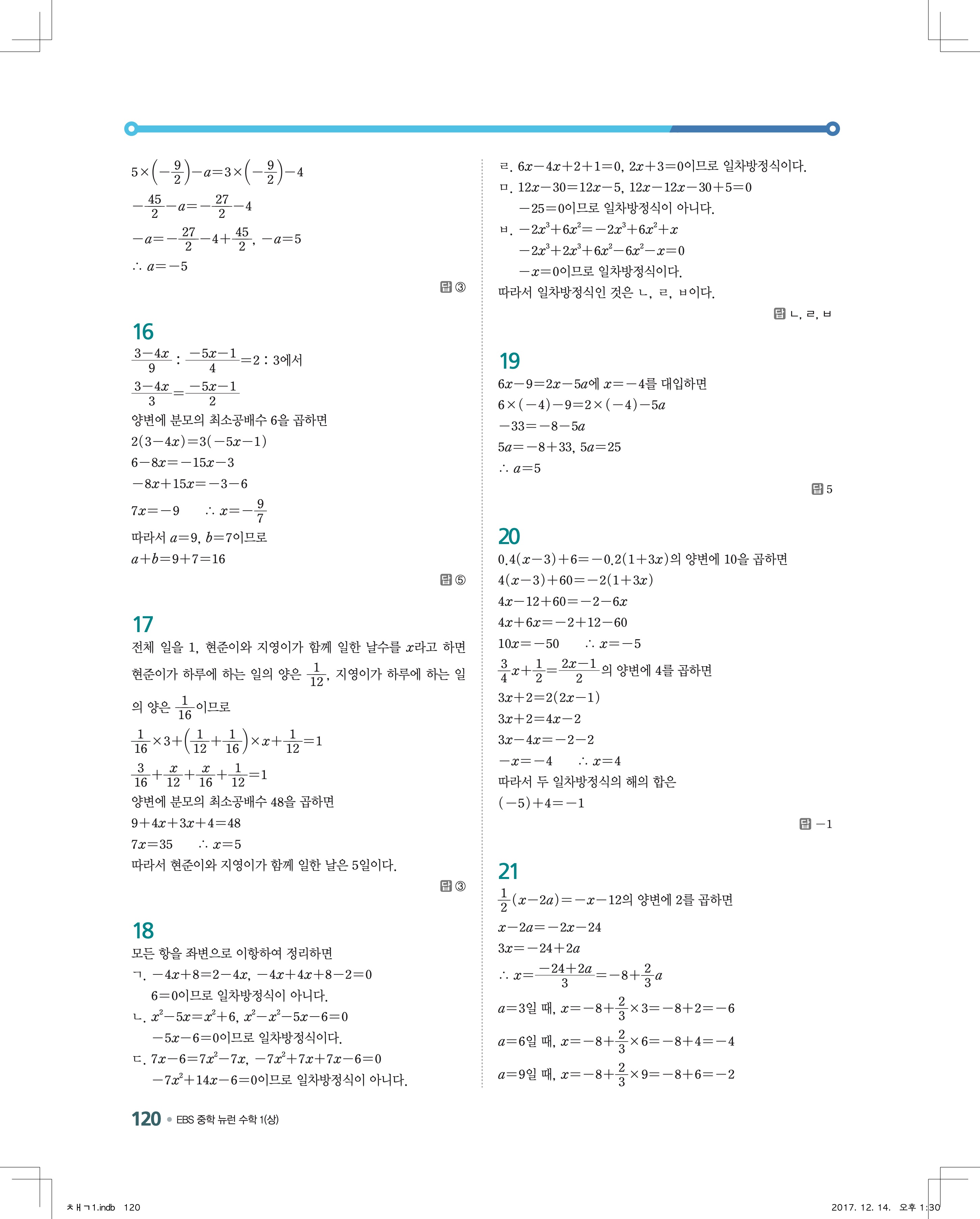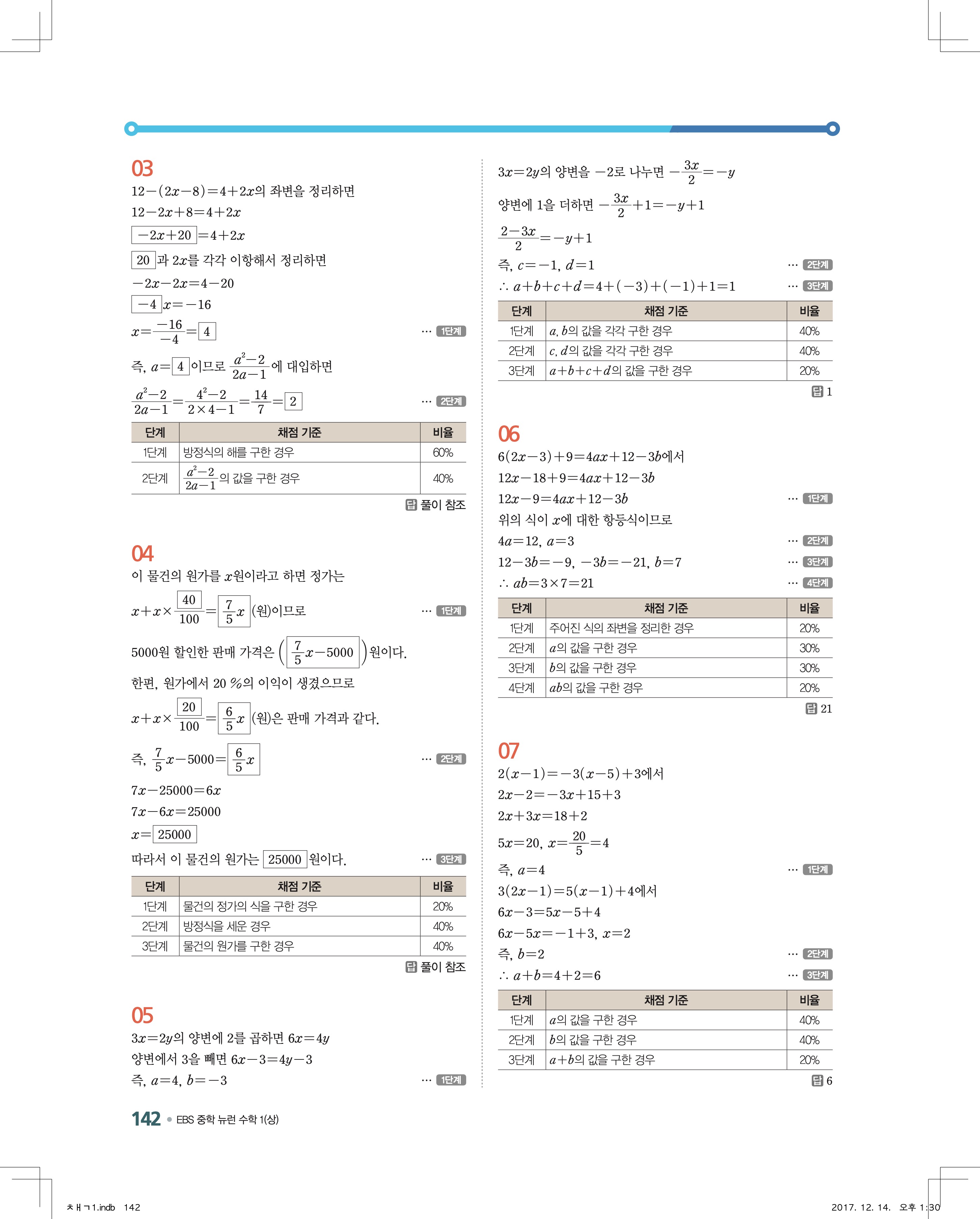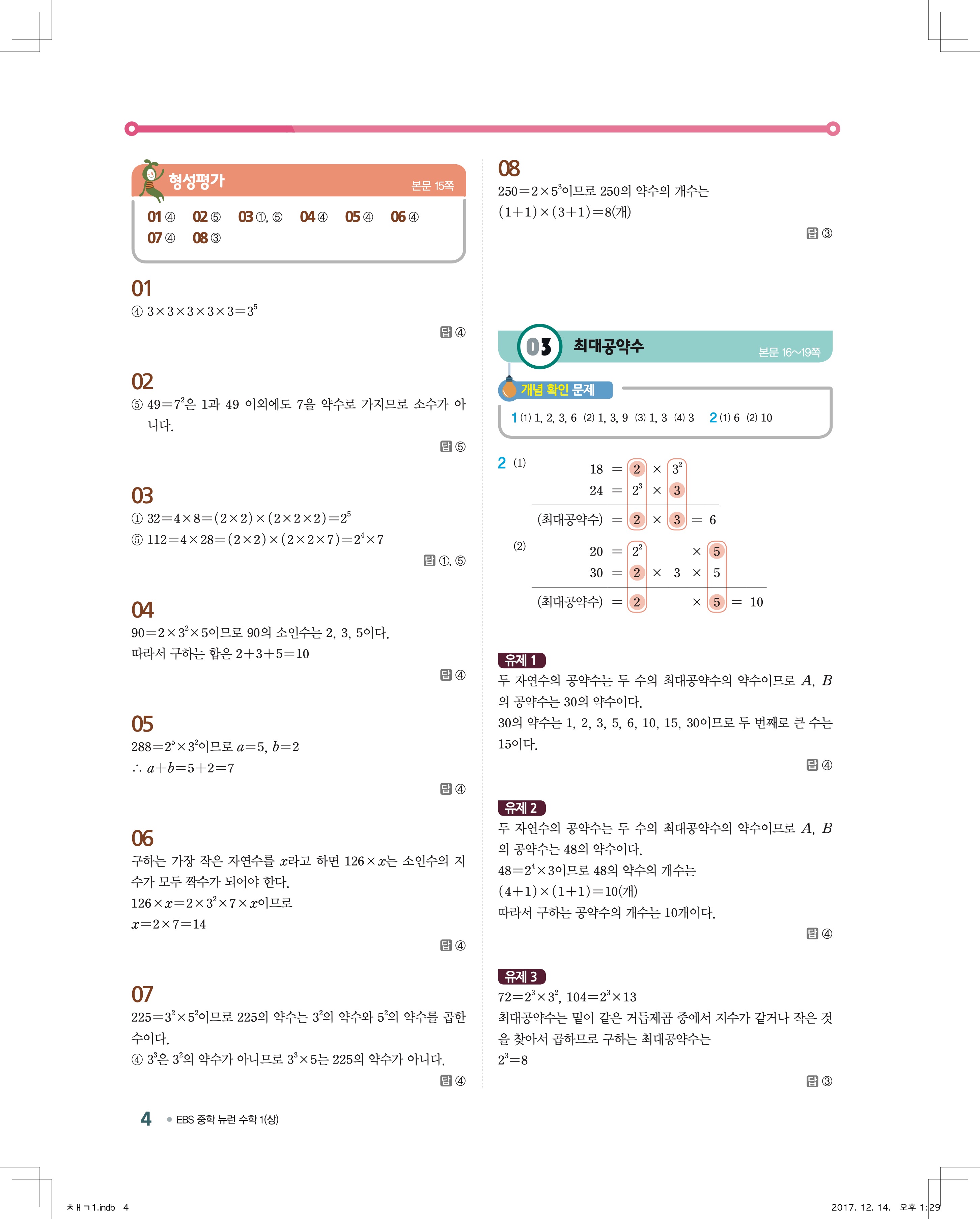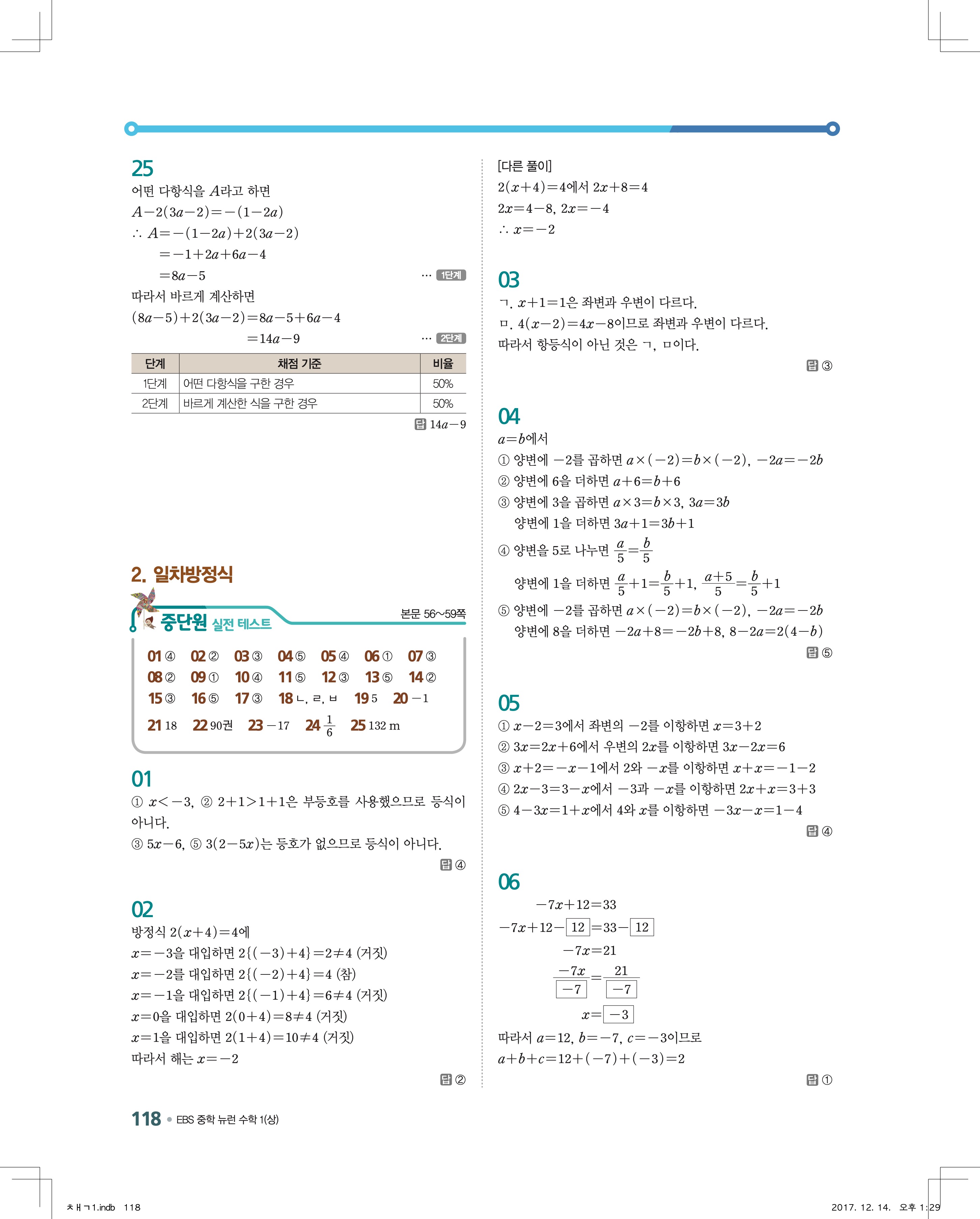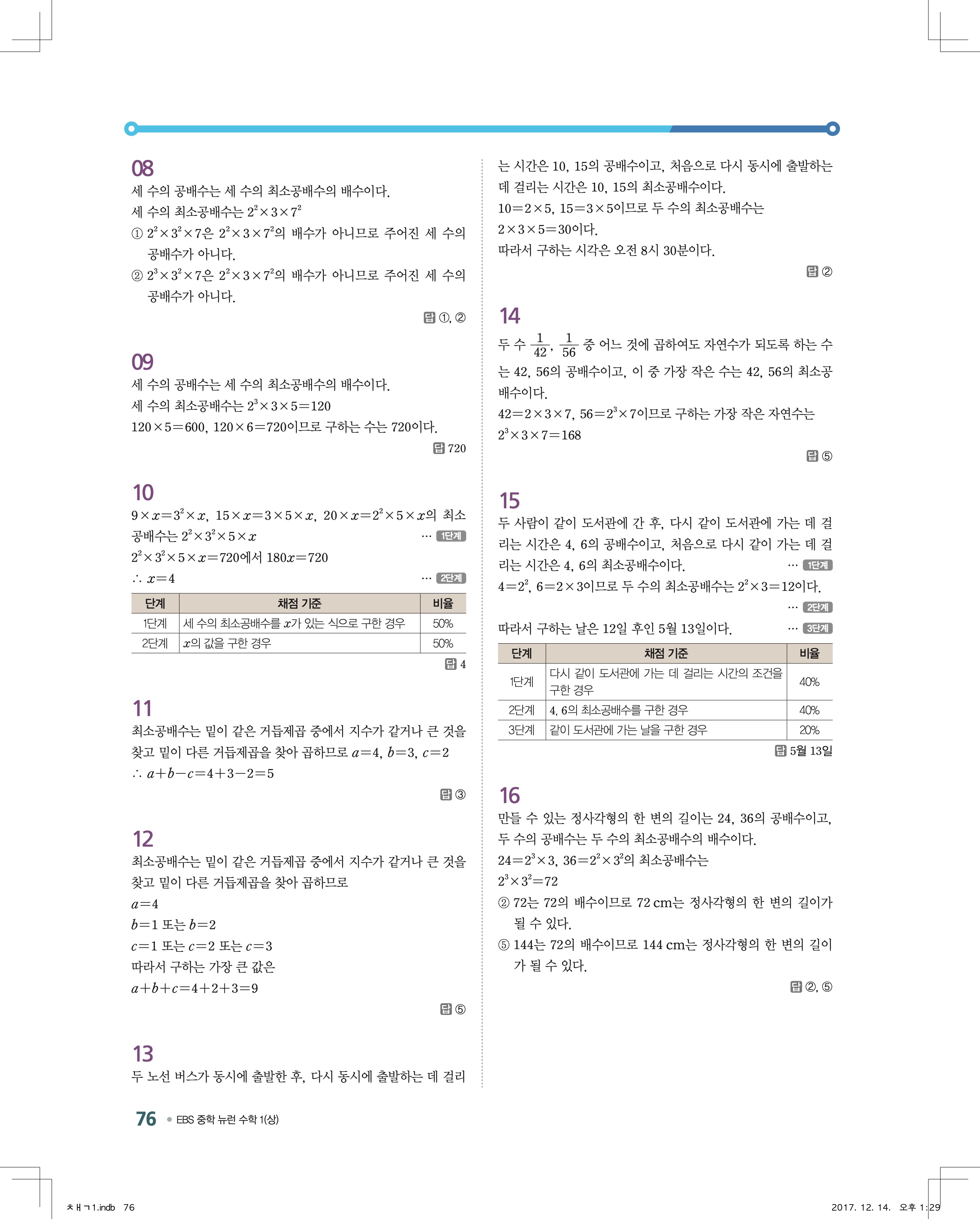 EBS 중학뉴런 수학1상 답지 해설 바로보는 사진답지 빠른답지 모바일최적화