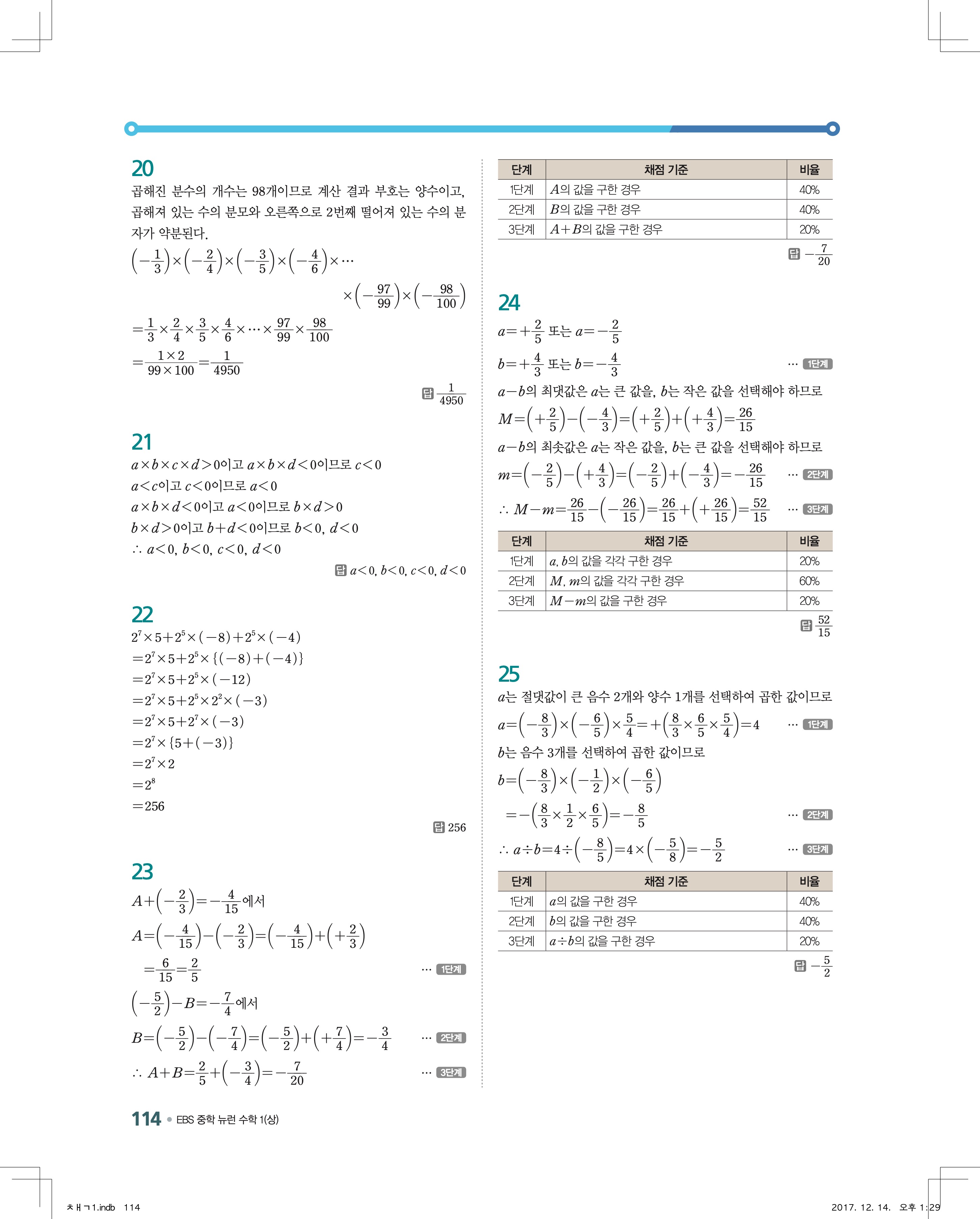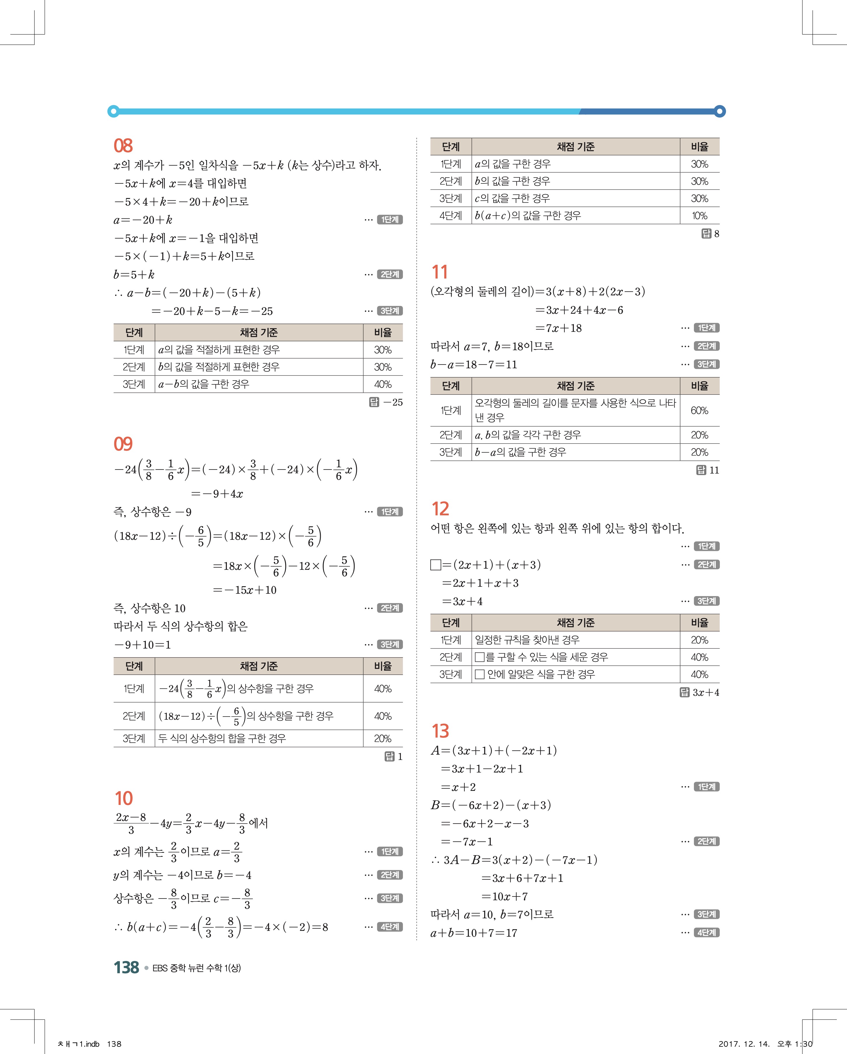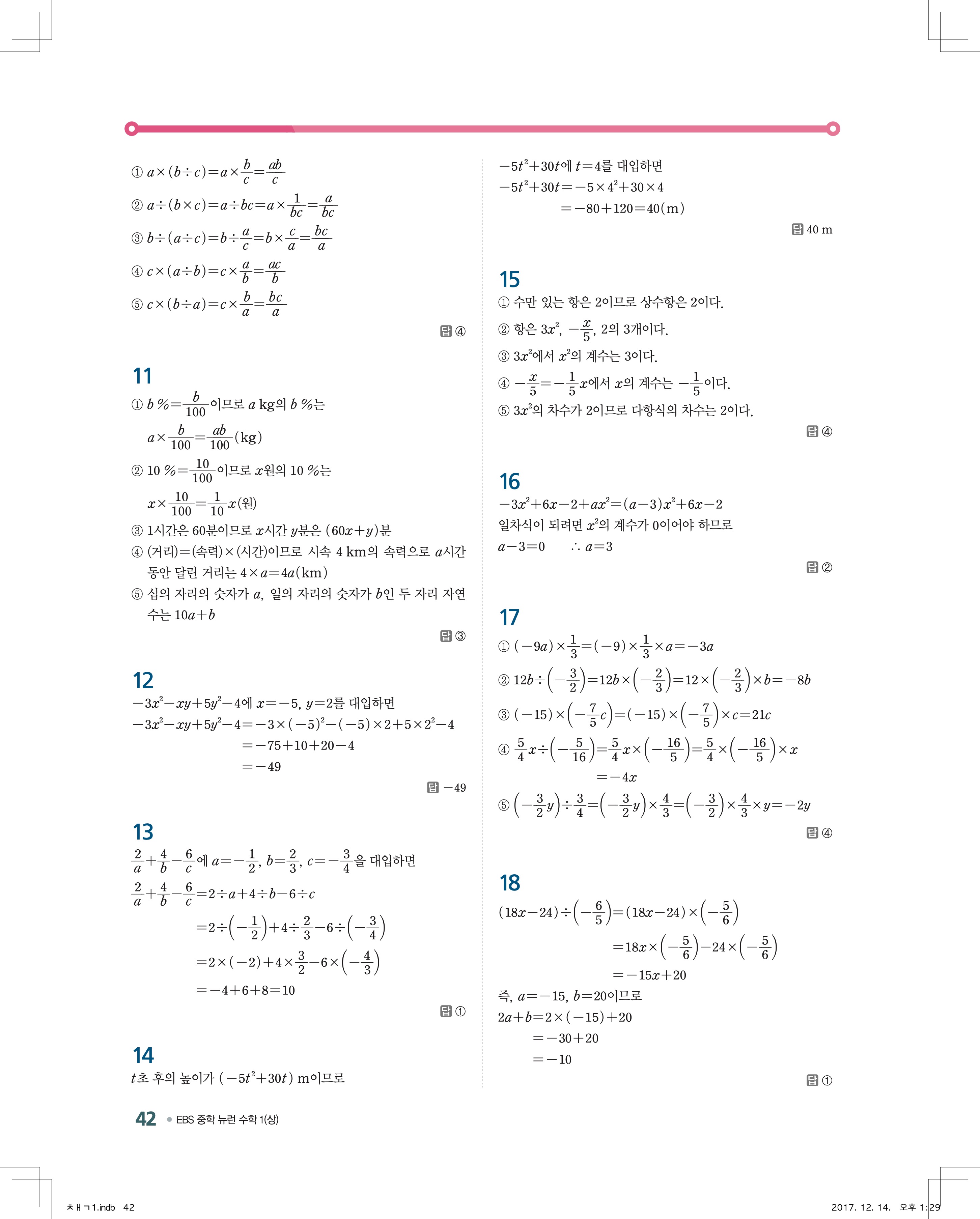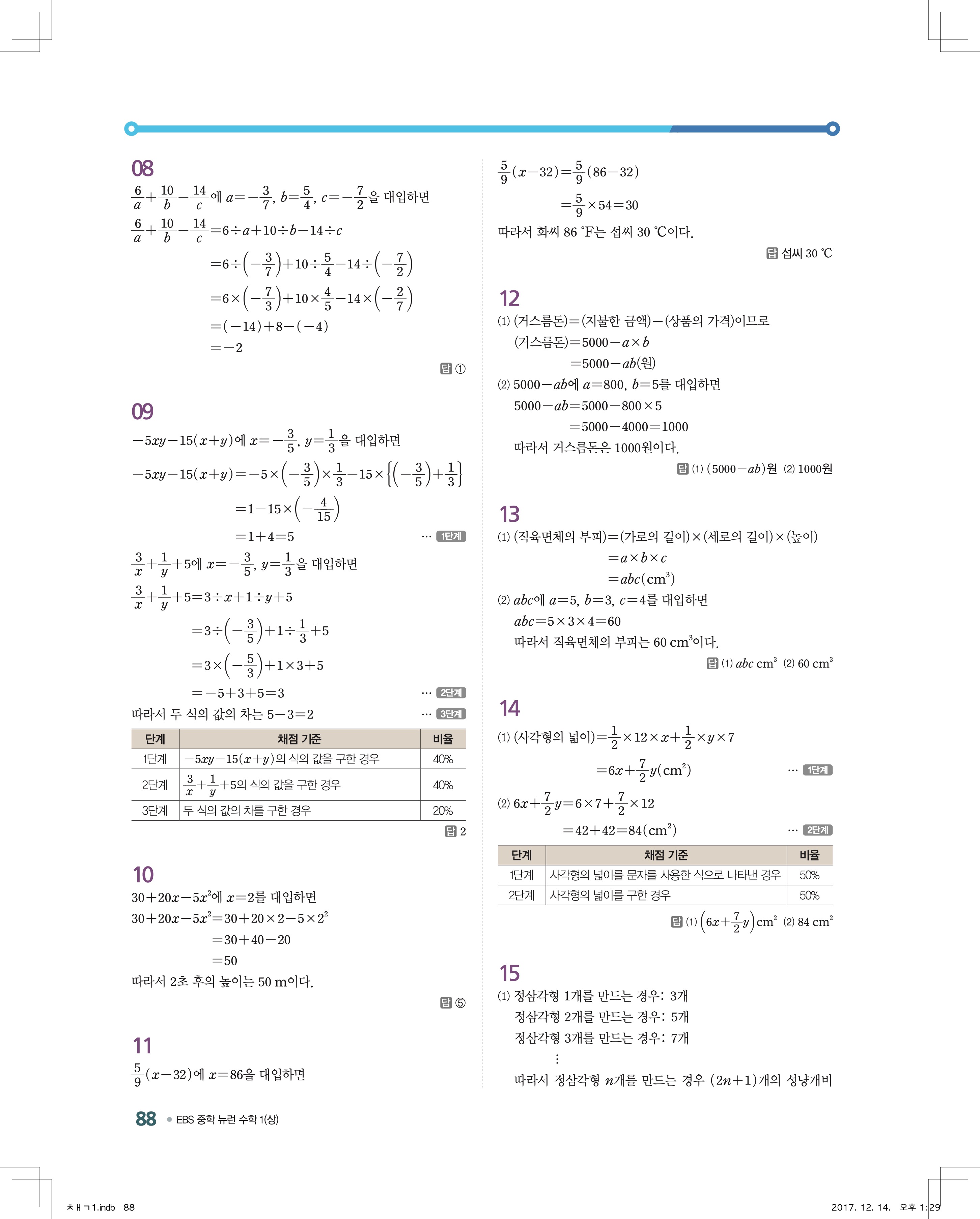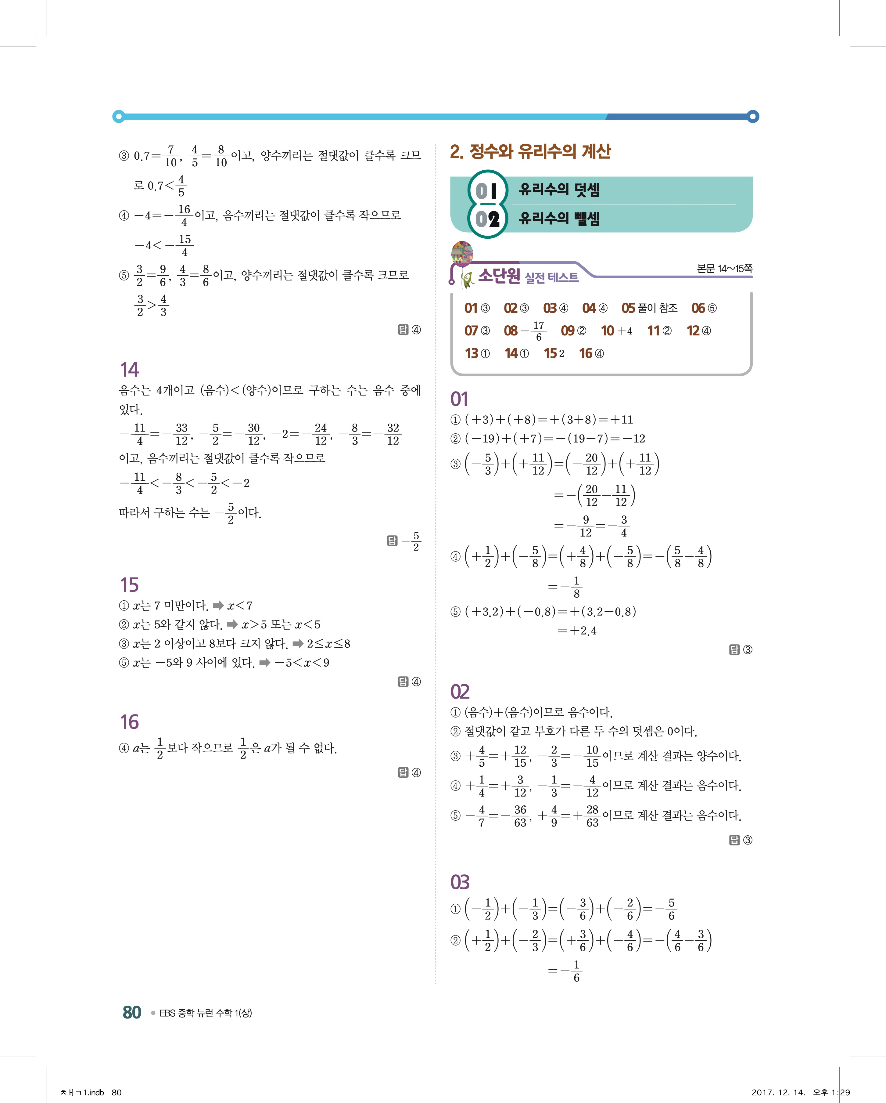 EBS 중학뉴런 수학1상 답지 해설 바로보는 사진답지 빠른답지 모바일최적화
