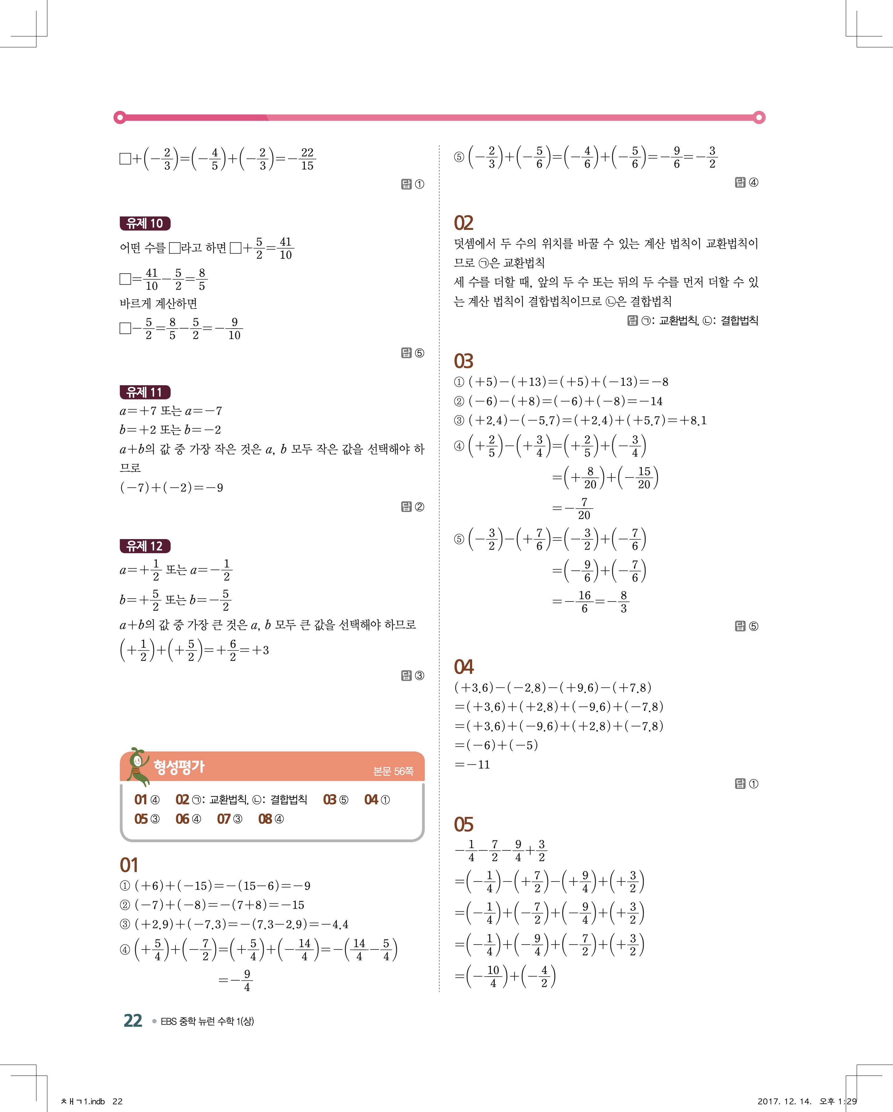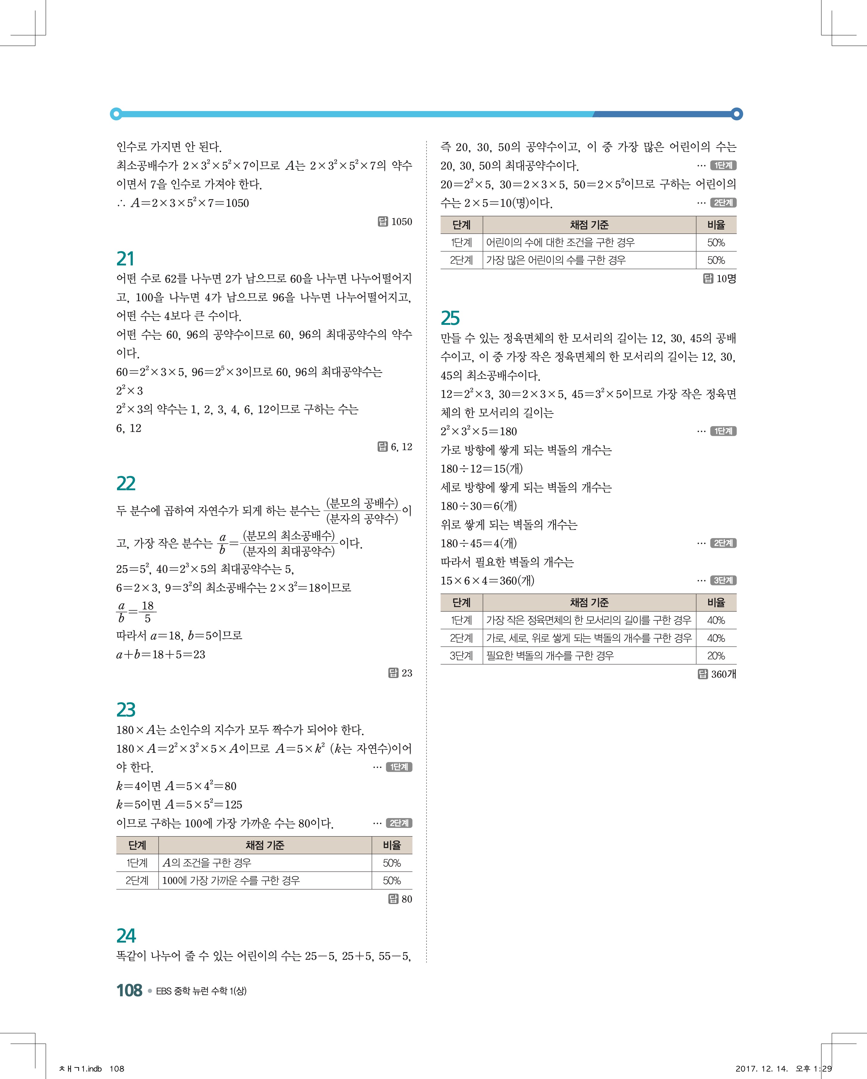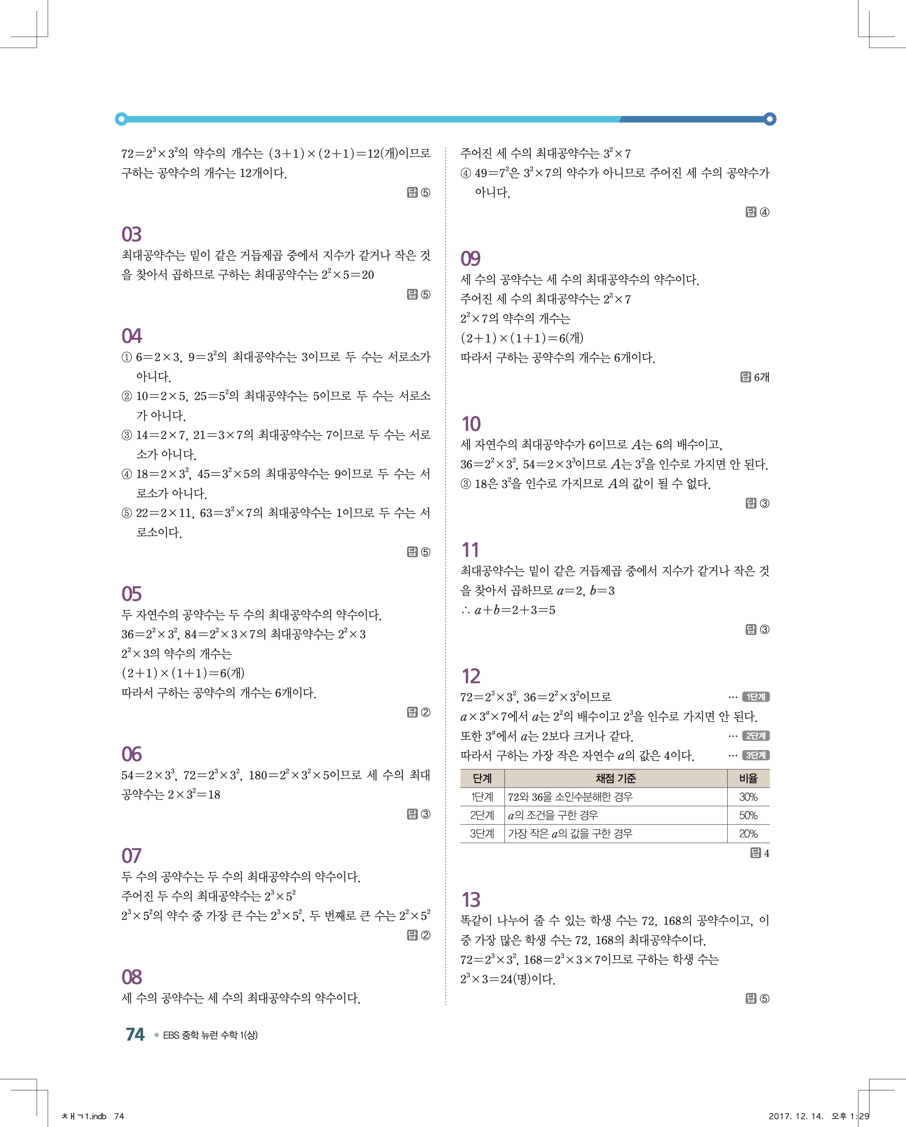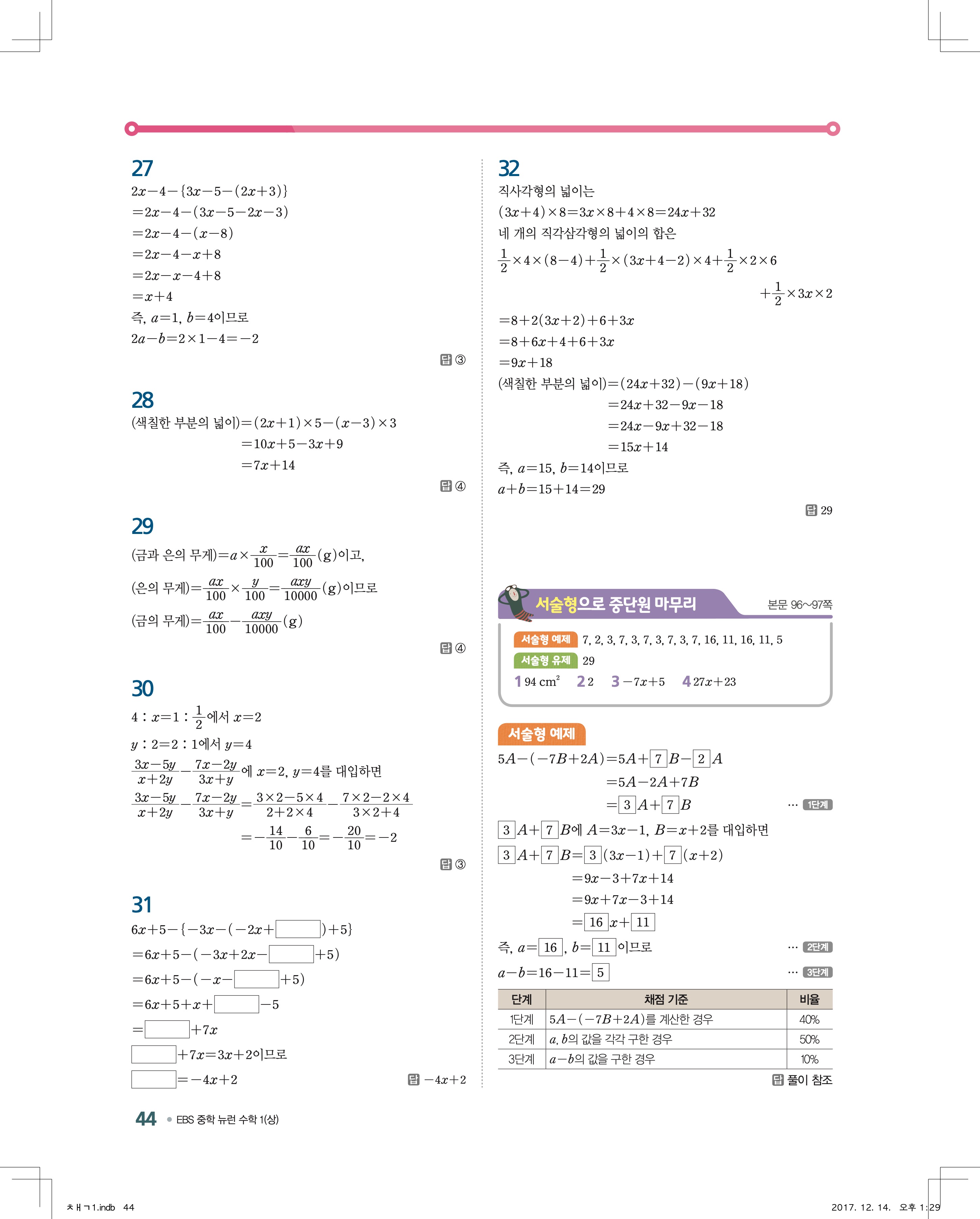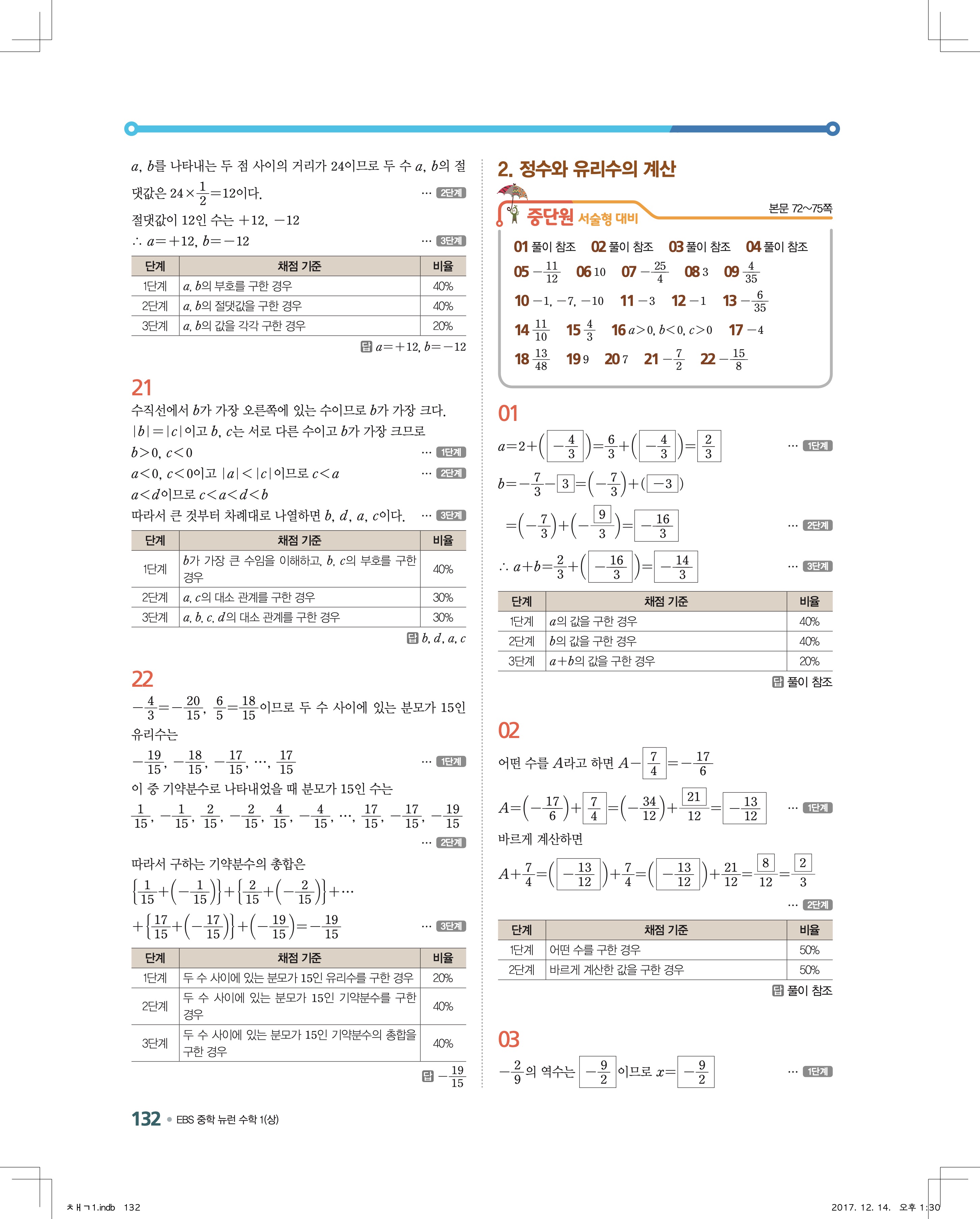 EBS 중학뉴런 수학1상 답지 해설 바로보는 사진답지 빠른답지 모바일최적화