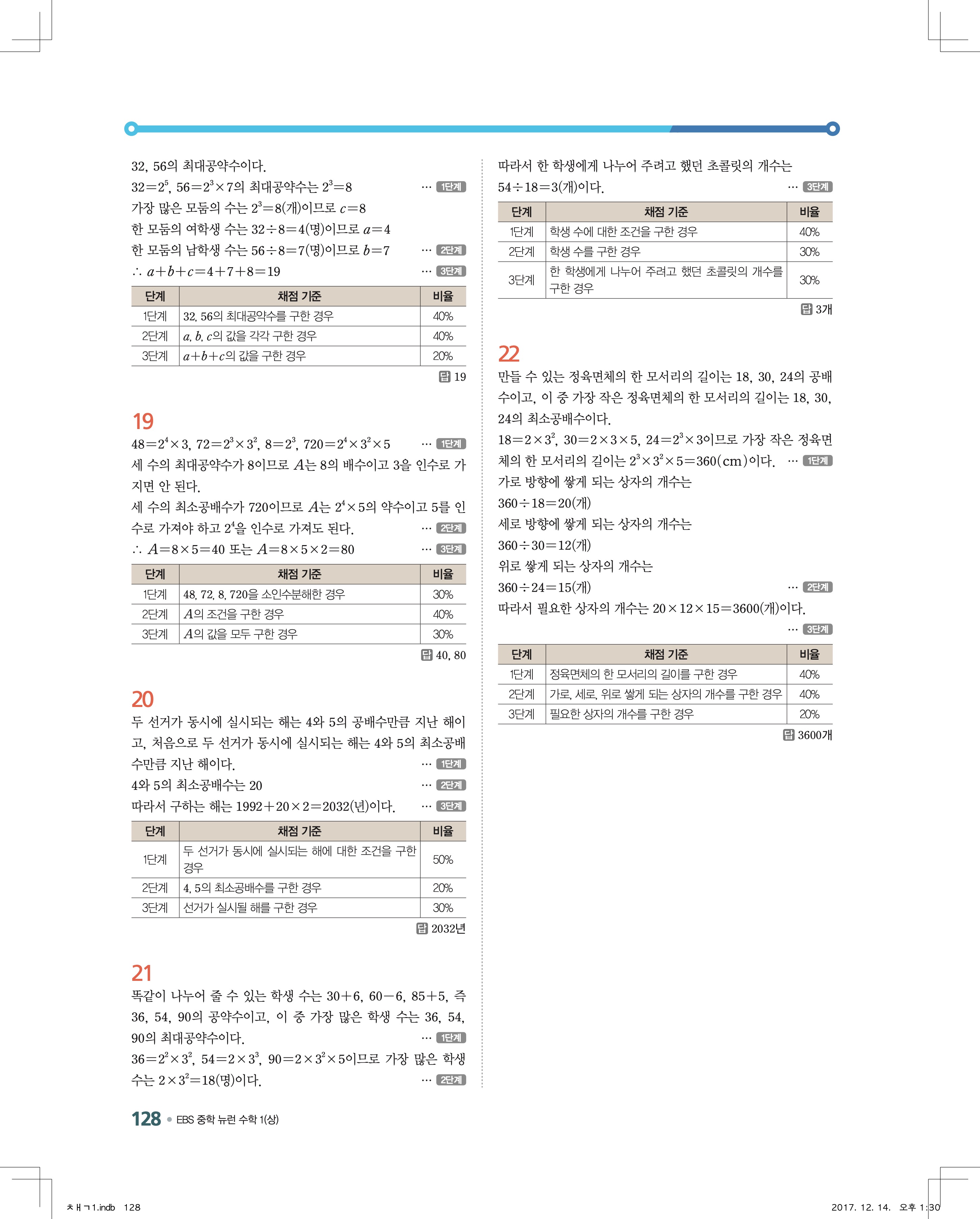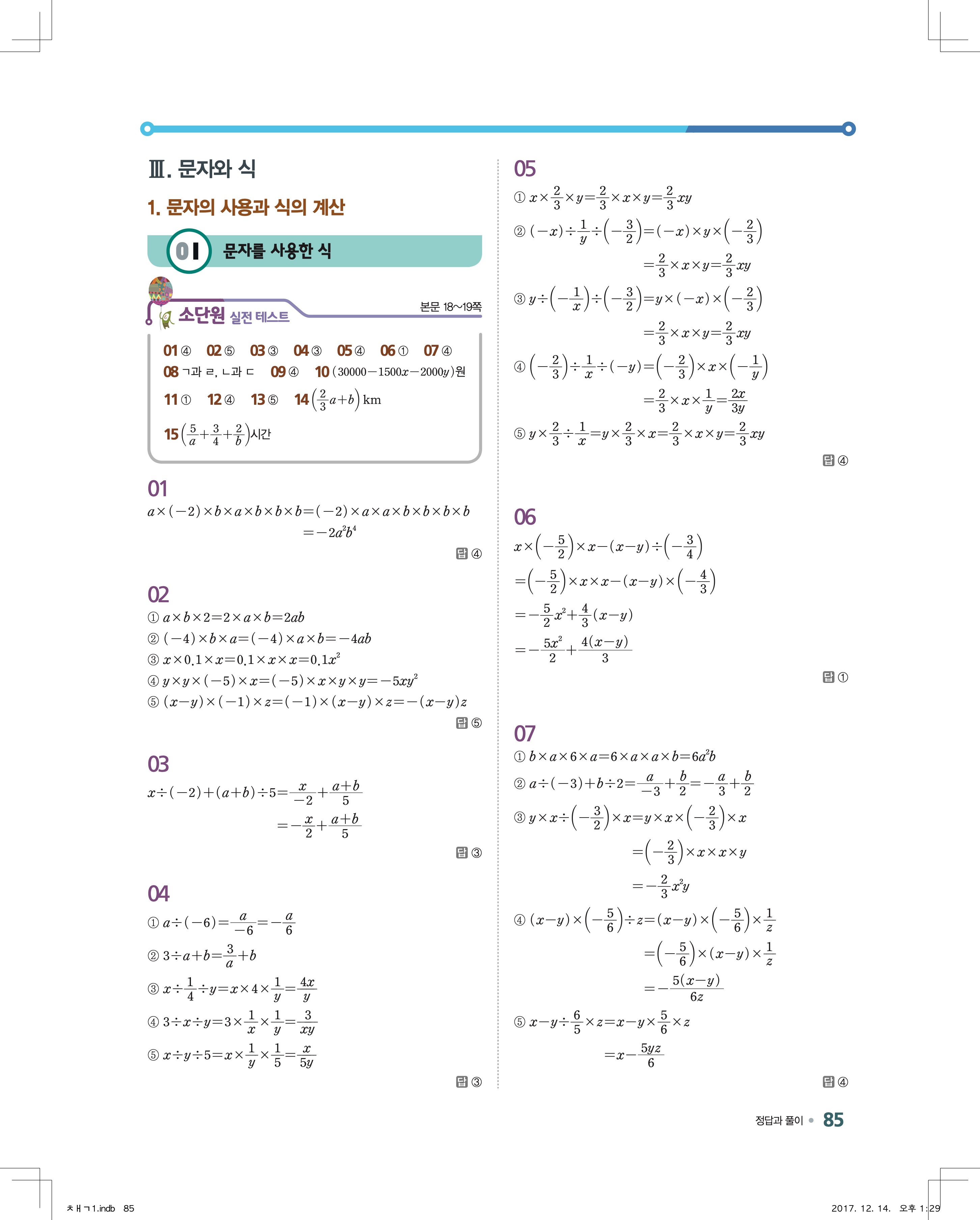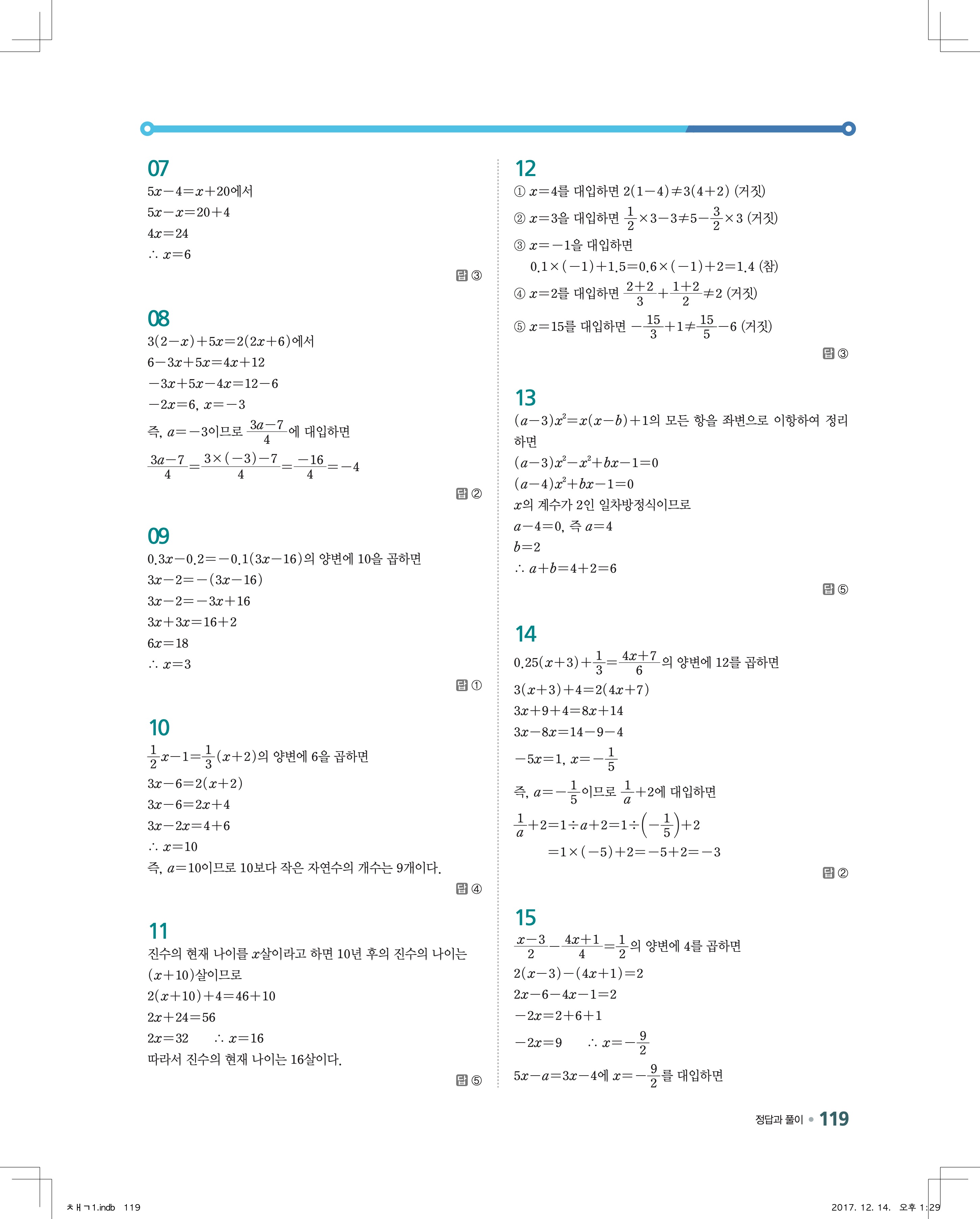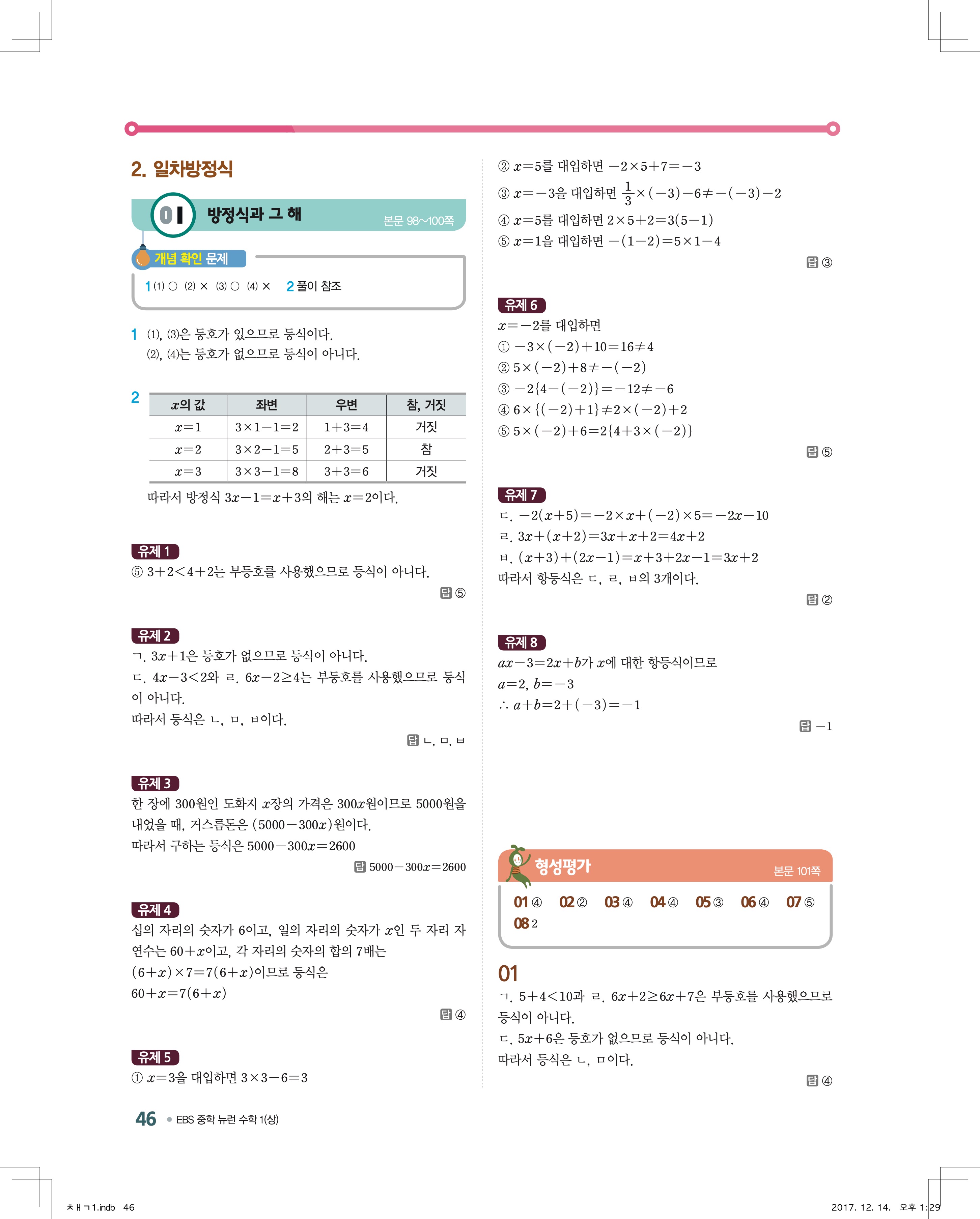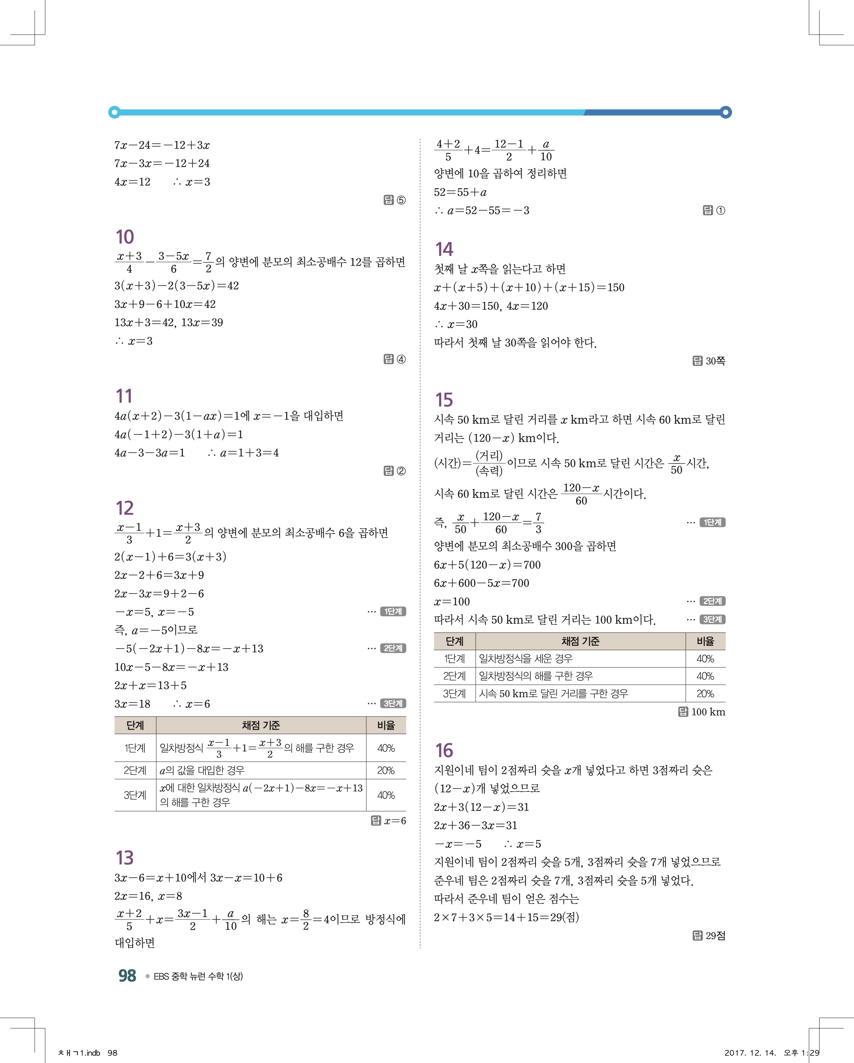 EBS 중학뉴런 수학1상 답지 해설 바로보는 사진답지 빠른답지 모바일최적화
