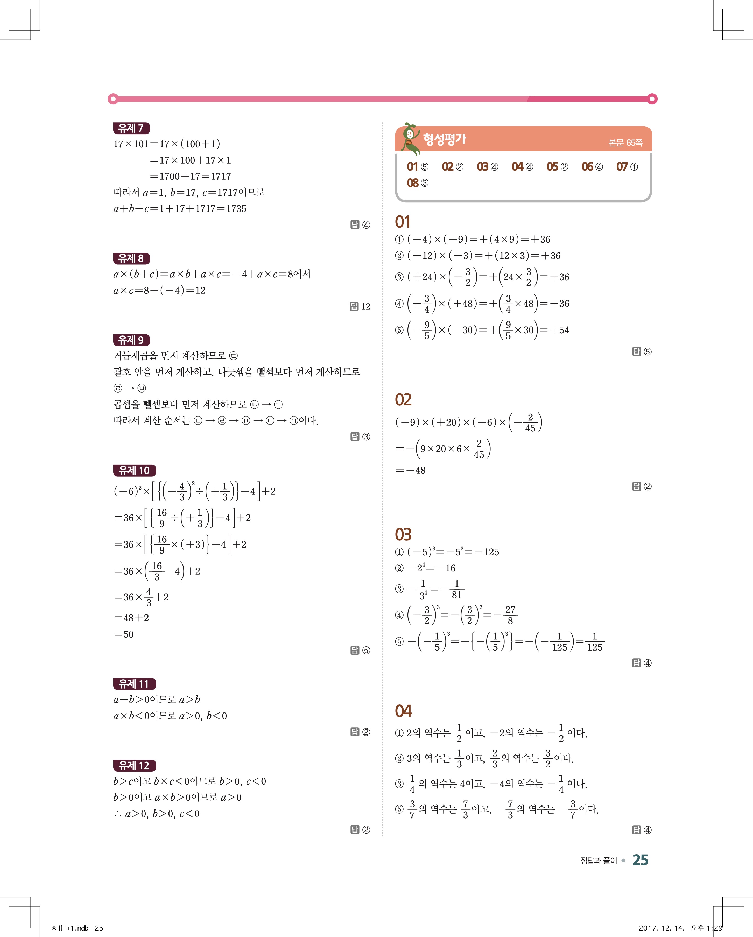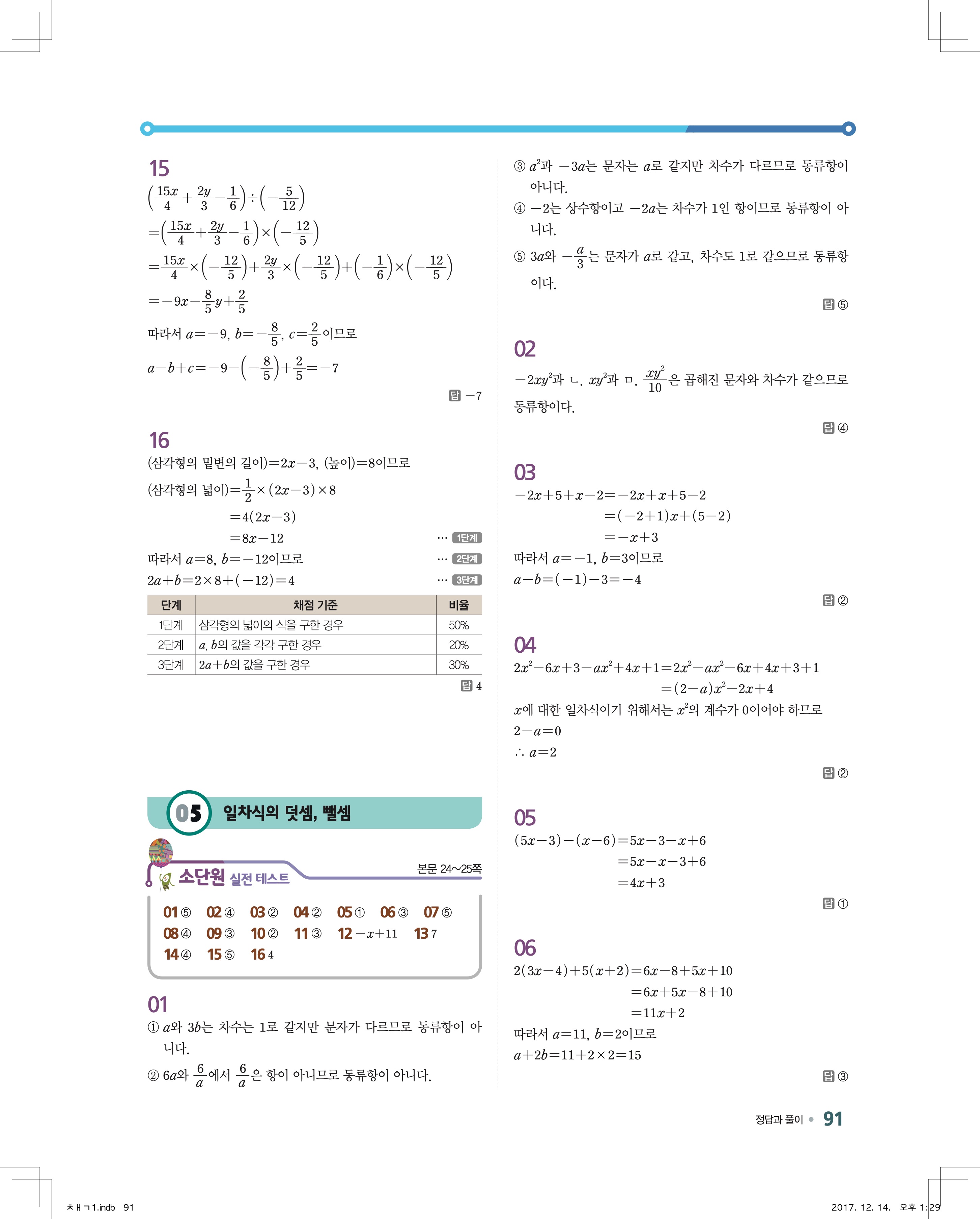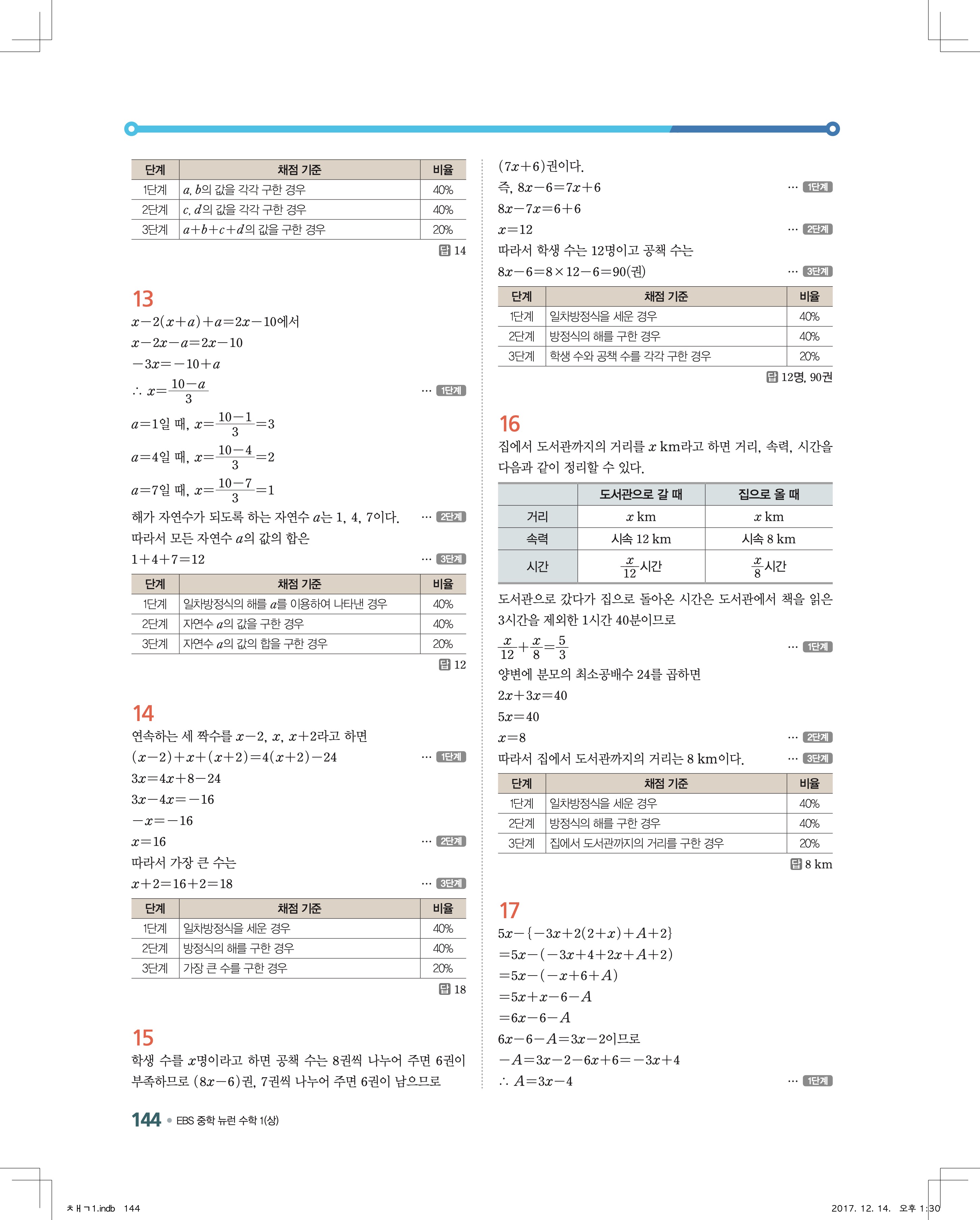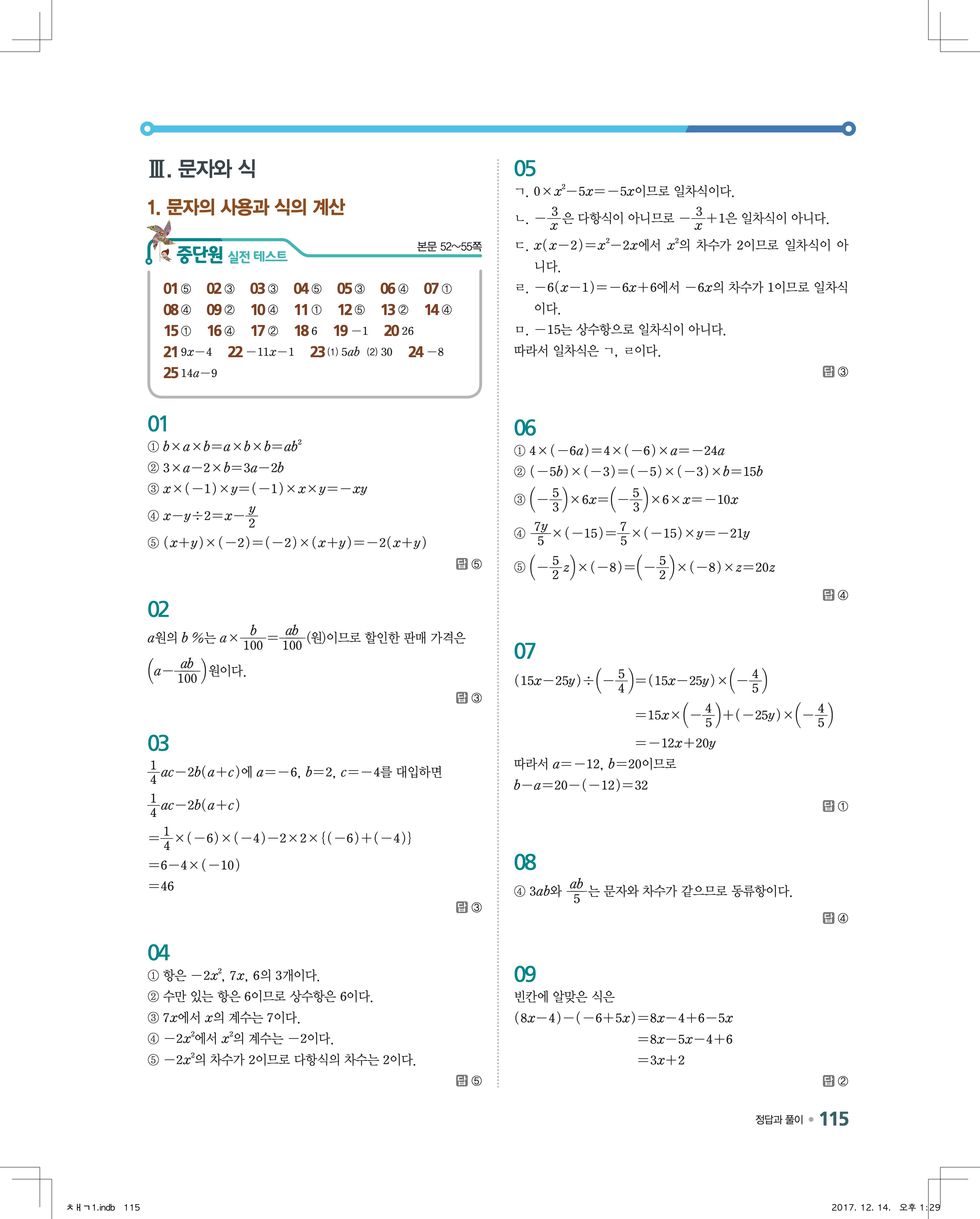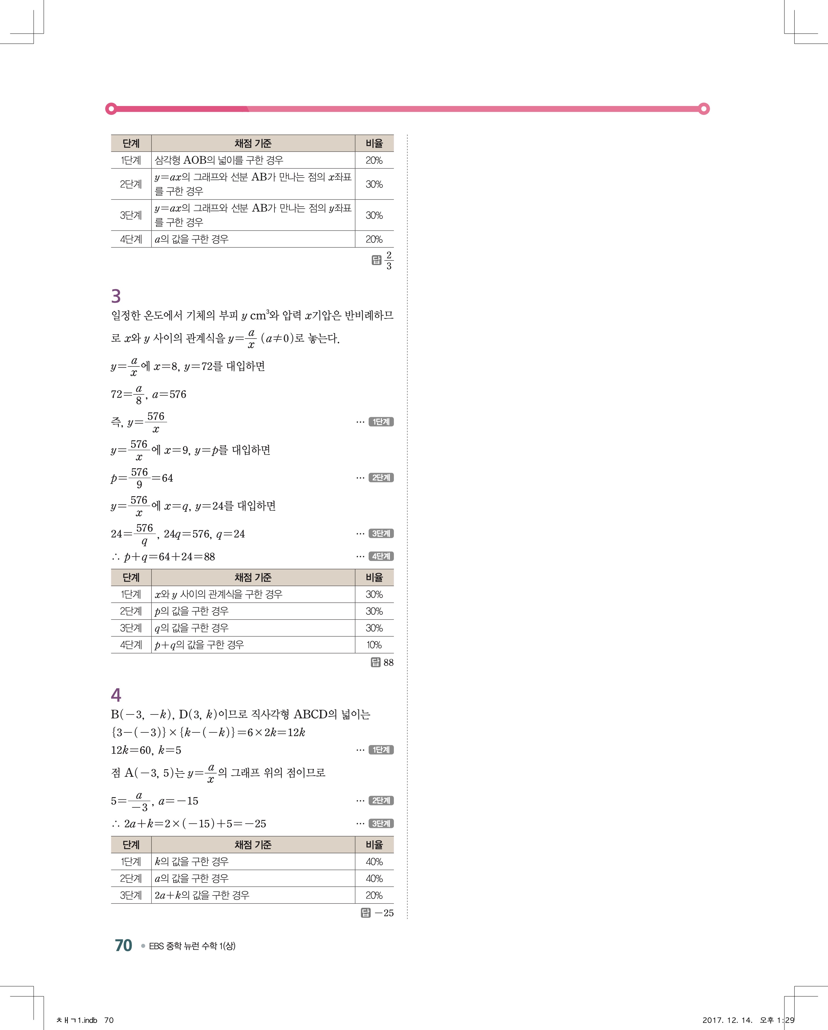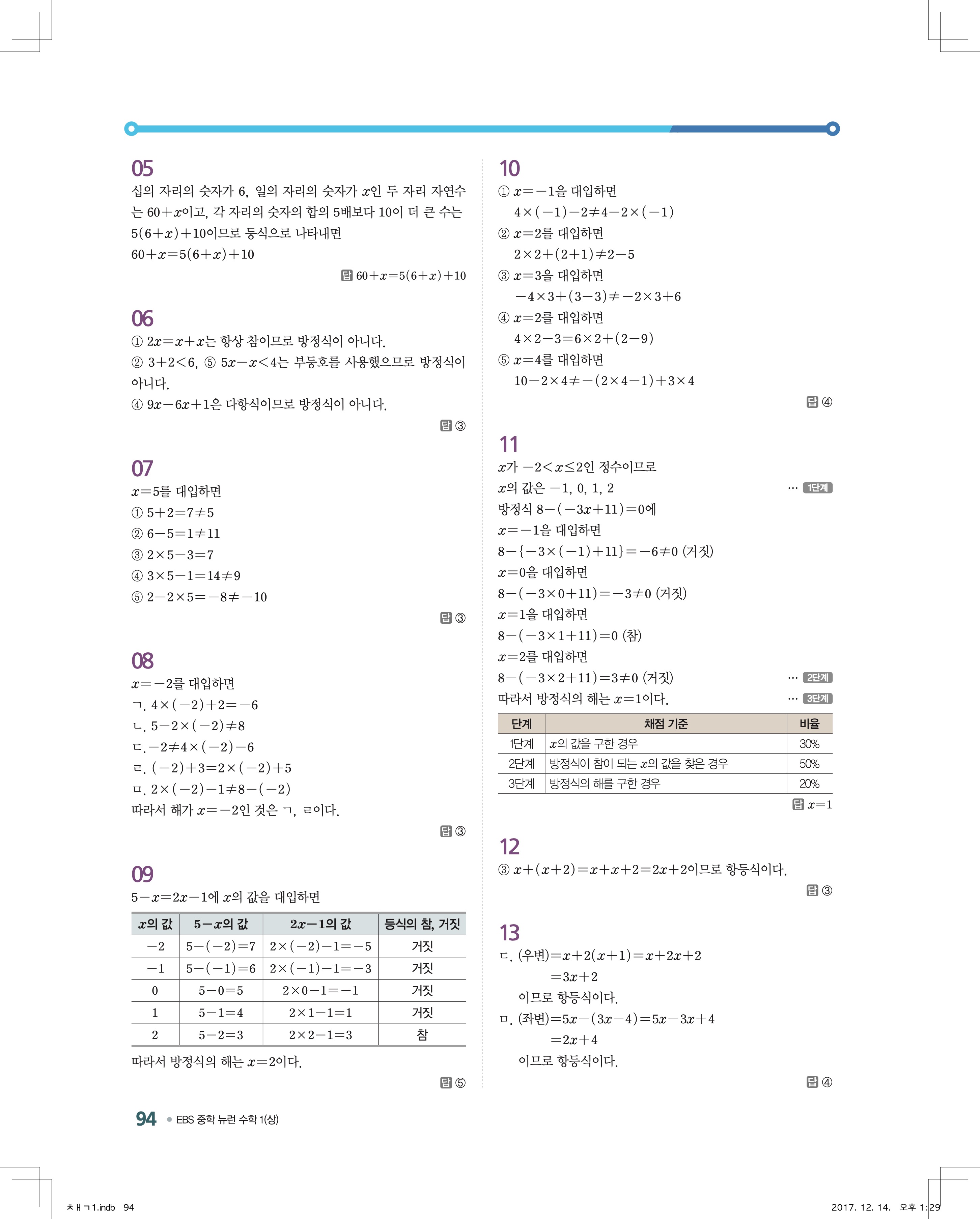 EBS 중학뉴런 수학1상 답지 해설 바로보는 사진답지 빠른답지 모바일최적화