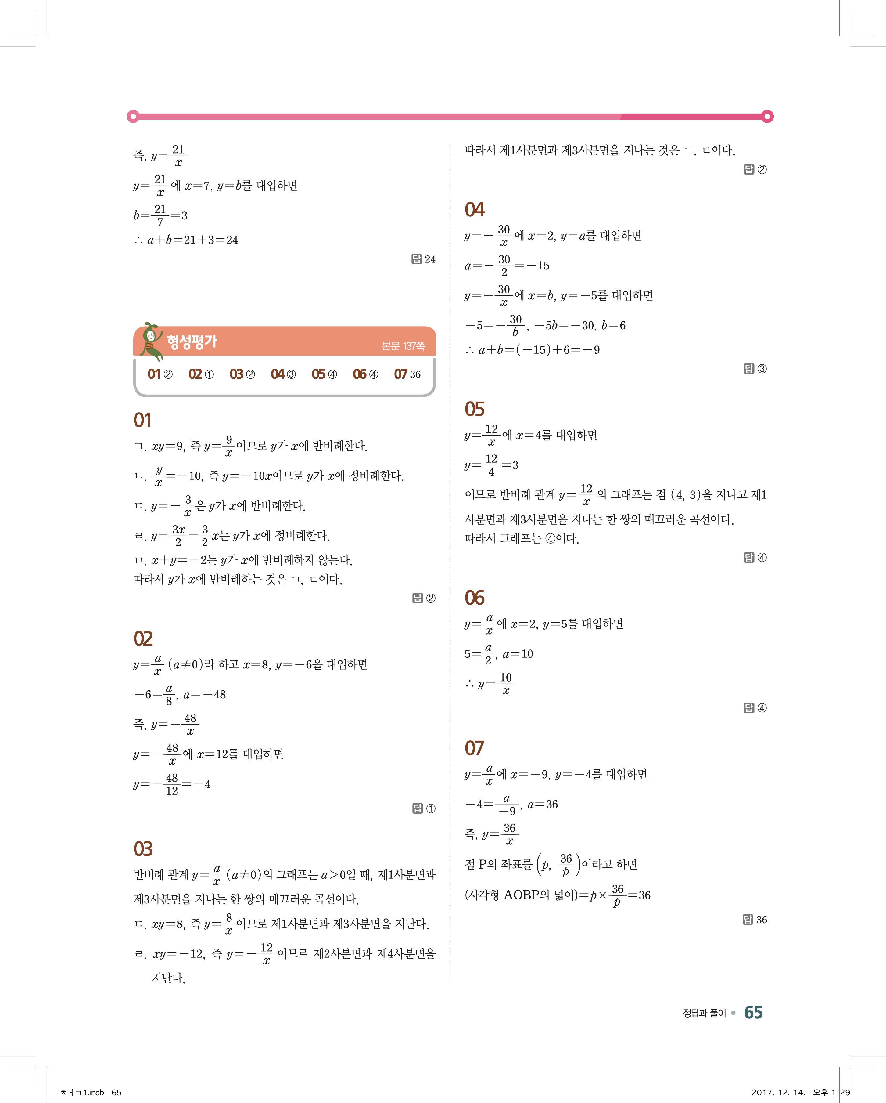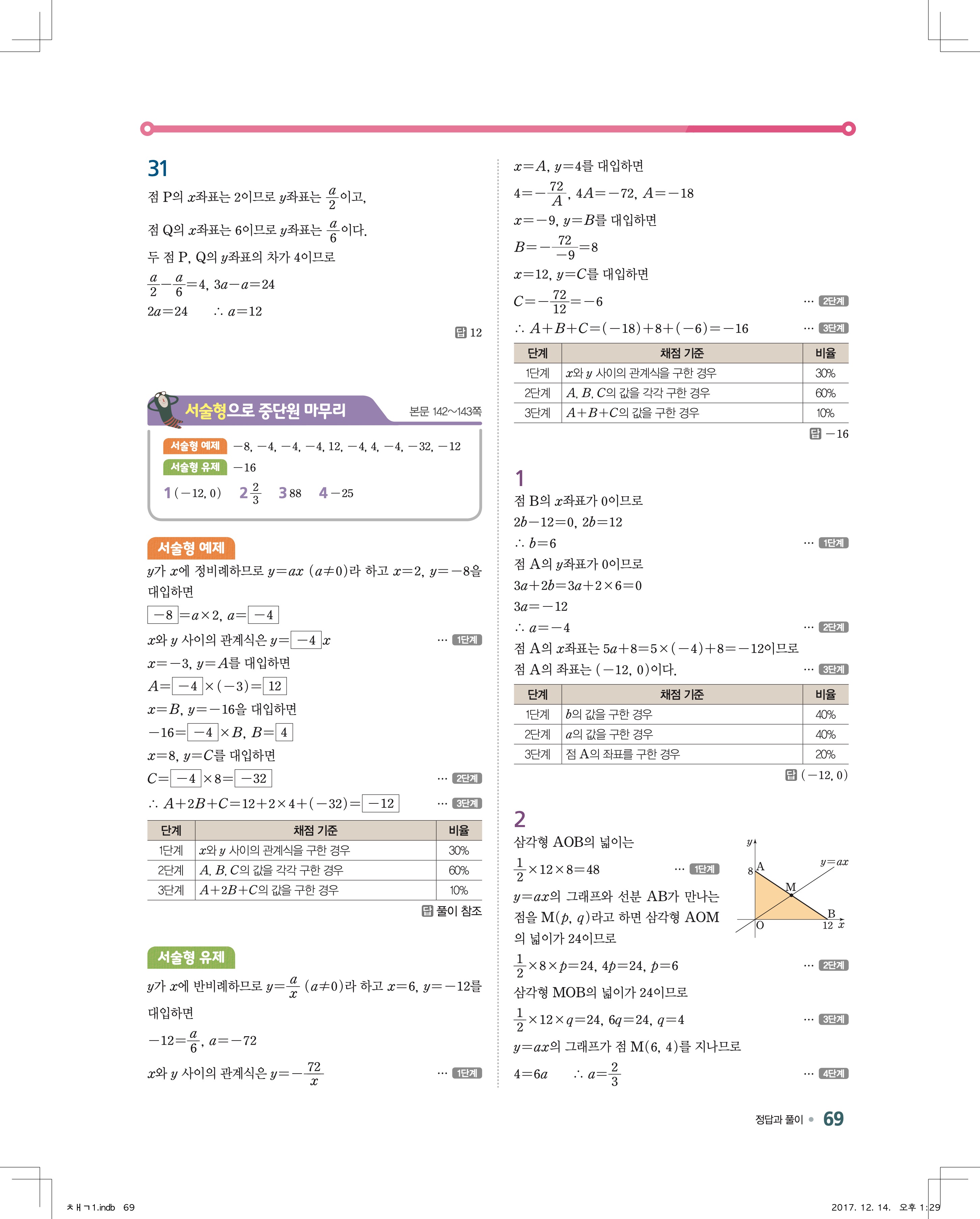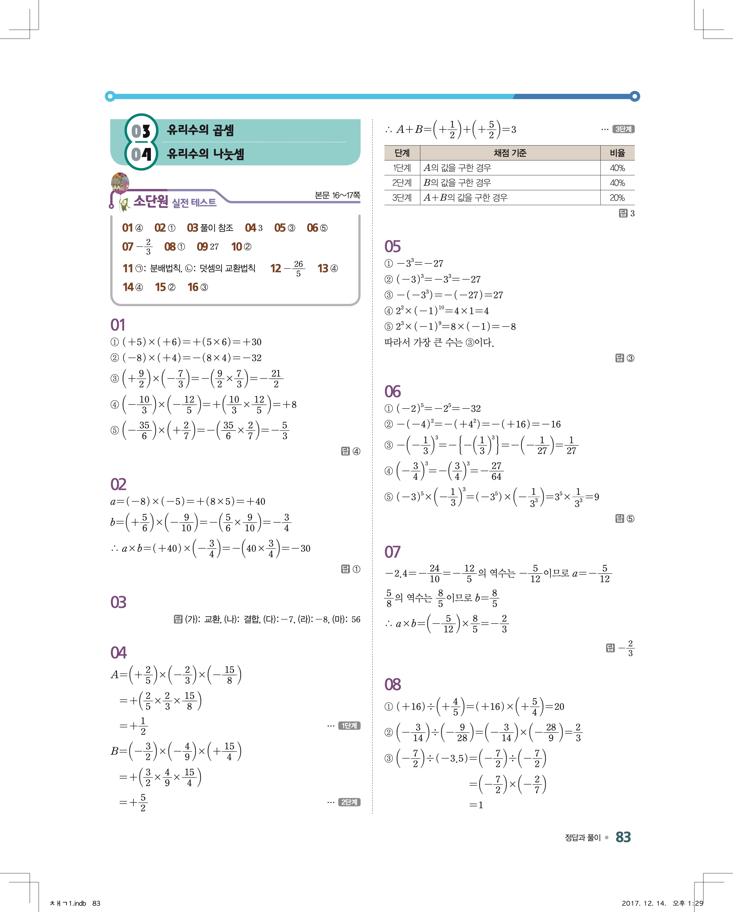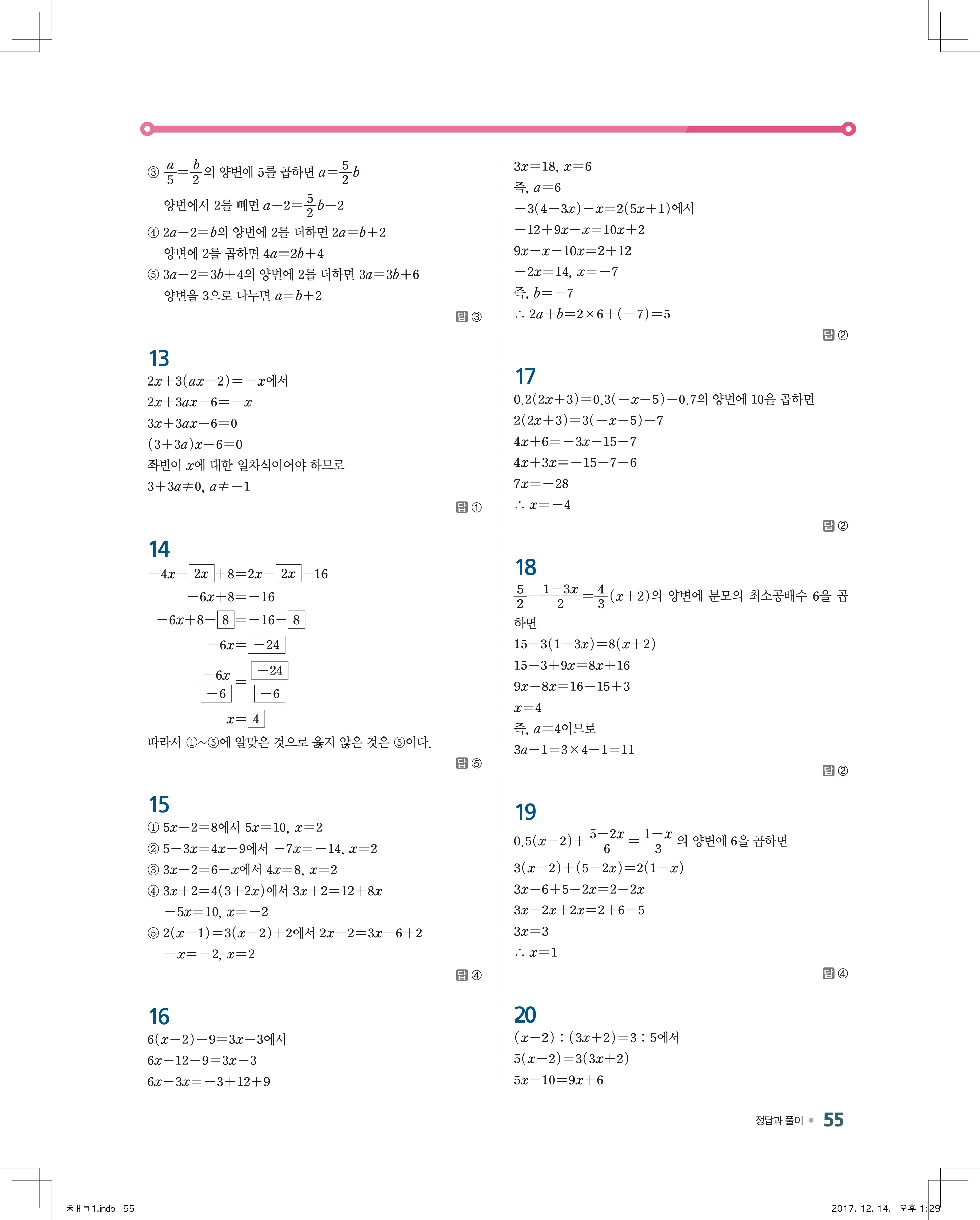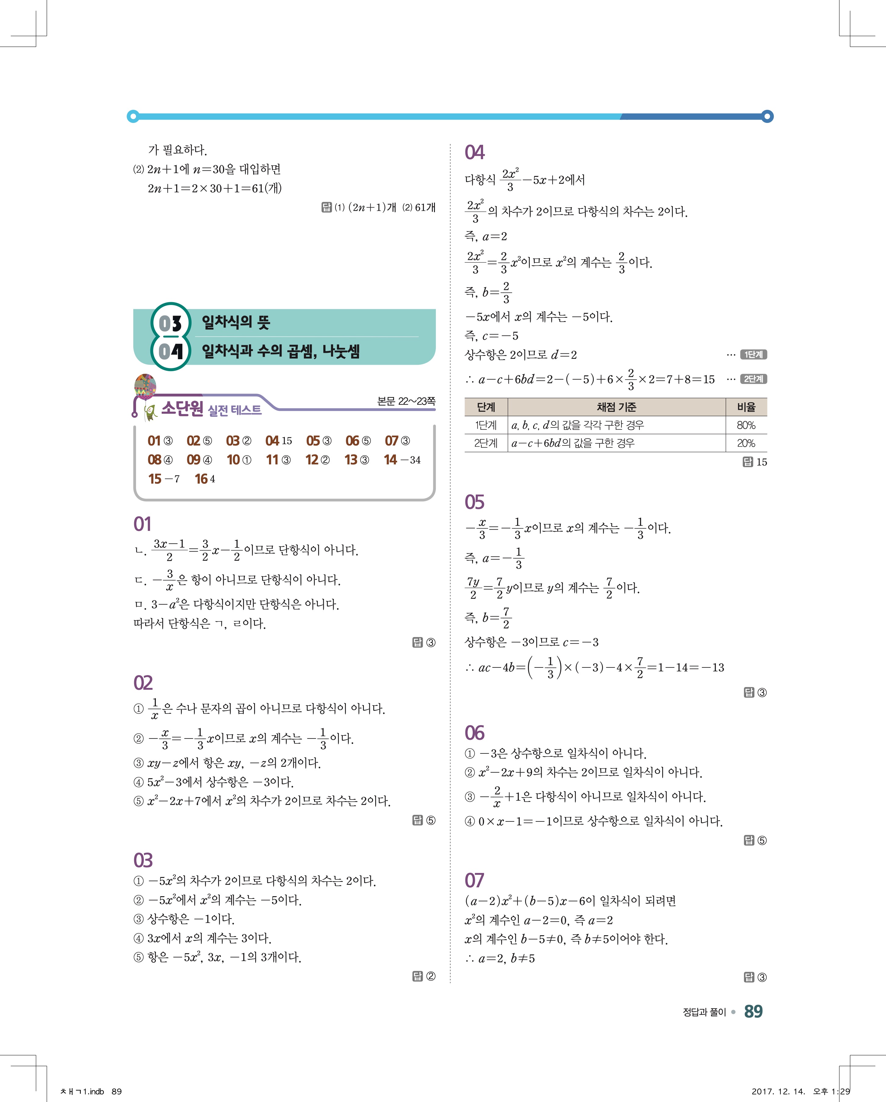 EBS 중학뉴런 수학1상 답지 해설 바로보는 사진답지 빠른답지 모바일최적화