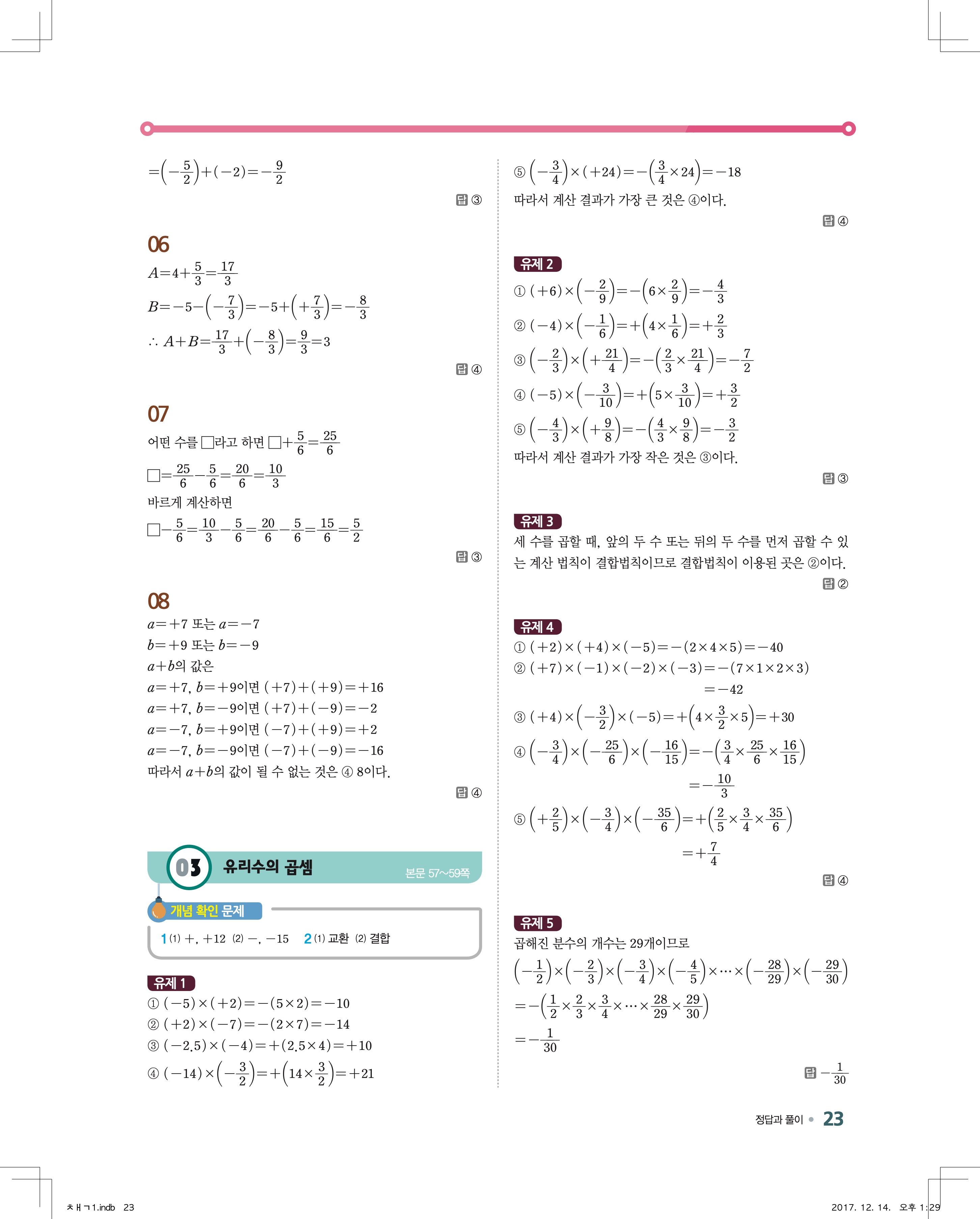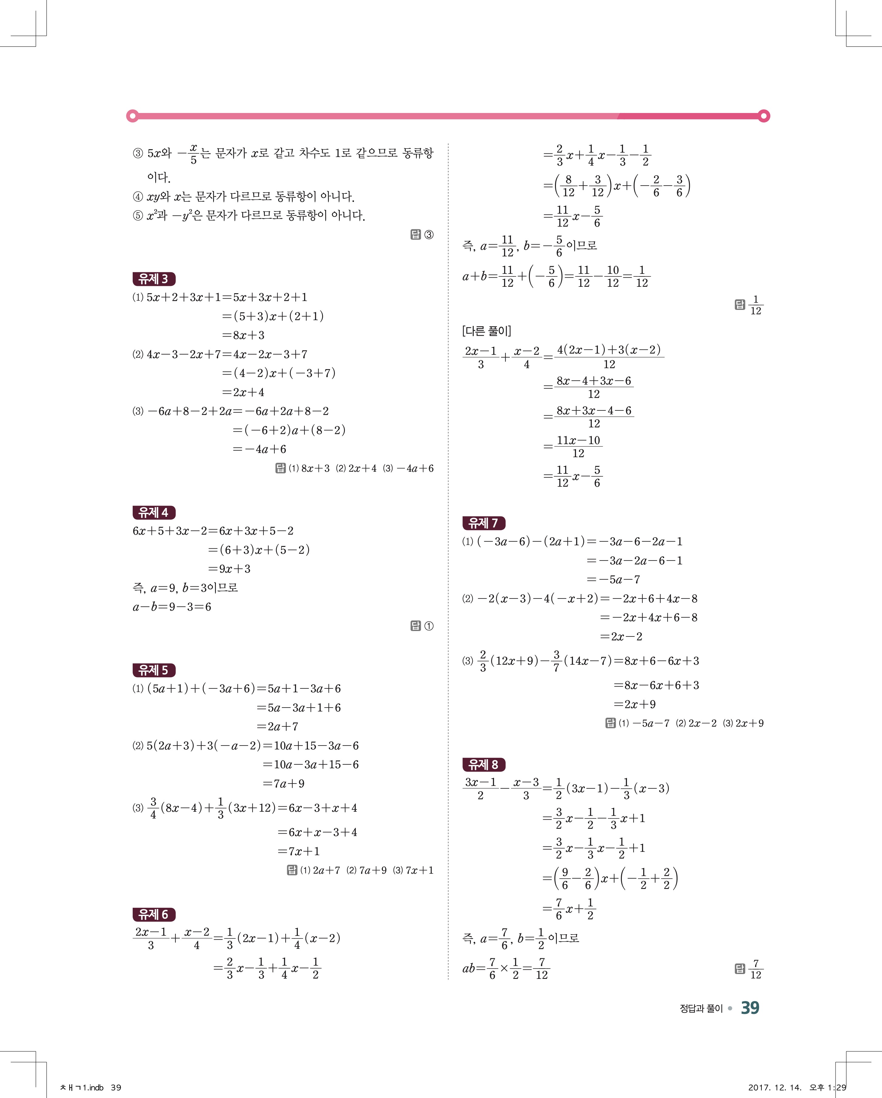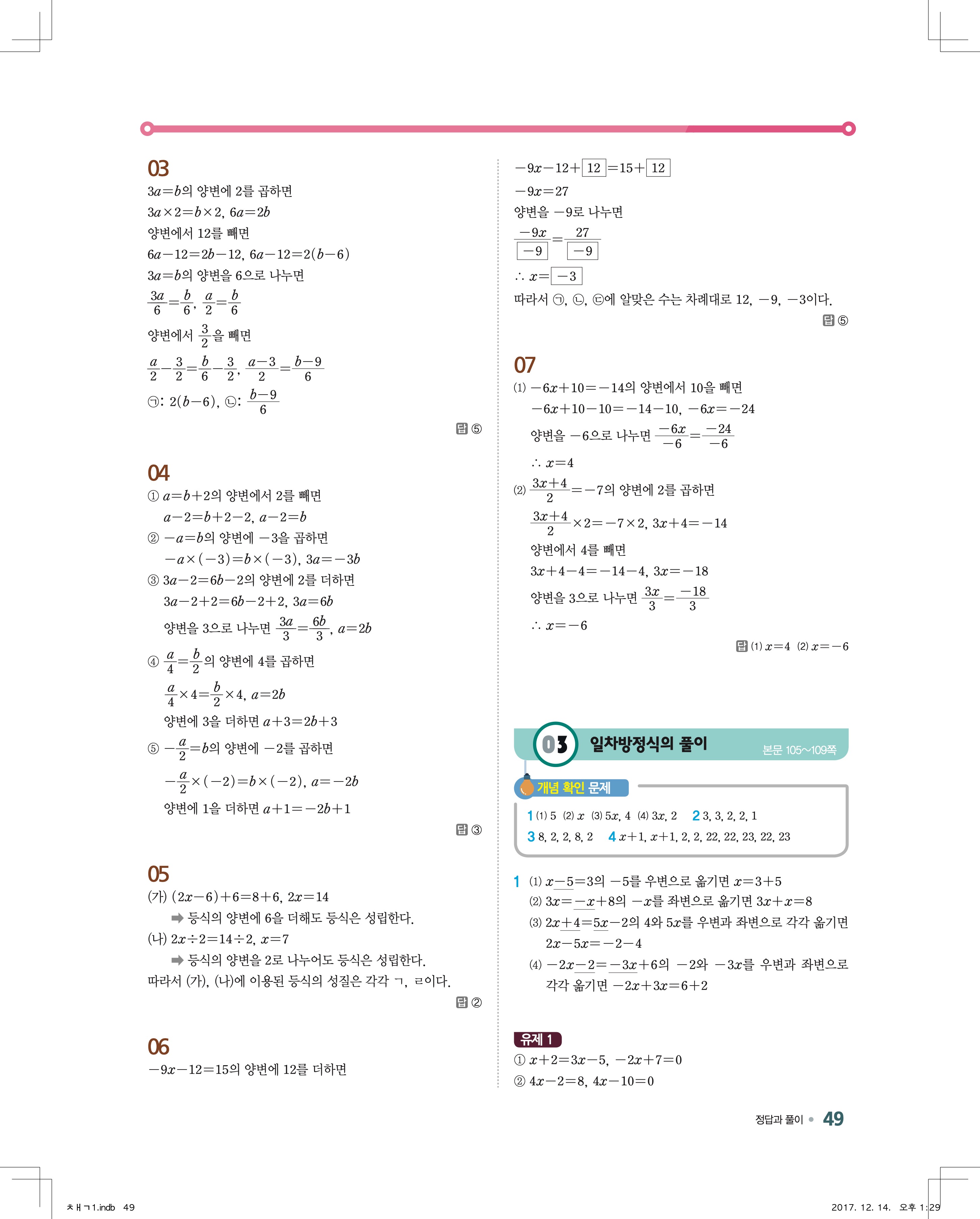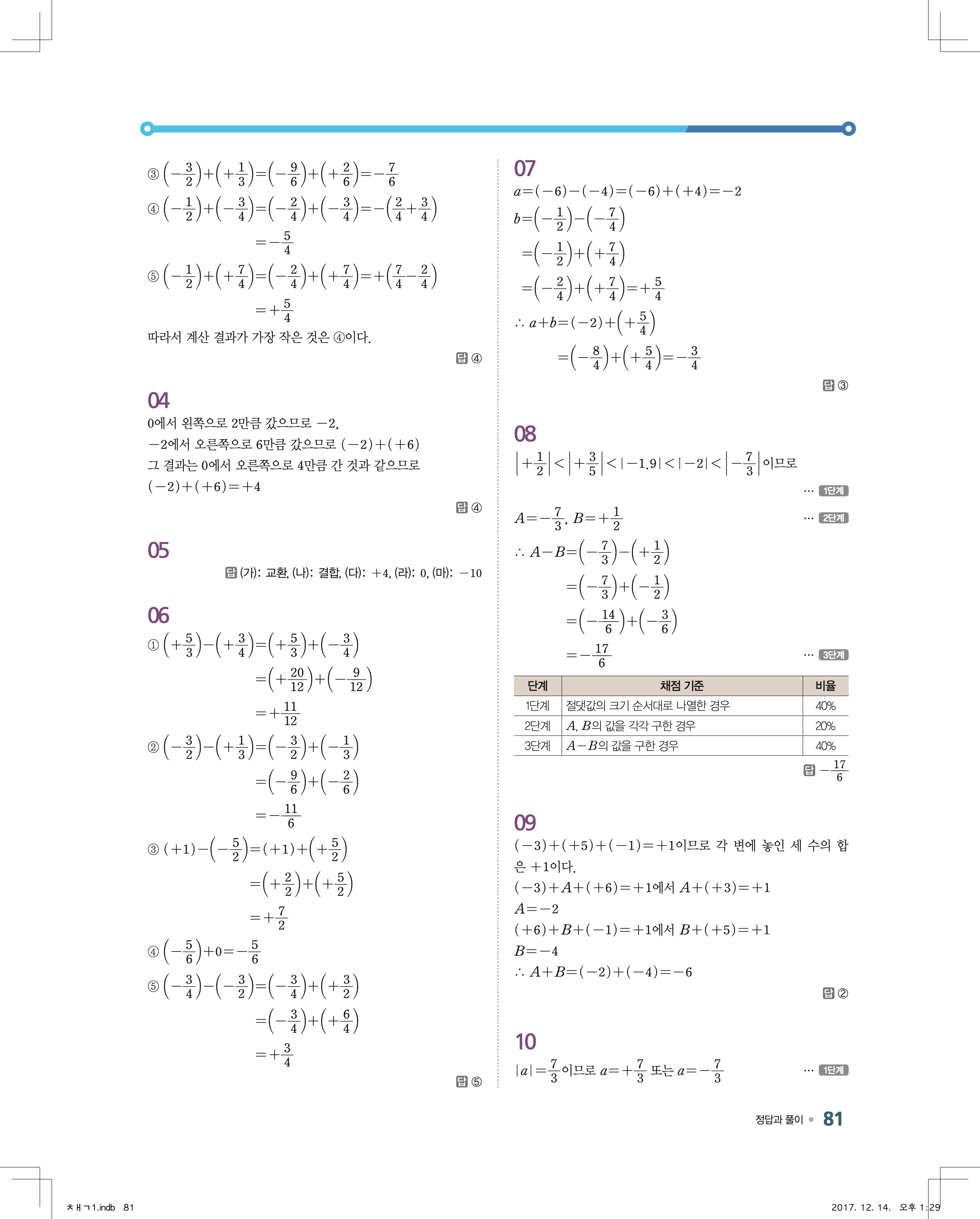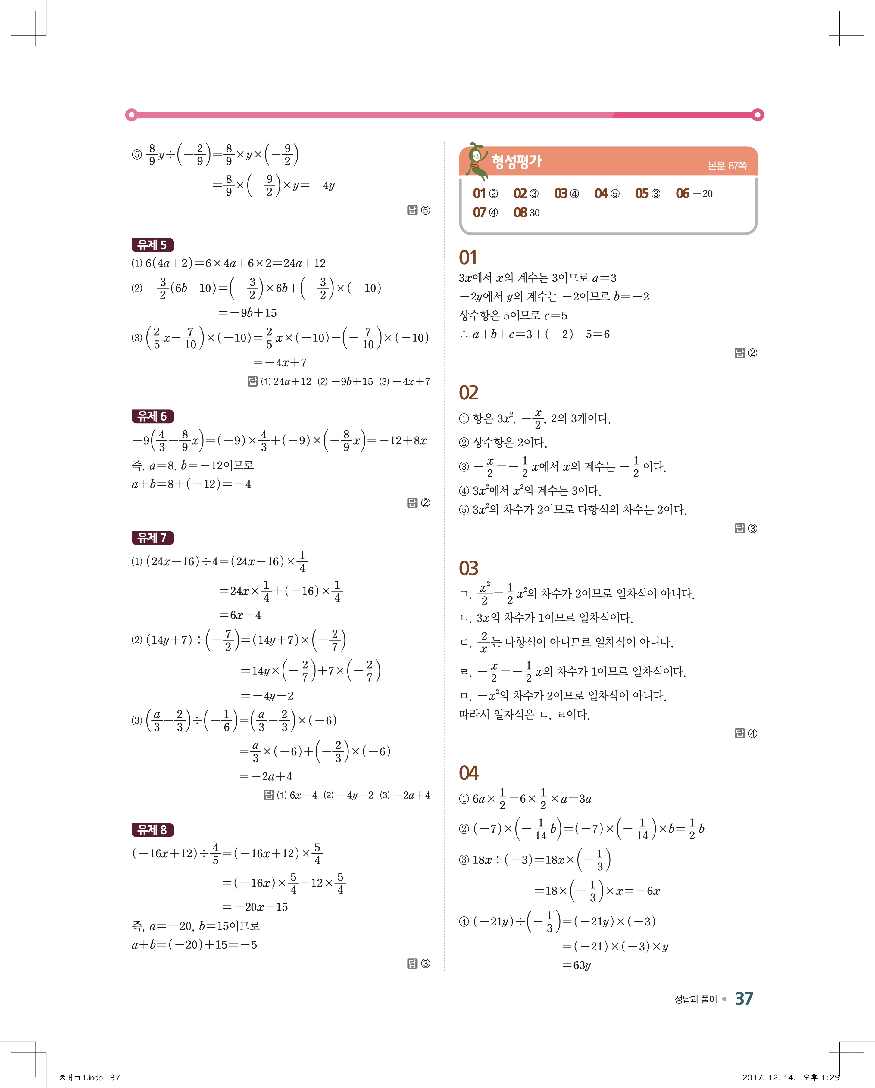 EBS 중학뉴런 수학1상 답지 해설 바로보는 사진답지 빠른답지 모바일최적화