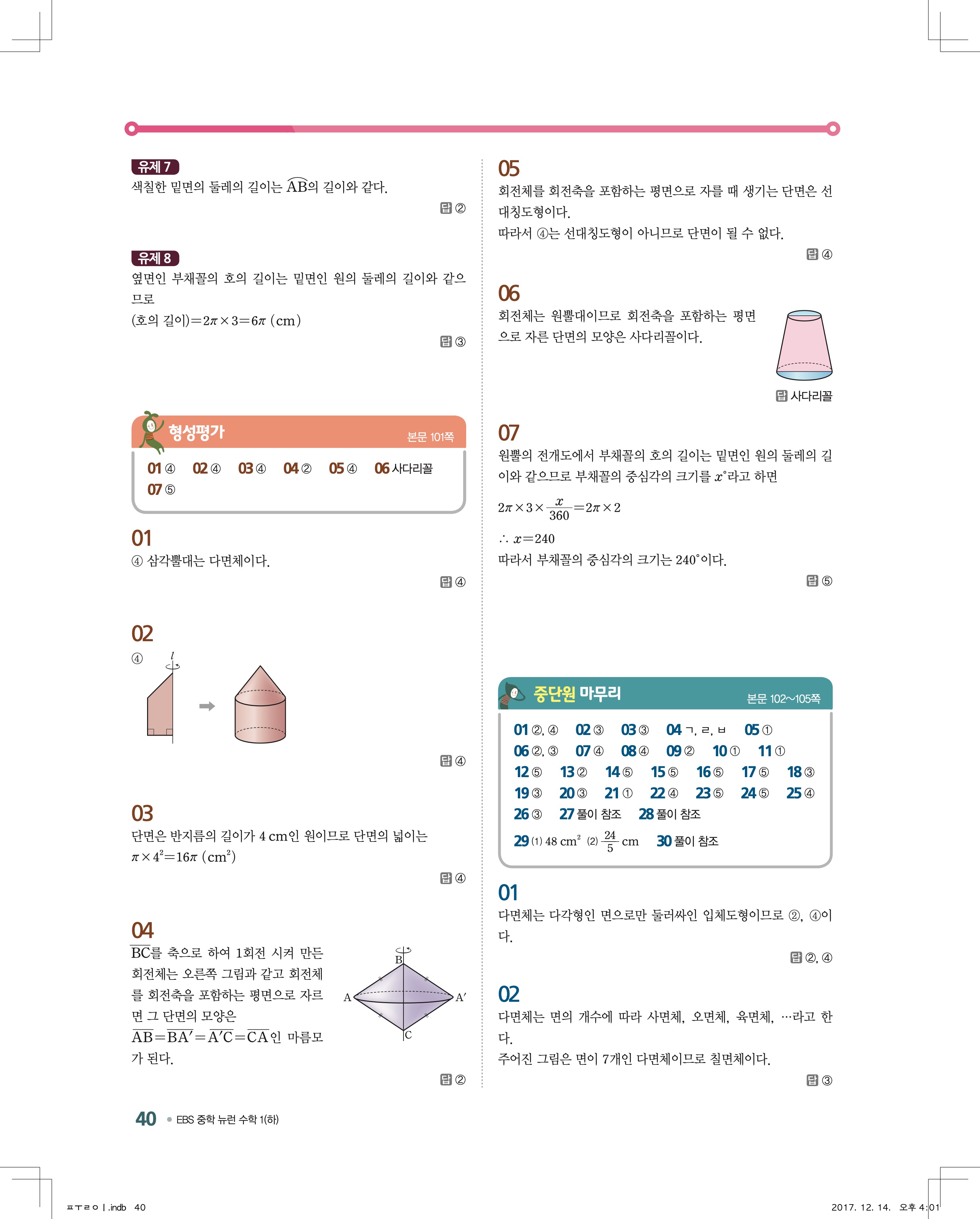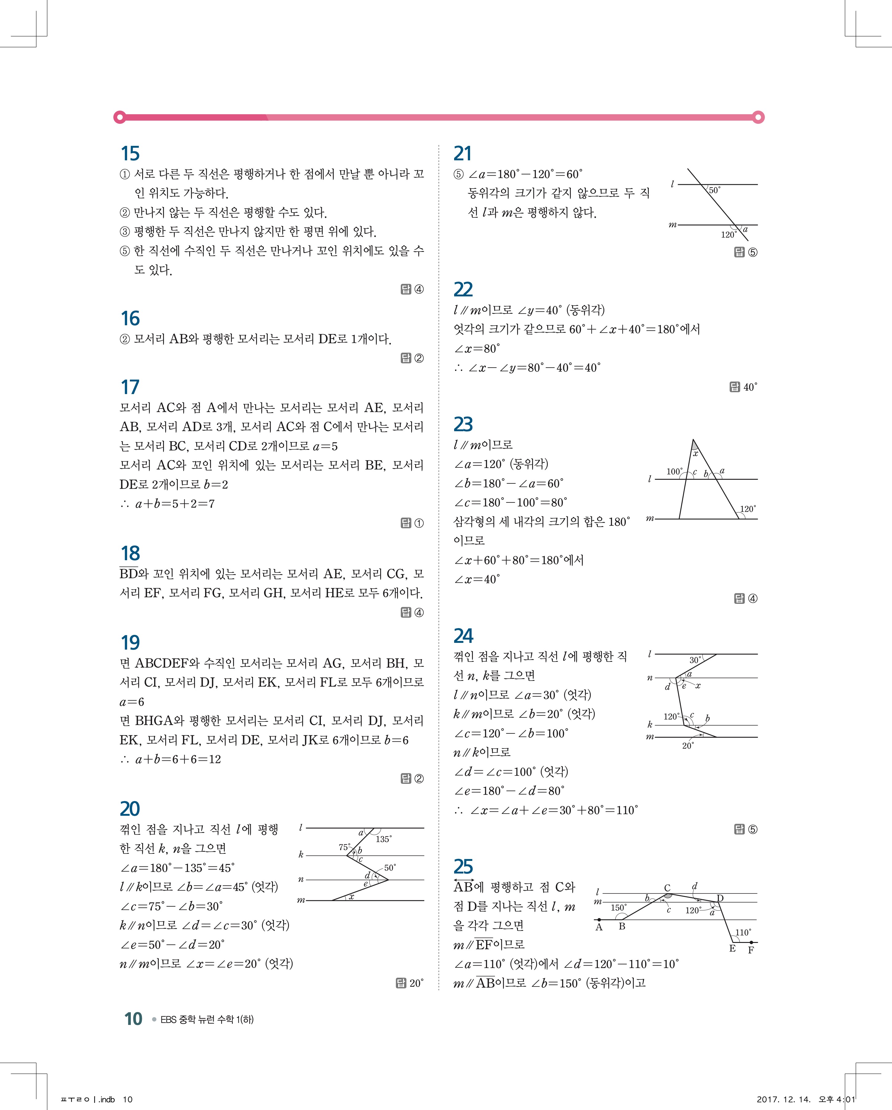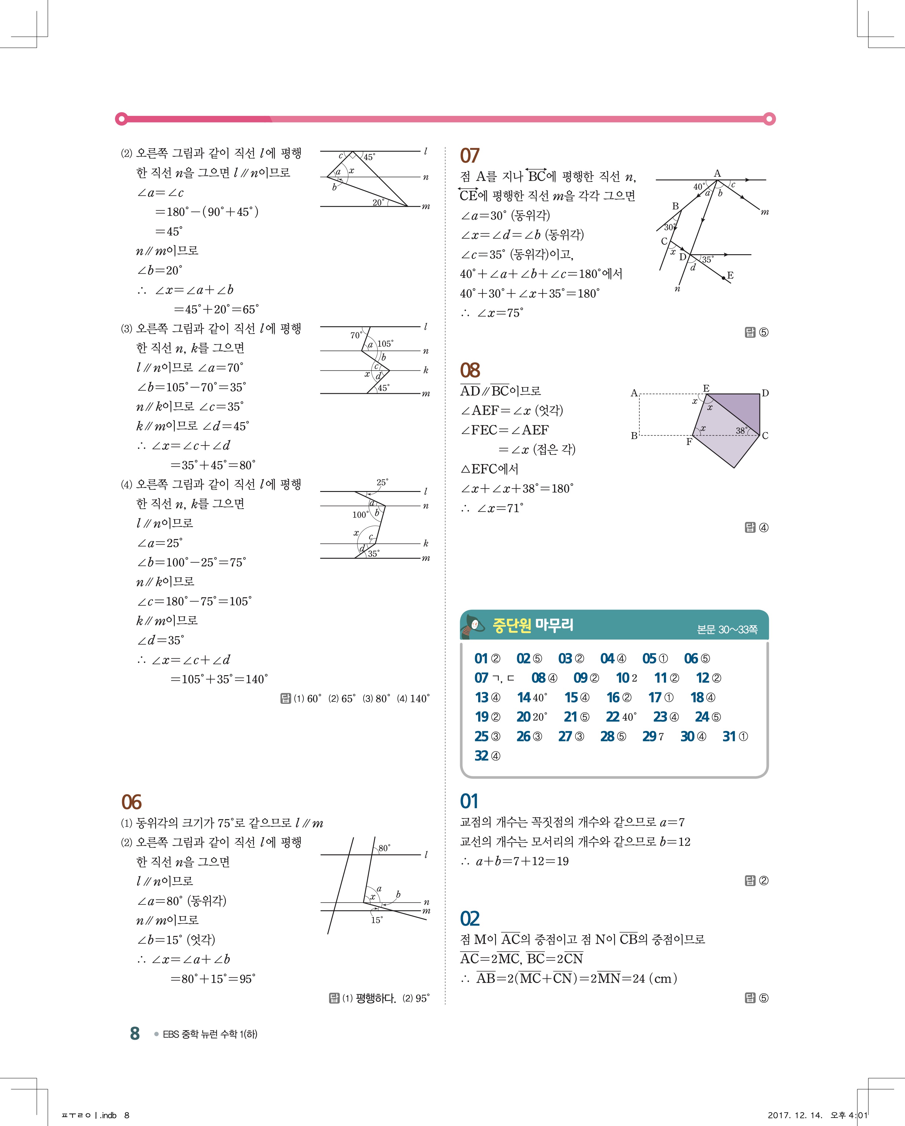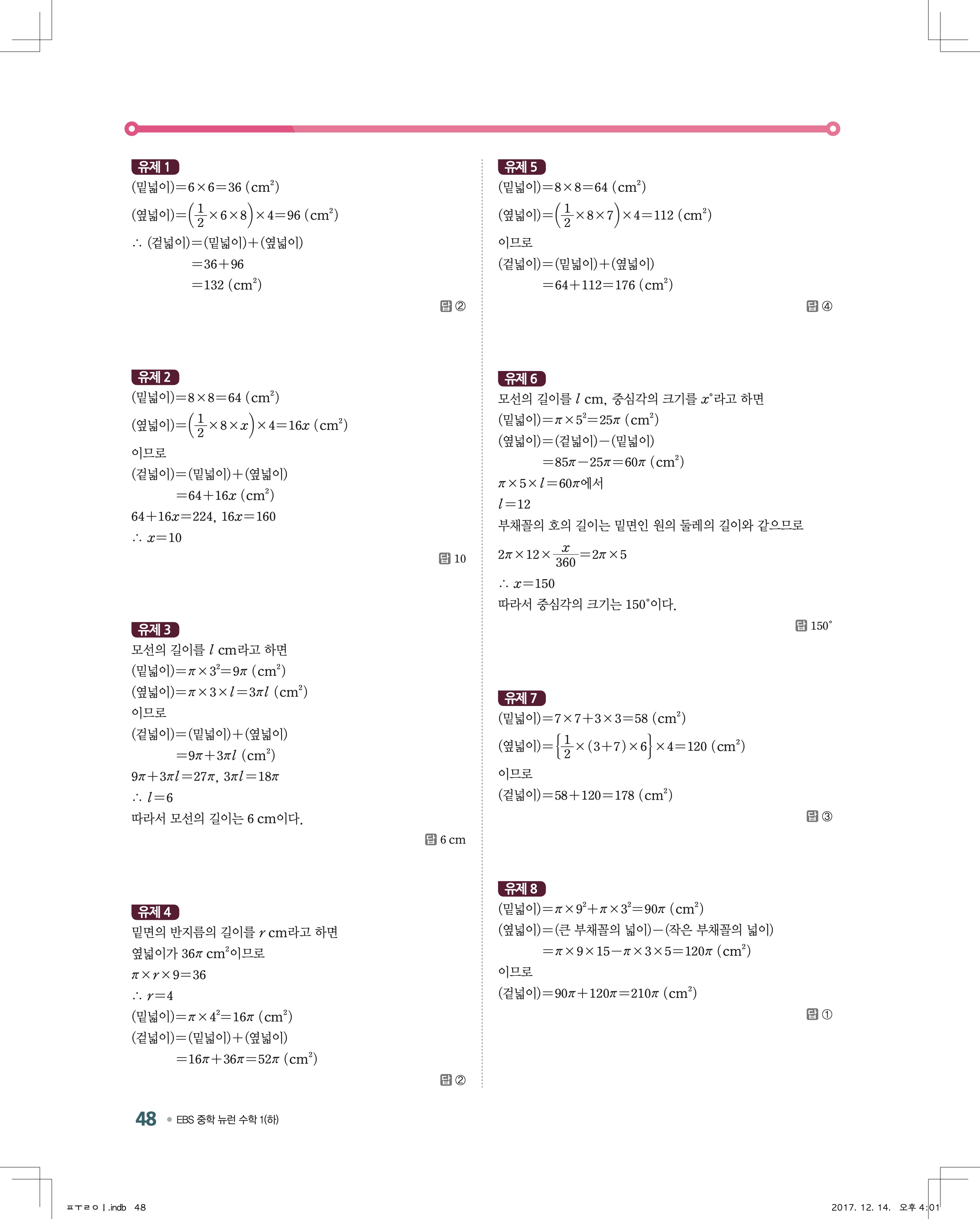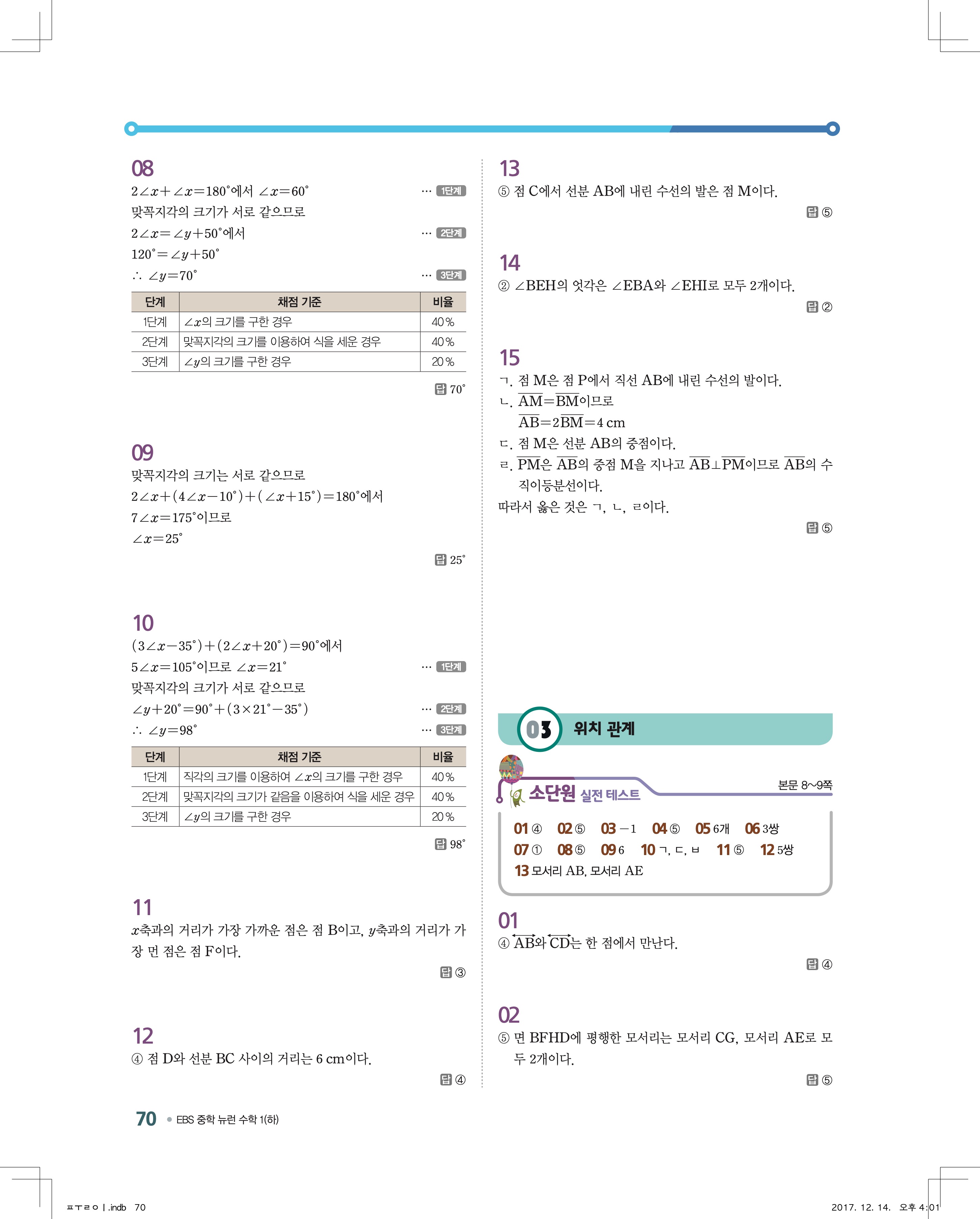EBS 중학뉴런 수학1하 답지 해설 바로보는 사진답지 빠른답지 모바일최적화
