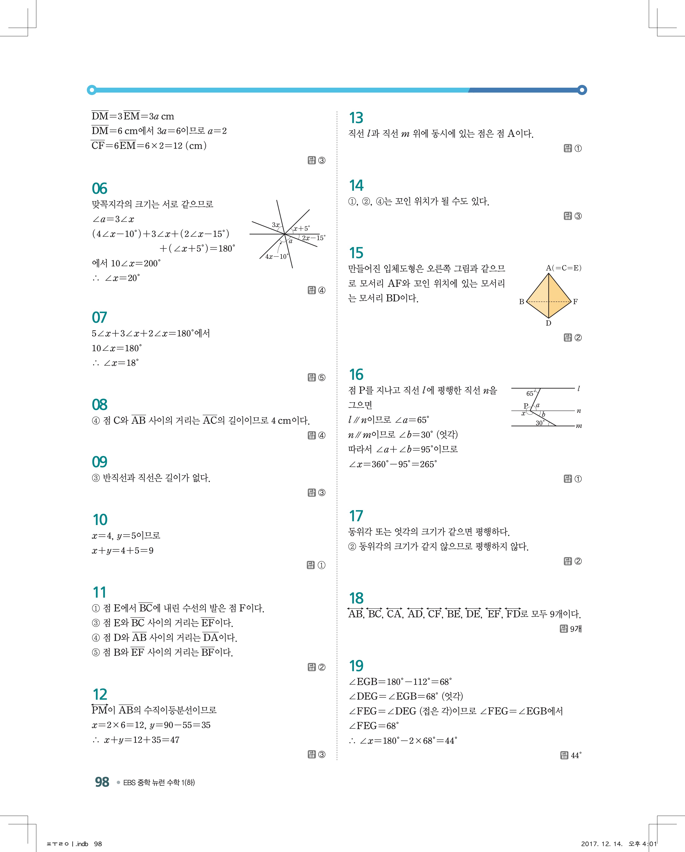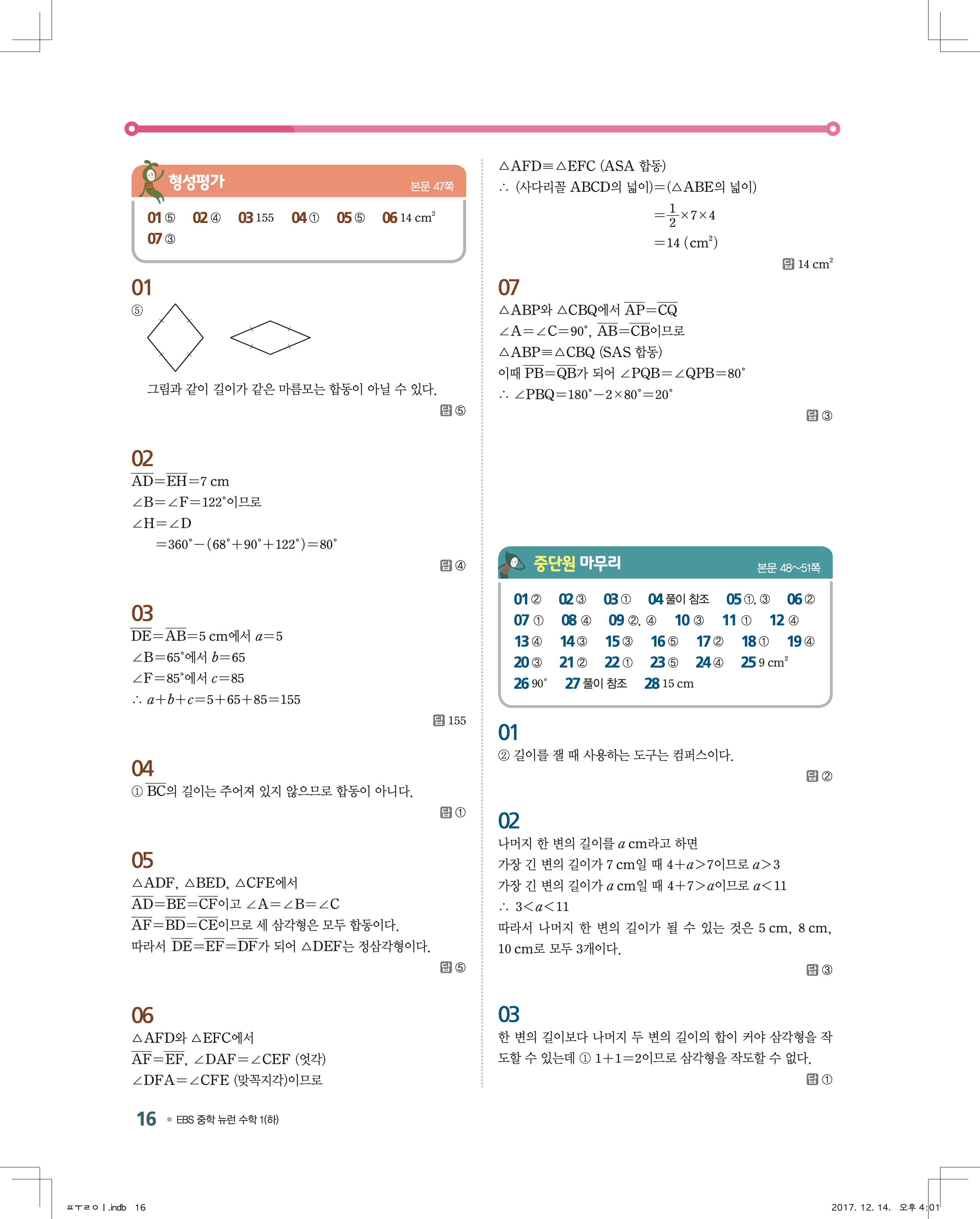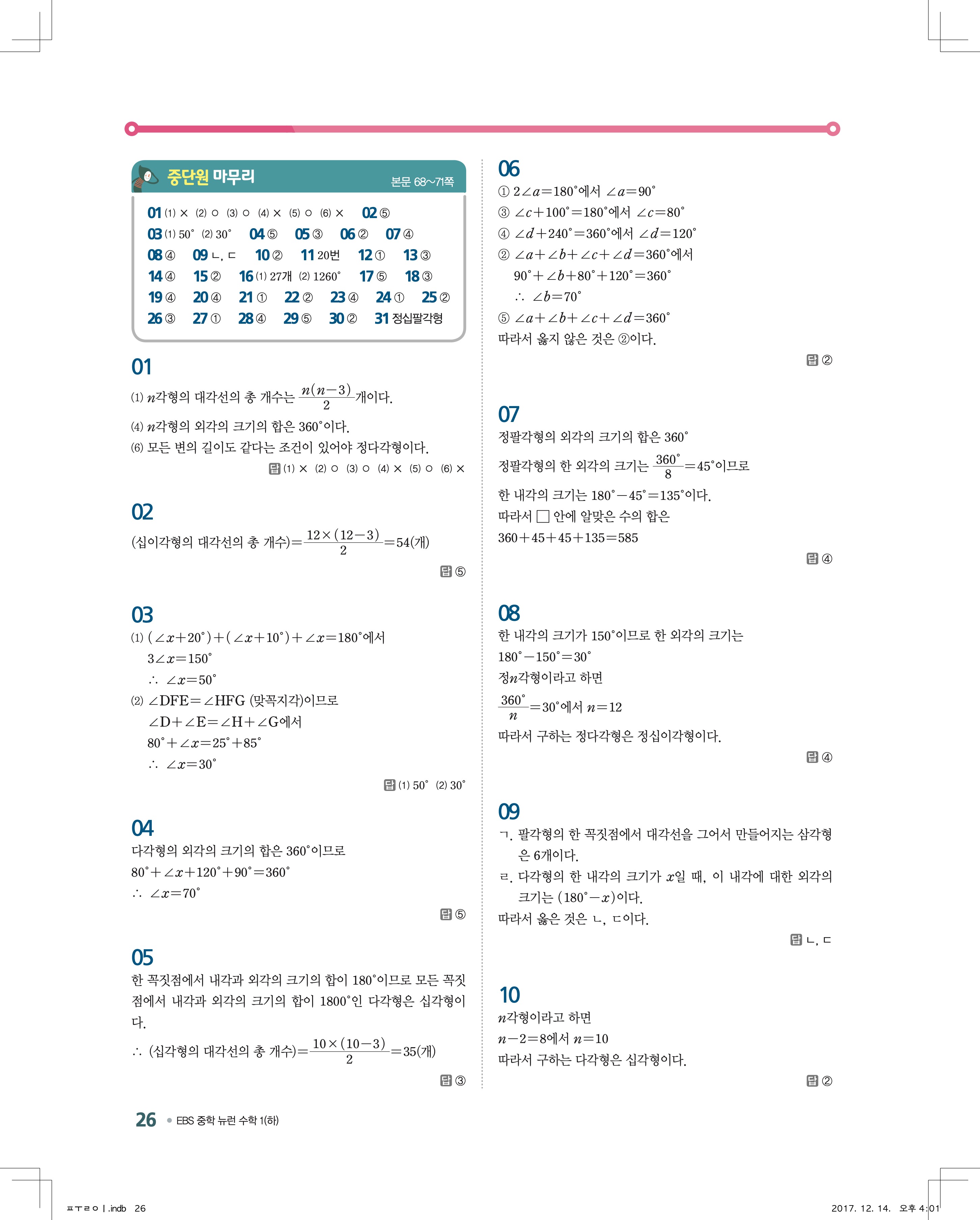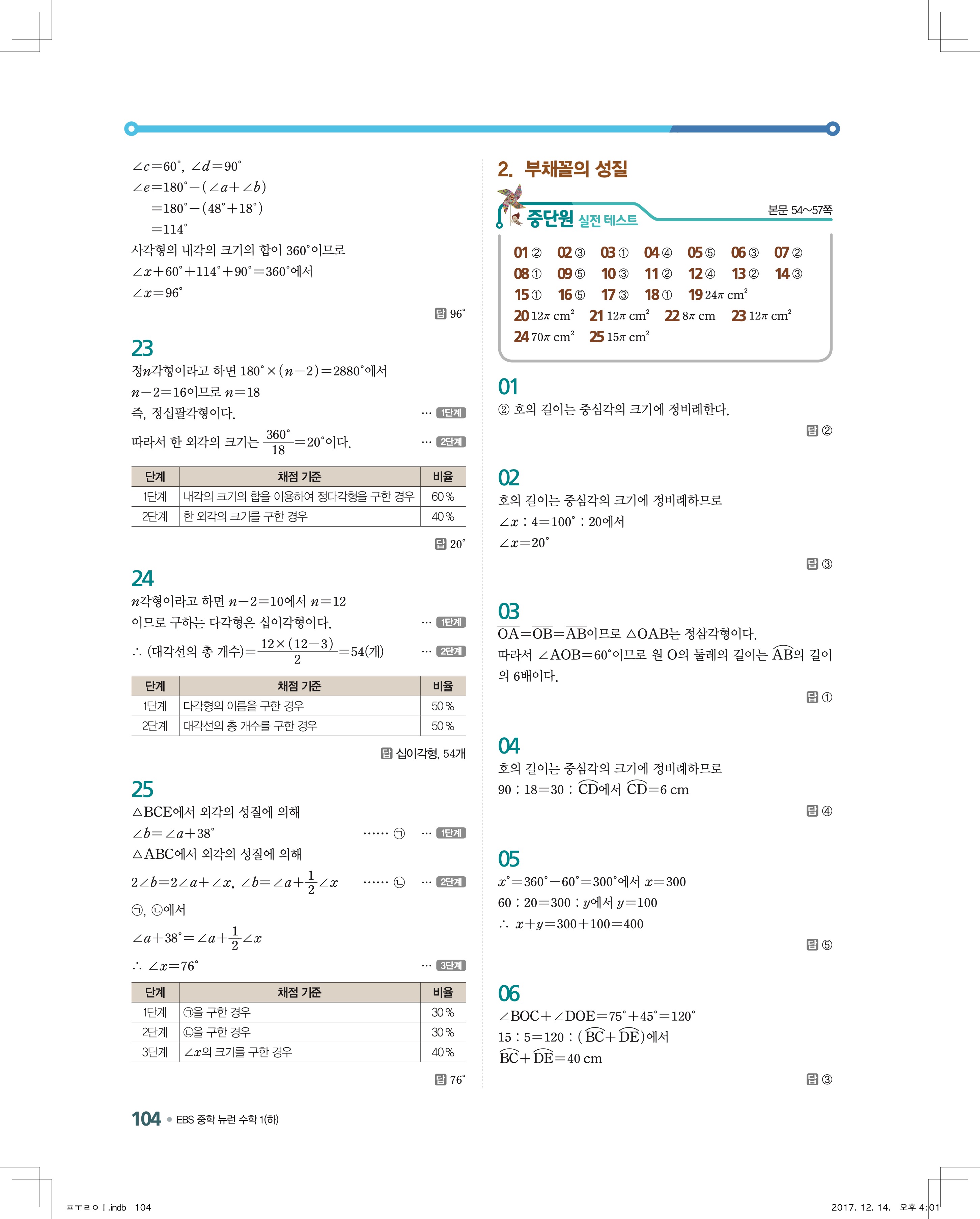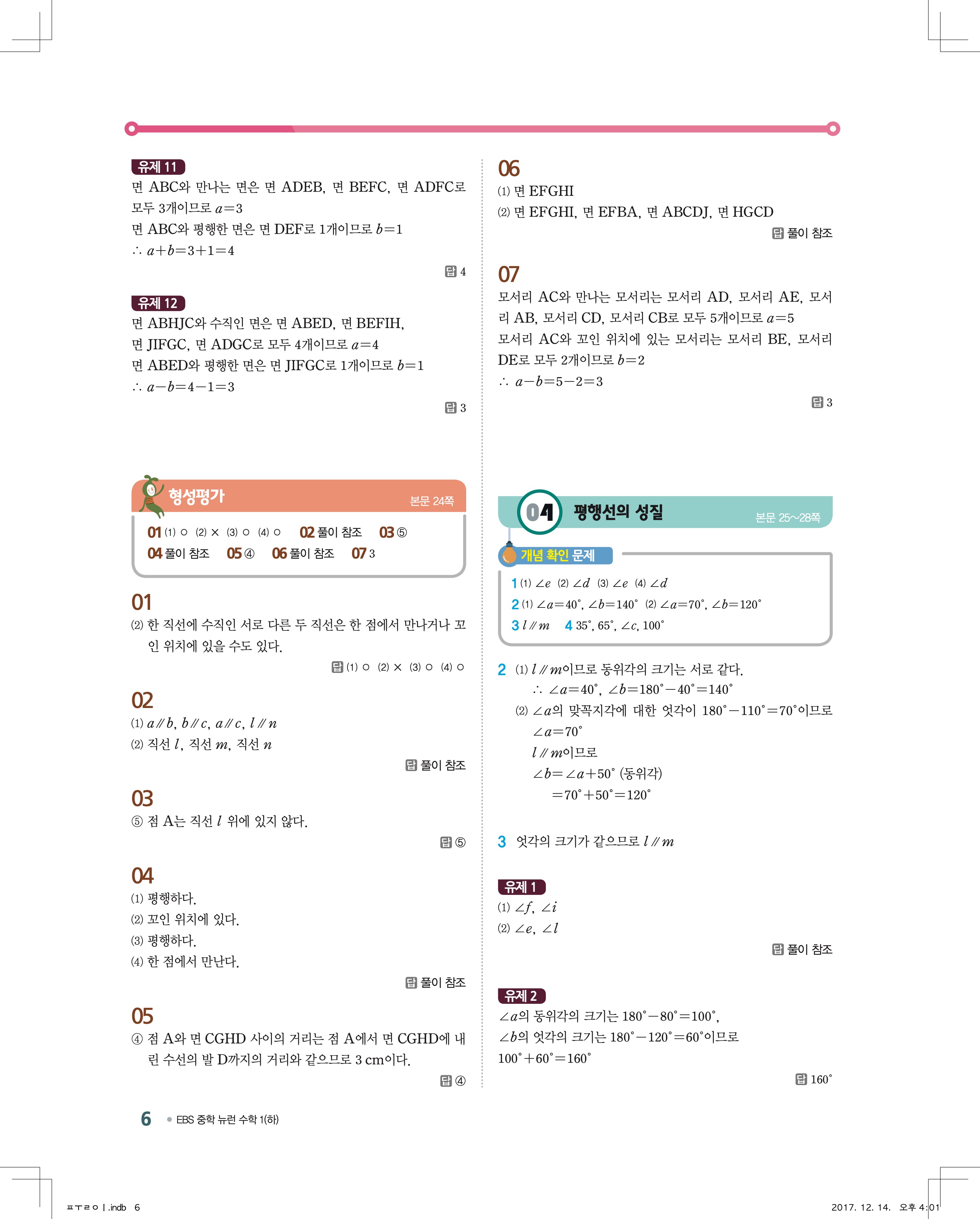 EBS 중학뉴런 수학1하 답지 해설 바로보는 사진답지 빠른답지 모바일최적화