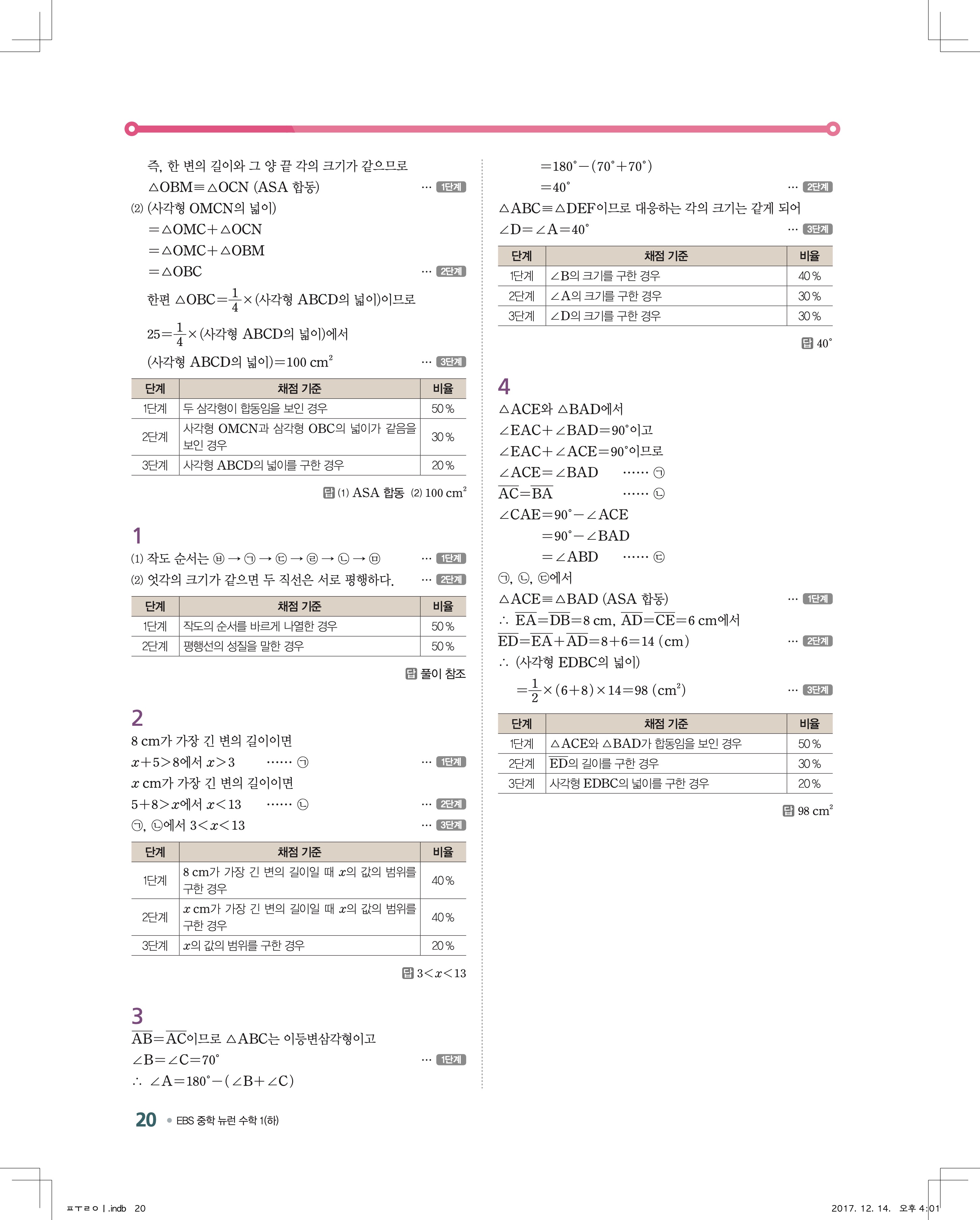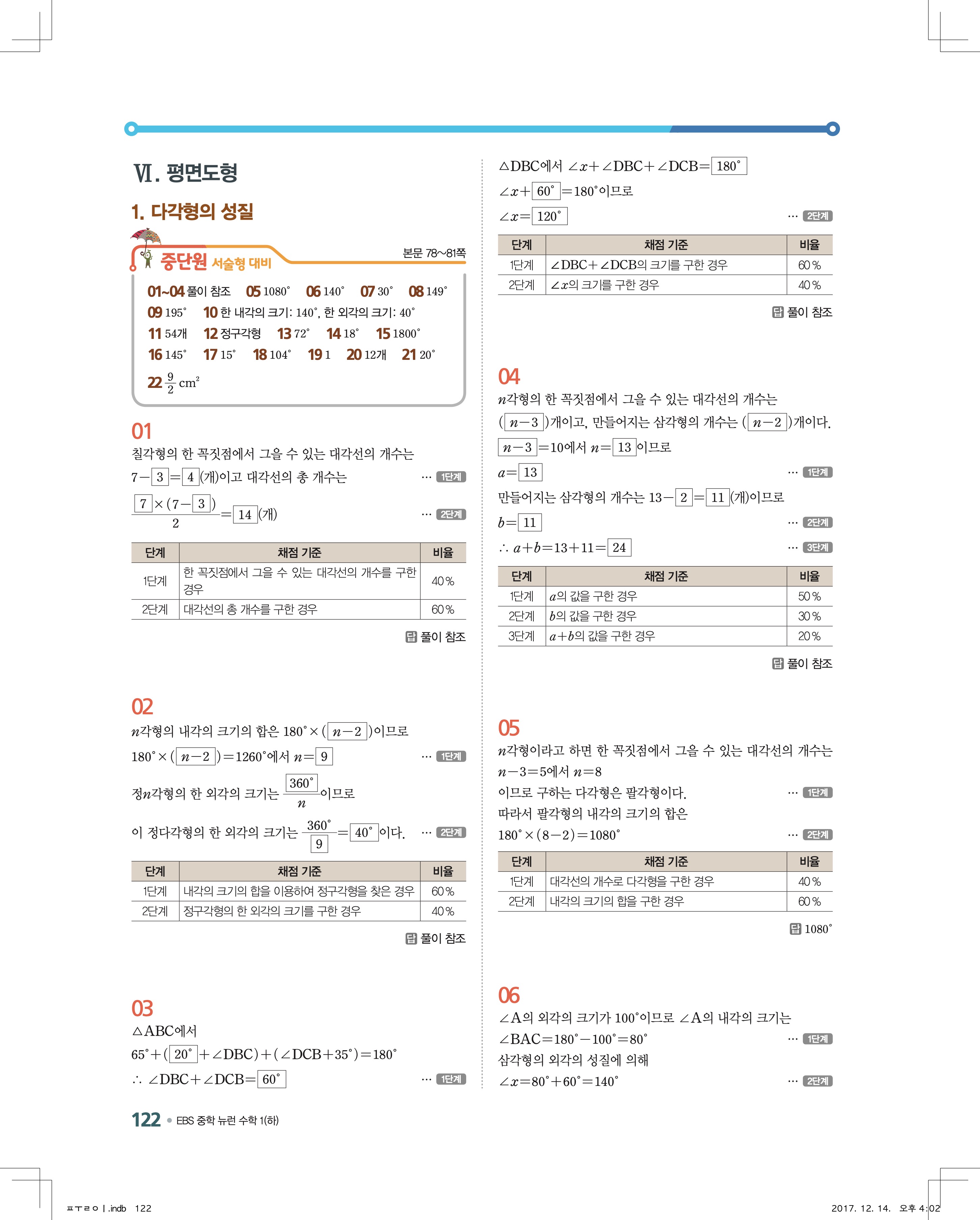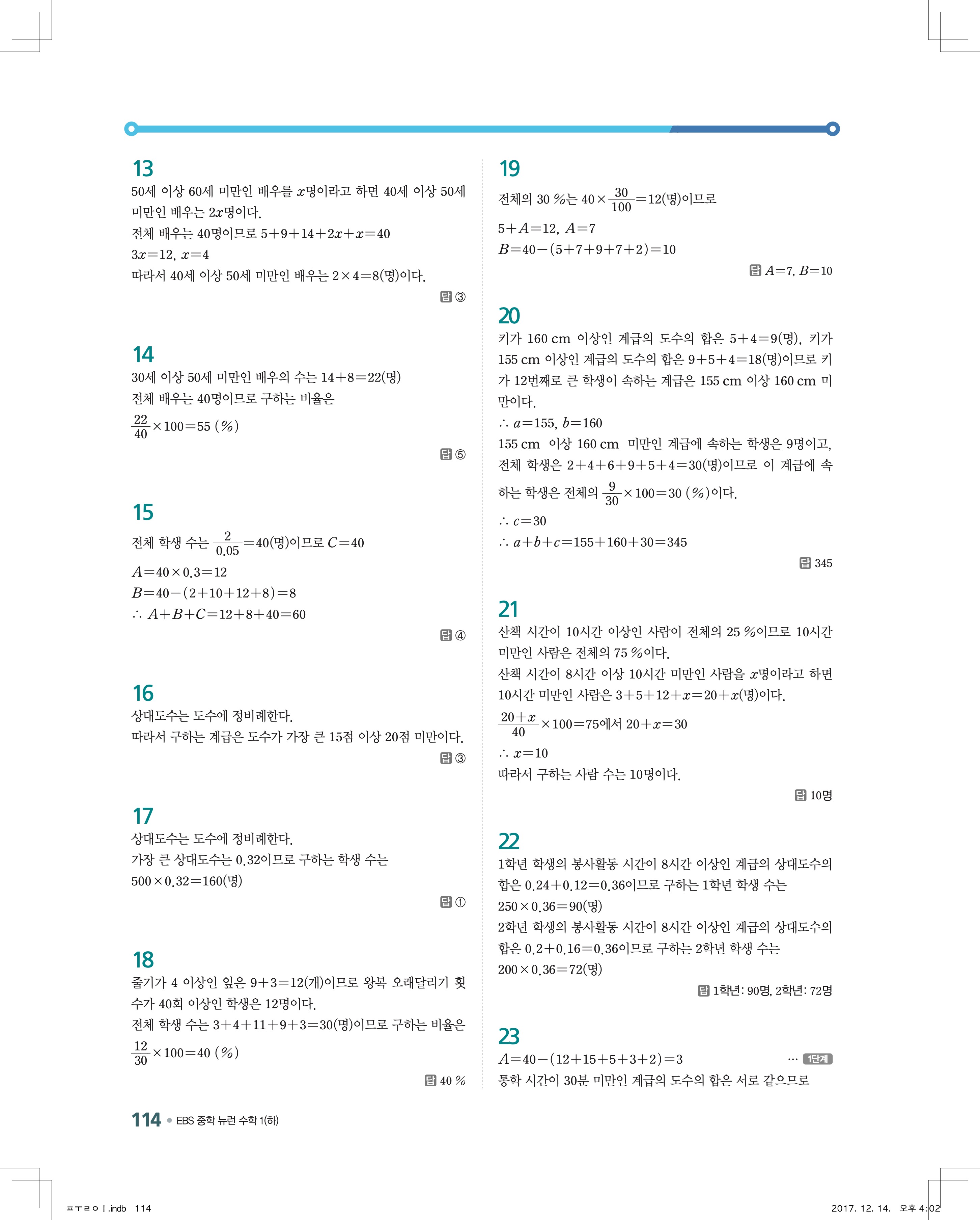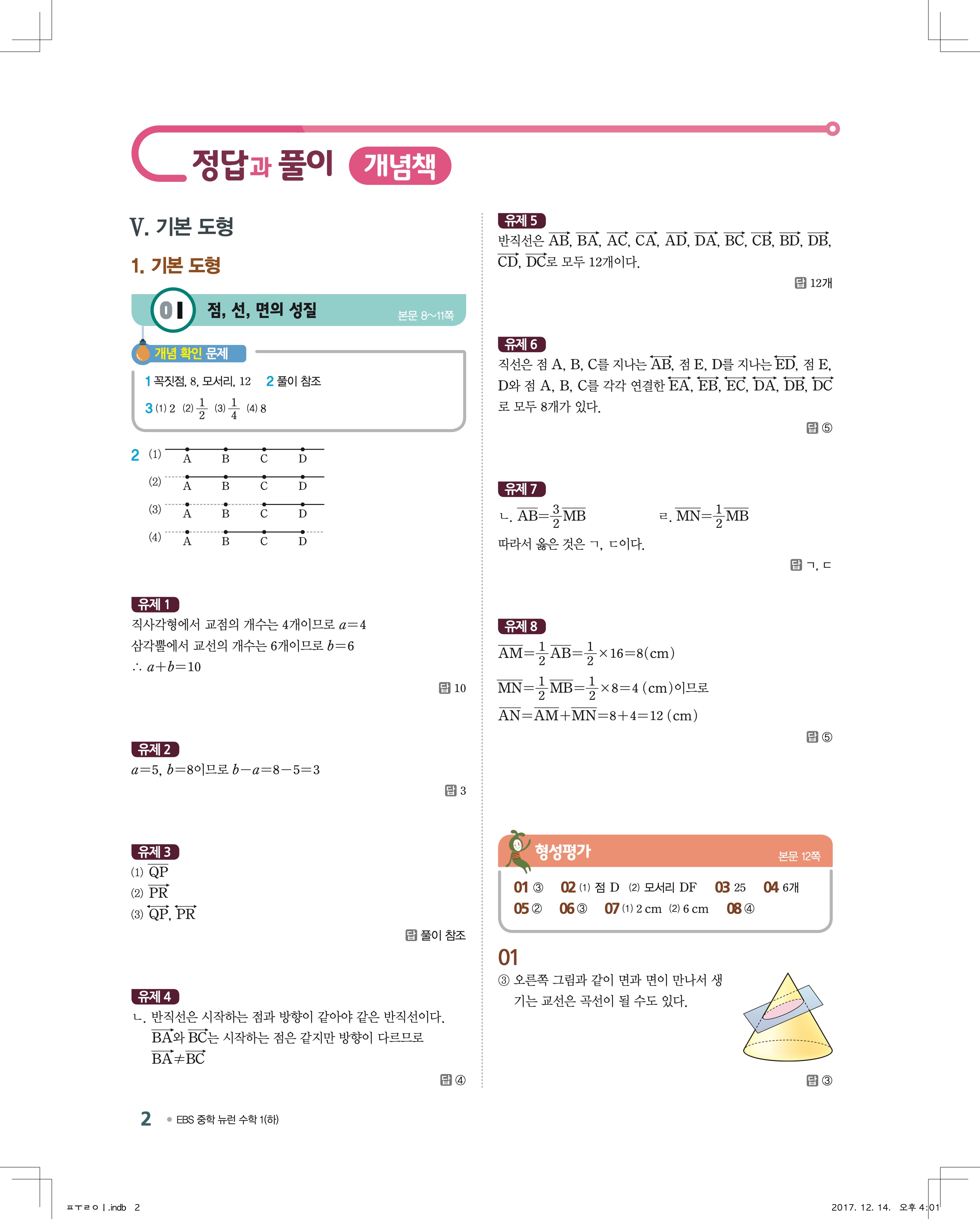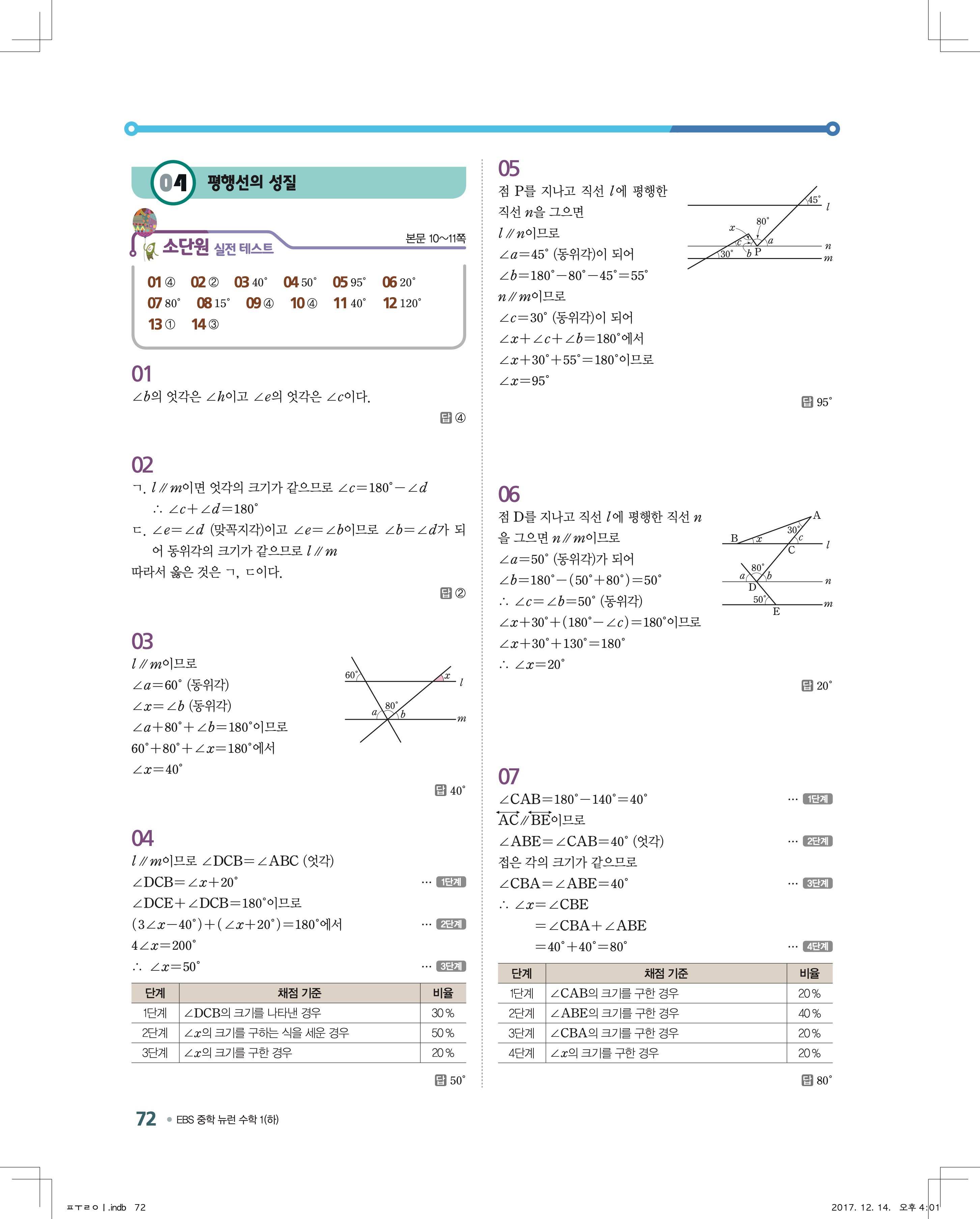 EBS 중학뉴런 수학1하 답지 해설 바로보는 사진답지 빠른답지 모바일최적화