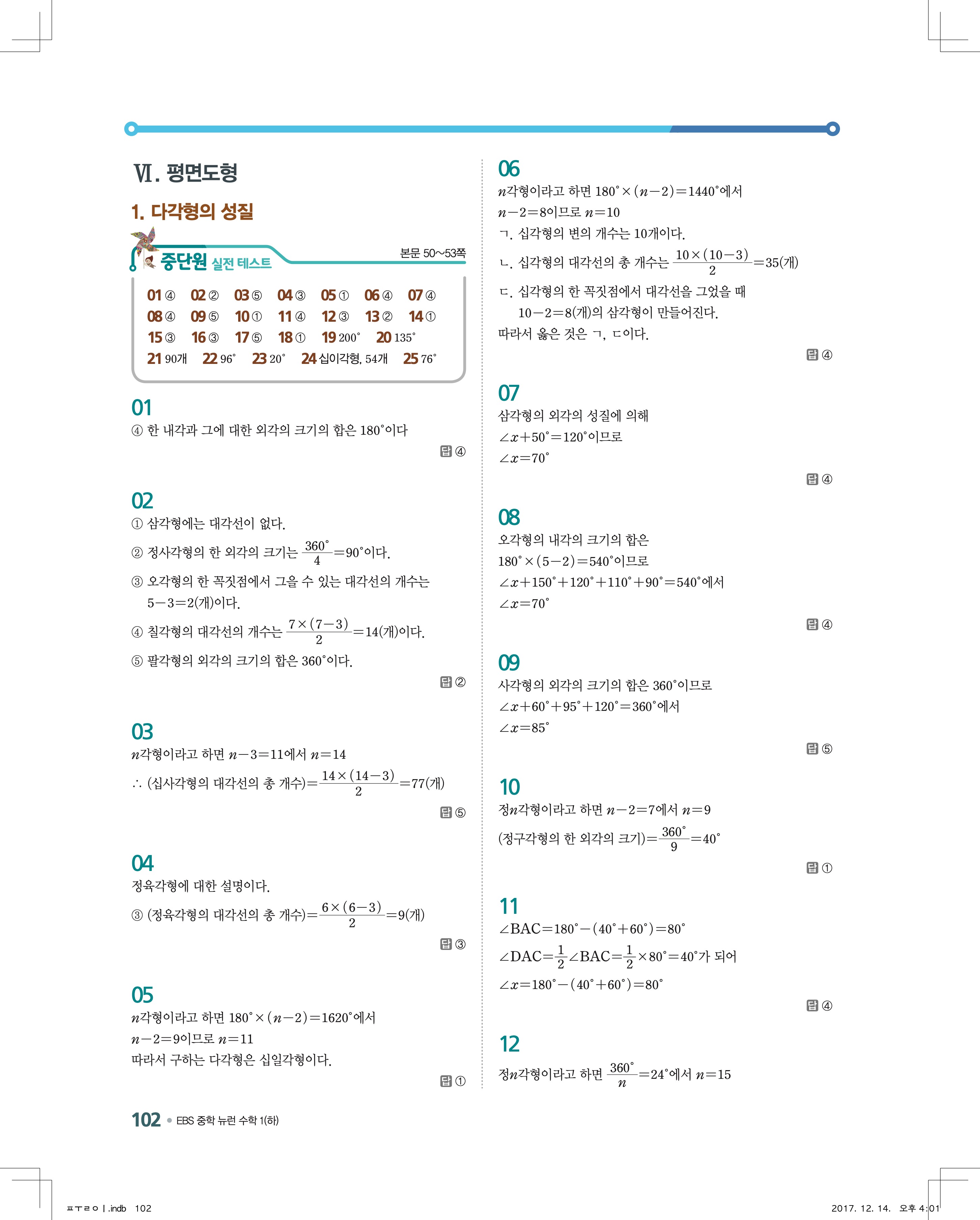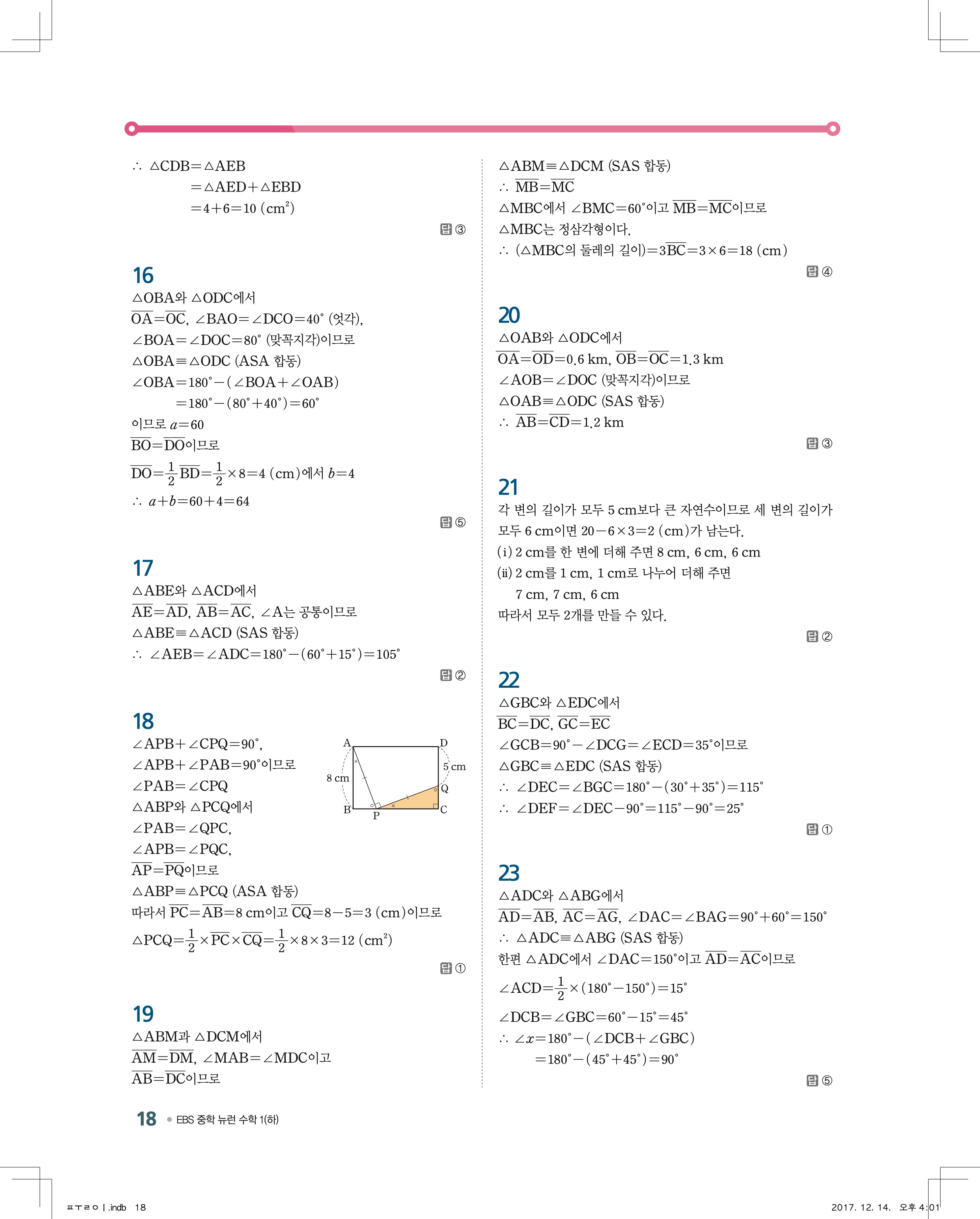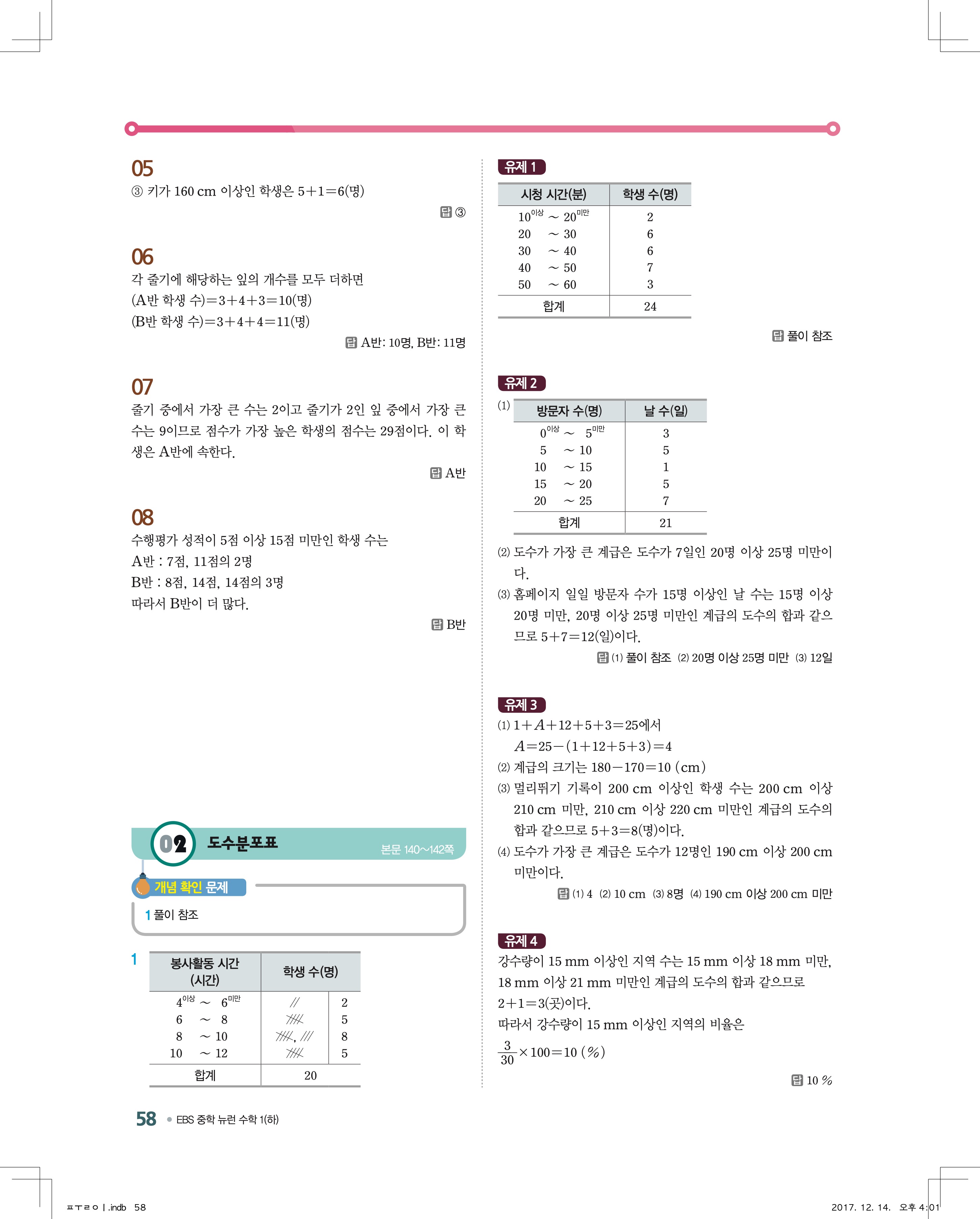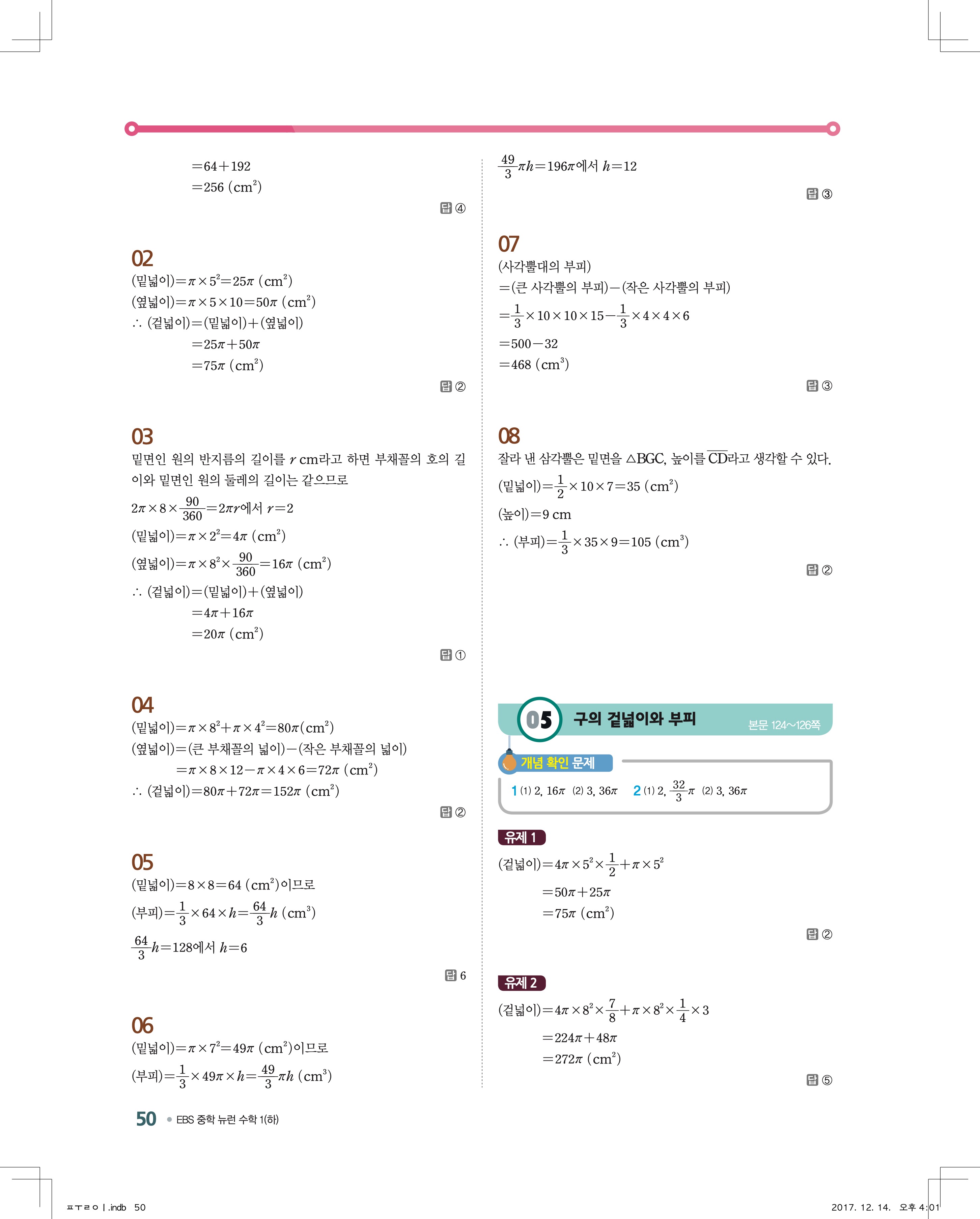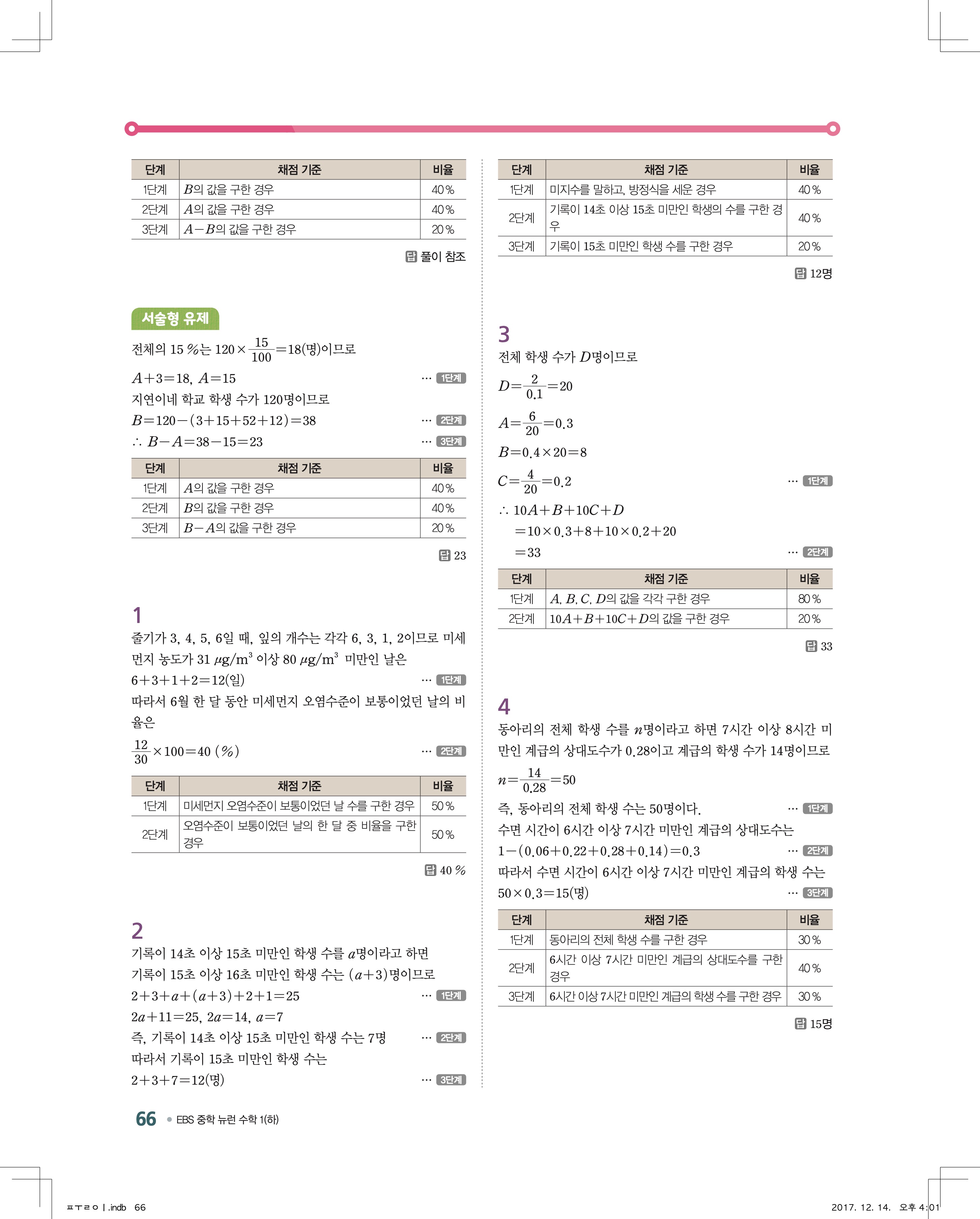 EBS 중학뉴런 수학1하 답지 해설 바로보는 사진답지 빠른답지 모바일최적화