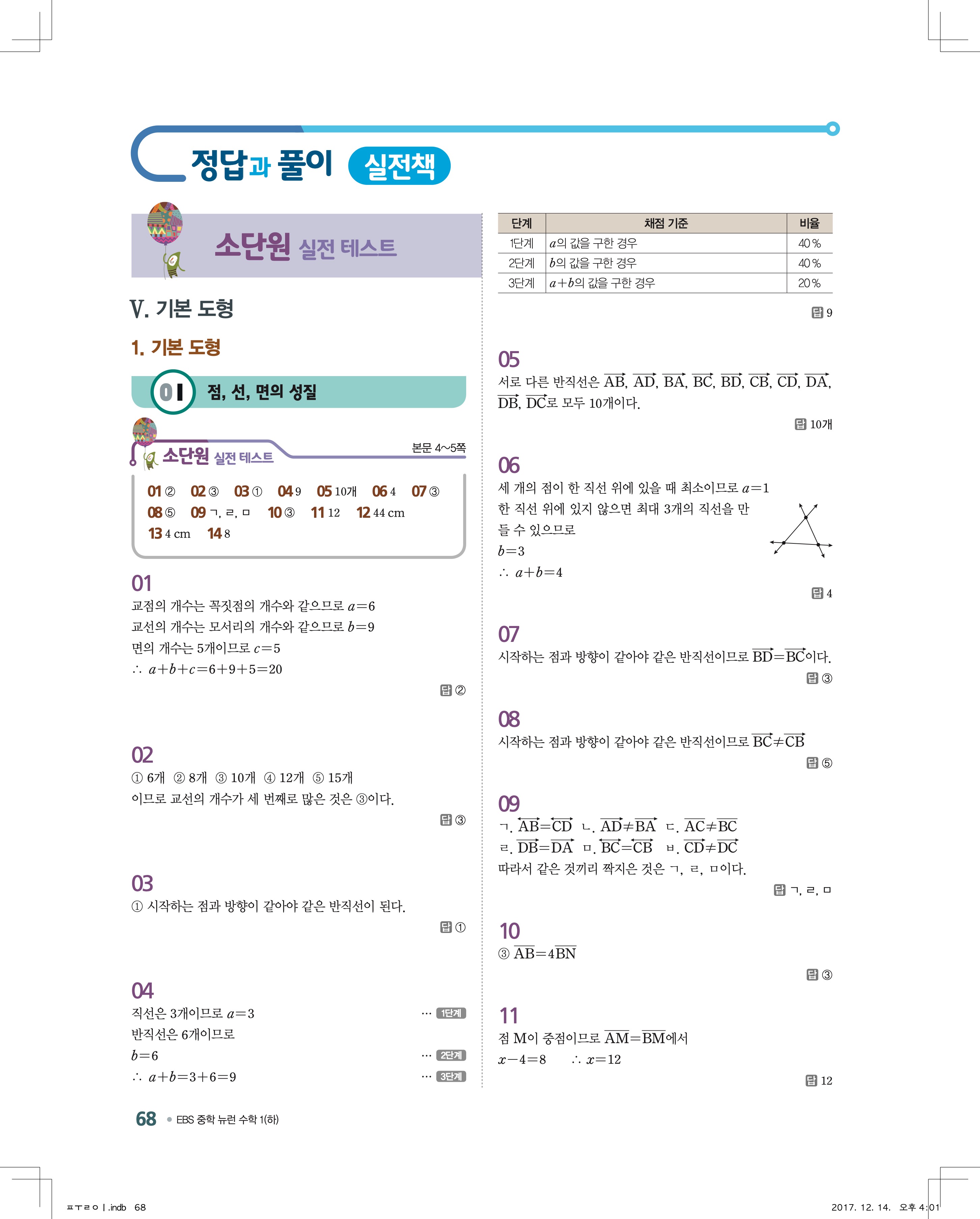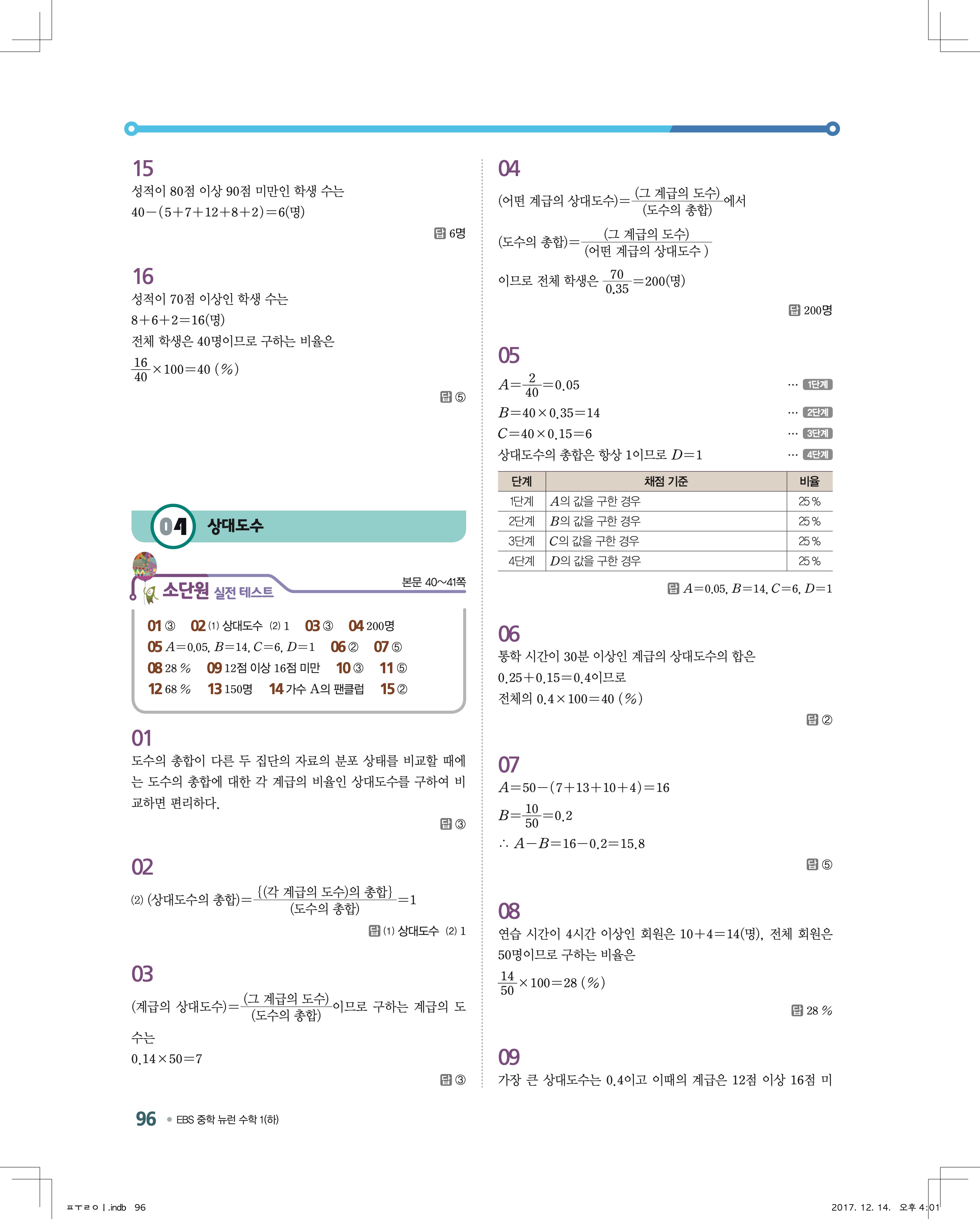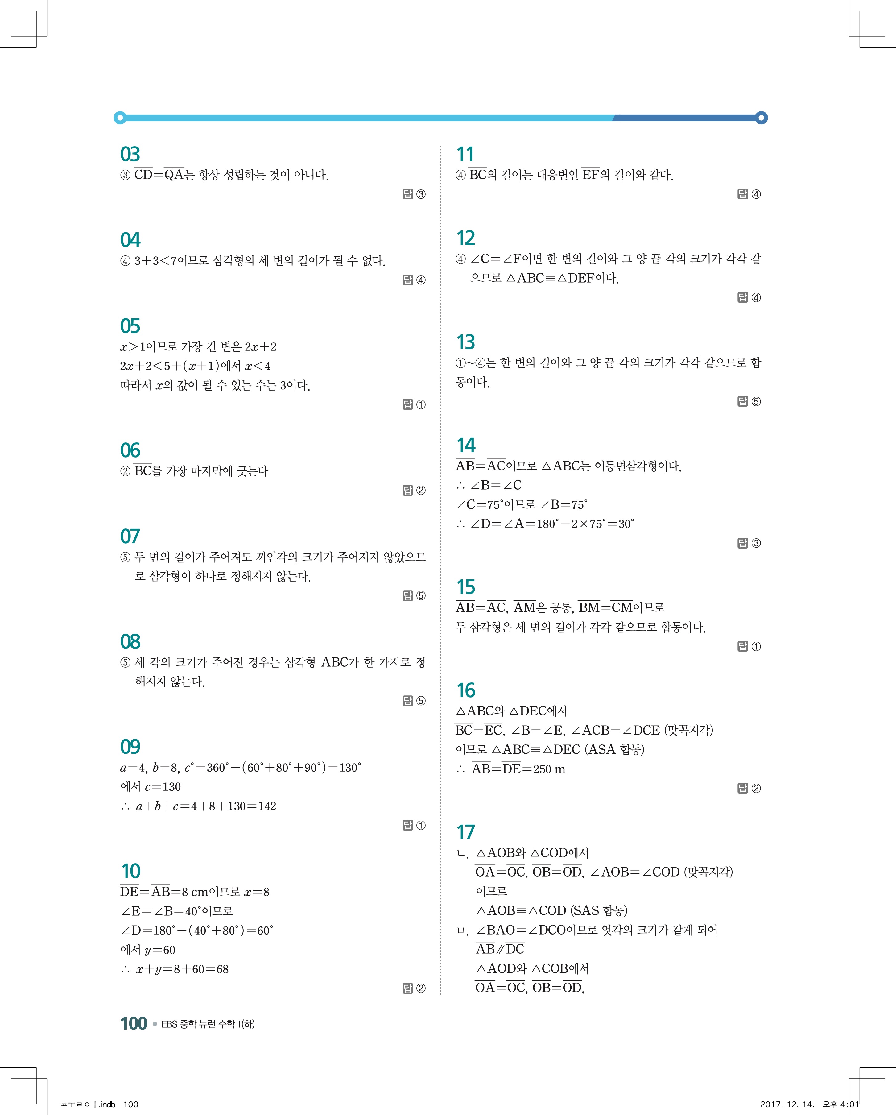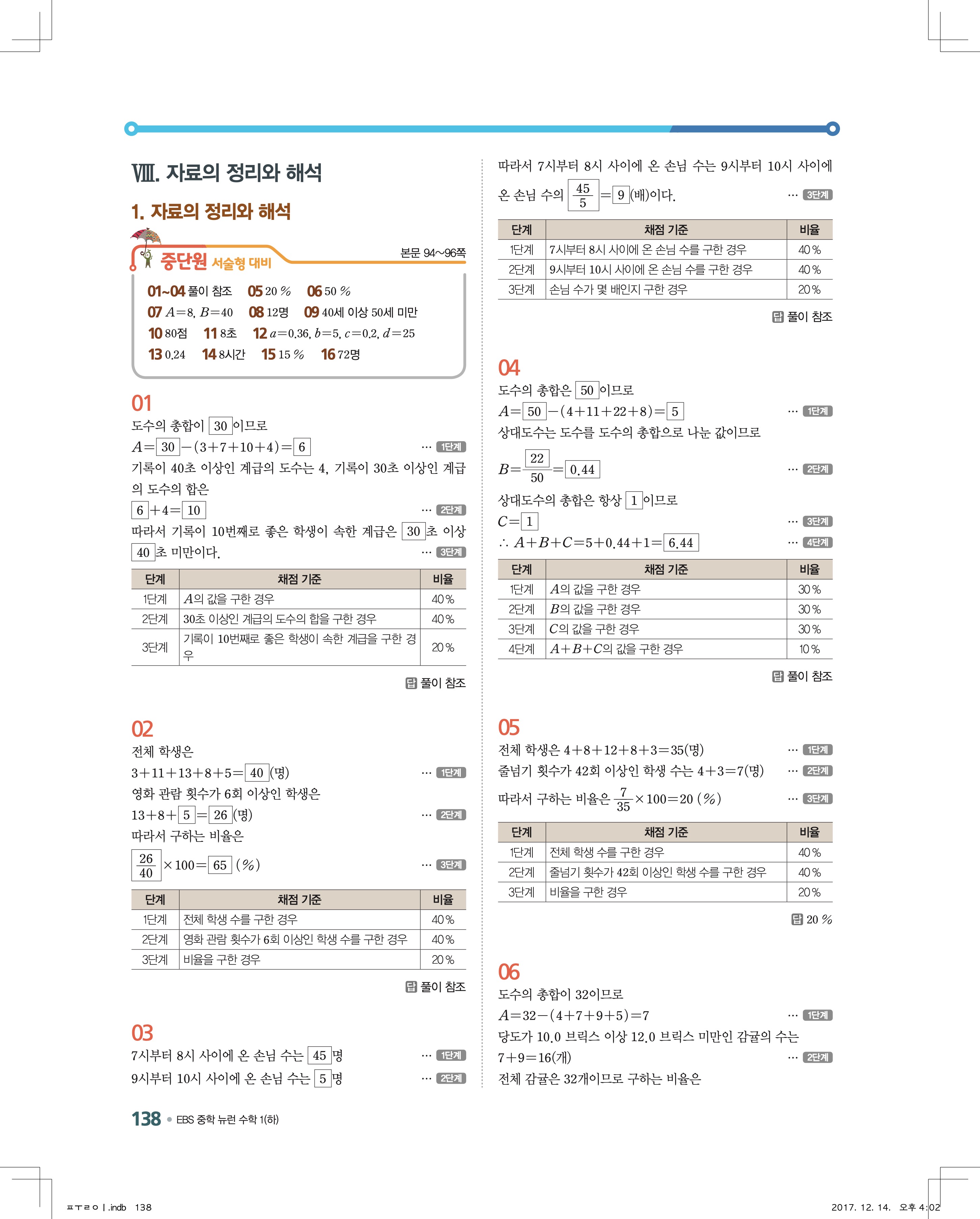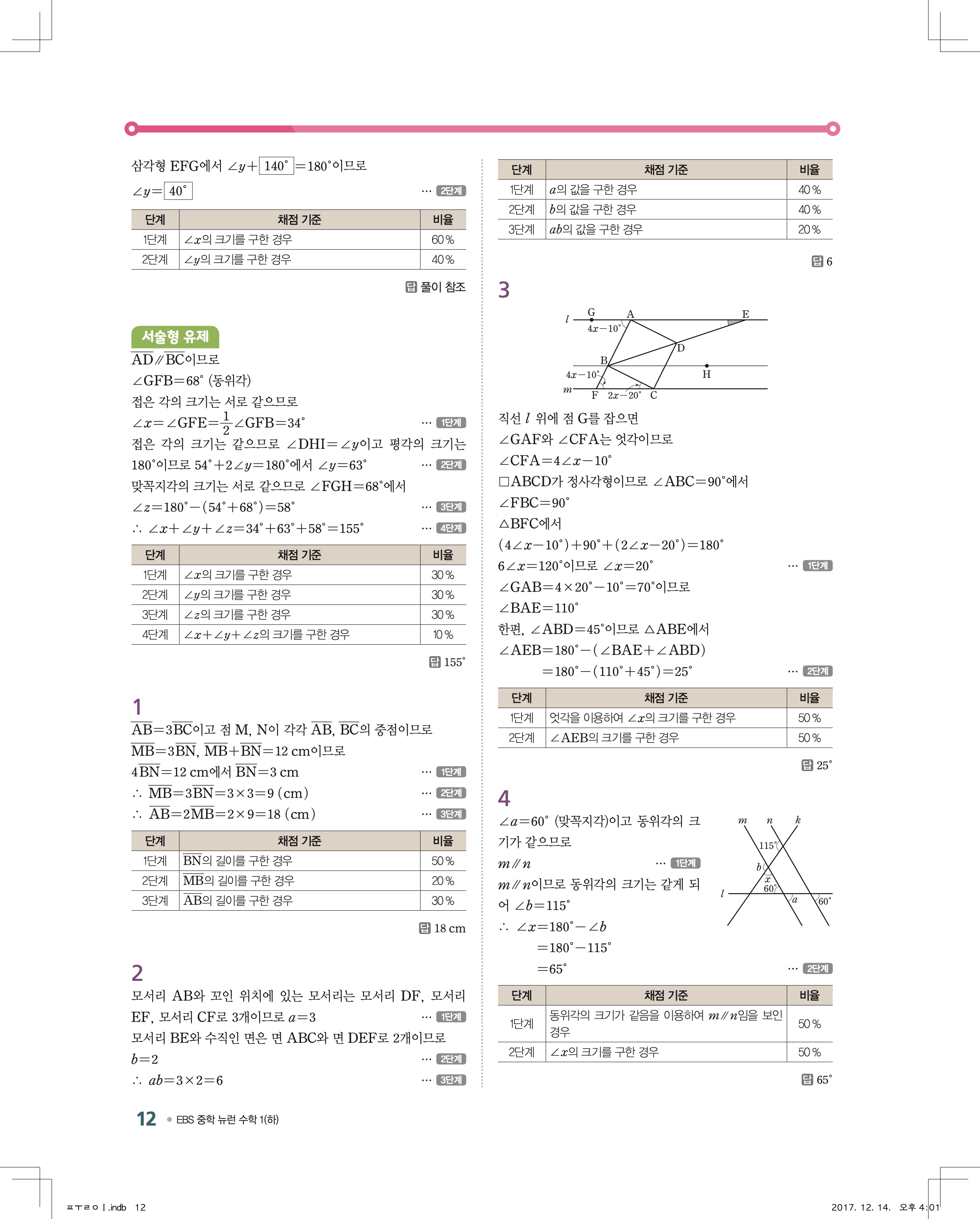 EBS 중학뉴런 수학1하 답지 해설 바로보는 사진답지 빠른답지 모바일최적화