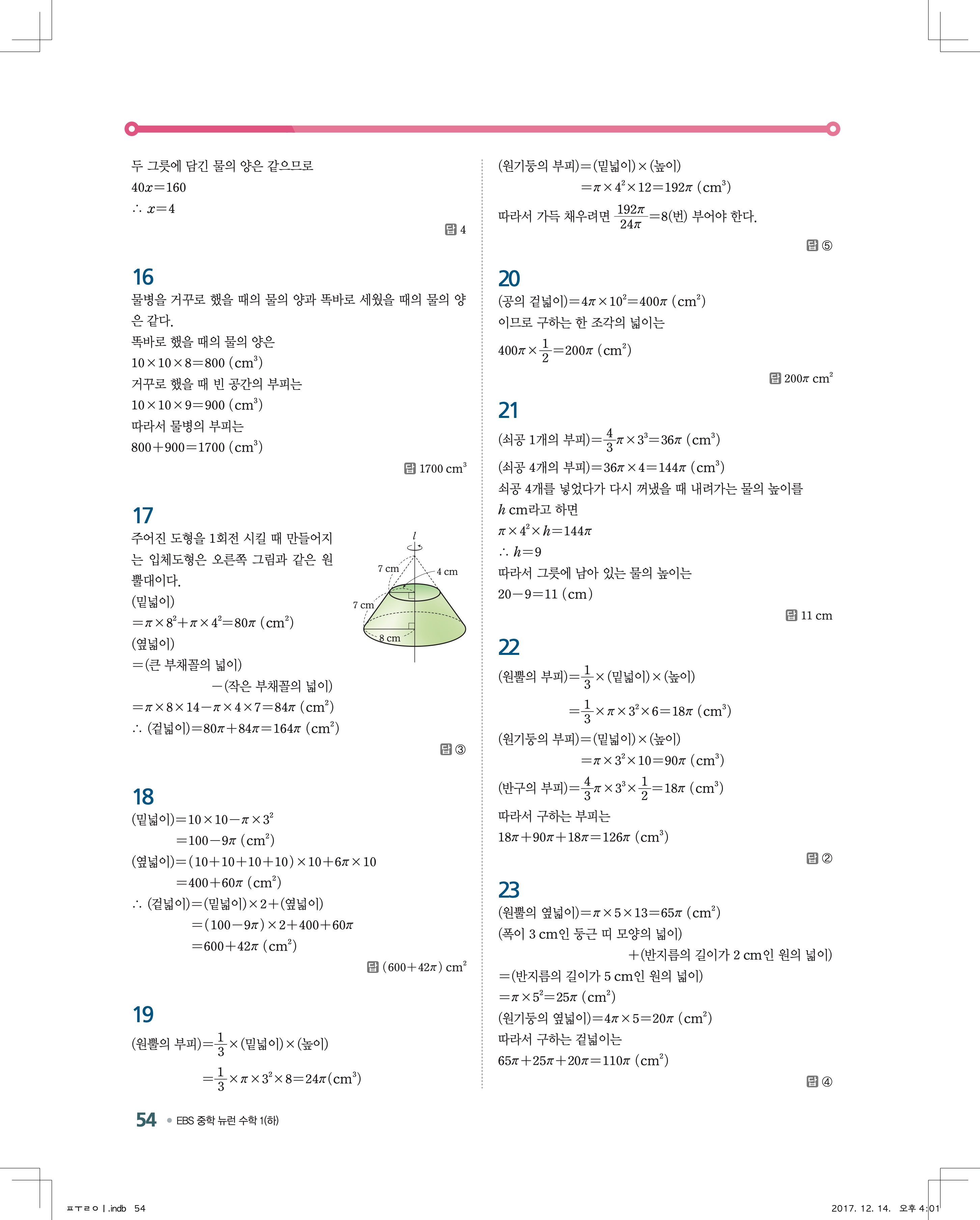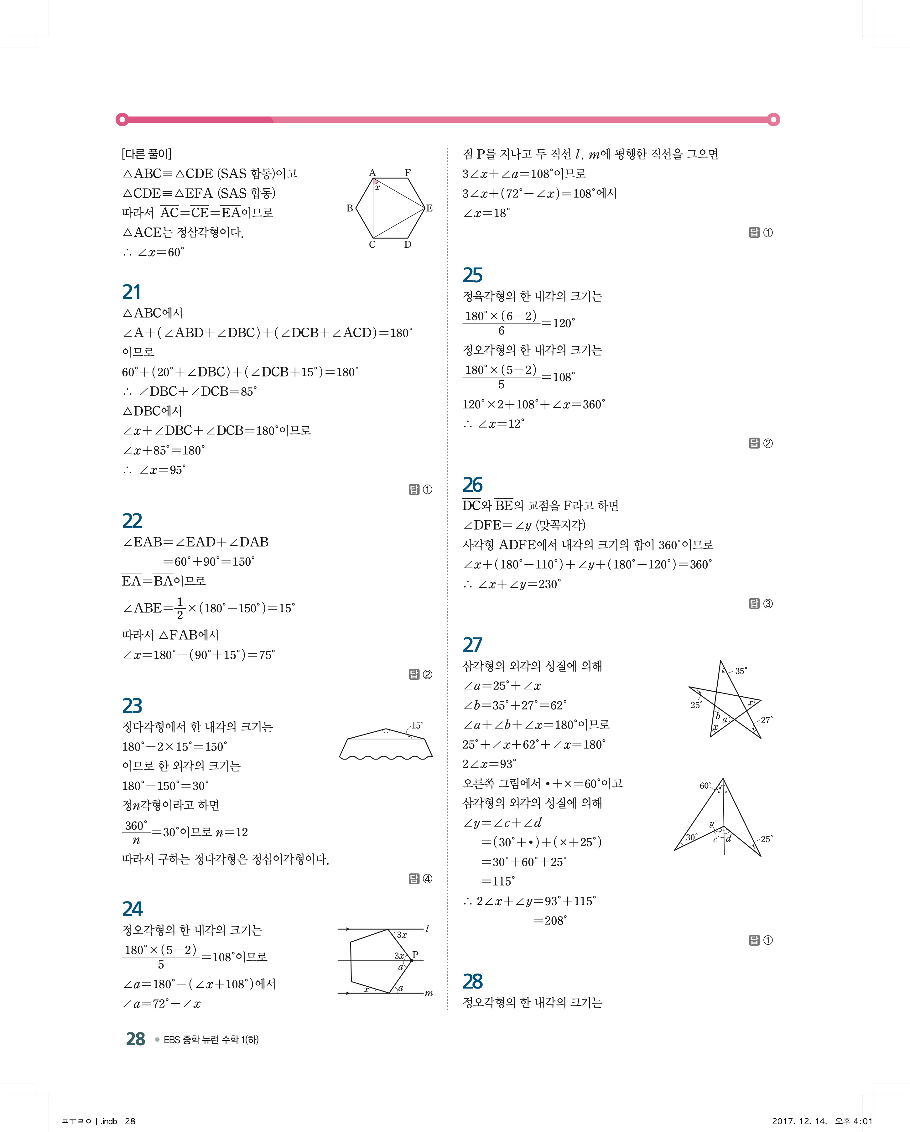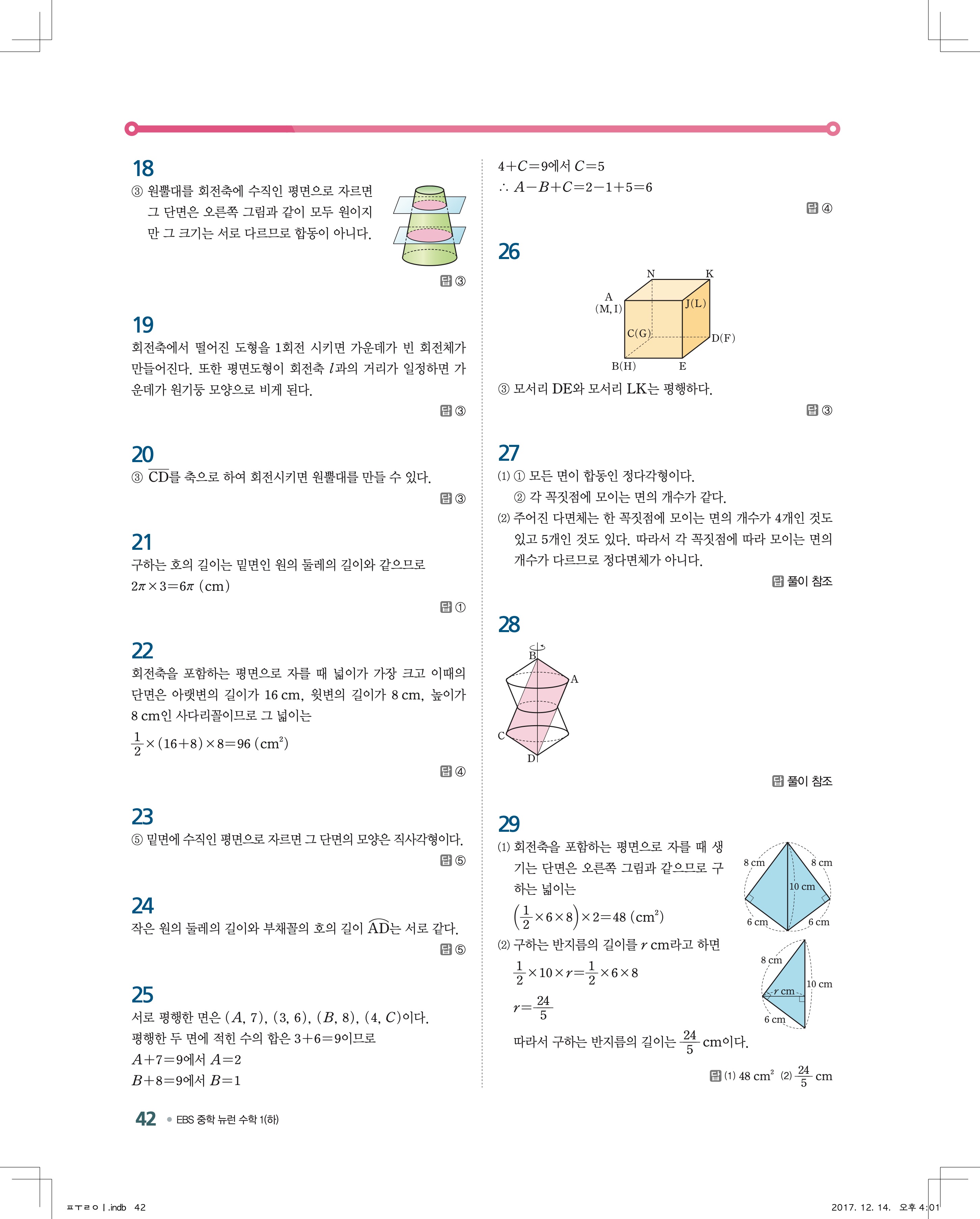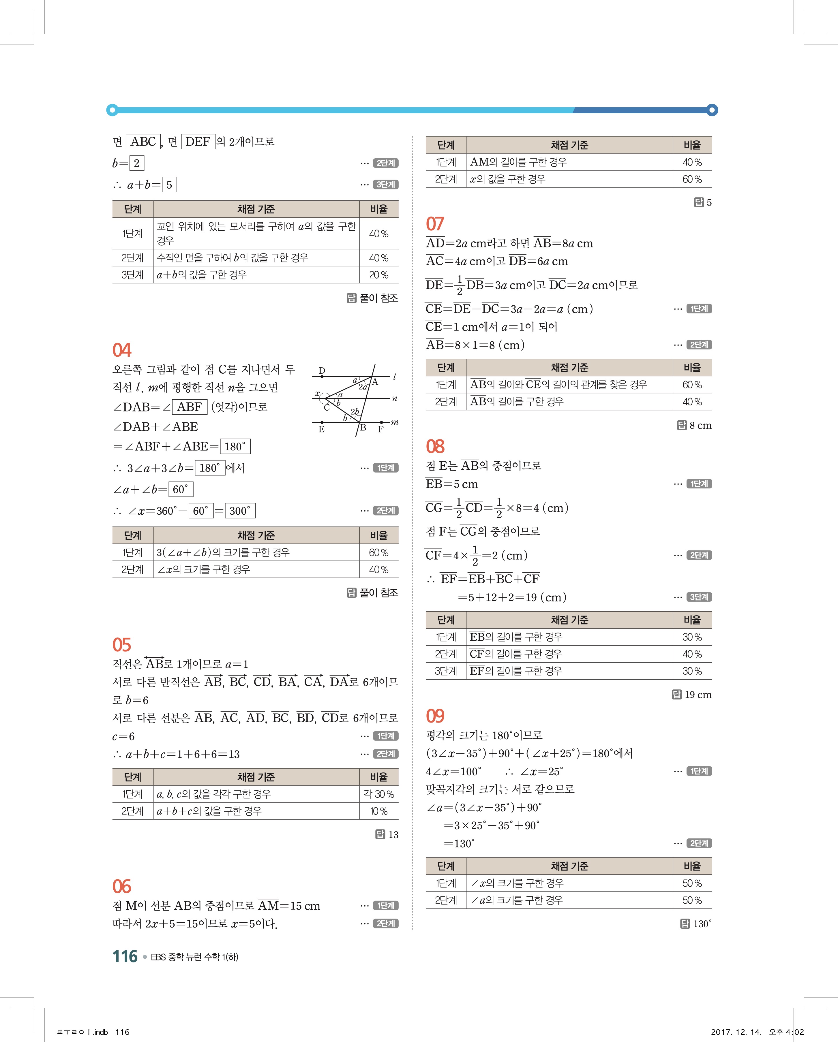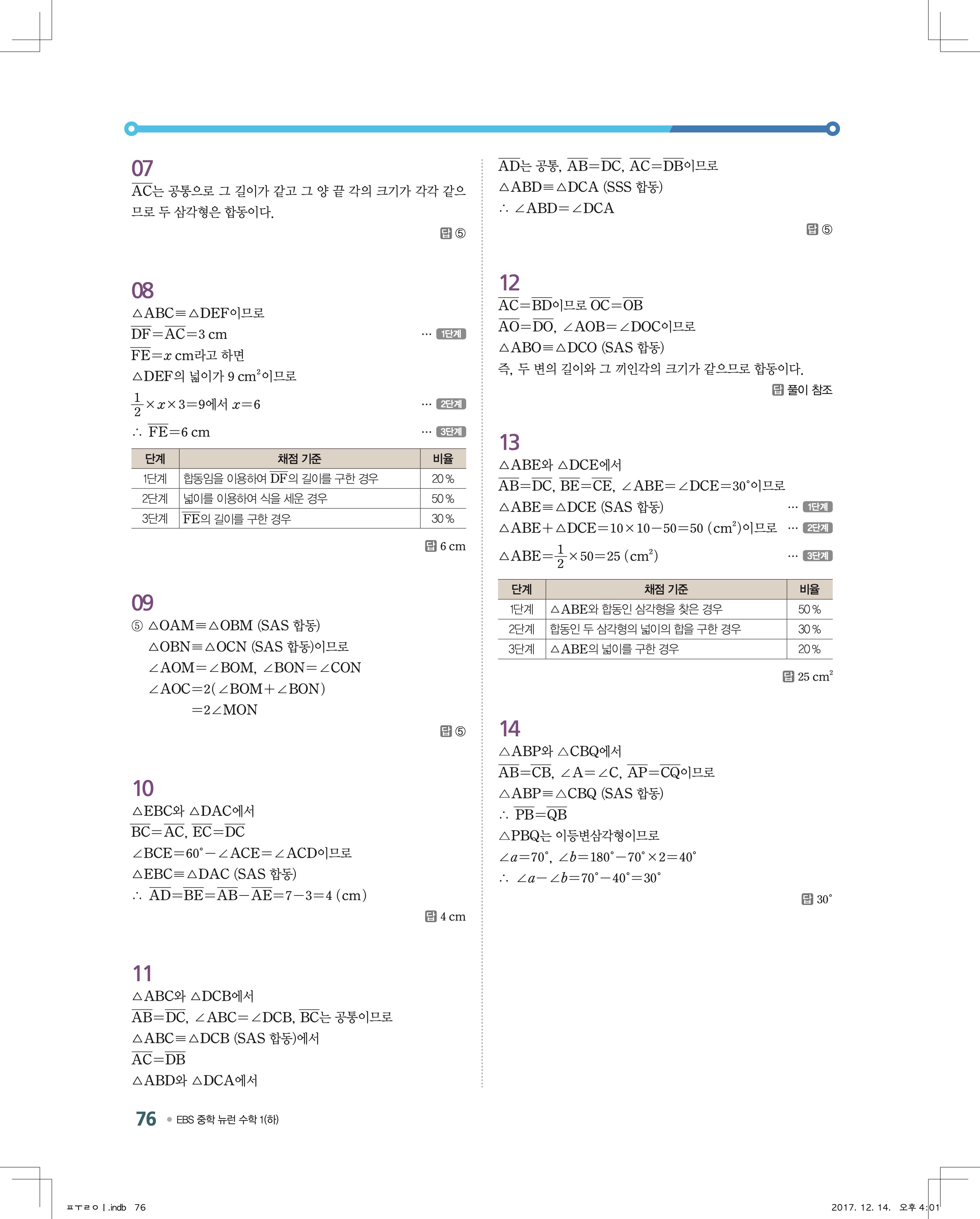 EBS 중학뉴런 수학1하 답지 해설 바로보는 사진답지 빠른답지 모바일최적화