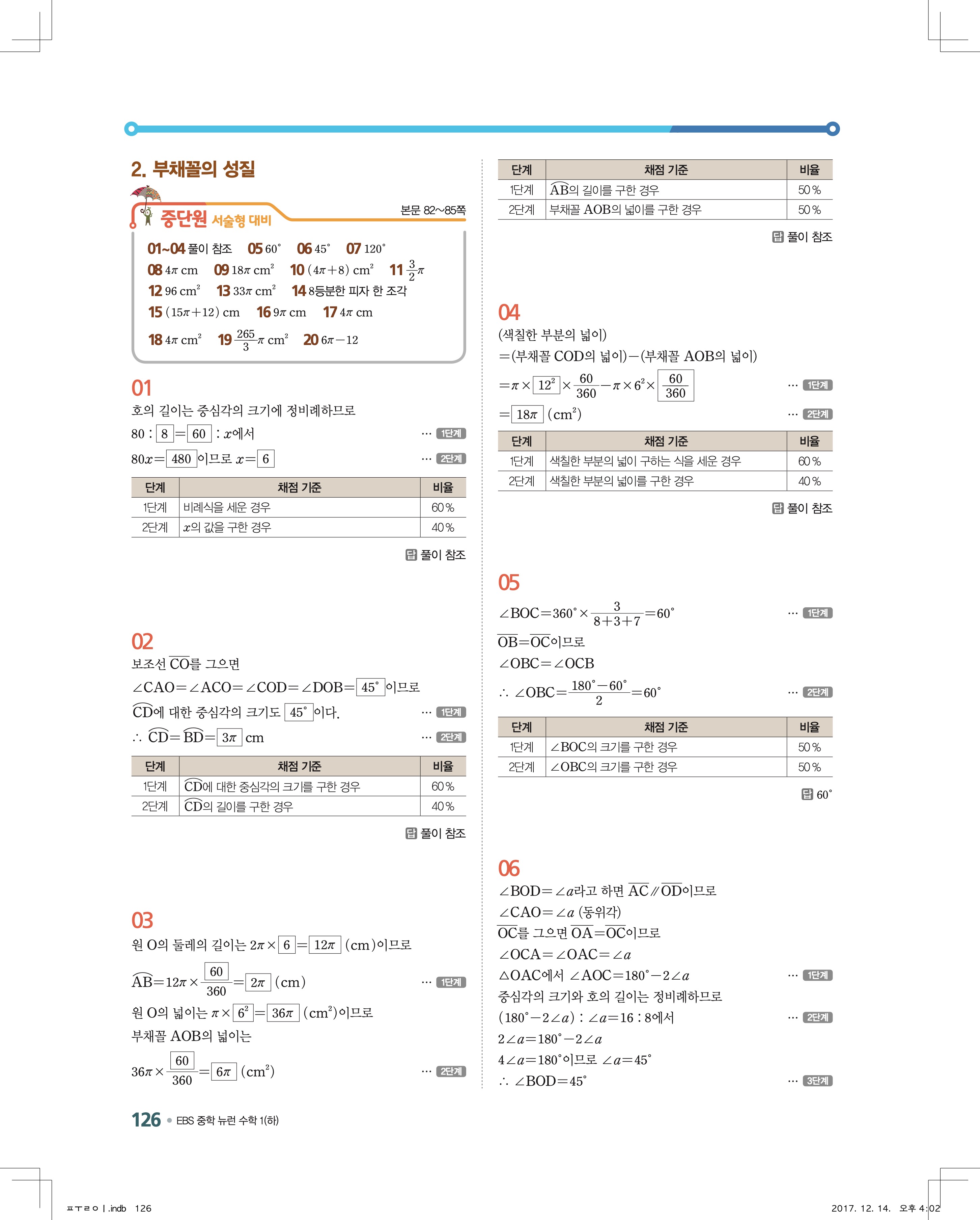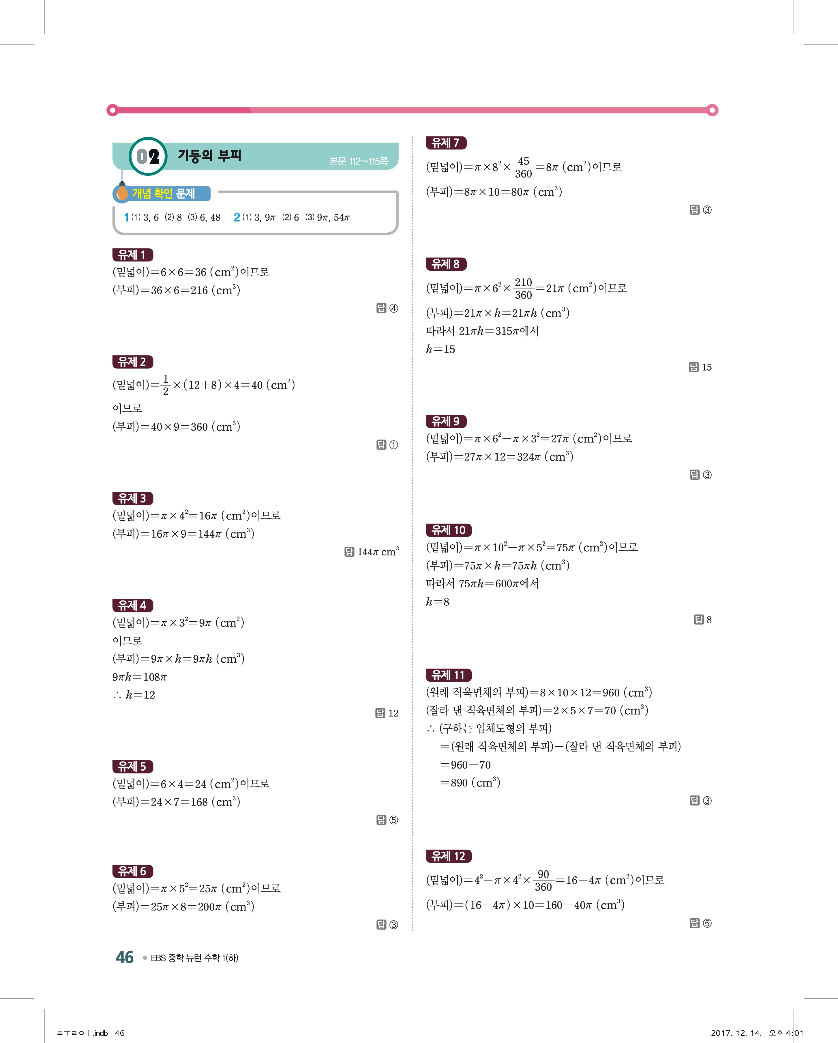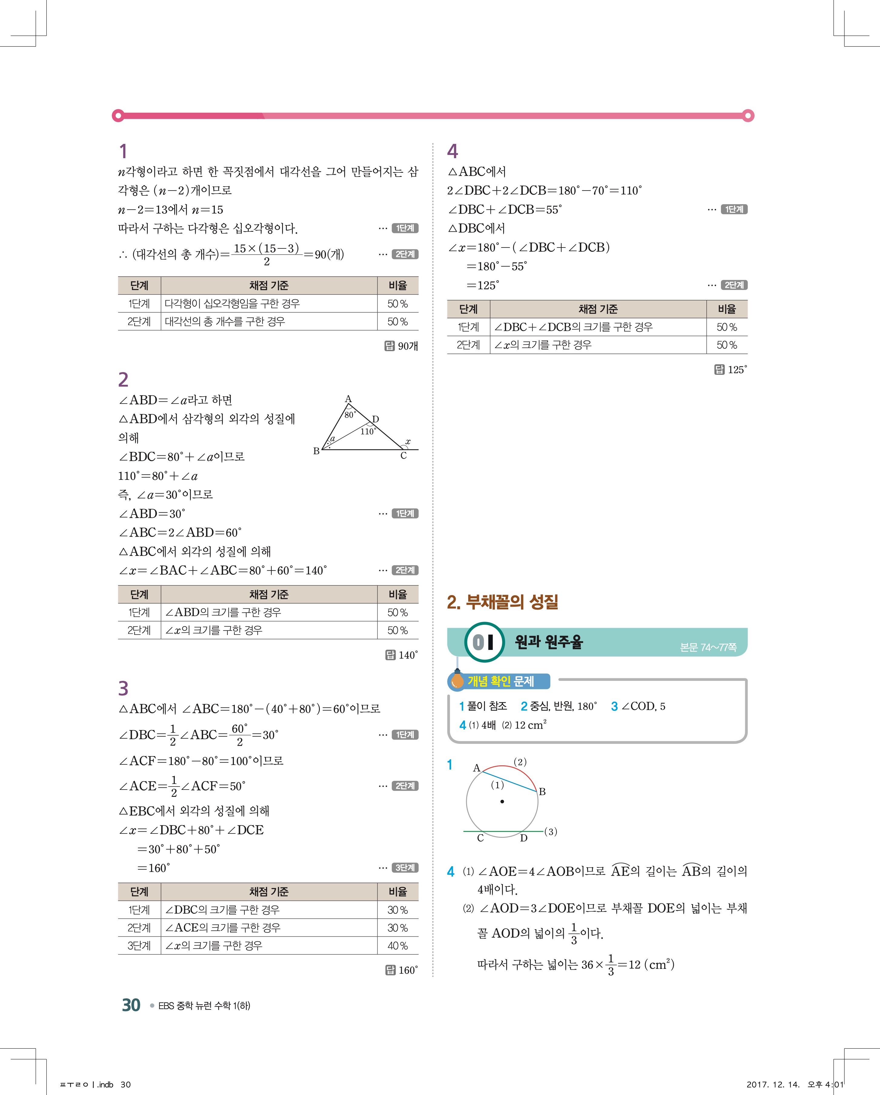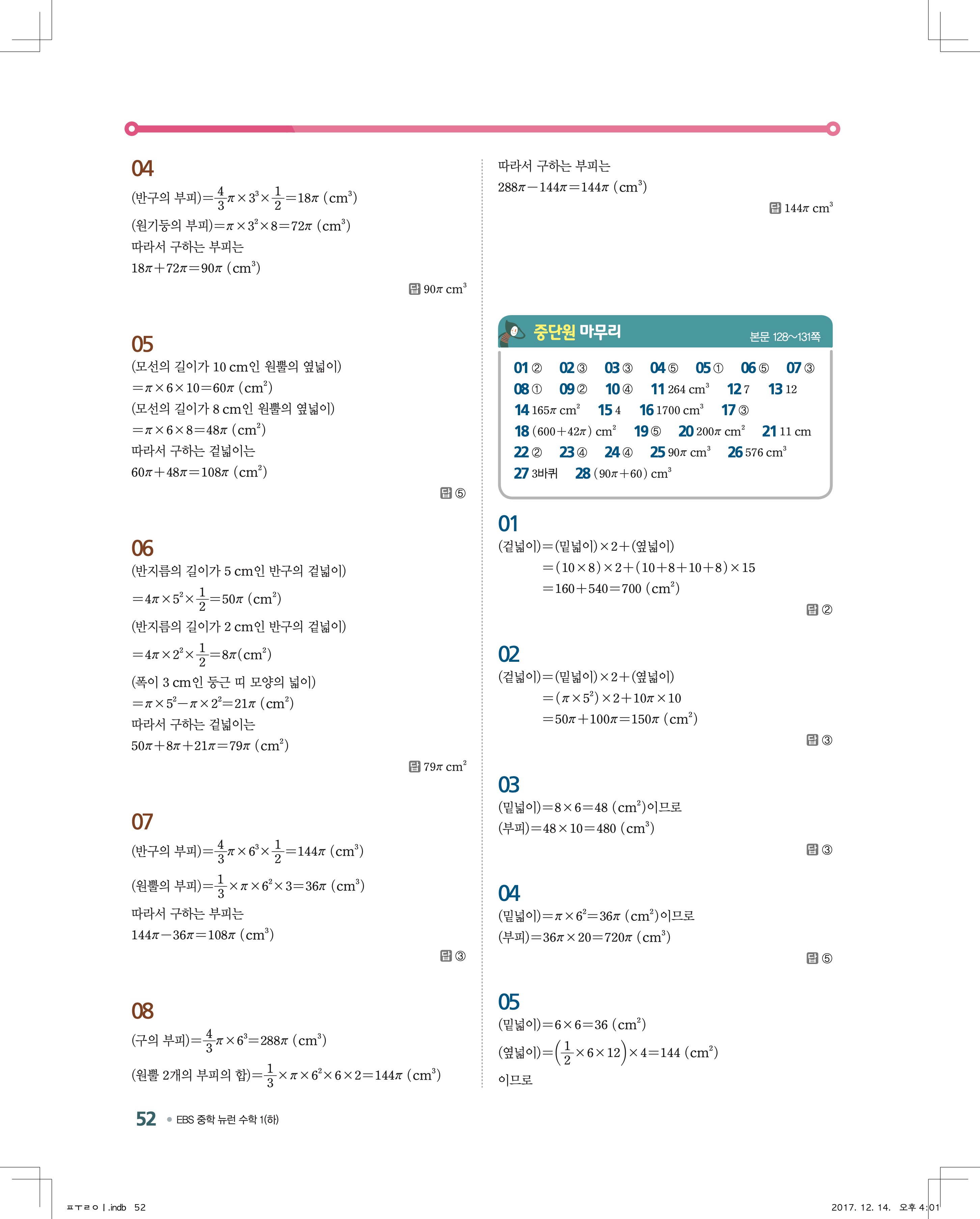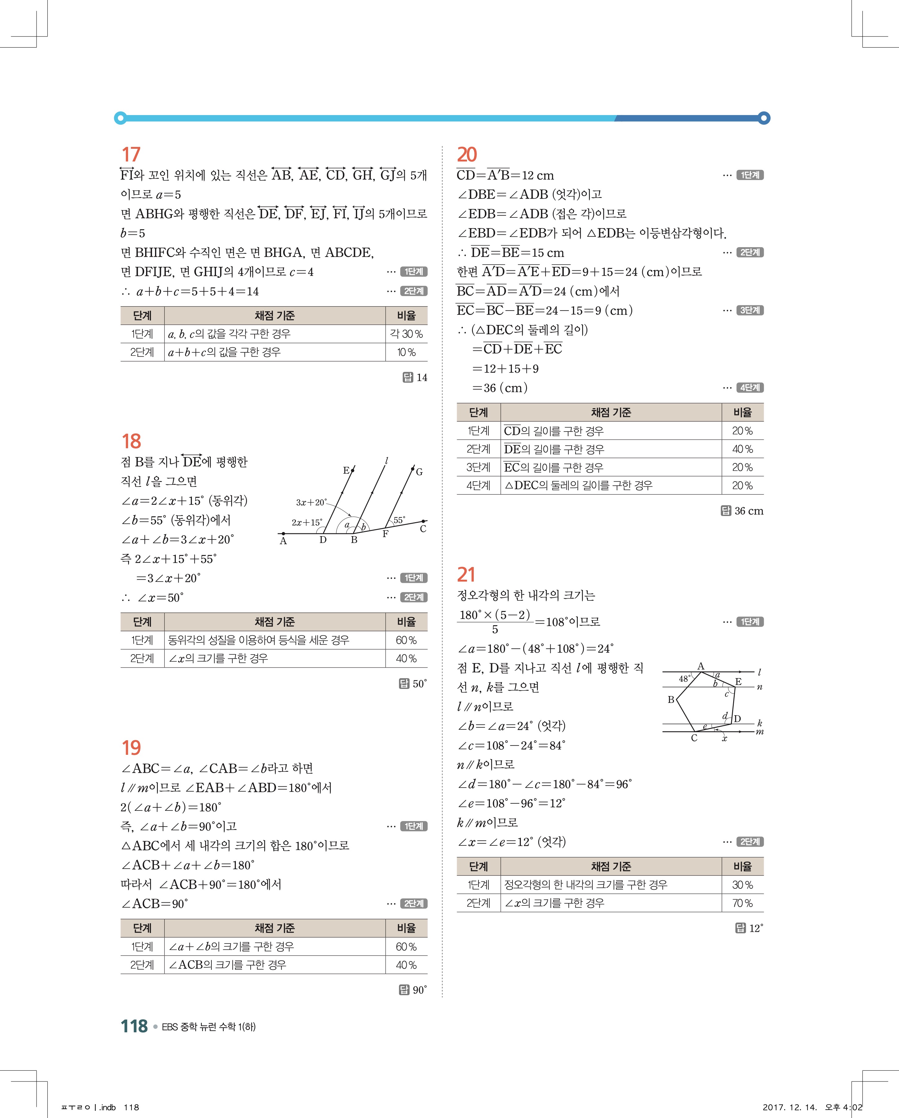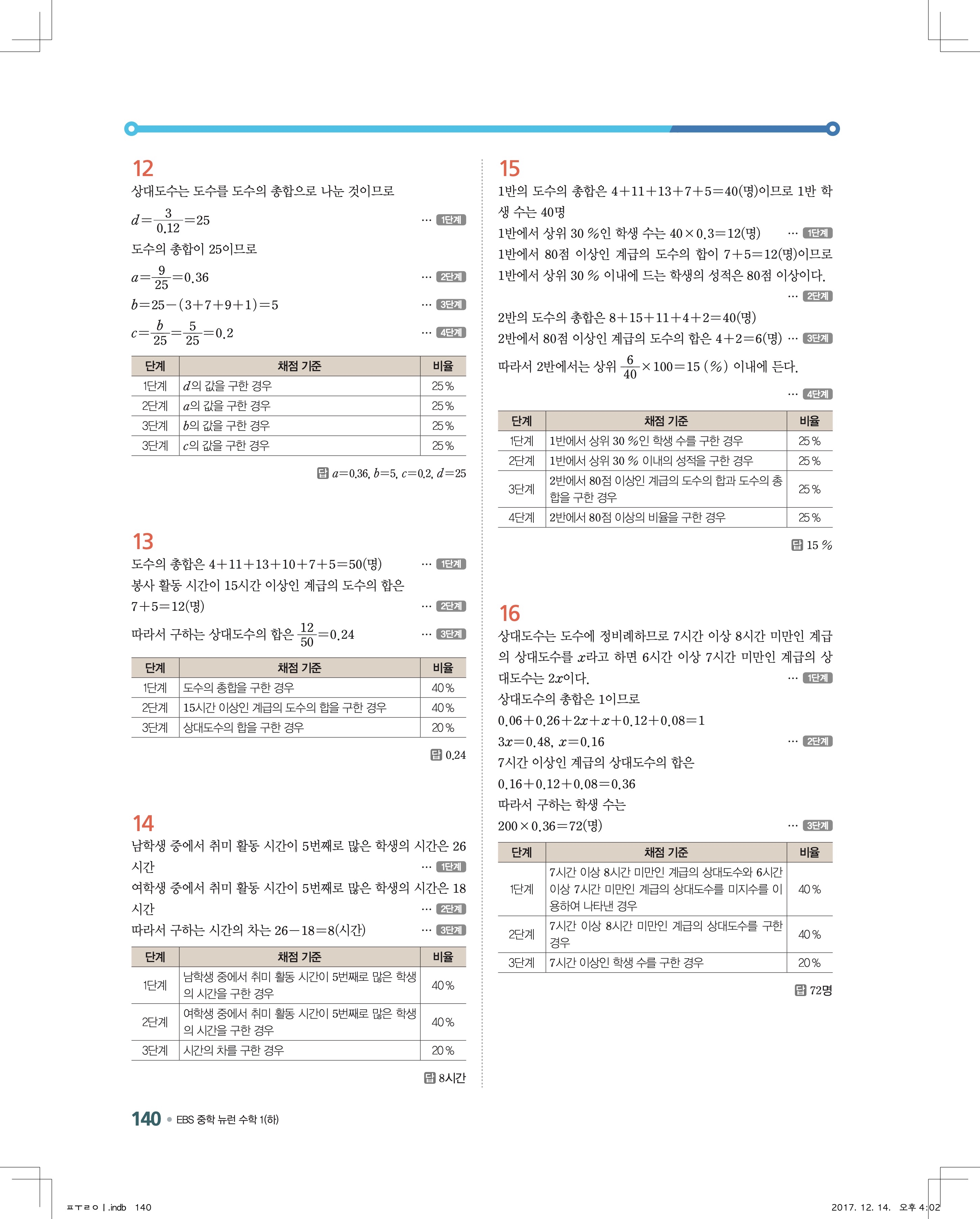 EBS 중학뉴런 수학1하 답지 해설 바로보는 사진답지 빠른답지 모바일최적화