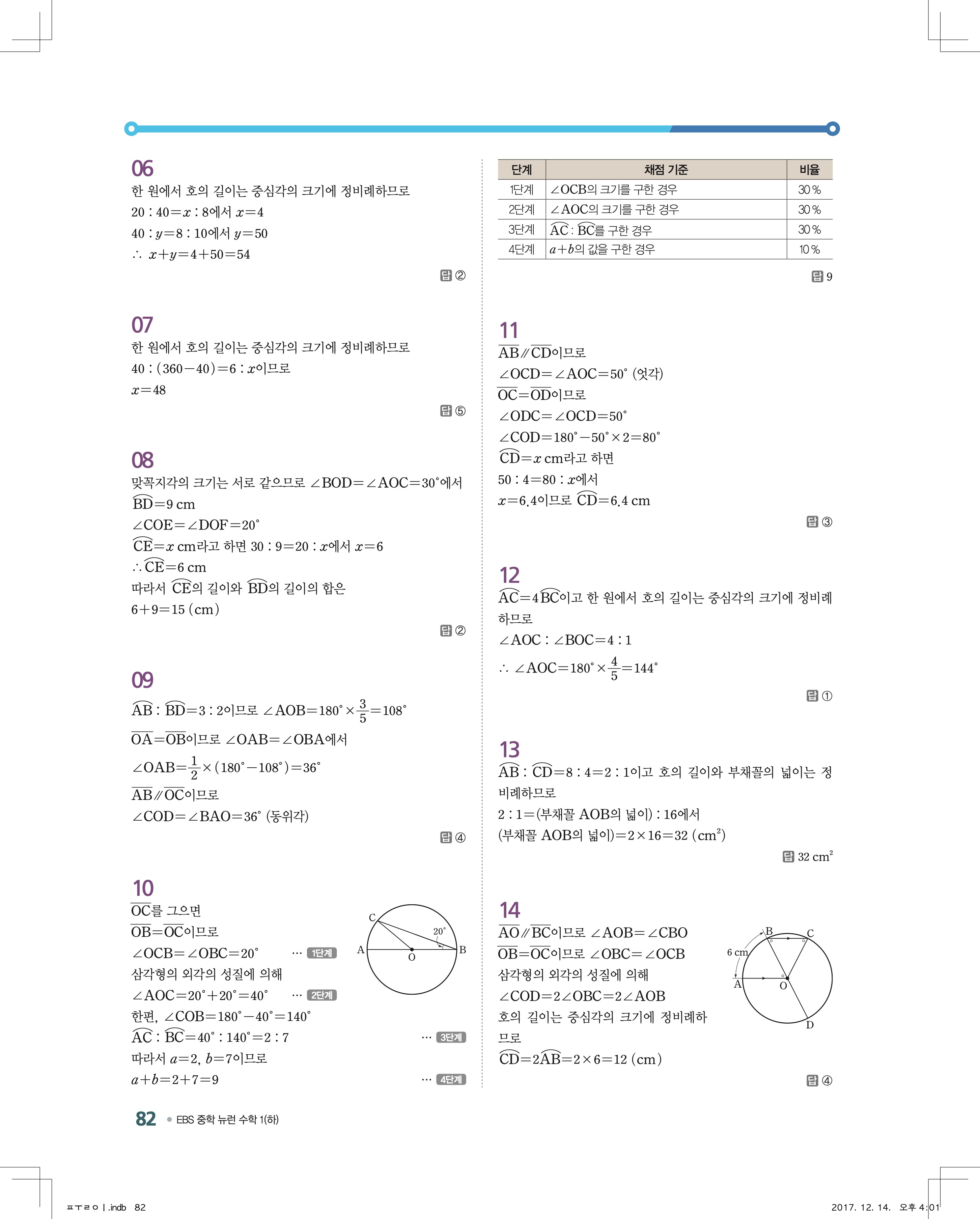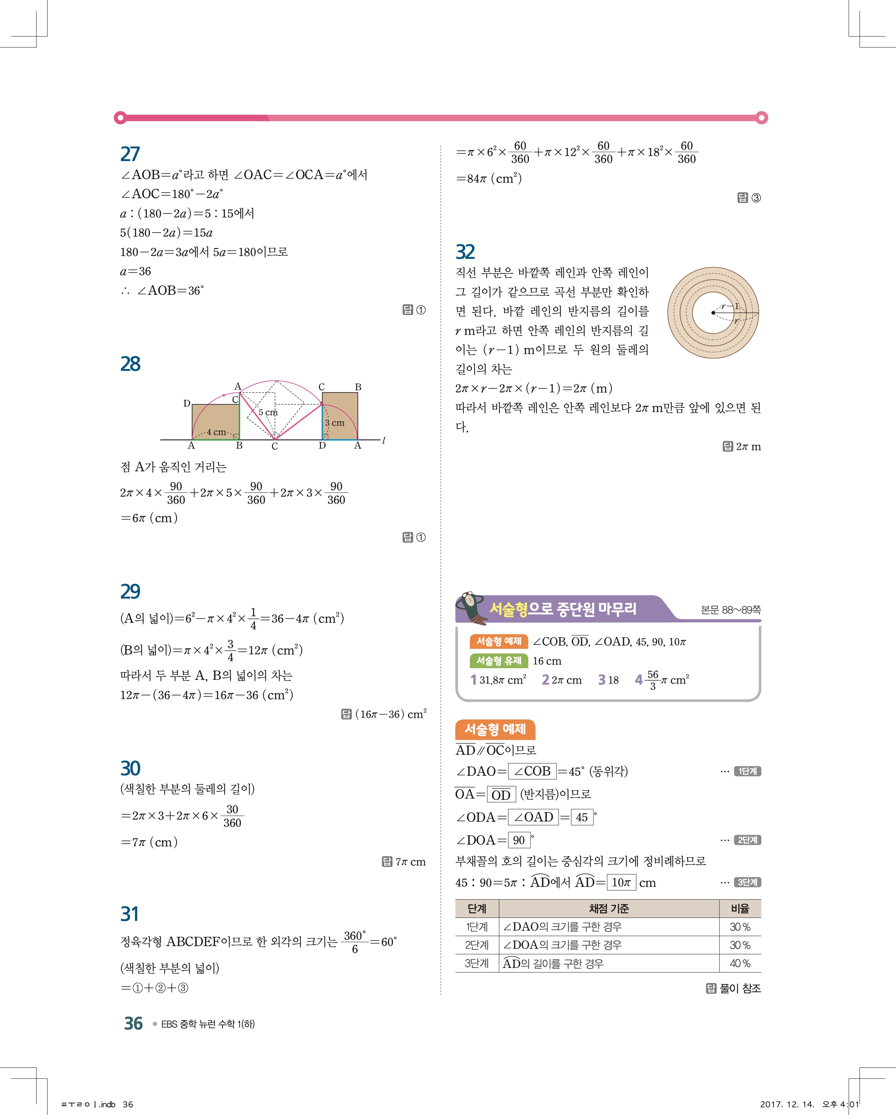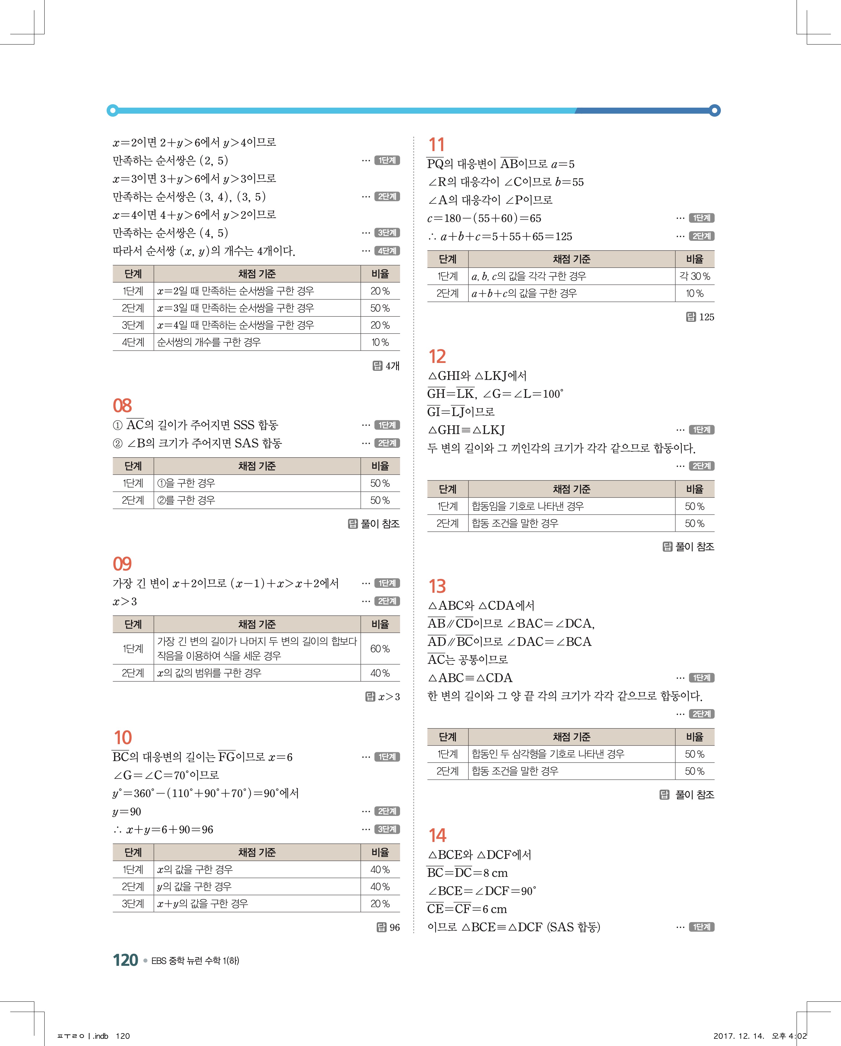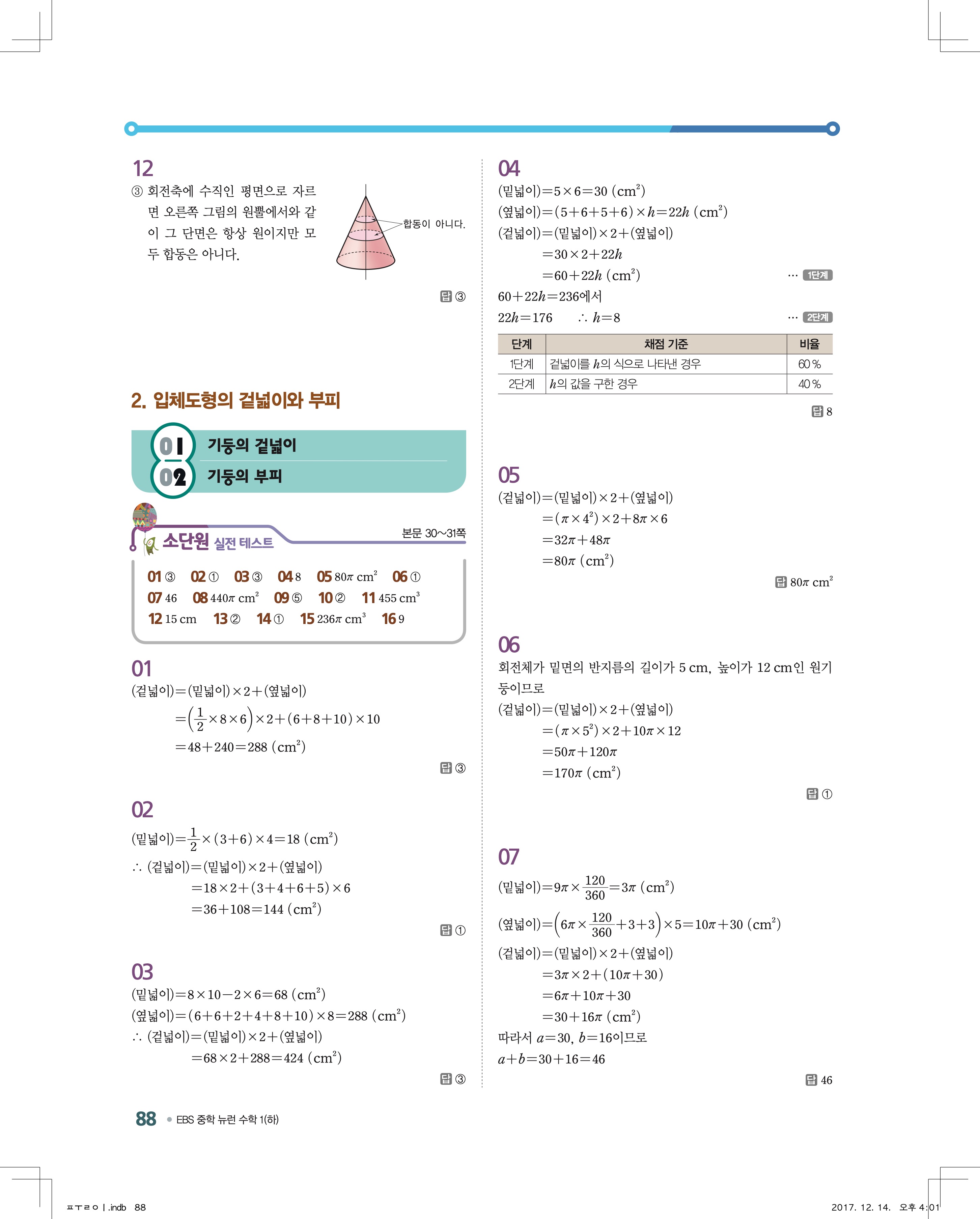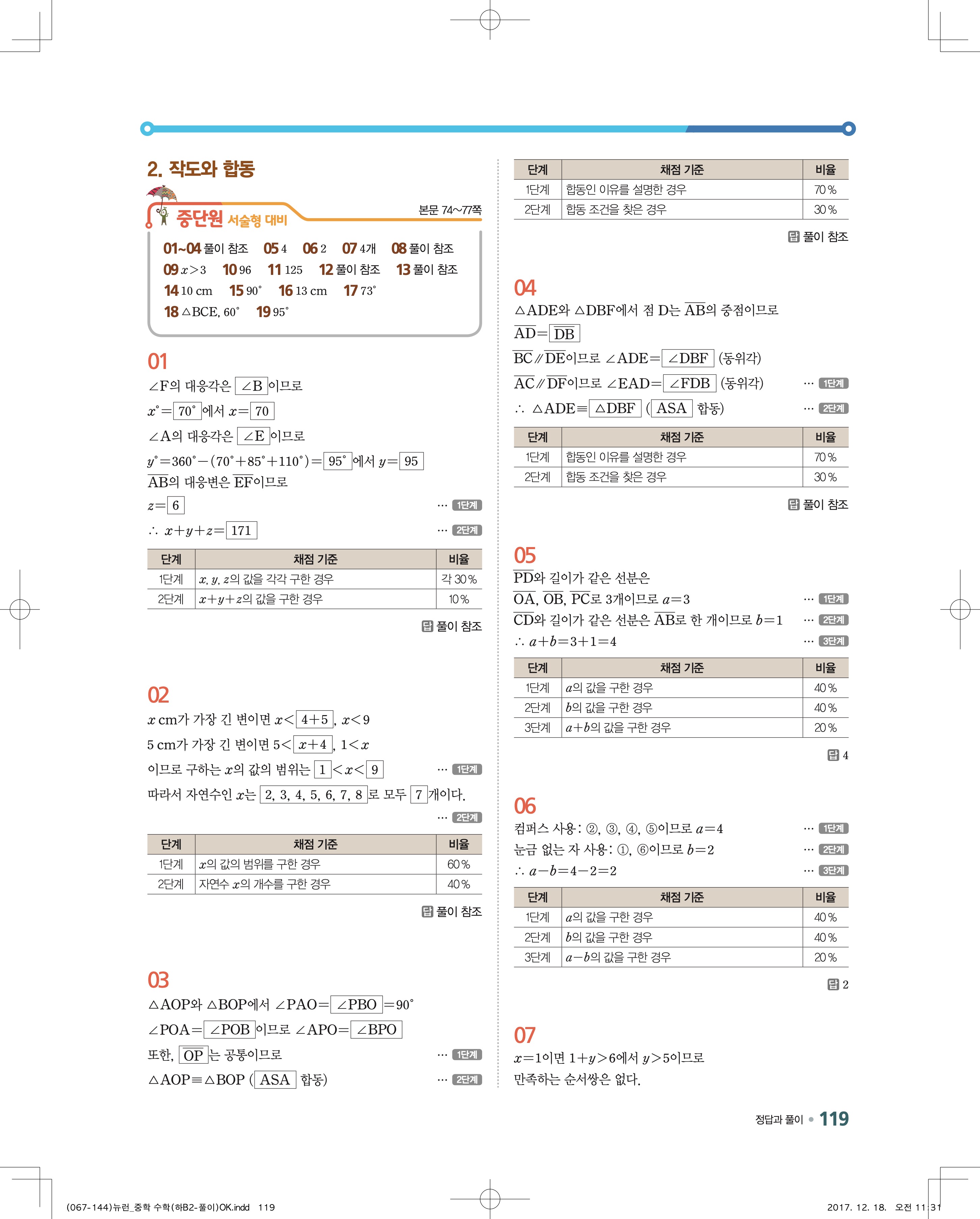 EBS 중학뉴런 수학1하 답지 해설 바로보는 사진답지 빠른답지 모바일최적화