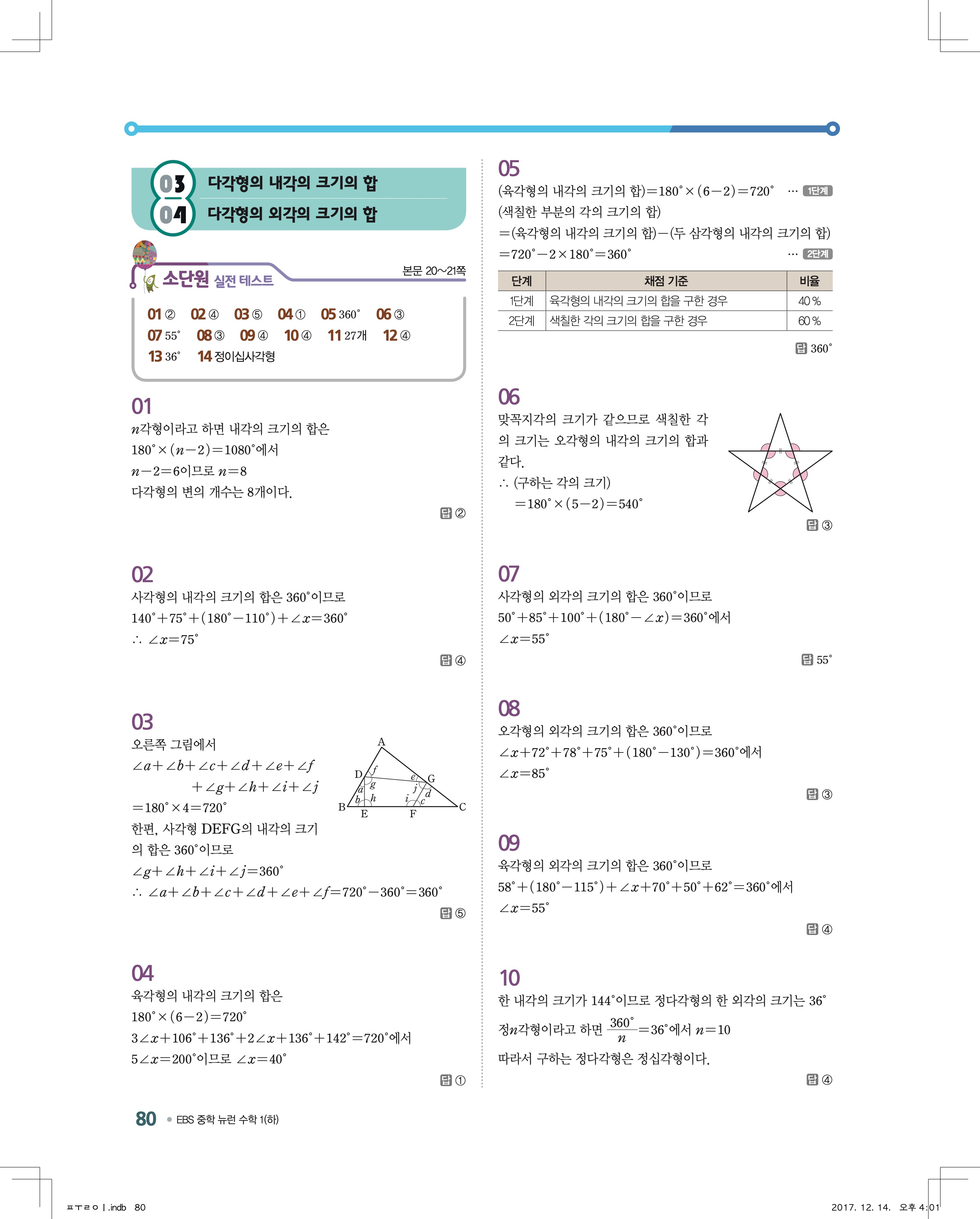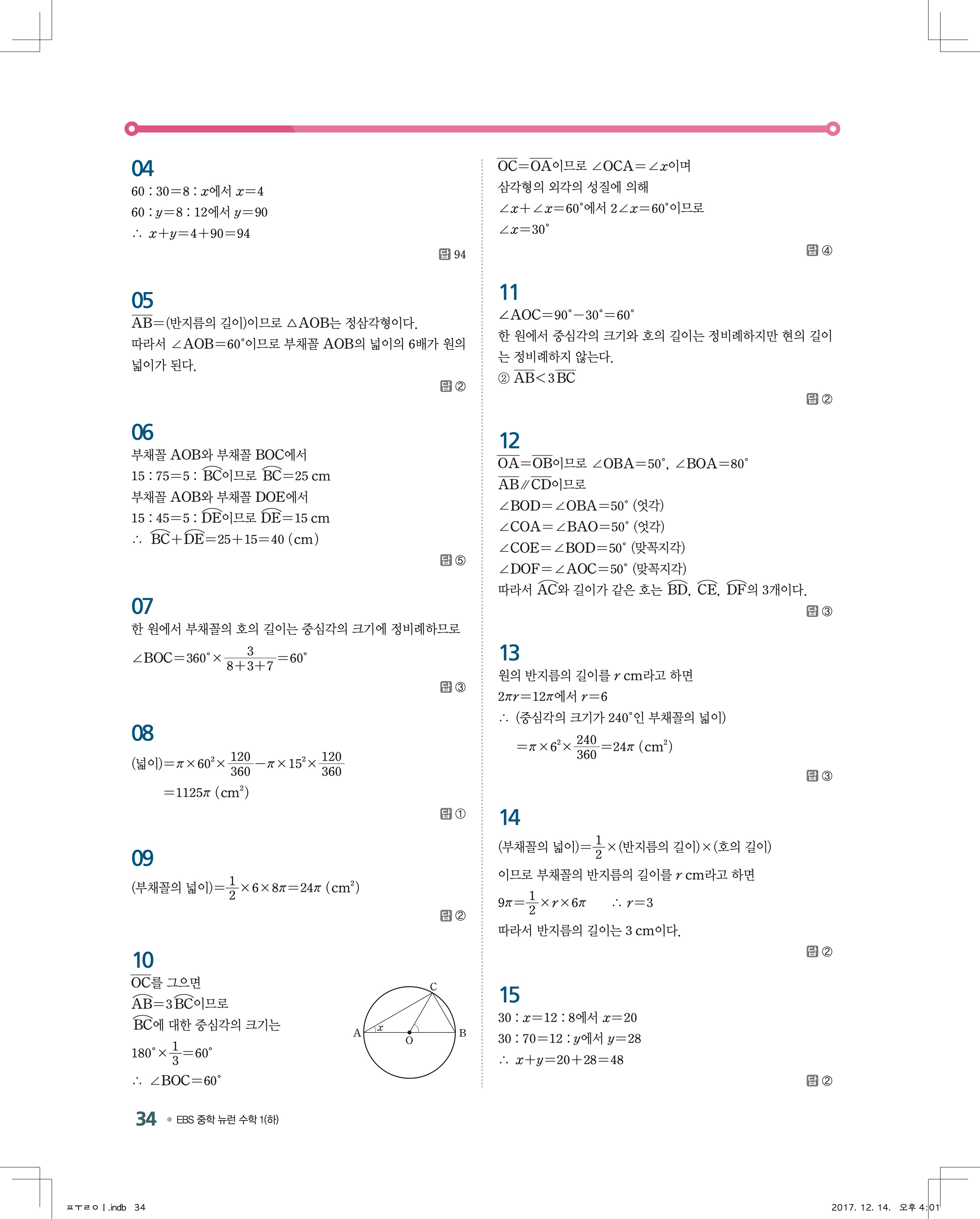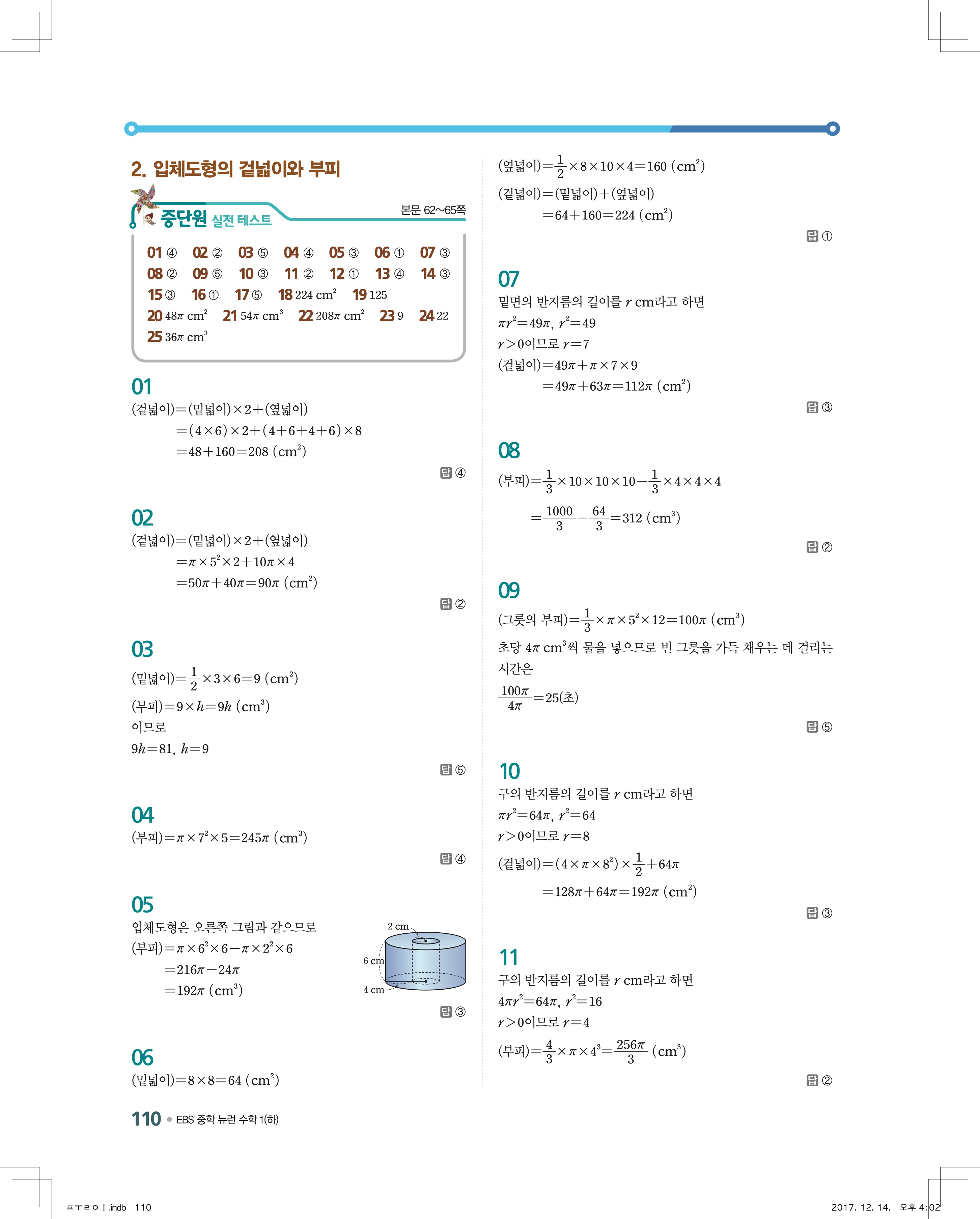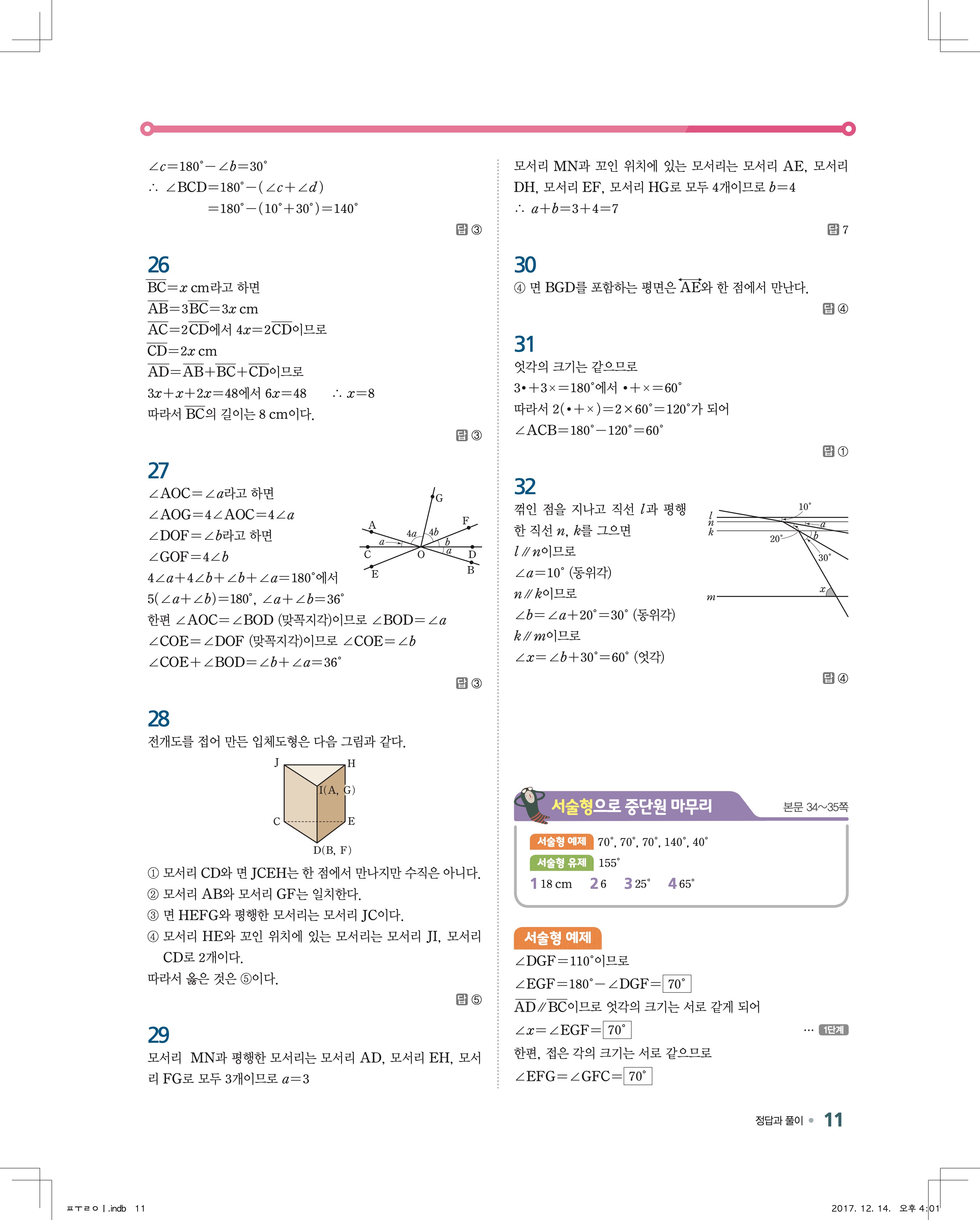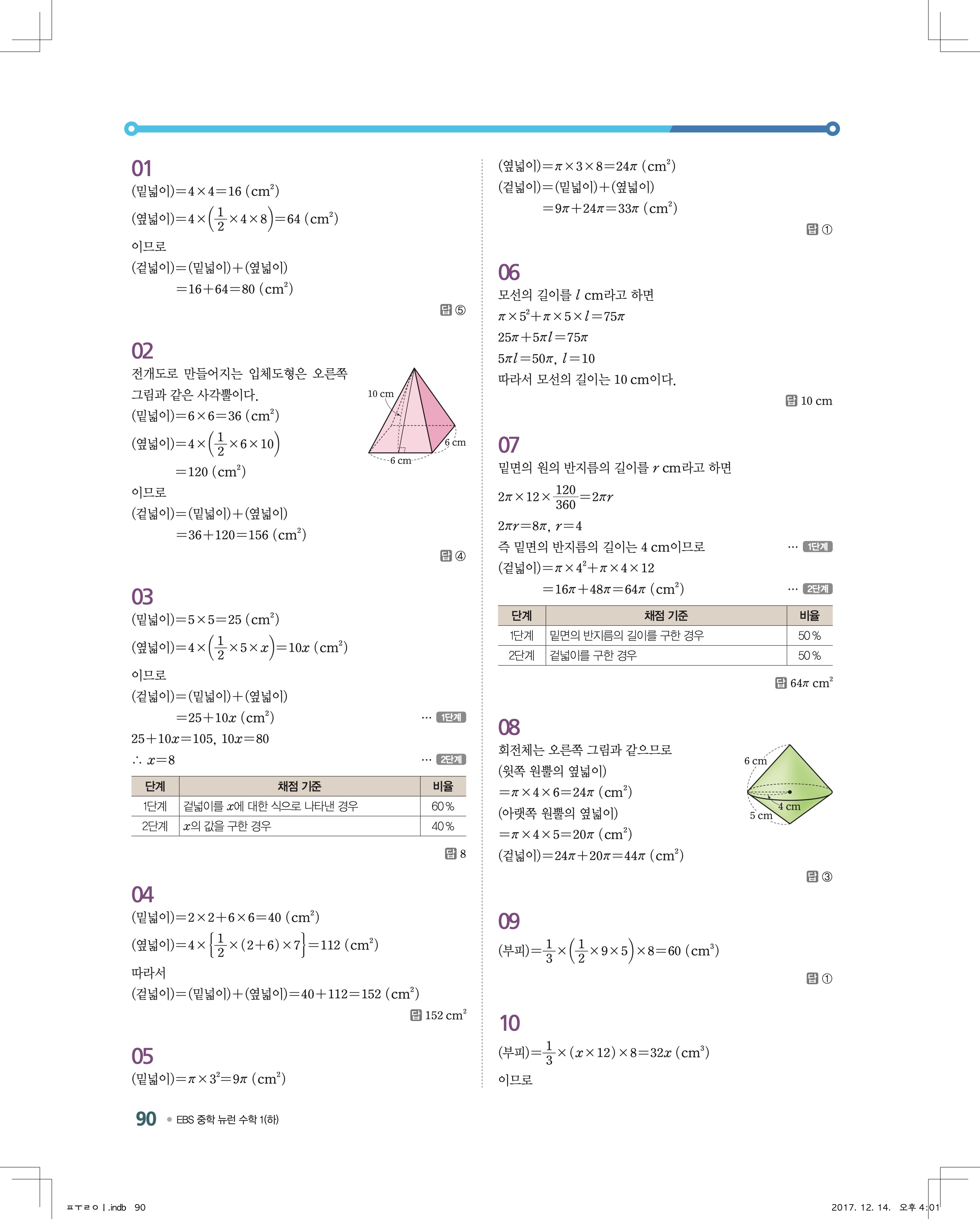 EBS 중학뉴런 수학1하 답지 해설 바로보는 사진답지 빠른답지 모바일최적화