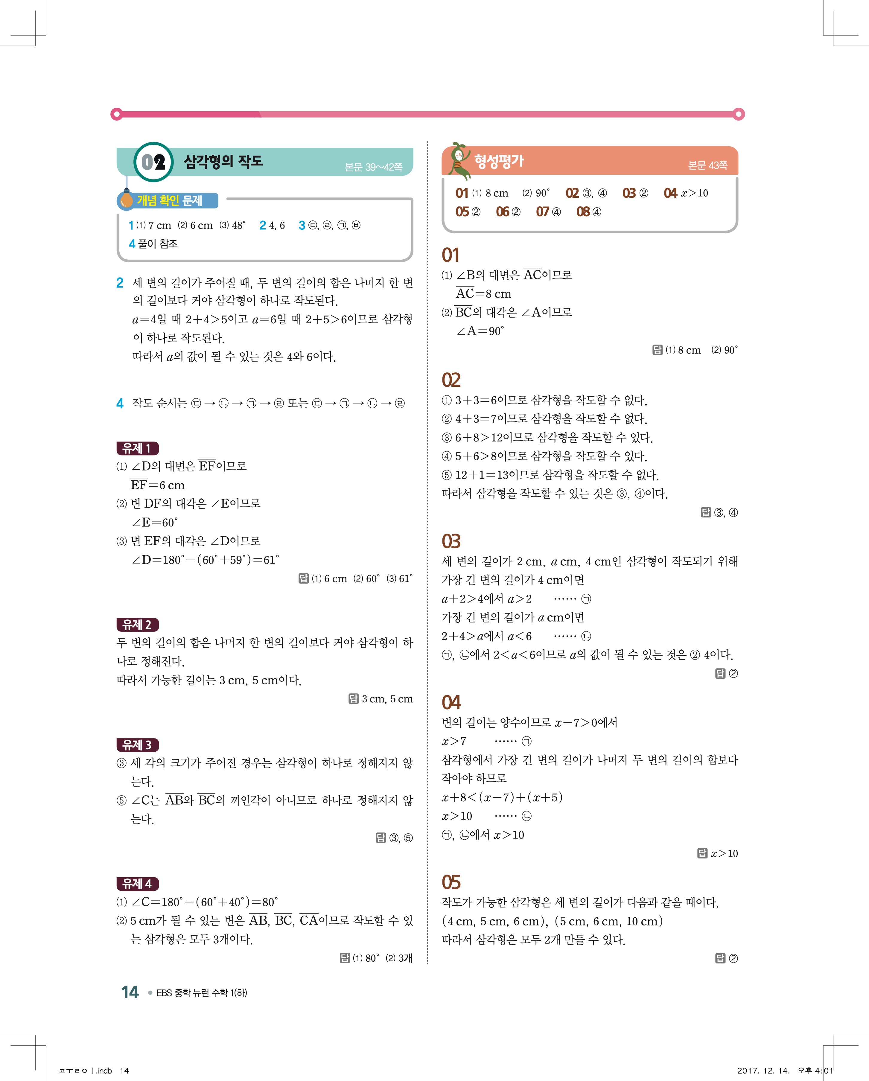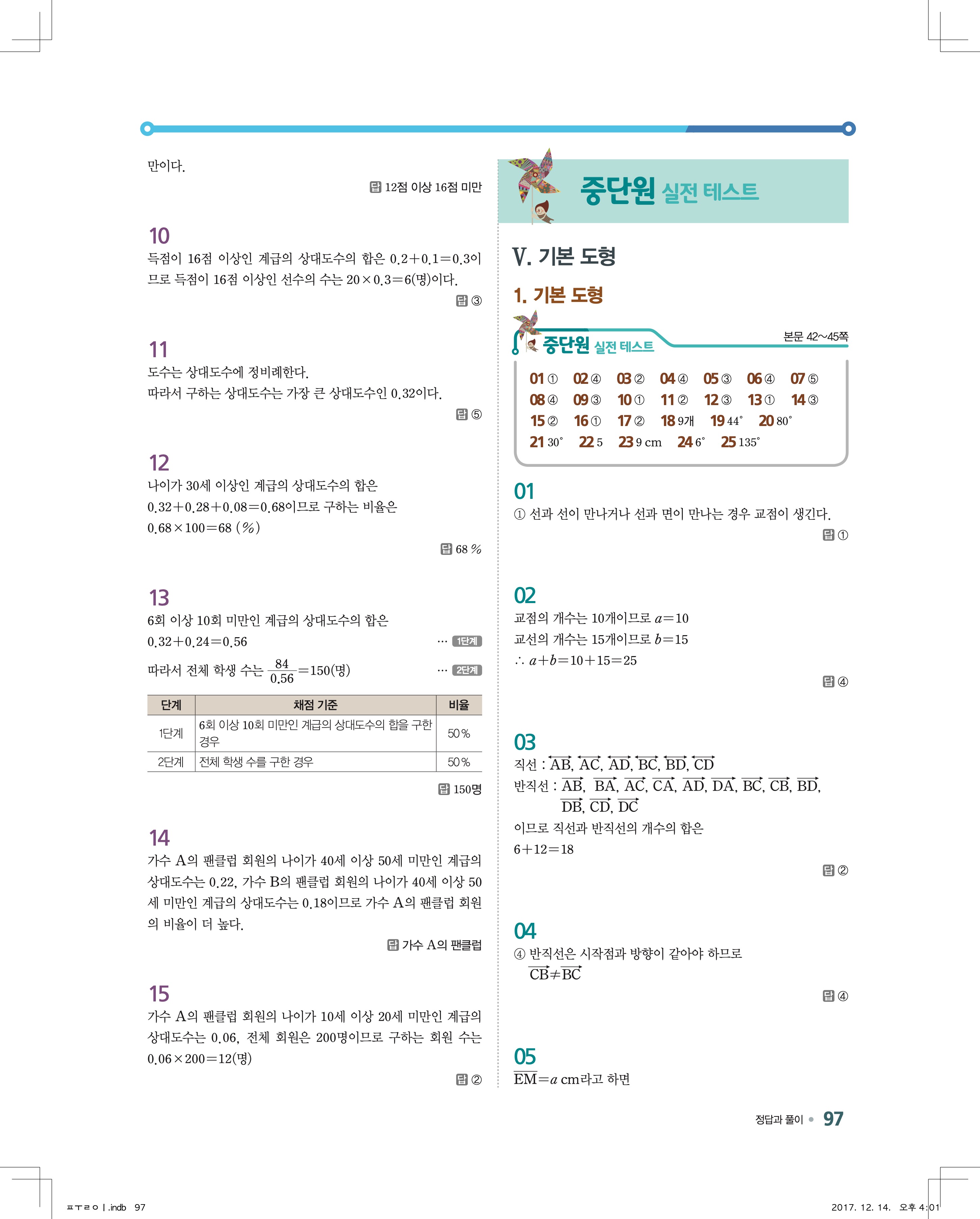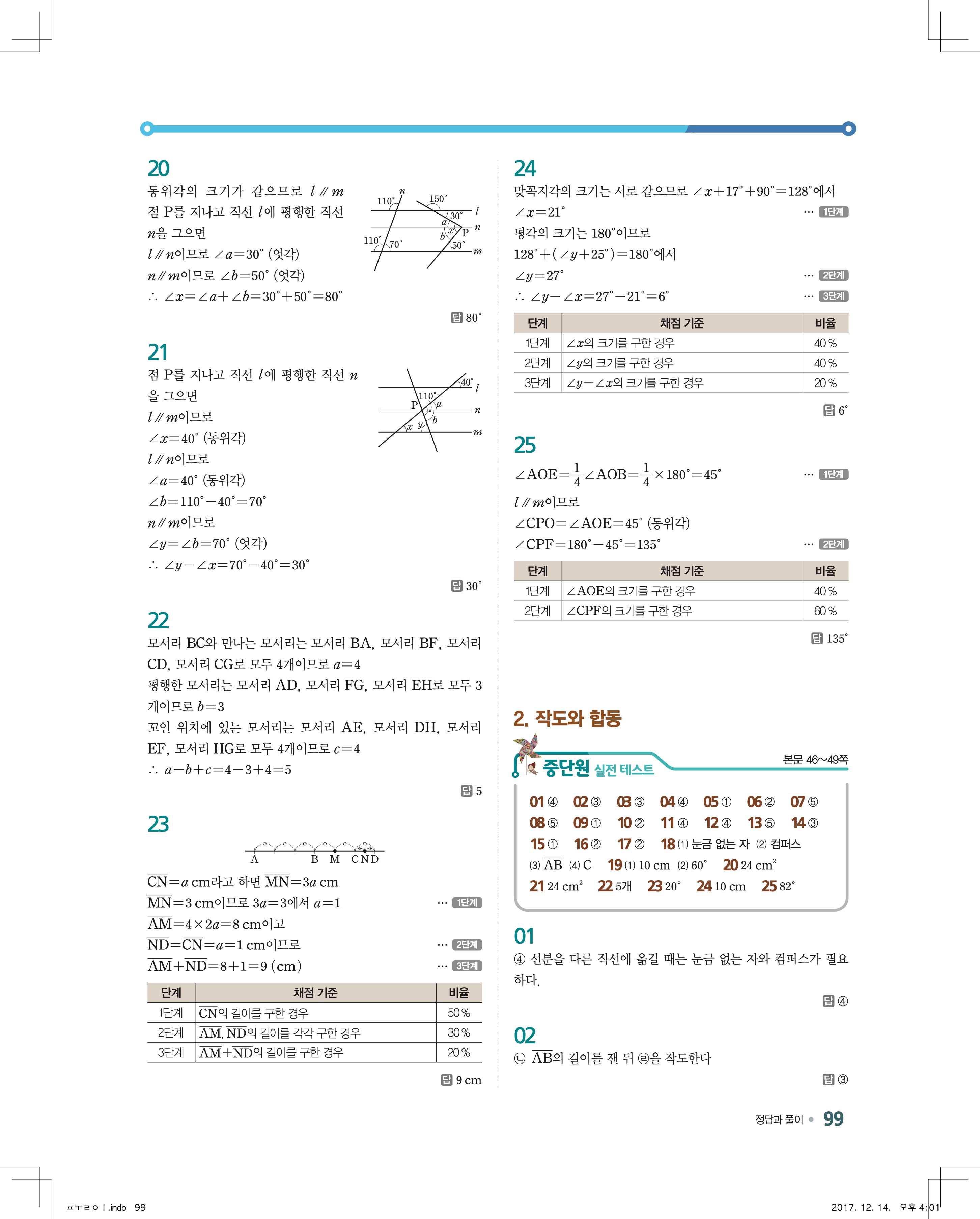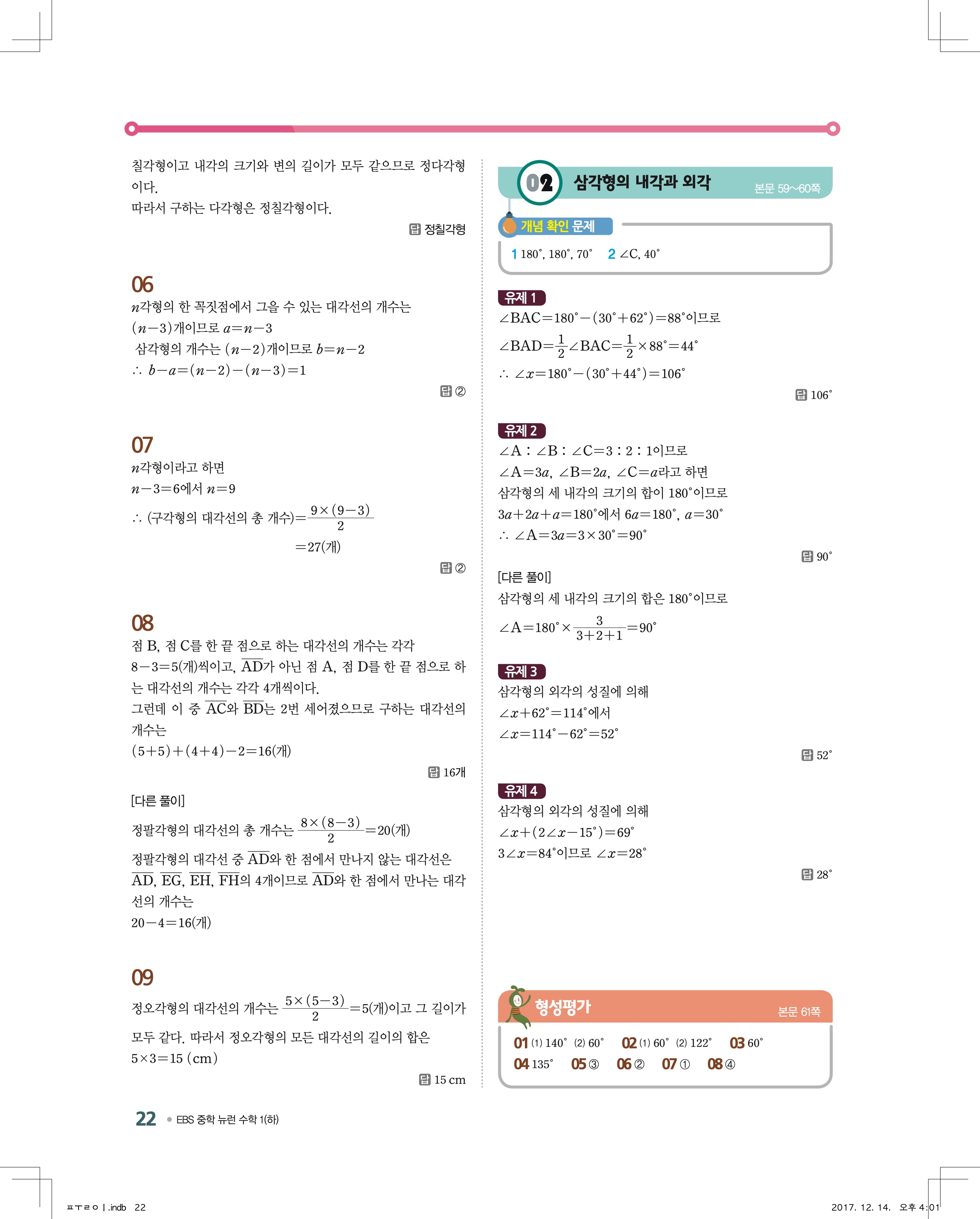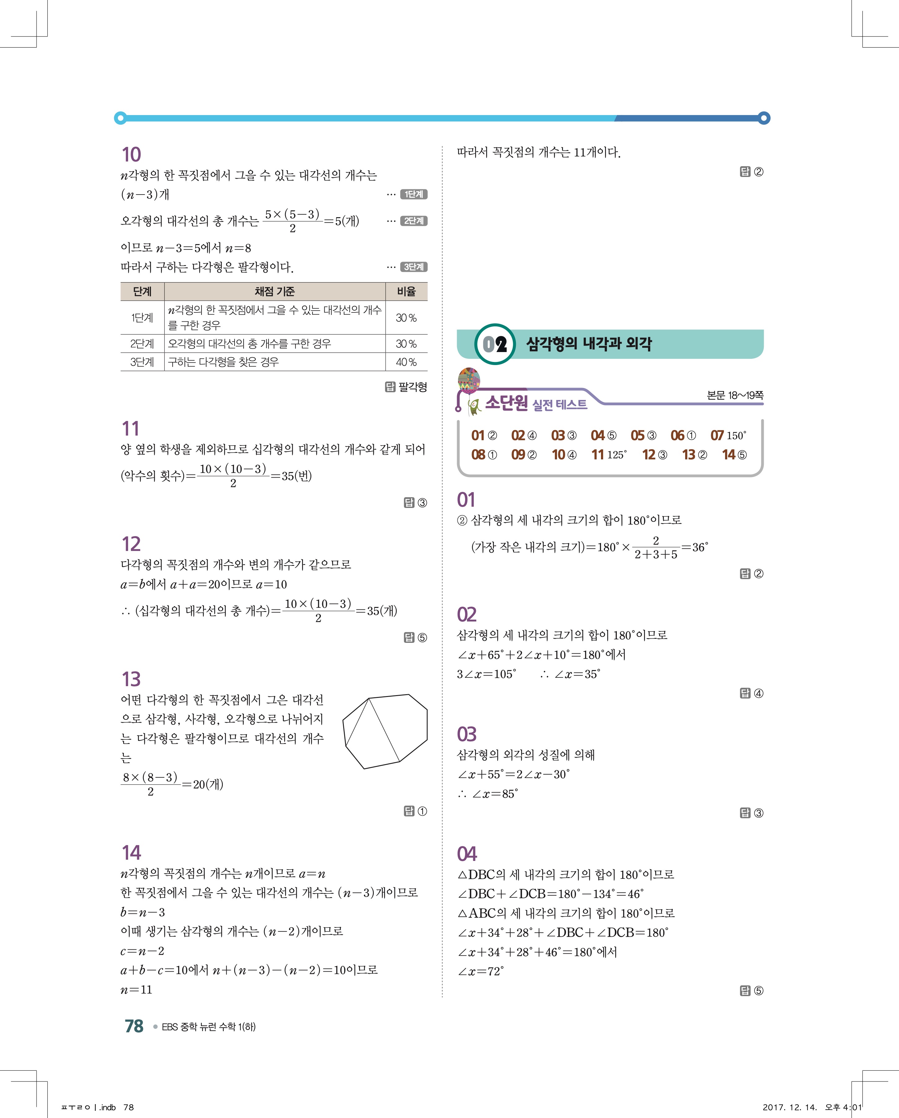 EBS 중학뉴런 수학1하 답지 해설 바로보는 사진답지 빠른답지 모바일최적화